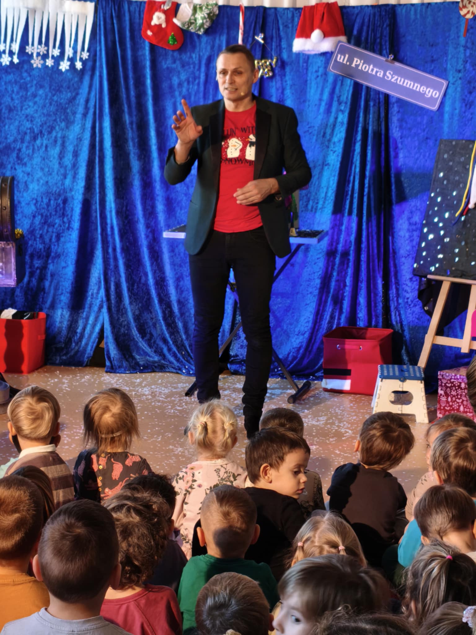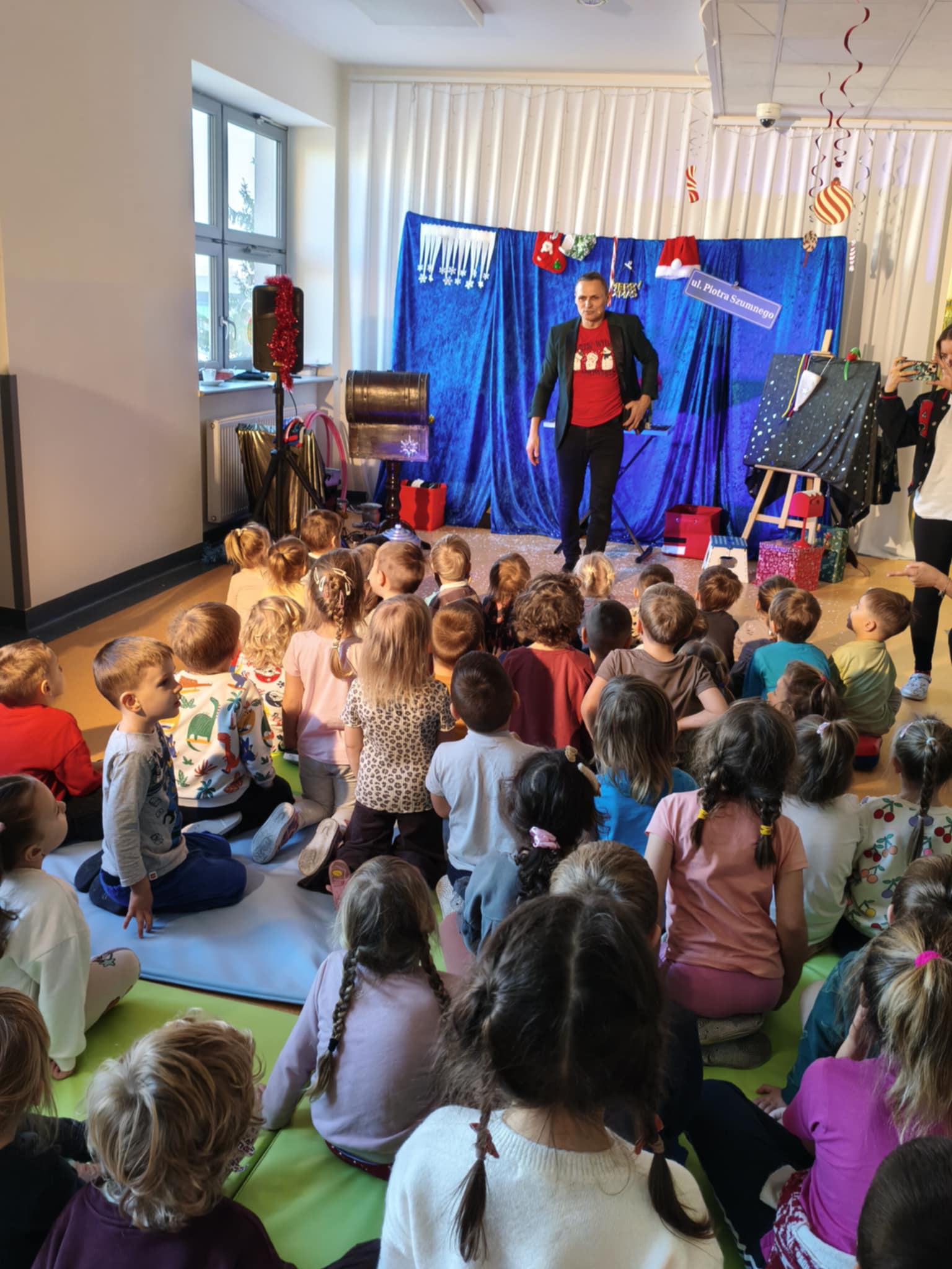 Magia jest zawsze tym co sprawia naszym przedszkolakom dużo radości! Magik z ulicy Piotra Szumnego zaprezentował mikołajkowy czarodziejski pokaz.