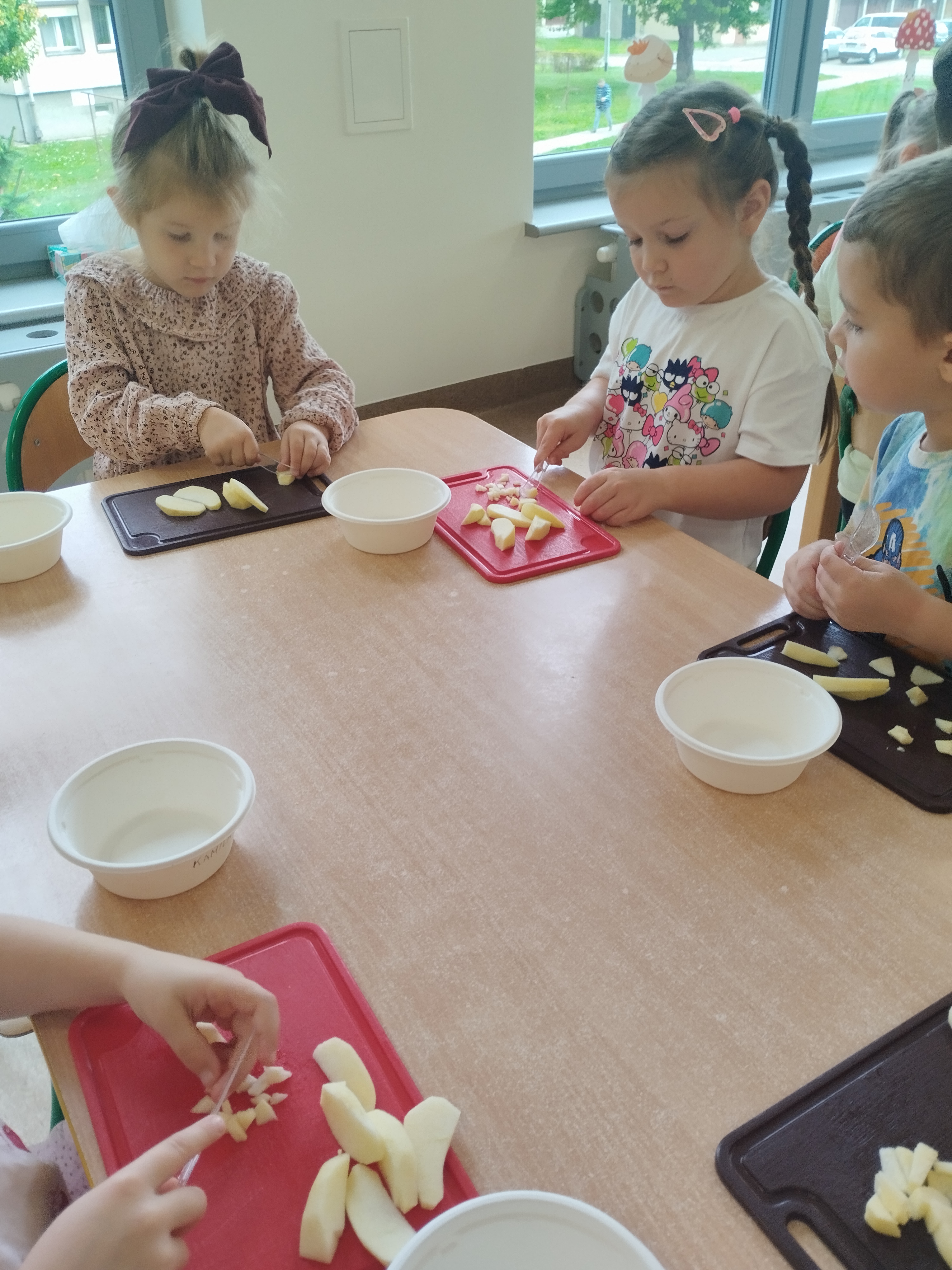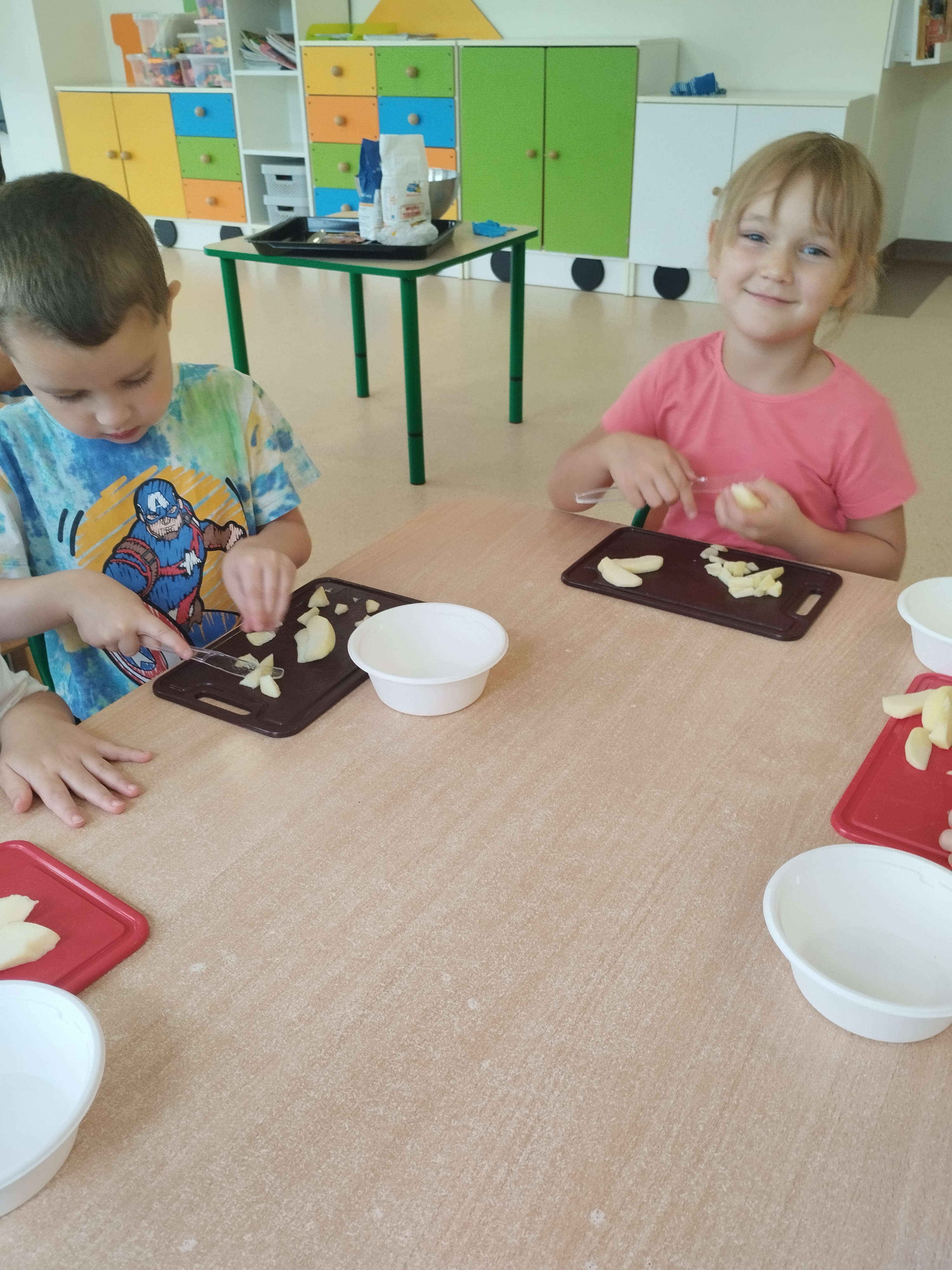 W ramach naszego programu ,,Wiem, co jem"odbyły się dzisiaj warsztaty cukiernicze. Dzieci z wielkim zaangażowaniem przygotowały składniki do wypieków. Było dużo smaku i pachniało cynamonem i jabłkami.