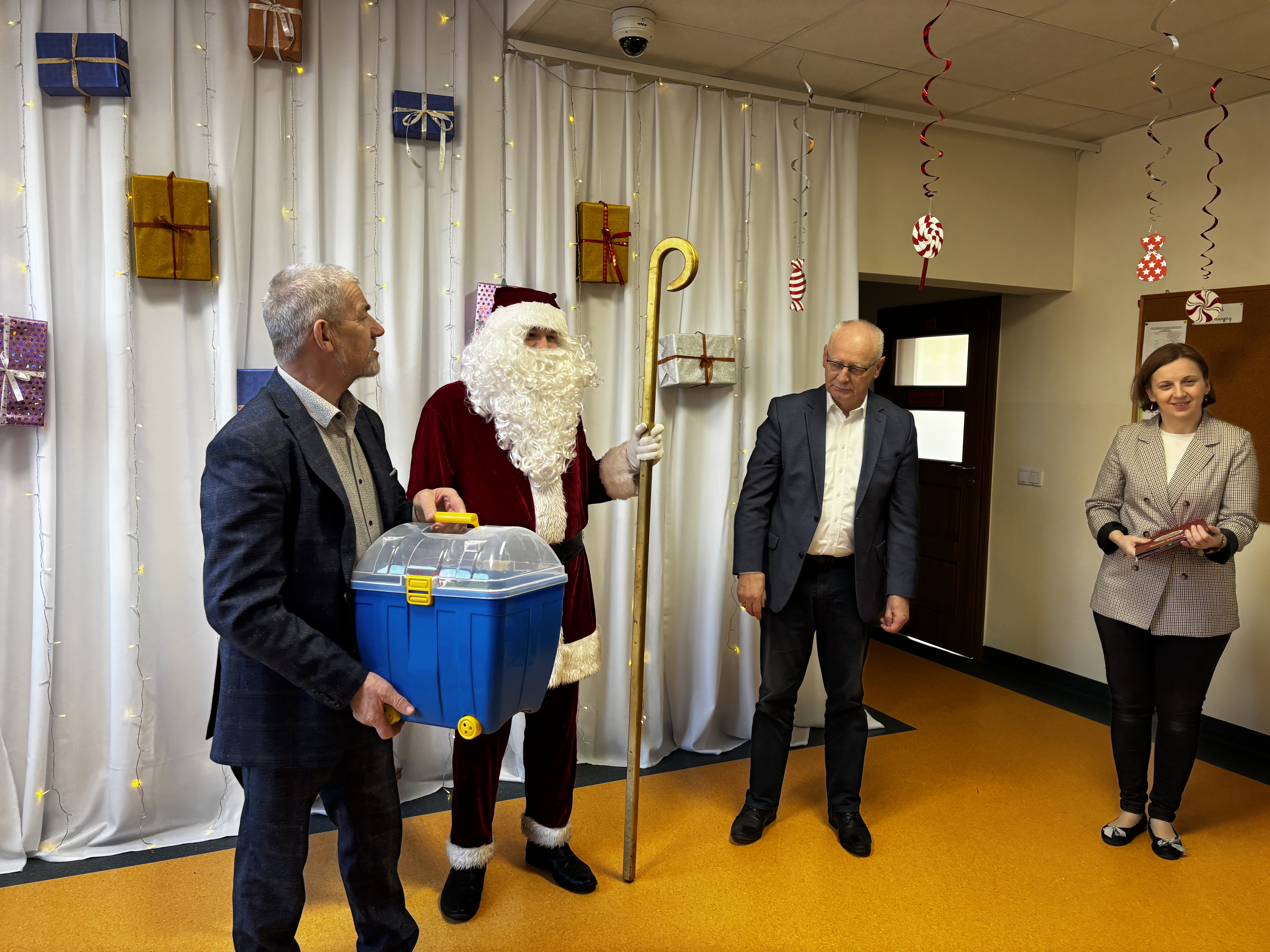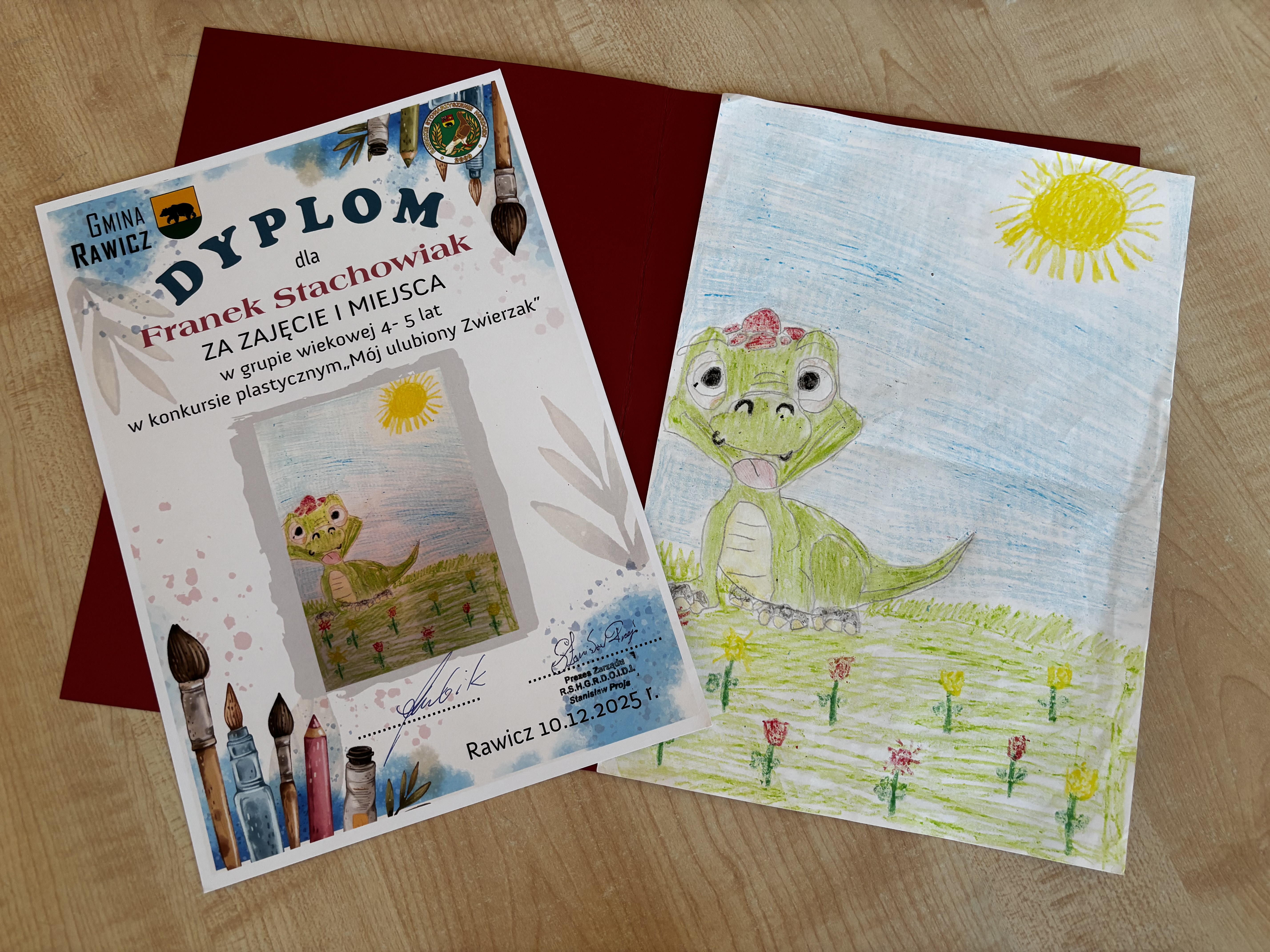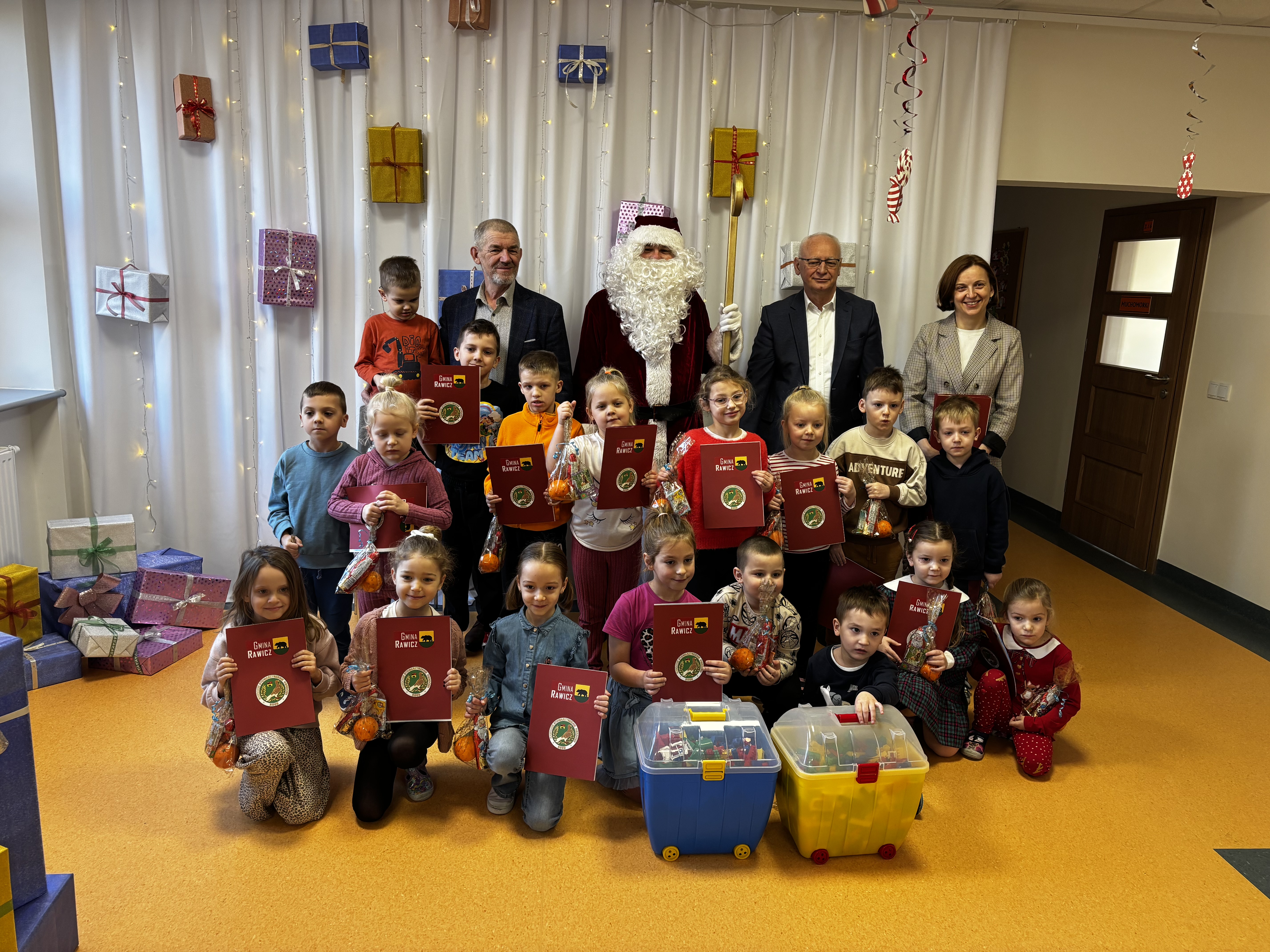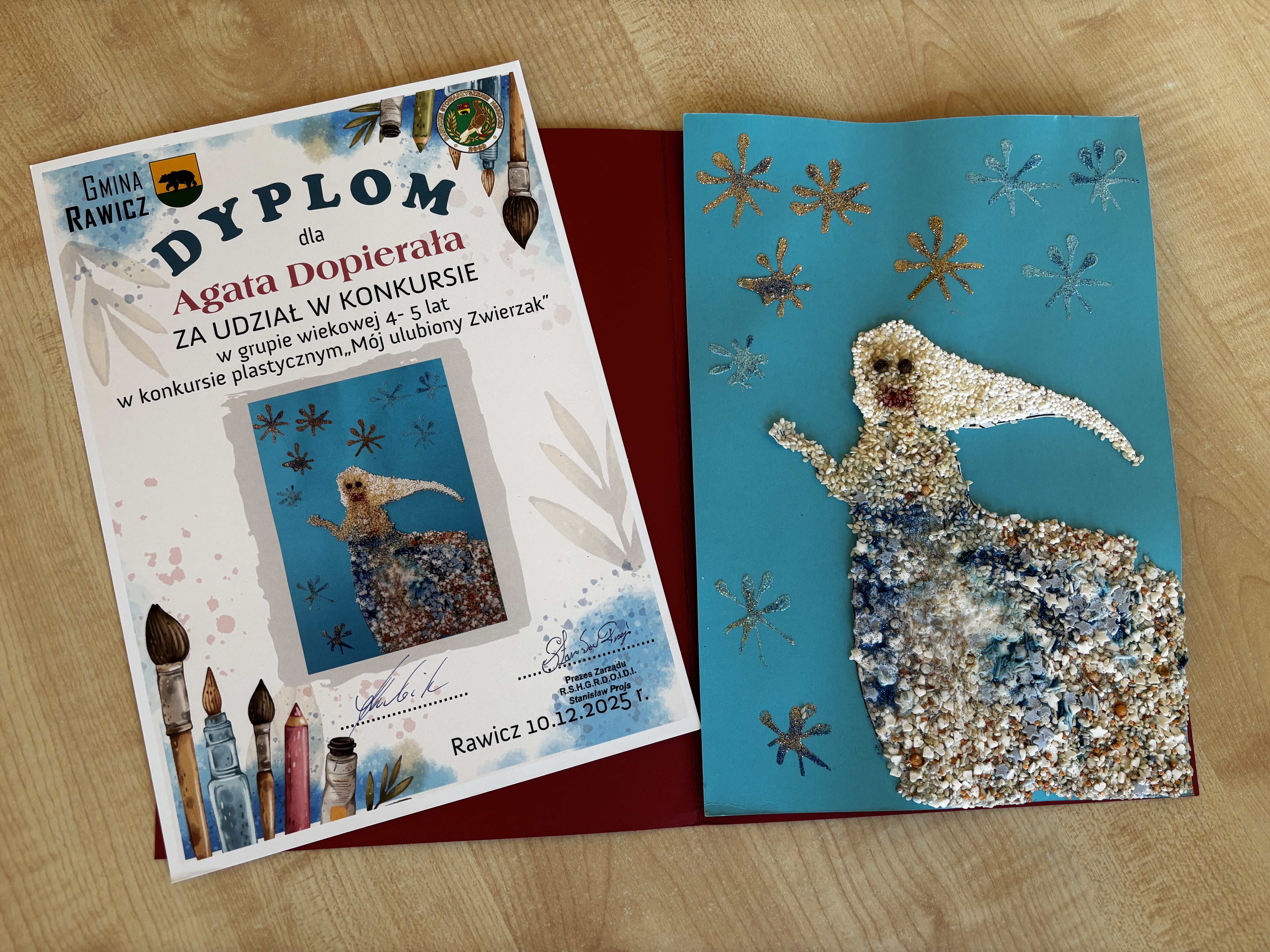 Dzieci z naszej grupy otrzymały dyplomy od Rawickiego Stowarzyszenia Hodowców Gołębi Rasowych, Drobiu Ozdobnego i Drobnego Inwentarza za udział w konkursie „Mój ulubiony zwierzak”. W naszej grupie nagrodzeni zostali: Agatka, Franek oraz Oliwier. Prezenty wręczał Mikołaj, który obiecał, że odwiedzi również naszego Cezarego – obecnie ucznia pierwszej klasy. Uroczyste wręczenie nagród odbyło się w obecności Pani Dyrektor przedszkola, Prezesa Stowarzyszenia oraz Burmistrza Rawicza. Dzieci otrzymały także słodkie upominki. Odwiedziny były dla dzieci miłym zaskoczeniem:)