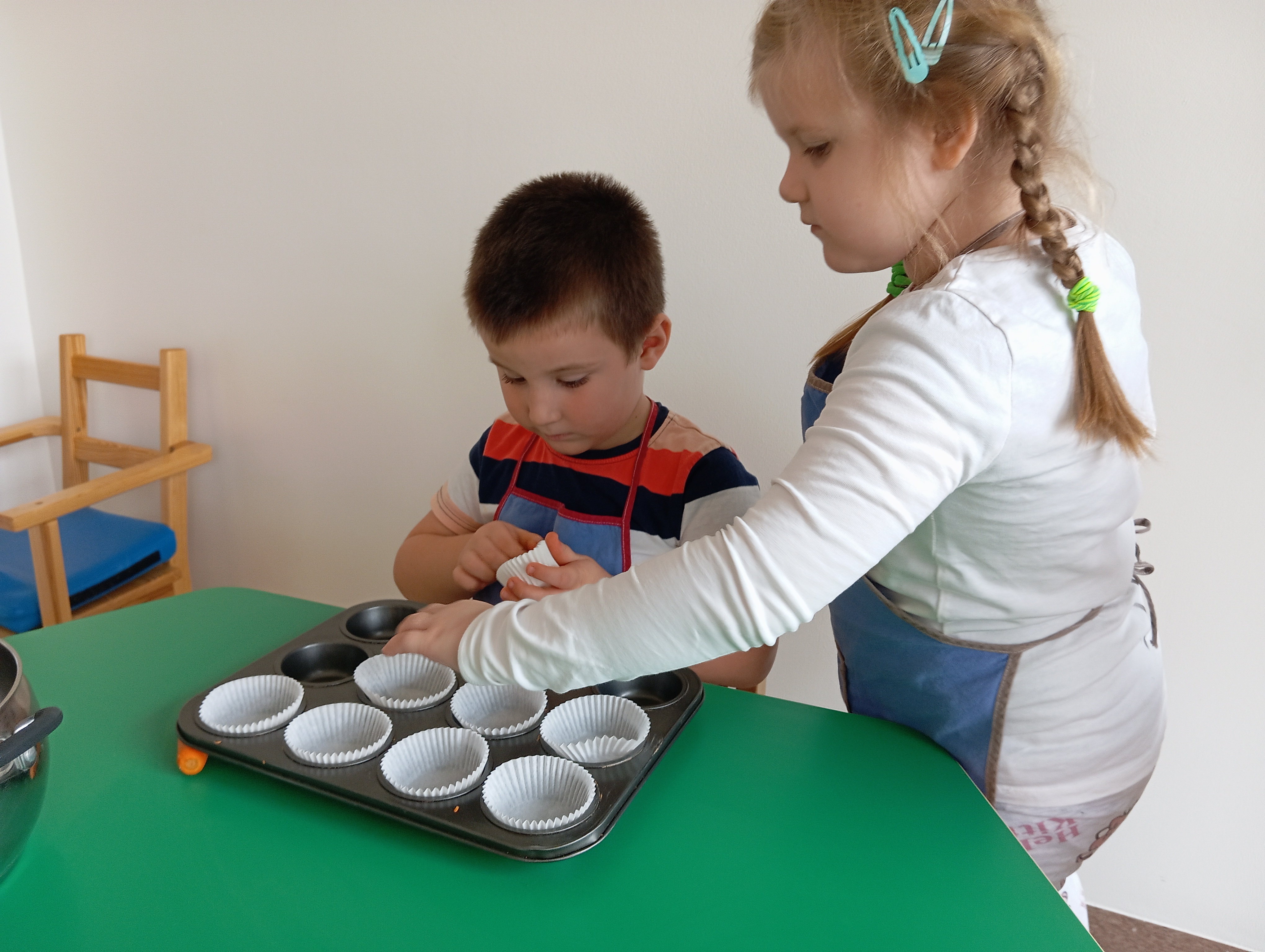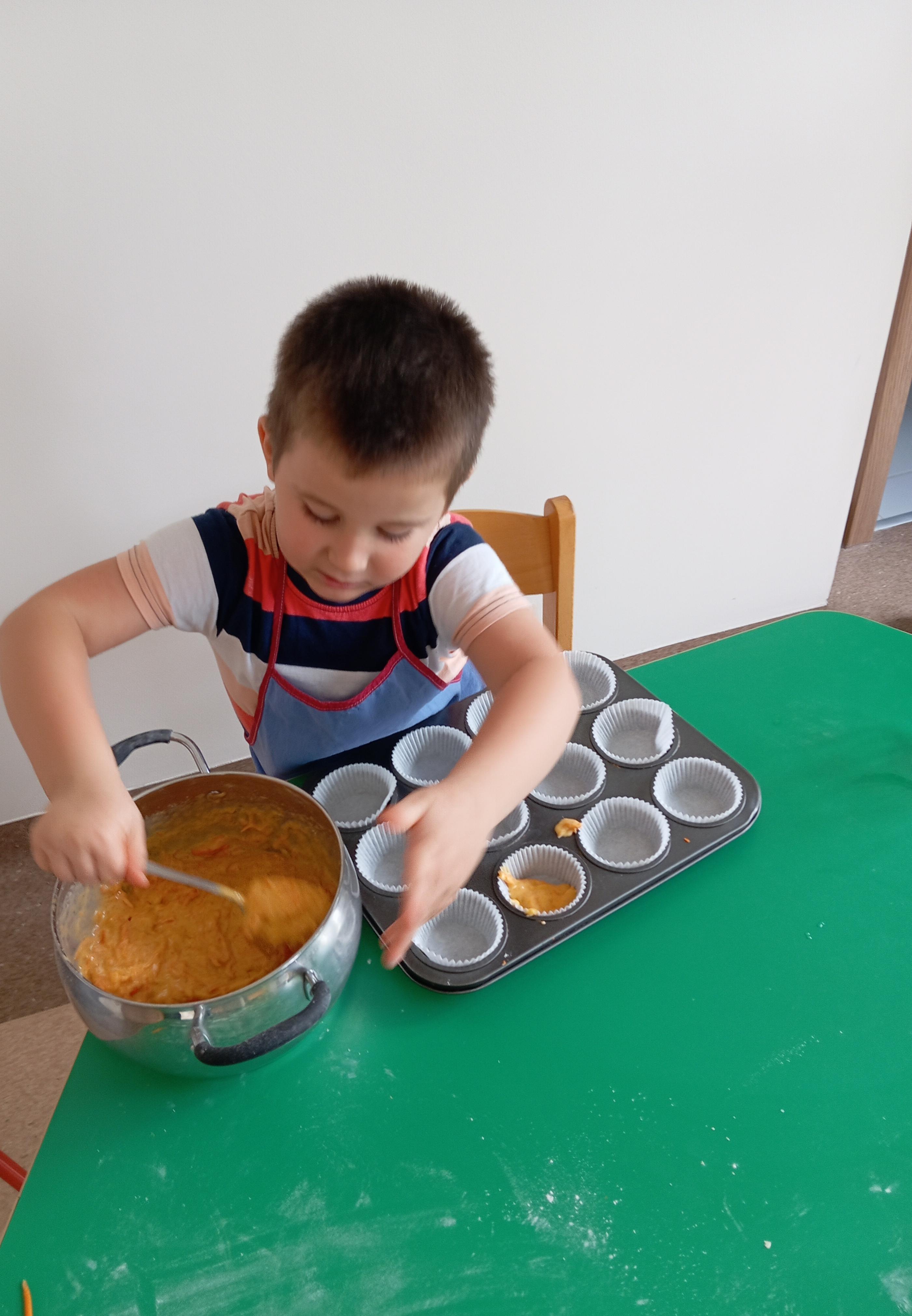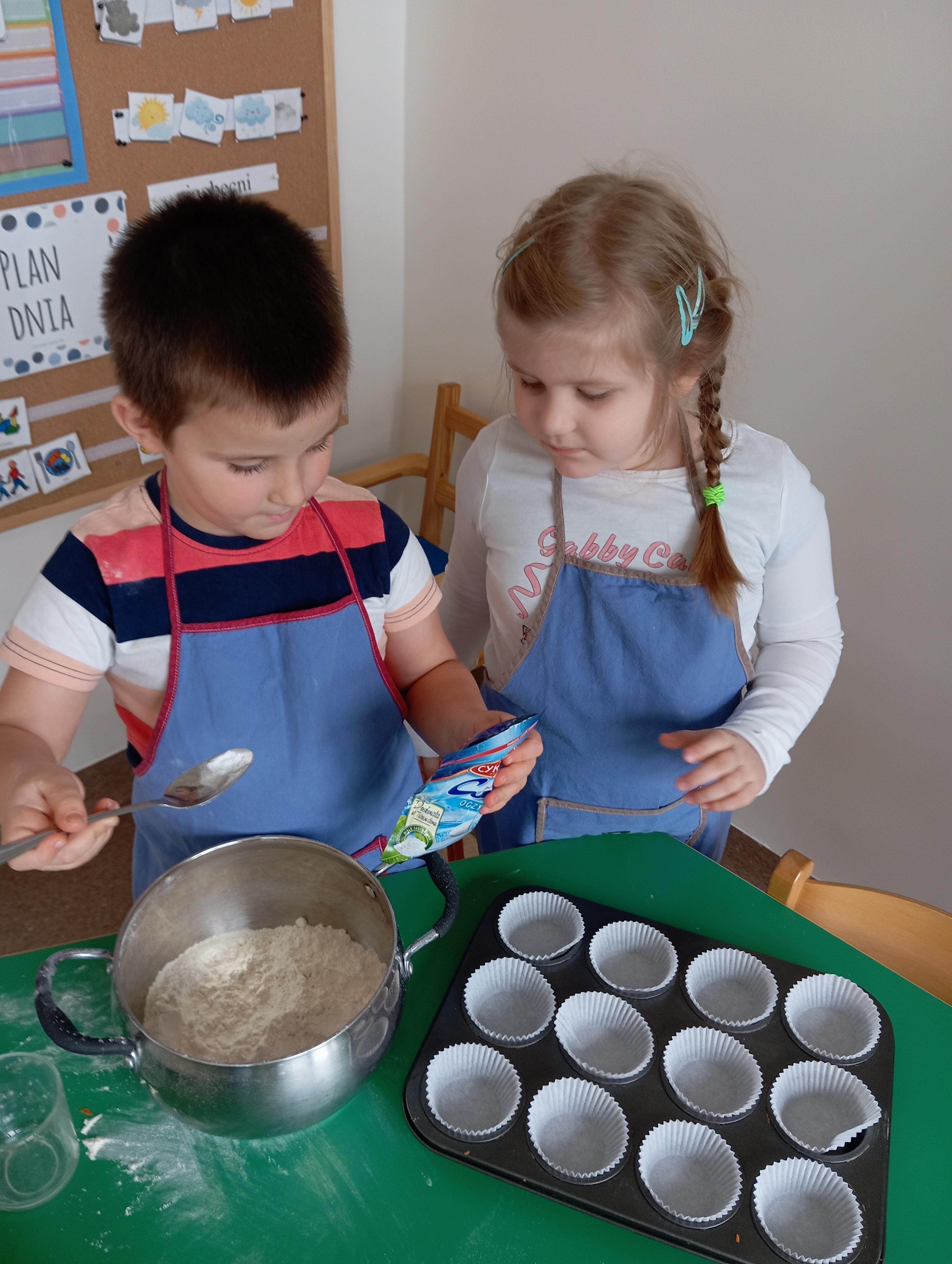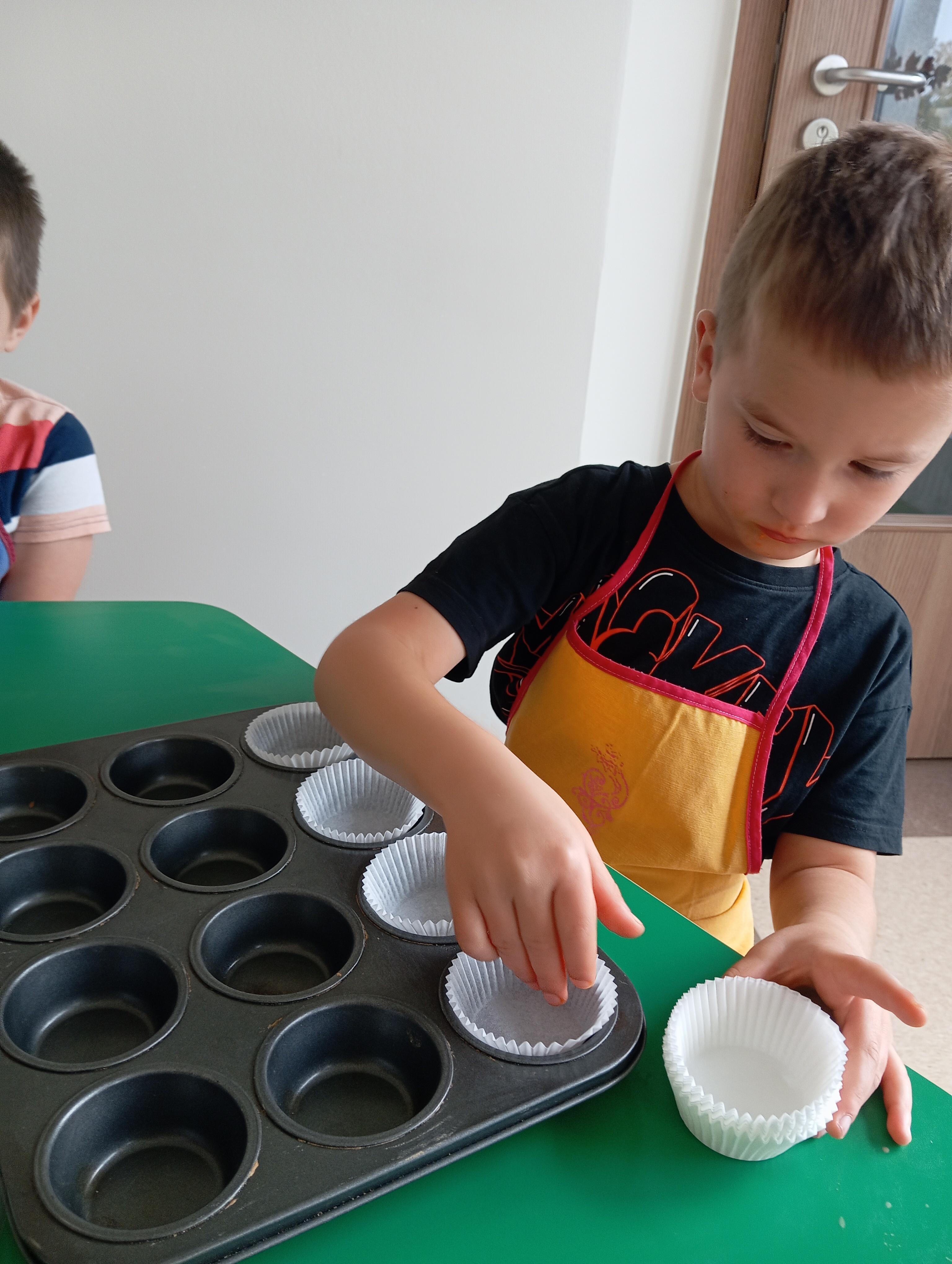 Z wielkim zaangażowaniem, krok po kroku przygotowali przepyszne babeczki:)
