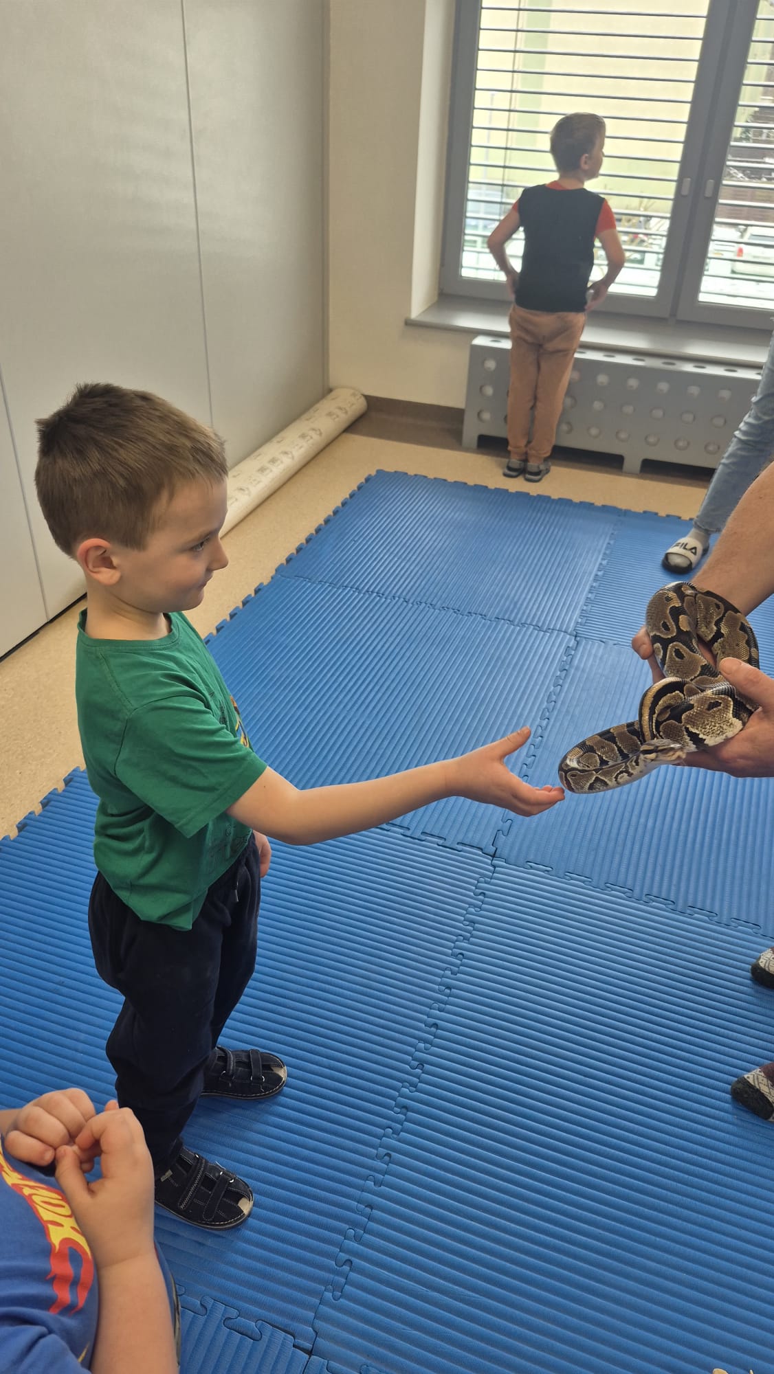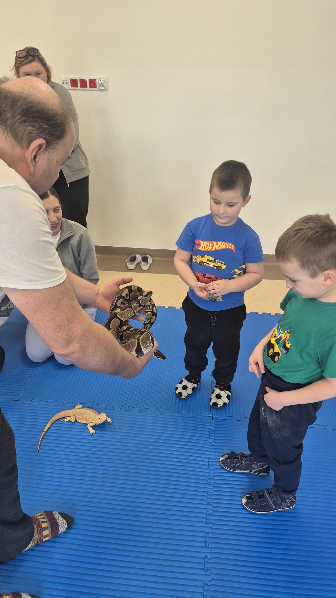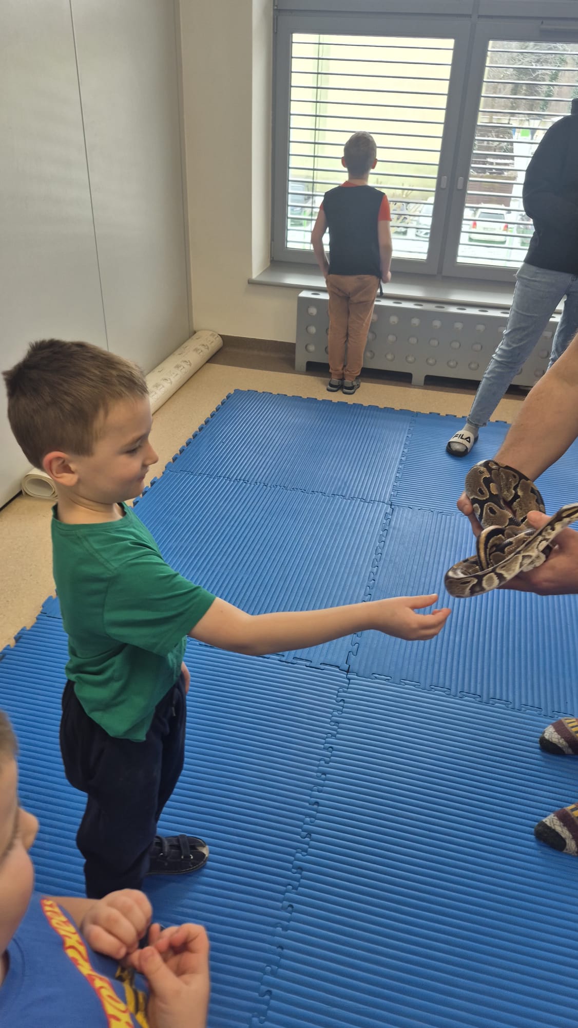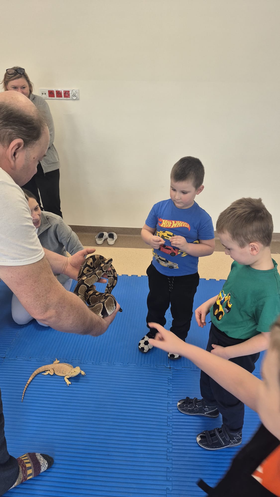 Niesamowite wrażenia czekały dziś na nas w przedszkolu - mogliśmy z bliska zobaczyć i dotknąć węża, jaszczurkę, żółwia i królika. Wszystko za sprawą wizyty naszego gościa - dr Zbigniewa Zawady, który przybył do nas z pokazem tych niezwykłych zwierząt:)