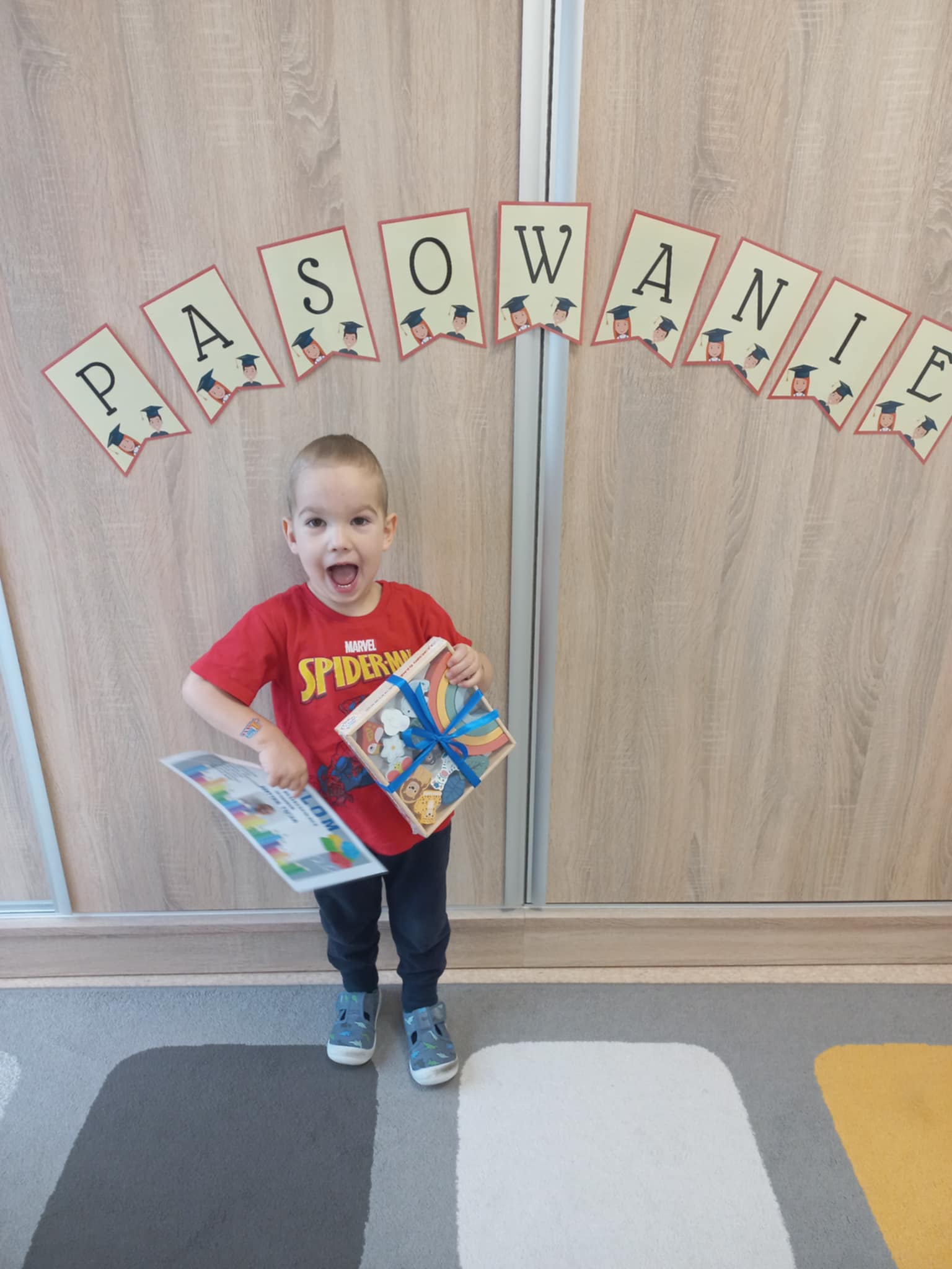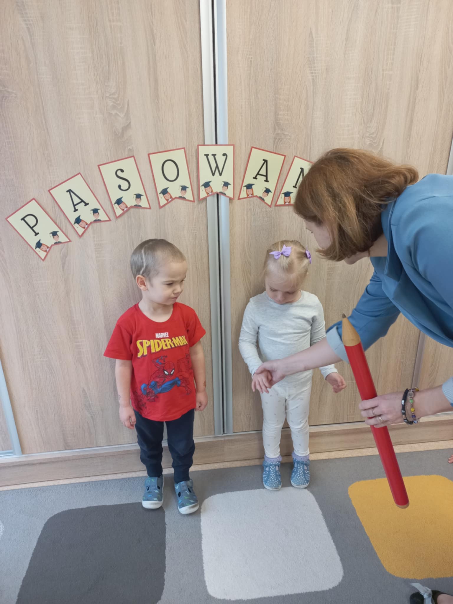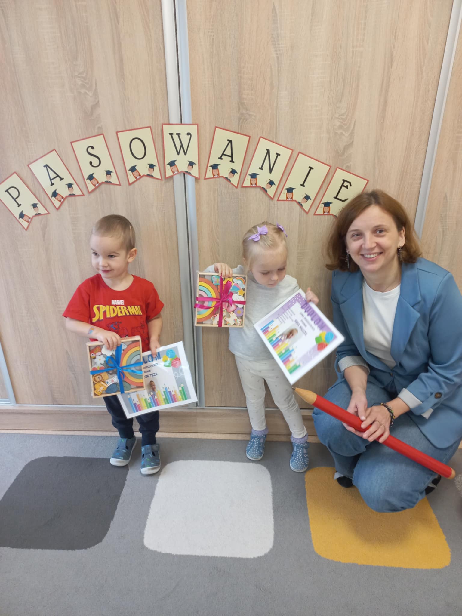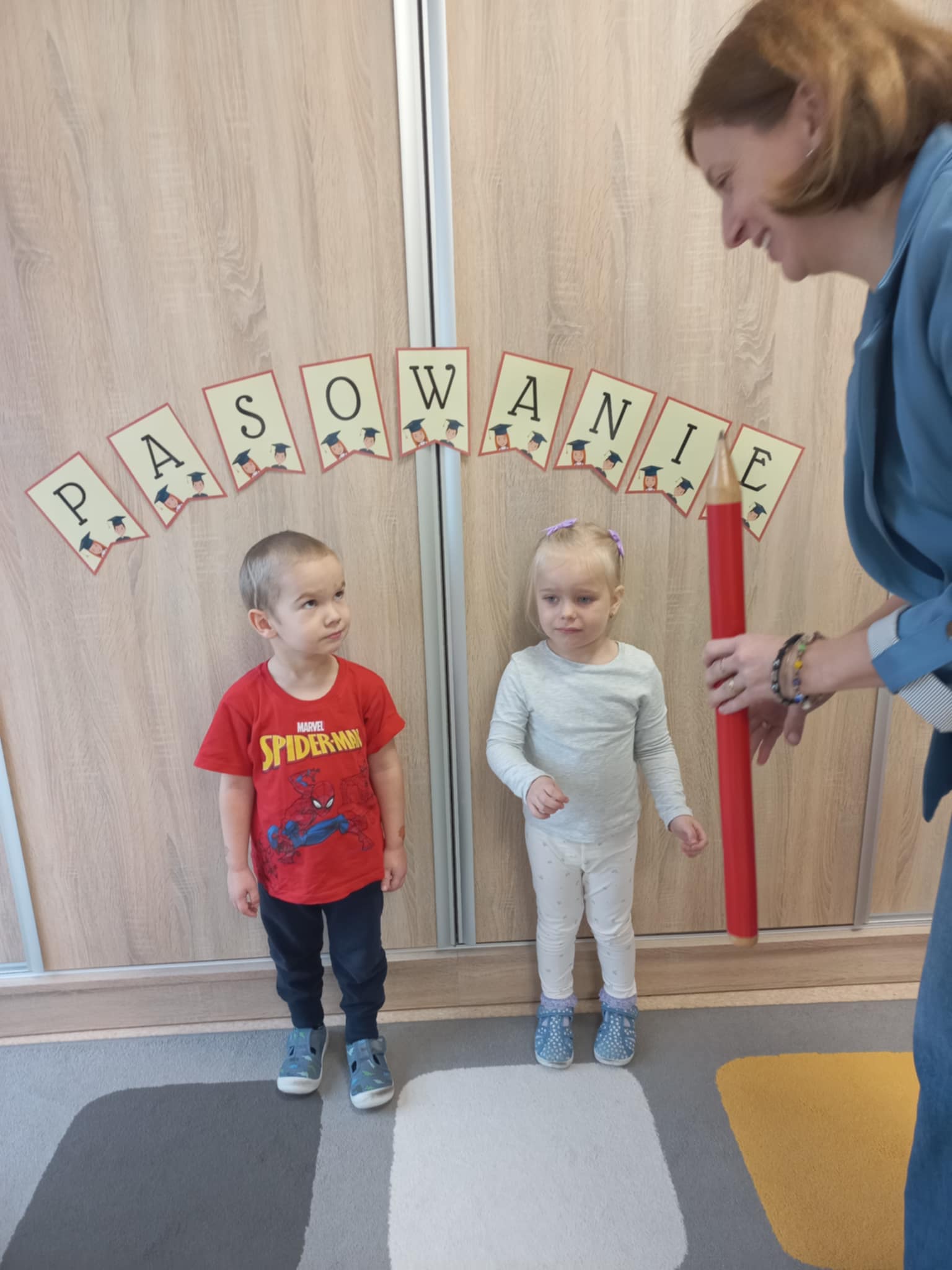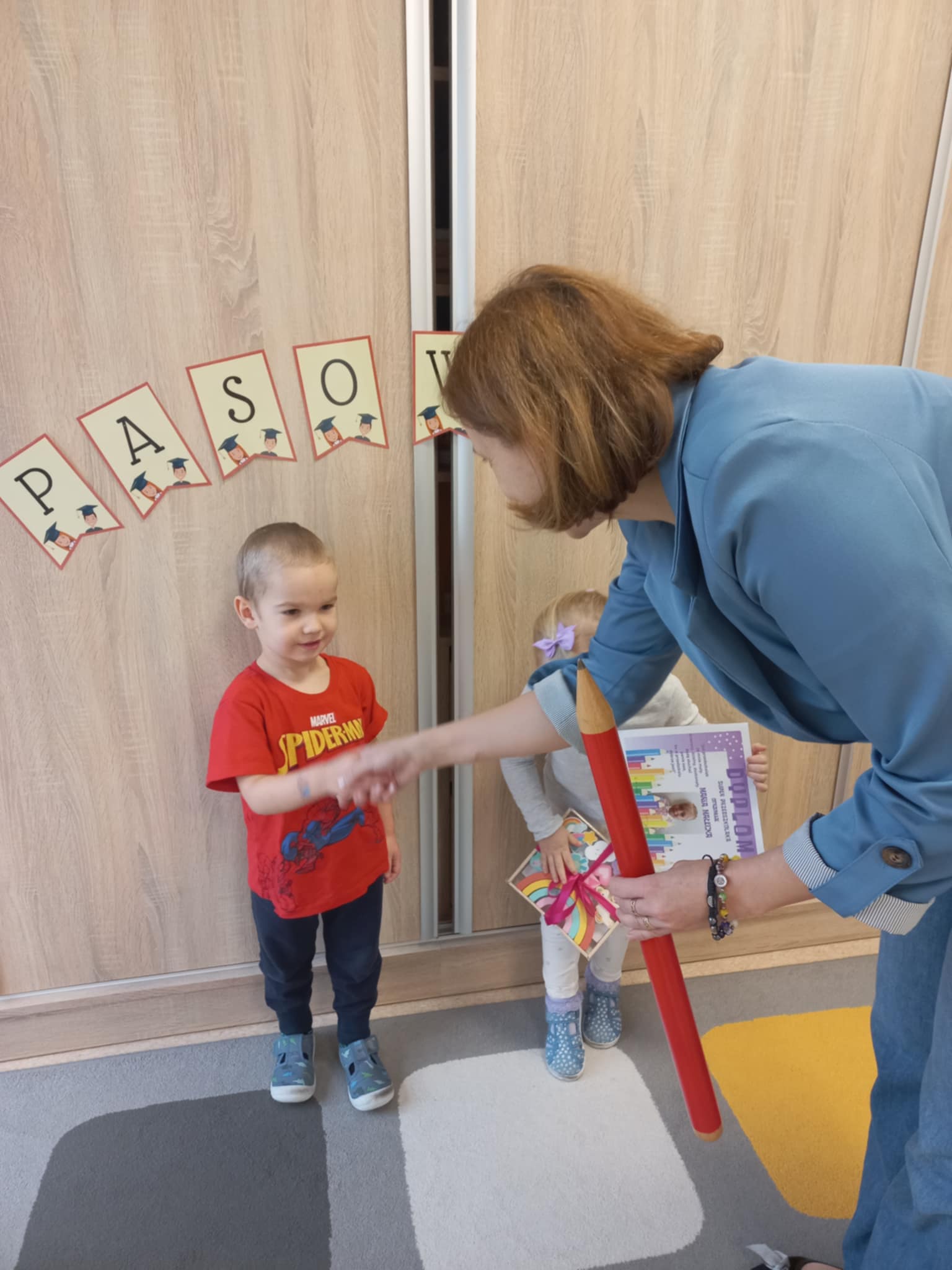 Dziś w naszej grupie odbyło się uroczyste pasowanie na przedszkolaka. To wyjątkowy dzień, ponieważ Antek i Marysia oficjalnie dołączyli do grona przedszkolaków! W uroczystości uczestniczyła pani dyrektor, która dokonała aktu pasowania i pogratulowała dzieciom tego ważnego wydarzenia. To był pełen emocji, radości i wzruszeń dzień – pierwszy tak ważny krok w przedszkolnej przygodzie Antka i Marysi.