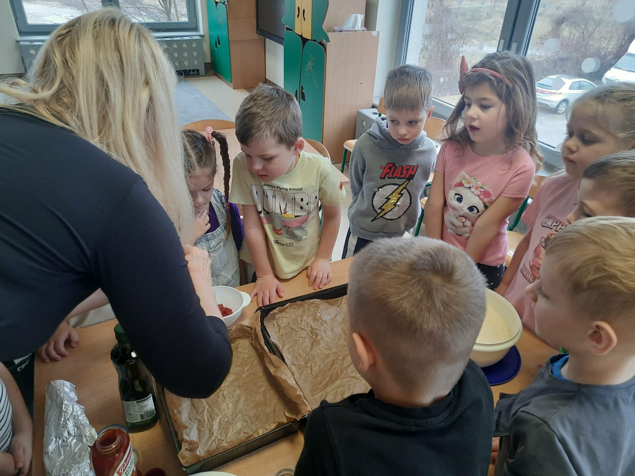 9 lutego obchodzimy Międzynarodowy Dzień Pizzy i w związku z tym przyrządziliśmy własną pizzę w przedszkolu. Było pysznie!