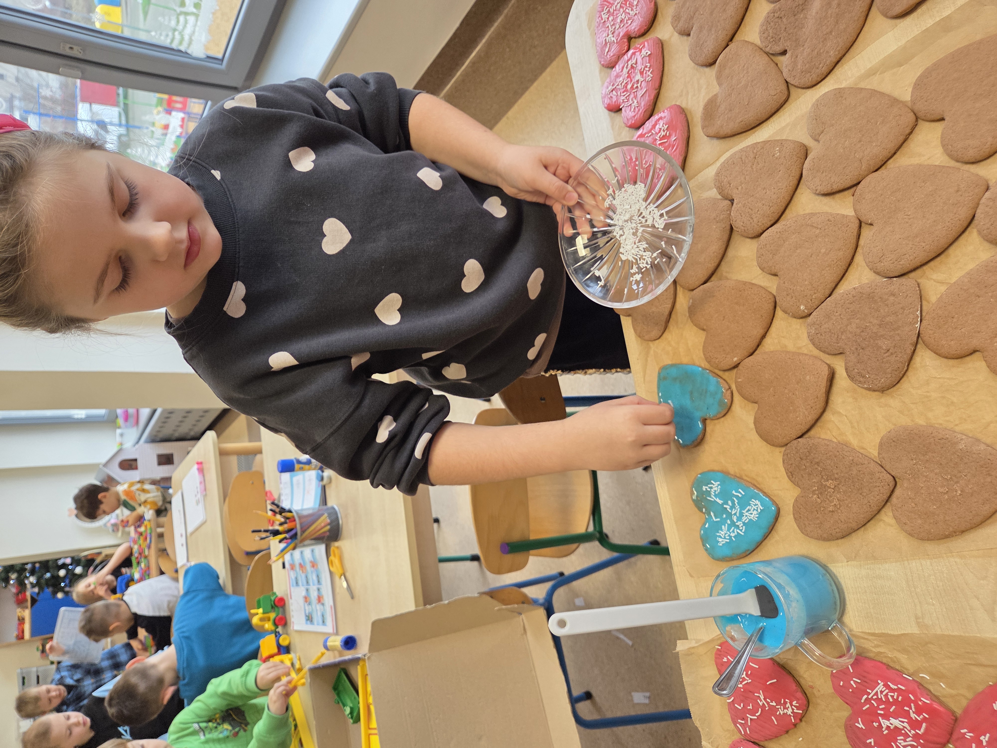 W naszej grupie odbyły się wyjątkowo pachnące i radosne zajęcia - pieczenie i ozdabianie świątecznych pierników. Dzieci z wielkim entuzjazmem uczesniczyły w przygotowaniach, a w sali unosił się zapach cynamonu, goździków. Każde dziecko miało okazję wykrawać i zdobić pierniczki. Radości było co niemiara!