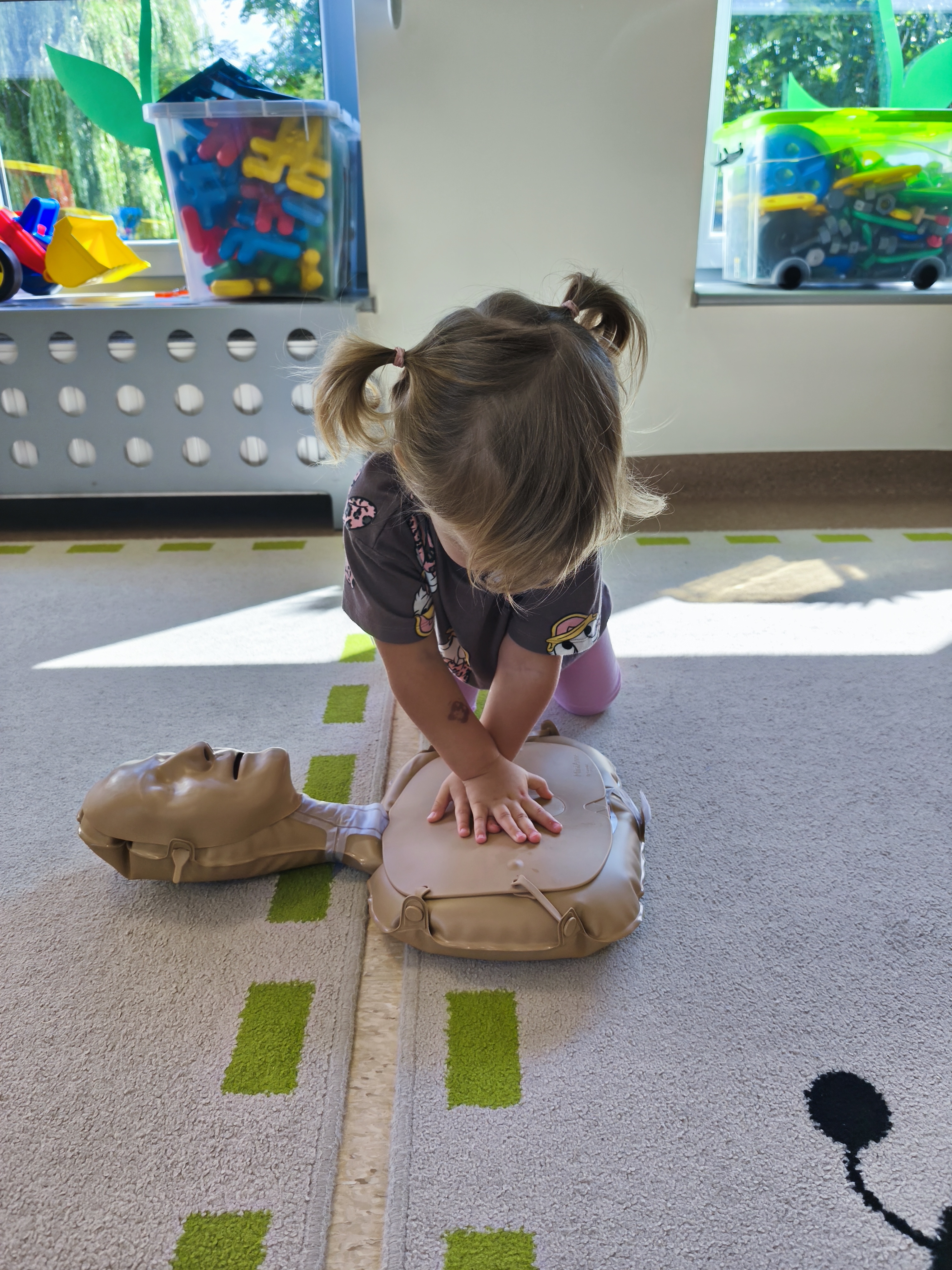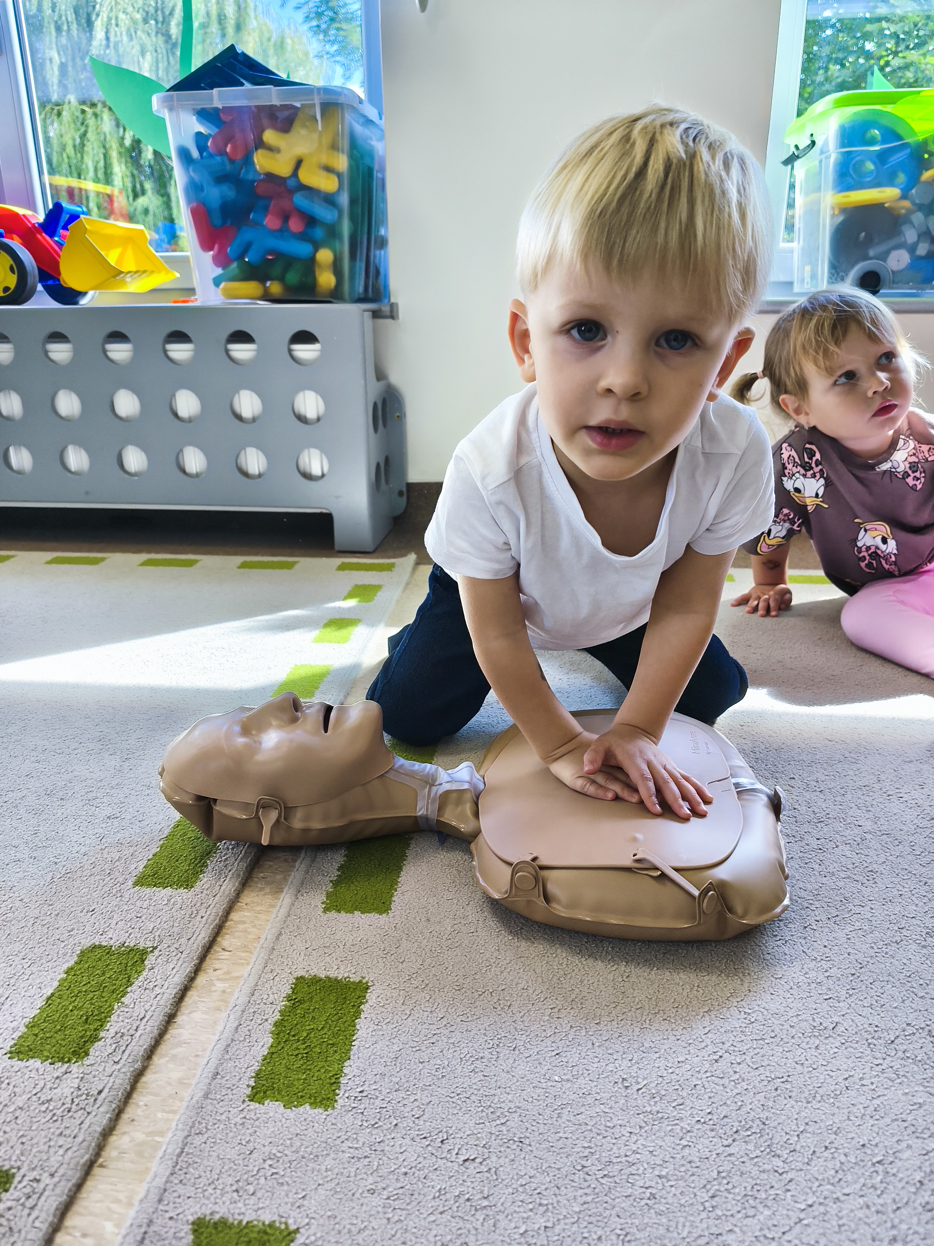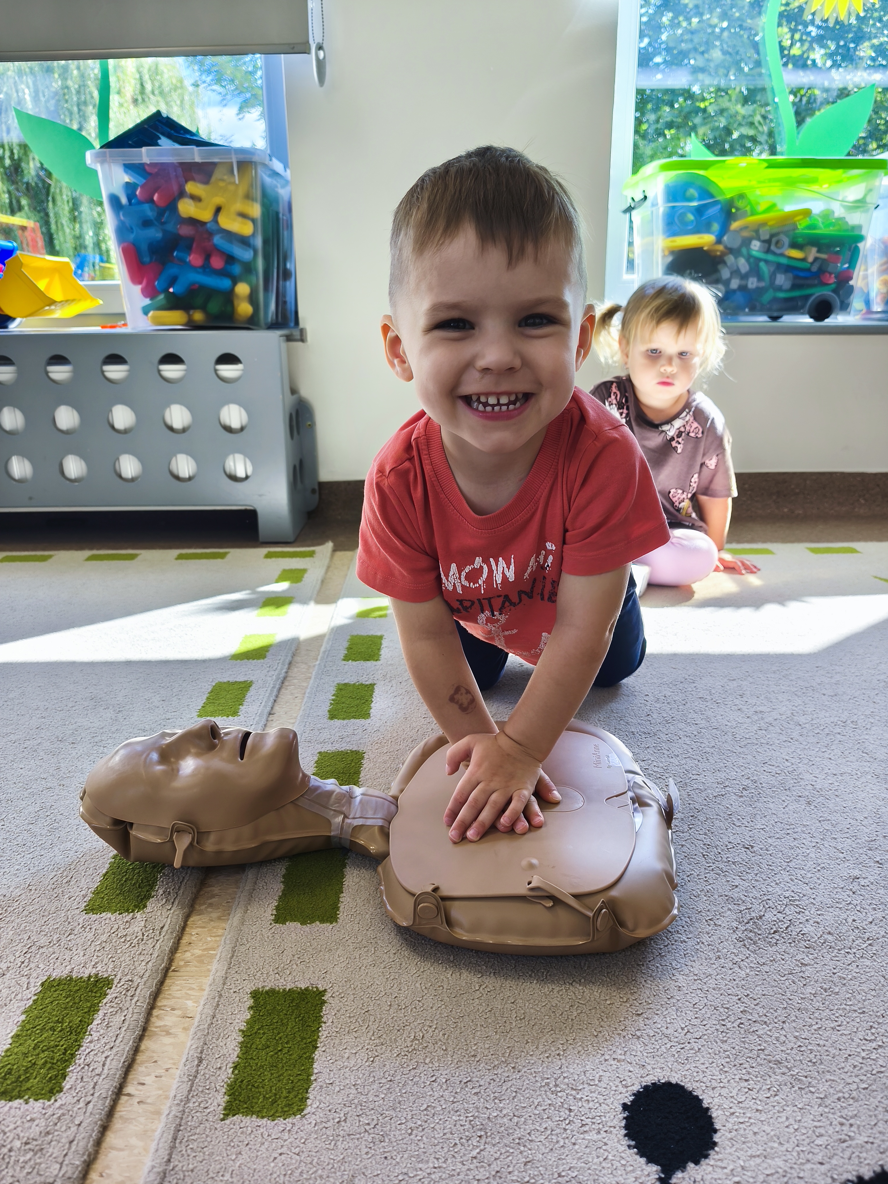 13 września obchodzimy Dzień Pierwszej Pomocy. W piątek - 12 września, dzieci z grupy Borowiki po raz pierwszy wkroczyły w świat pierwszej pomocy. Co odważniejsi spróbowali wykonać resyscytację. Dalsza wiedza i nawyki ratujące życie będą zdobywane podczas cykliczych spotkań związanych z udzielaniem pierwszej pomocy.