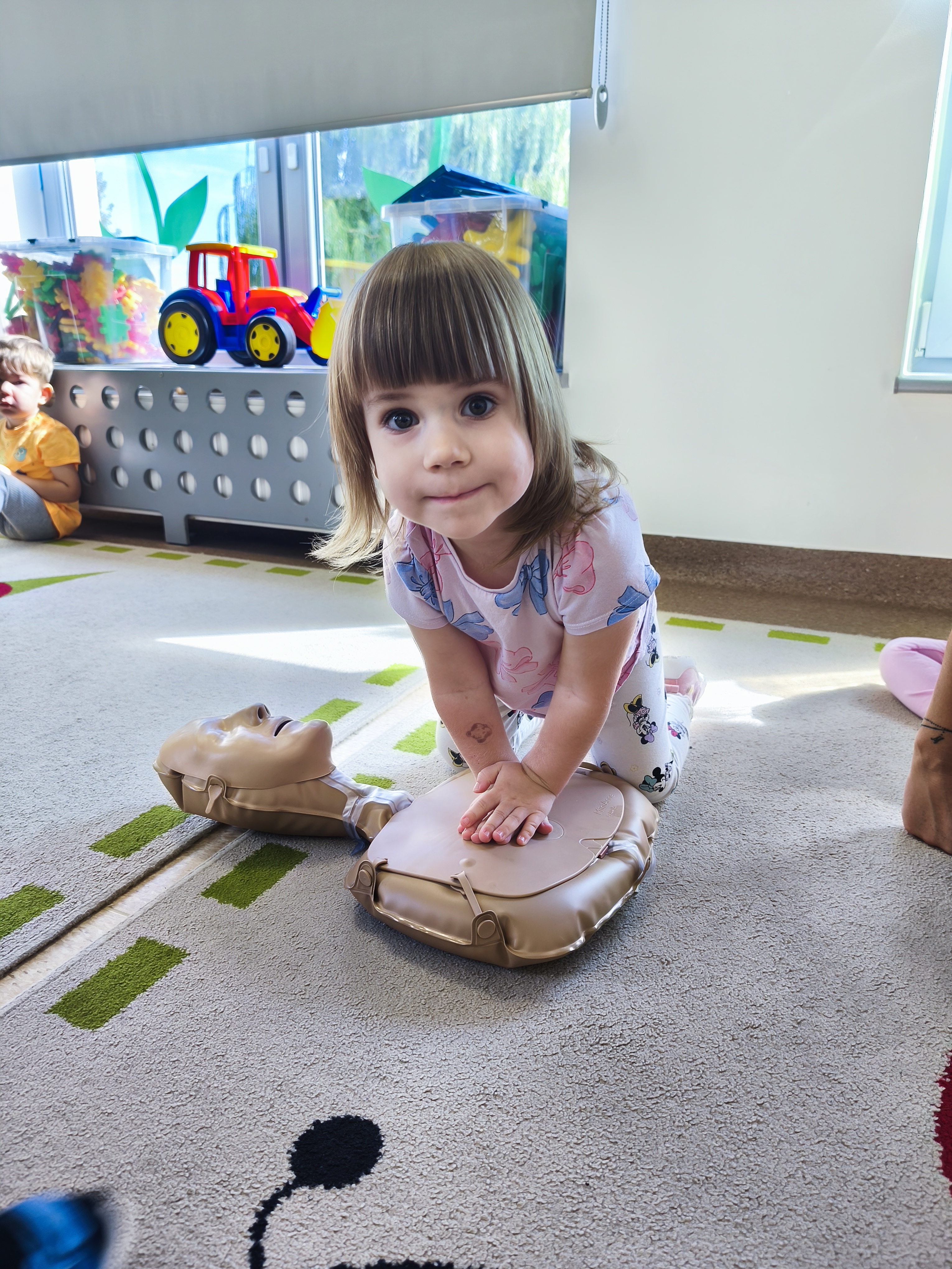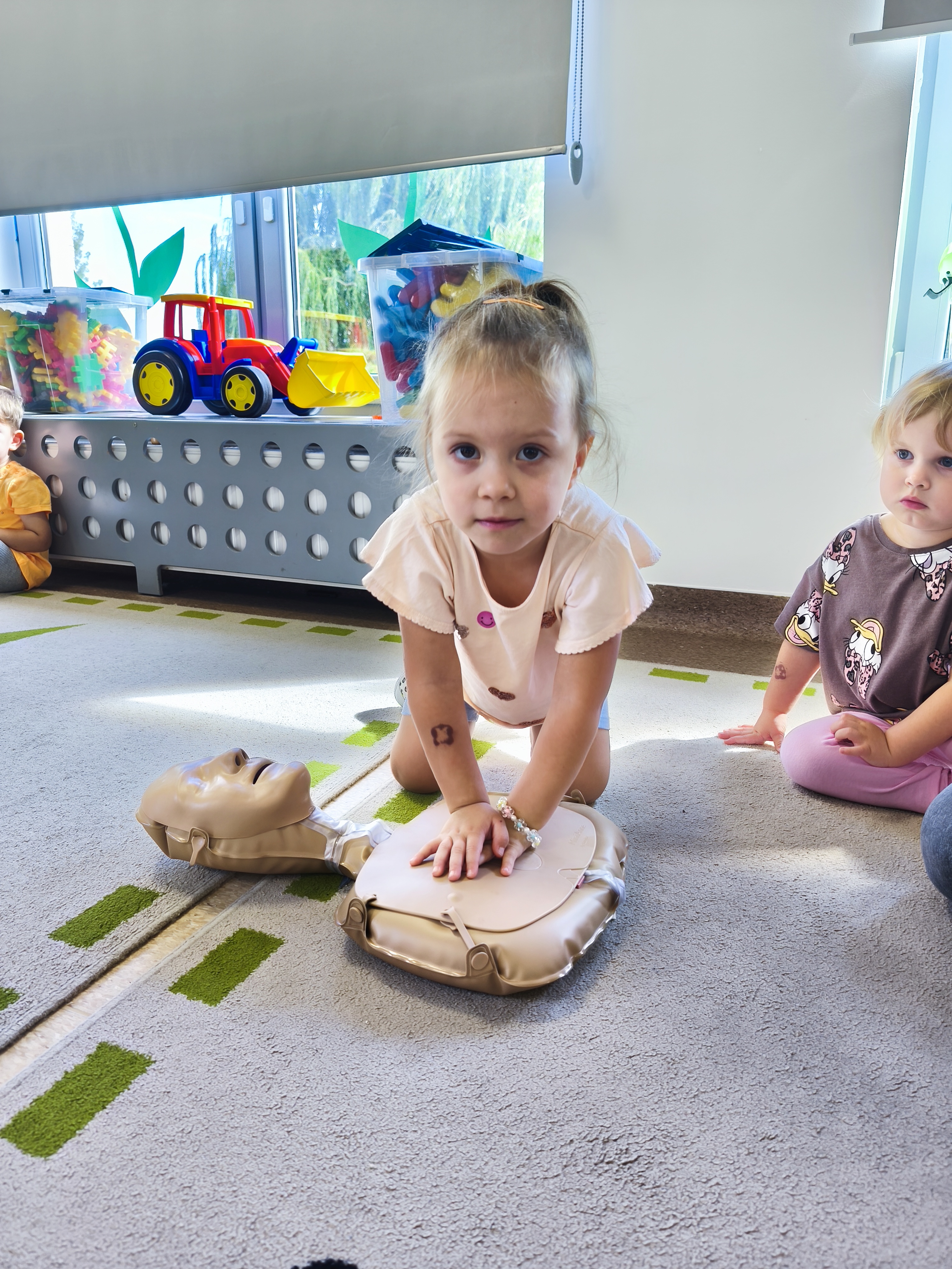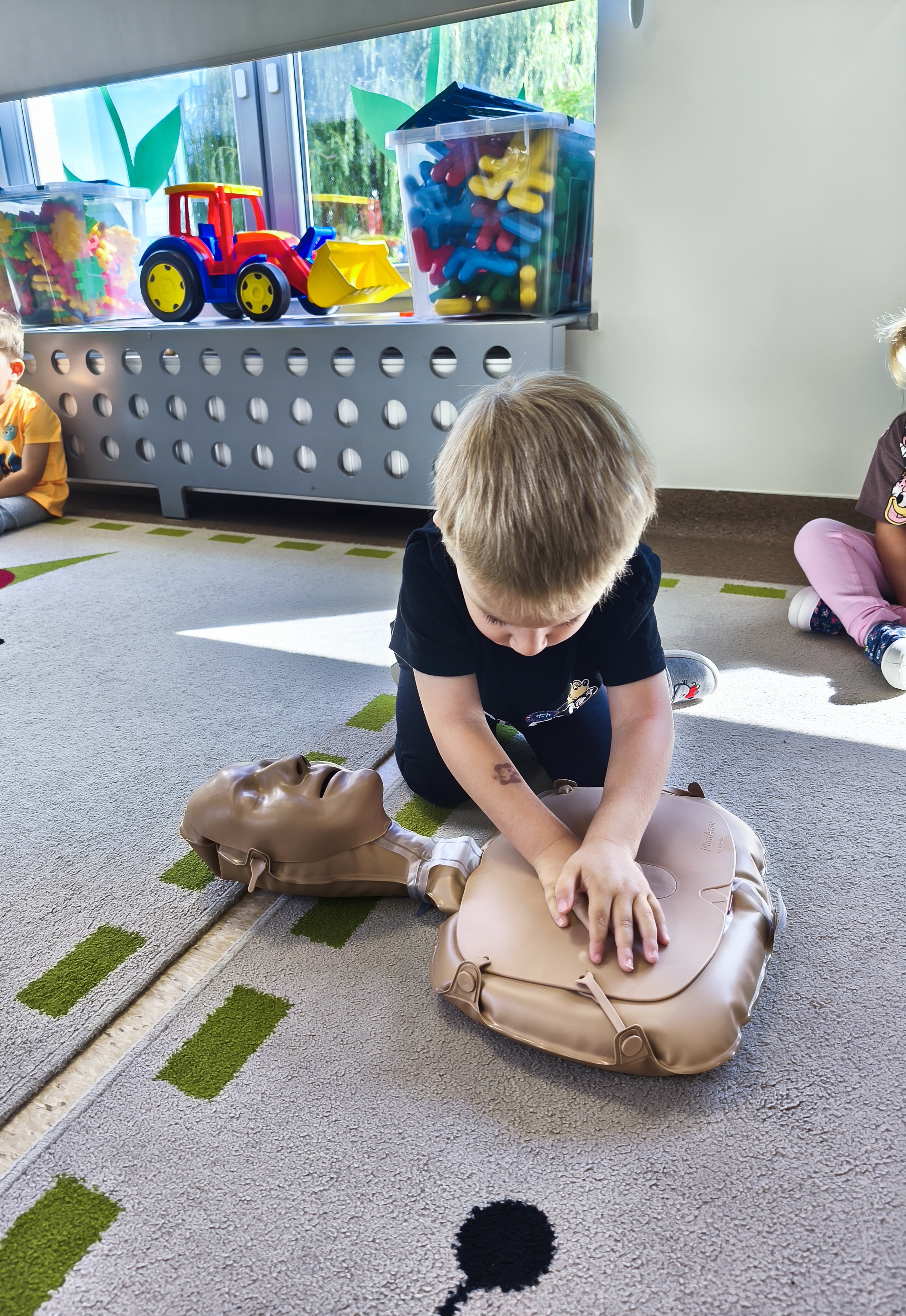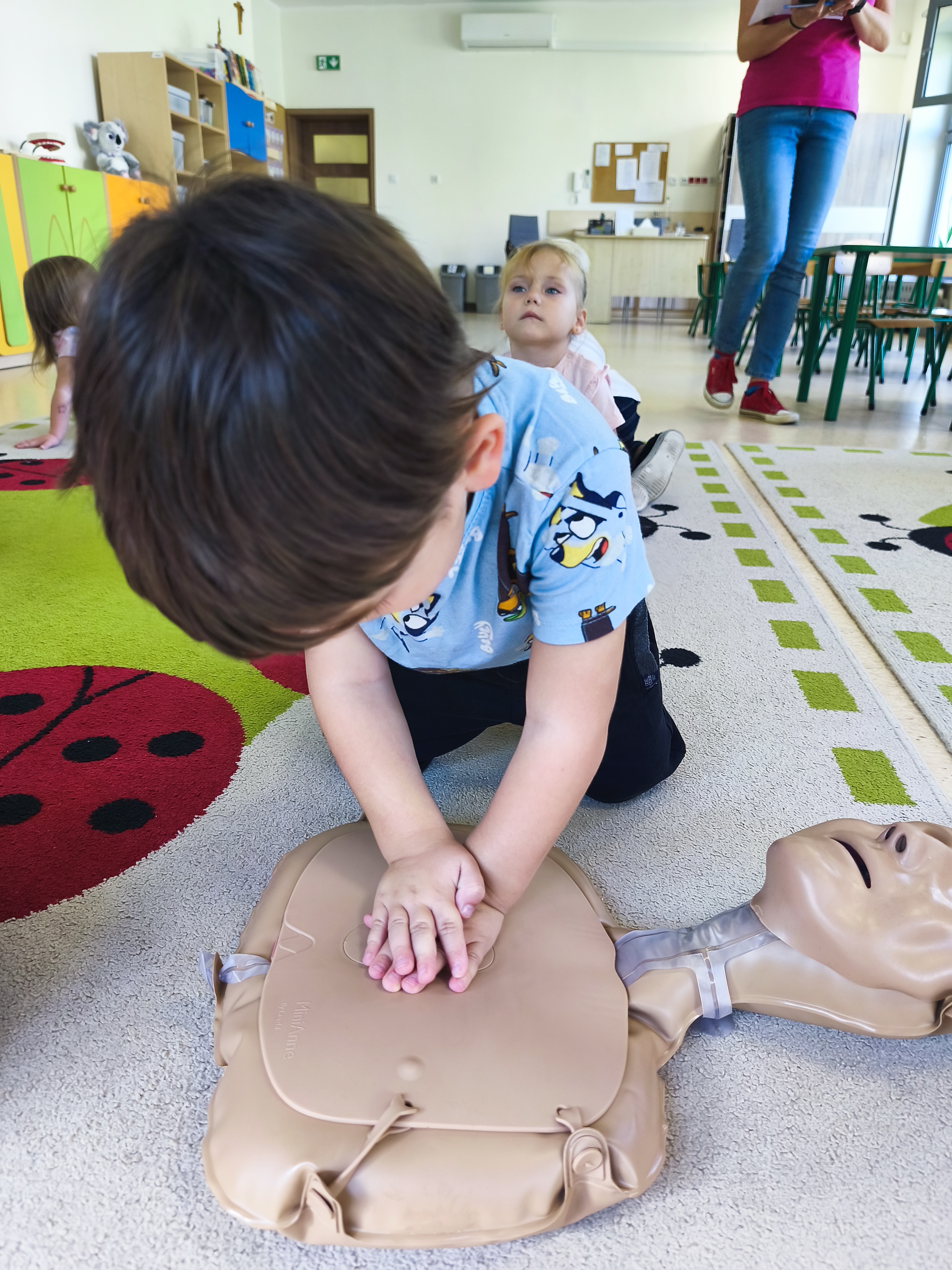 13 września obchodzimy Dzień Pierwszej Pomocy. W piątek - 12 września, dzieci z grupy Borowiki po raz pierwszy wkroczyły w świat pierwszej pomocy. Co odważniejsi spróbowali wykonać resyscytację. Dalsza wiedza i nawyki ratujące życie będą zdobywane podczas cykliczych spotkań związanych z udzielaniem pierwszej pomocy.