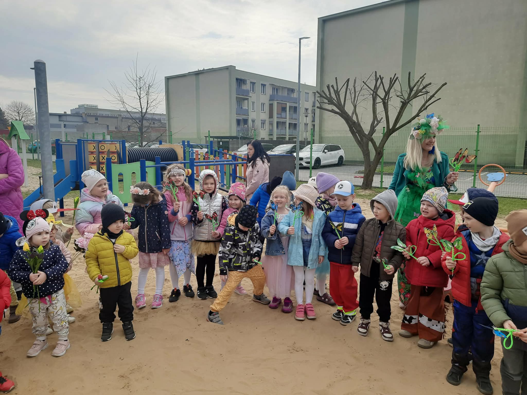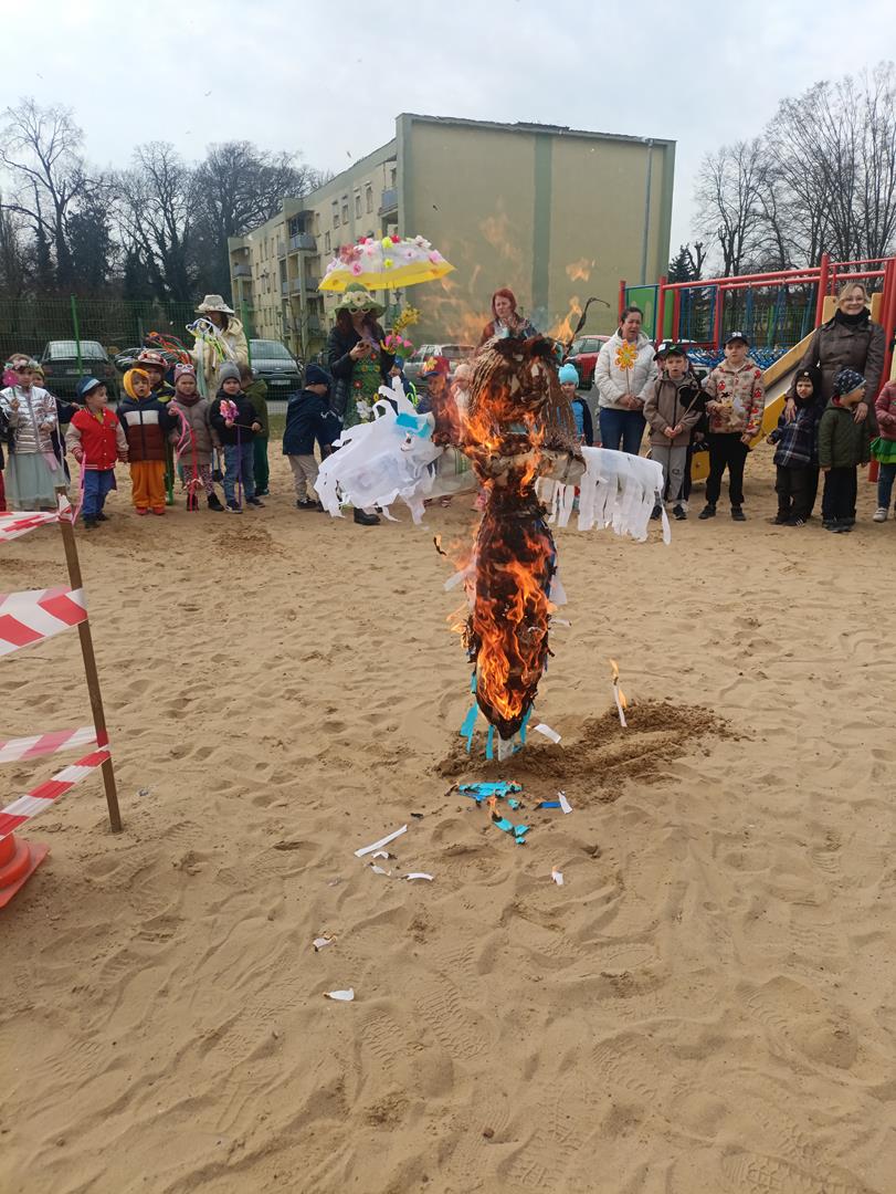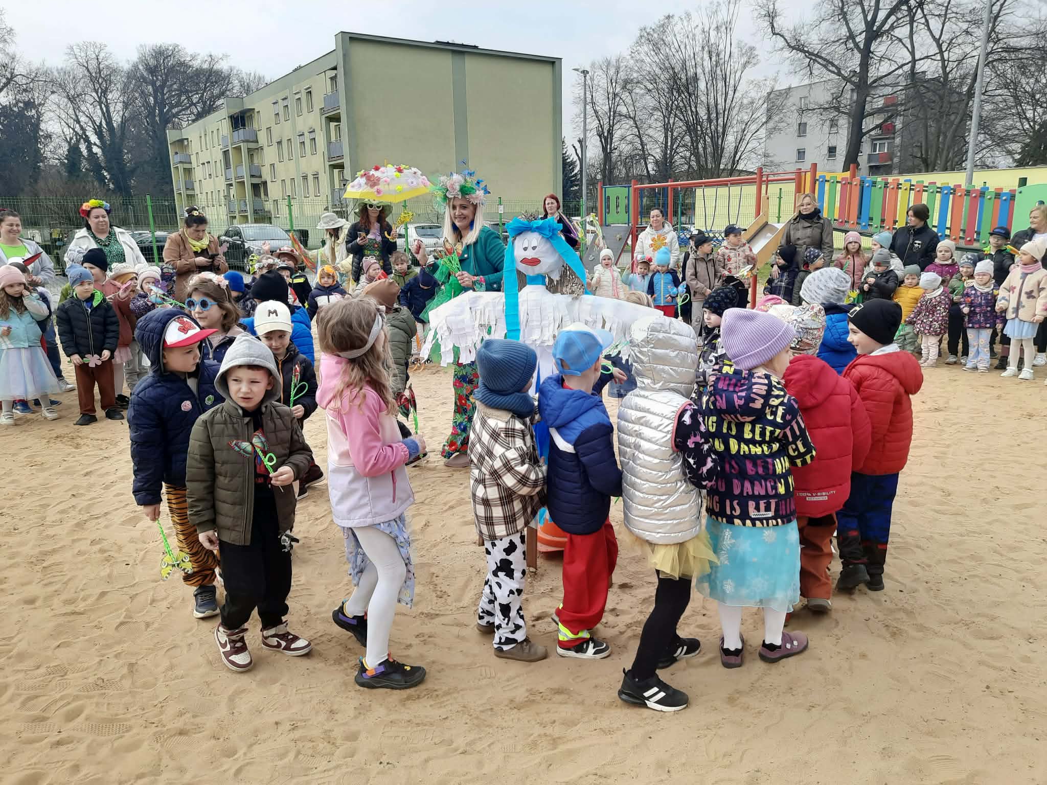 Świętowaliśmy w piątek Pierwszy Dzień Wiosny - spotkaliśmy się wszyscy na przedszkolnym placu, żeby zgodnie z tradycją spalić Marzannę i przegonić zimę! Następnie uczestniczyliśmy w pochodzie dookoła przedszkola, podczas którego radośnie witaliśmy wiosnę :)
