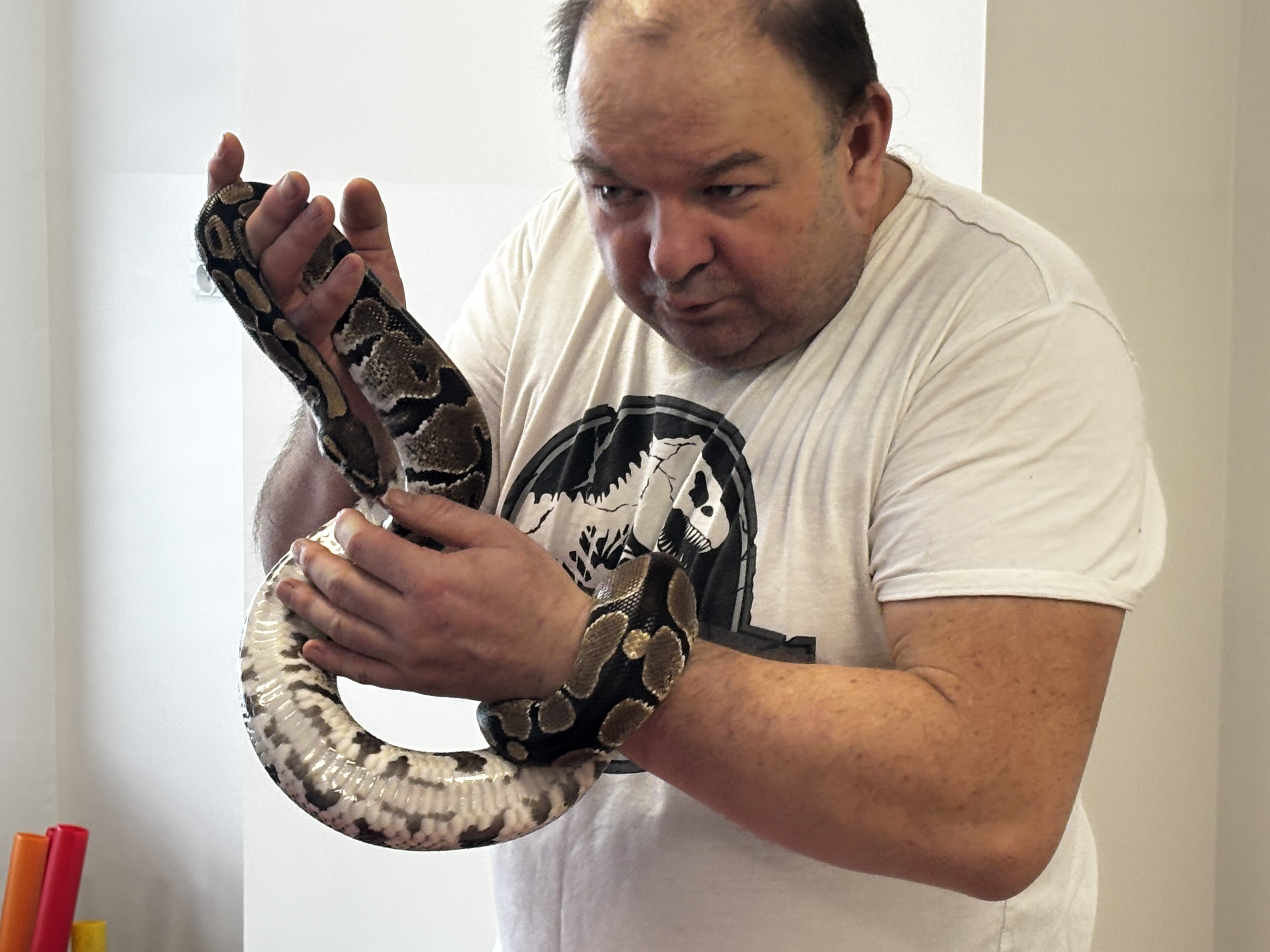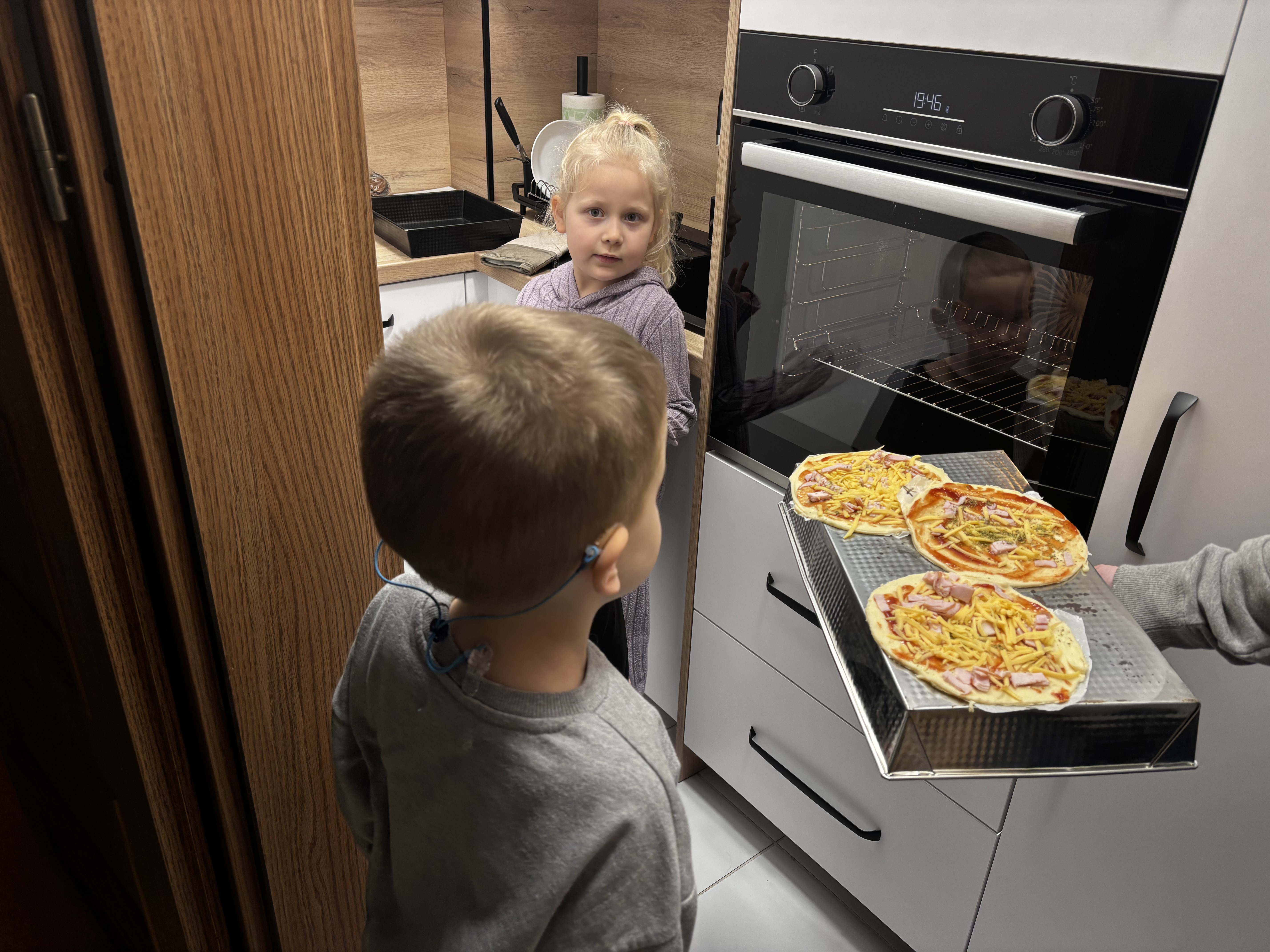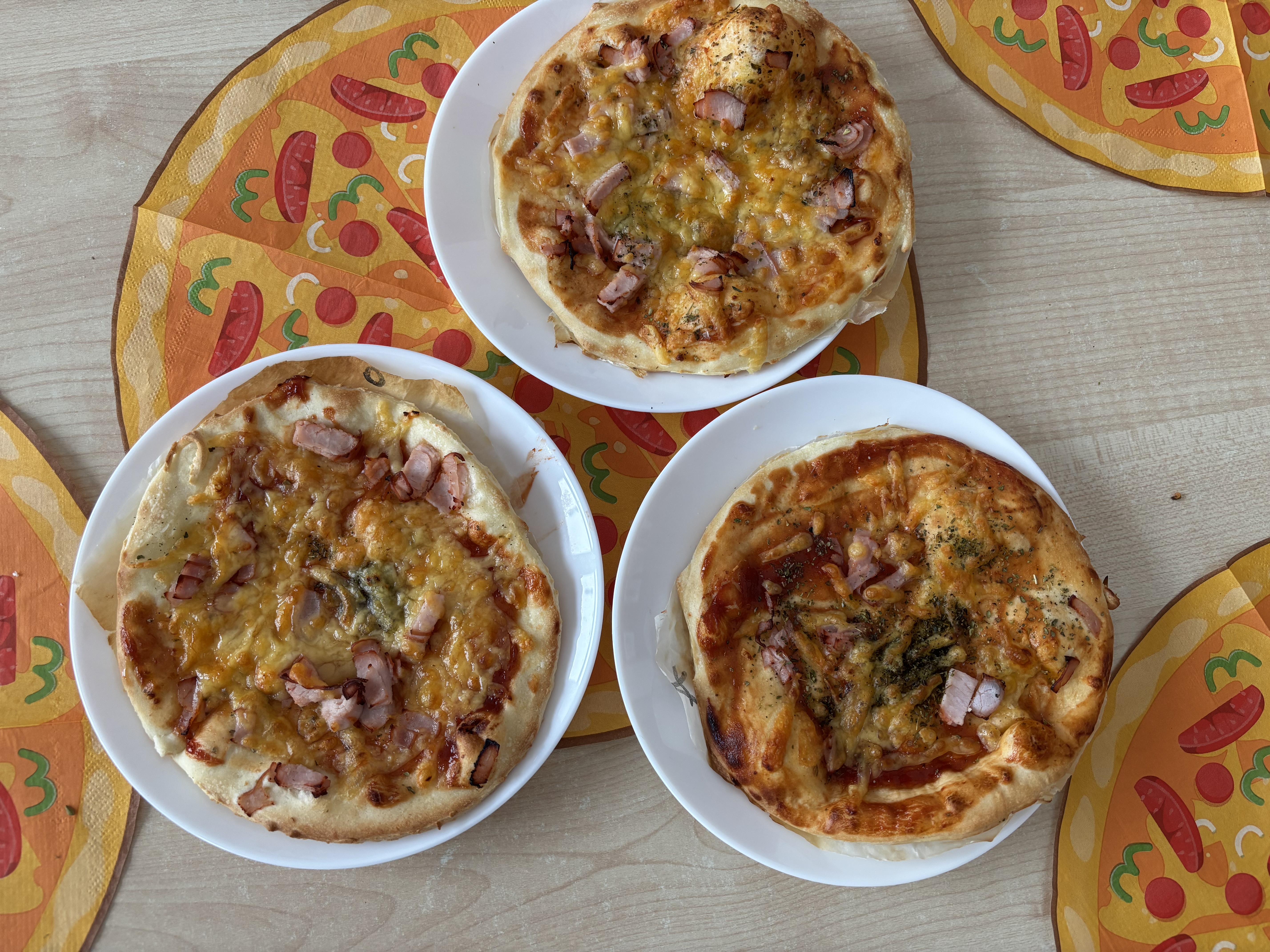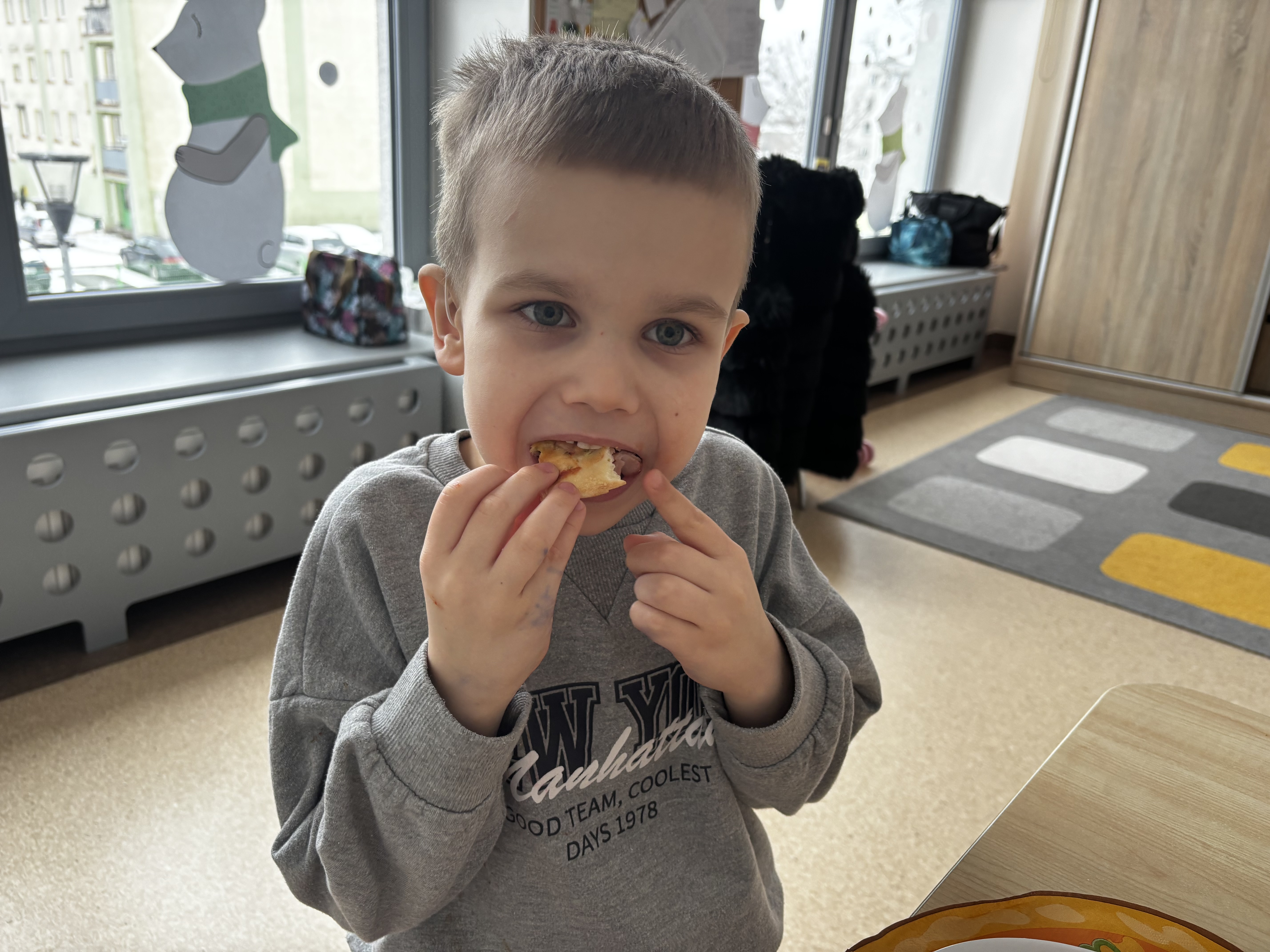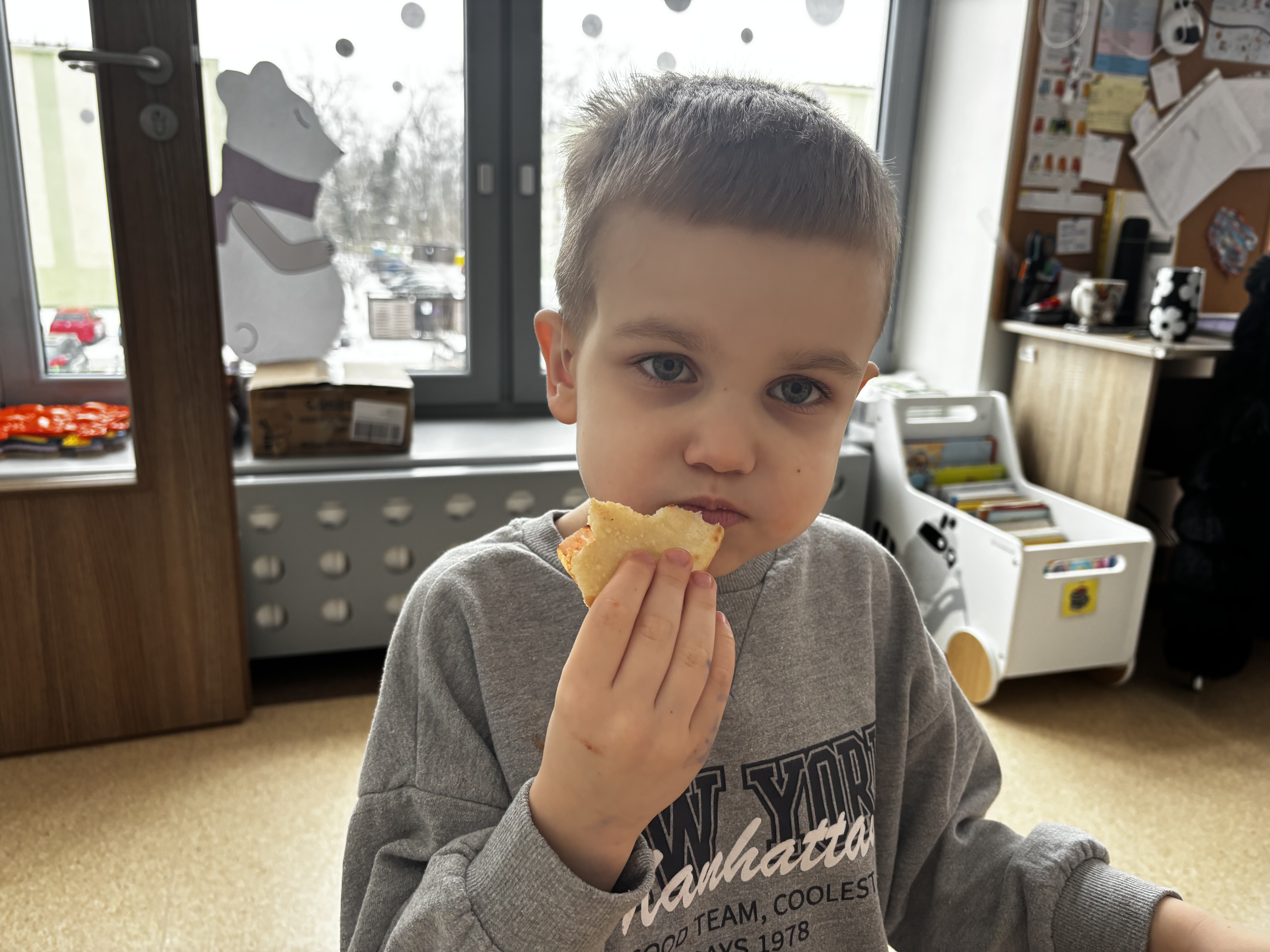 Dzień Pizzy był połączony ze spotkaniem z zoologiem oraz egzotycznymi zwierzętami. Dzieci uczestniczyły w wielozmysłowych aktywnościach – dotykały i oglądały składniki pizzy, poznając ich kolory, faktury i zapachy. Następnie miały okazję zobaczyć z bliska jaszczurkę, żółwia, węża oraz królika. Największym zainteresowaniem cieszyły się wąż i jaszczurka. Dzieci z dużym zaciekawieniem obserwowały zwierzęta oraz podejmowały próby głaskania i bezpośredniego kontaktu, zdobywając nowe doświadczenia sensoryczne w atmosferze bezpieczeństwa i akceptacji.