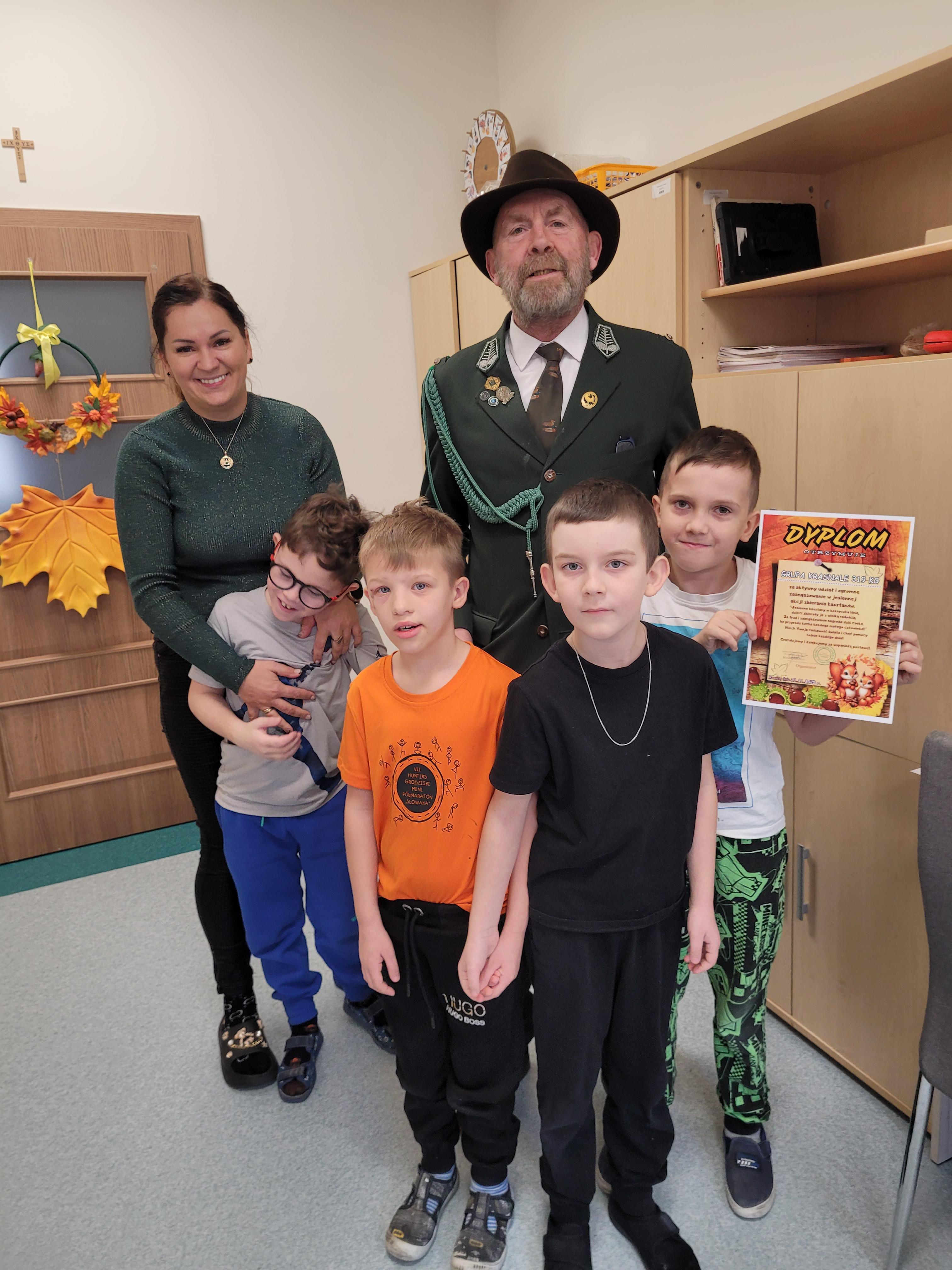 W dniu 21 października odwiedził nas Pan Łowczy z Polskiego Związku Nadleśnictwa, który wręczył nam dyplom za zajęcie 1 miejsca w zbiórce kasztanów.