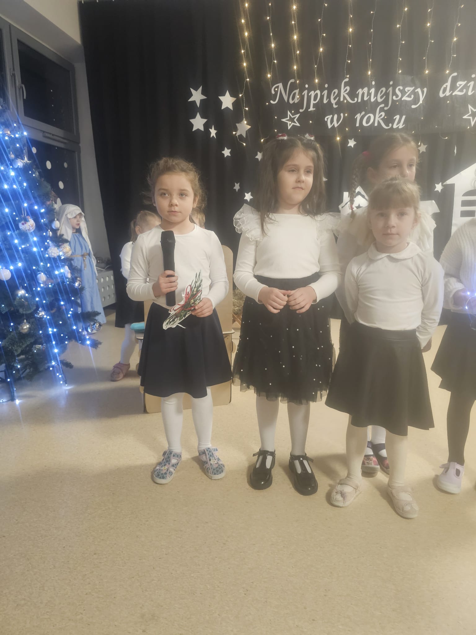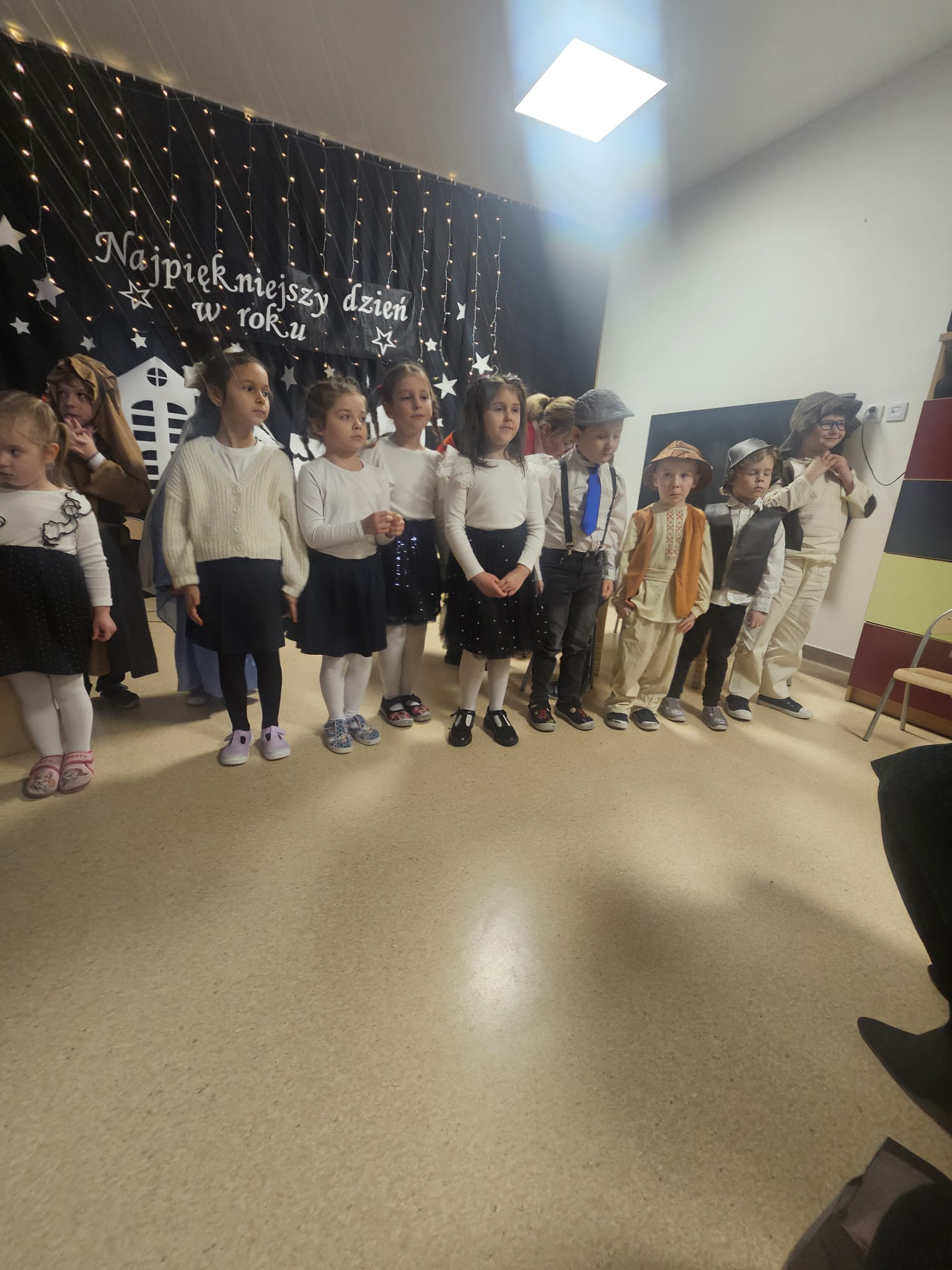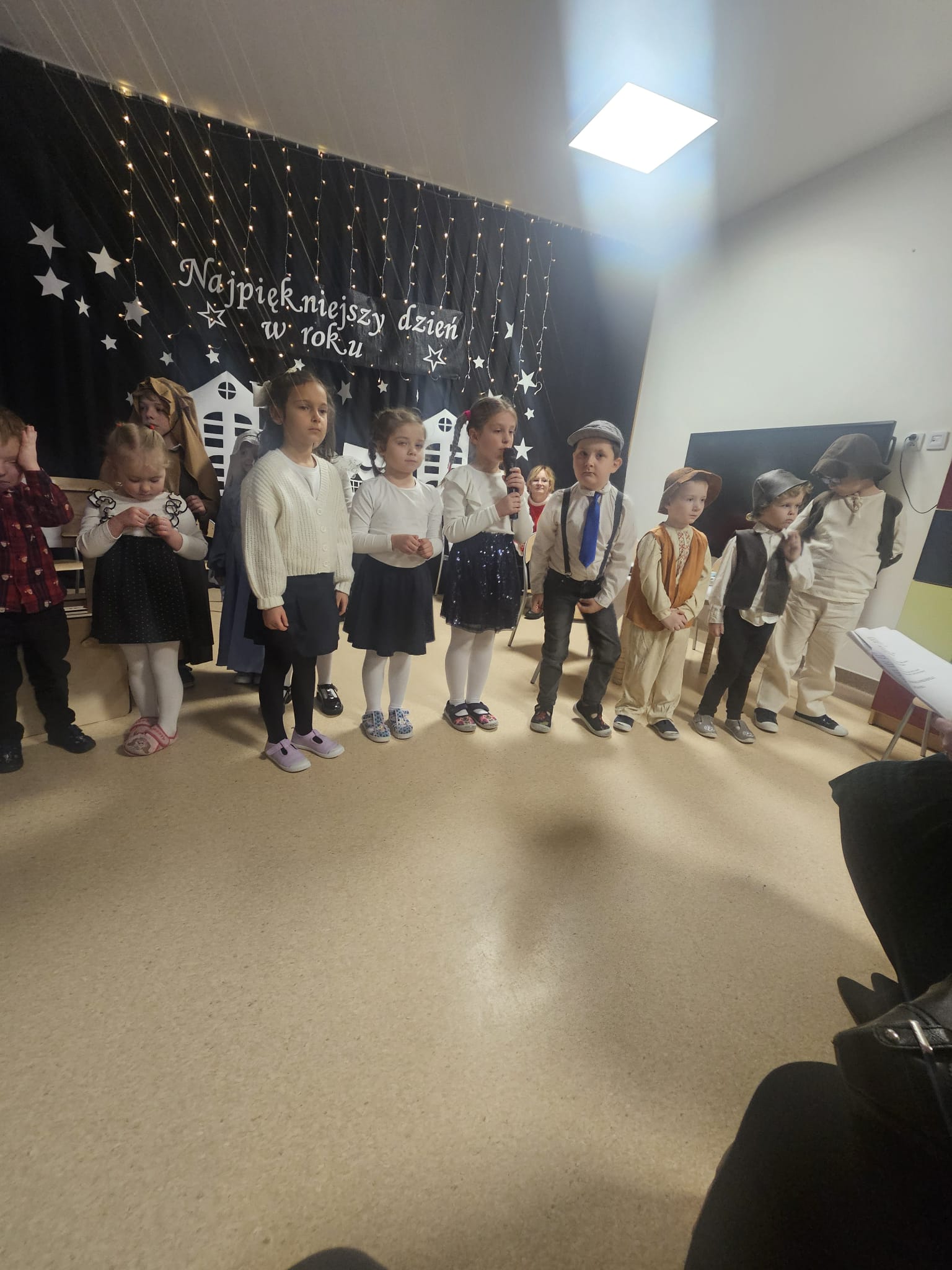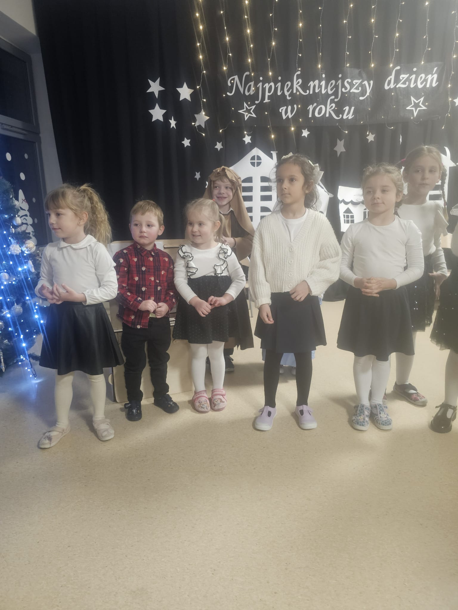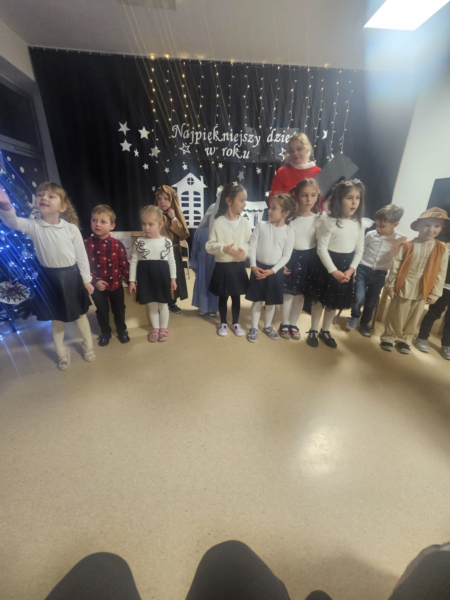 Na początku grudnia dzieci z grupy "Skrzaty" wystąpiły w przedstawieniu świątecznym "Najpiękniejszy dzień w roku" przygotowanym dla swoich rodziców. Dzieci wprowadziły wszystkich w atmosferę Świąt Bożego Narodzenia. Przedszkolaki z ogromną ekspresją i zaangażowaniem odgrywały powierzone role, śpiewały kolędy i pastorałki oraz wykonywały układ taneczno-ruchowy. Po części artystycznej, rodzice wzięli udział w warsztatach, na których wraz ze swoimi dziećmi piekli oraz ozdabiali pierniki. Spotkanie odbyło się w miłej i serdecznej atmosferze.