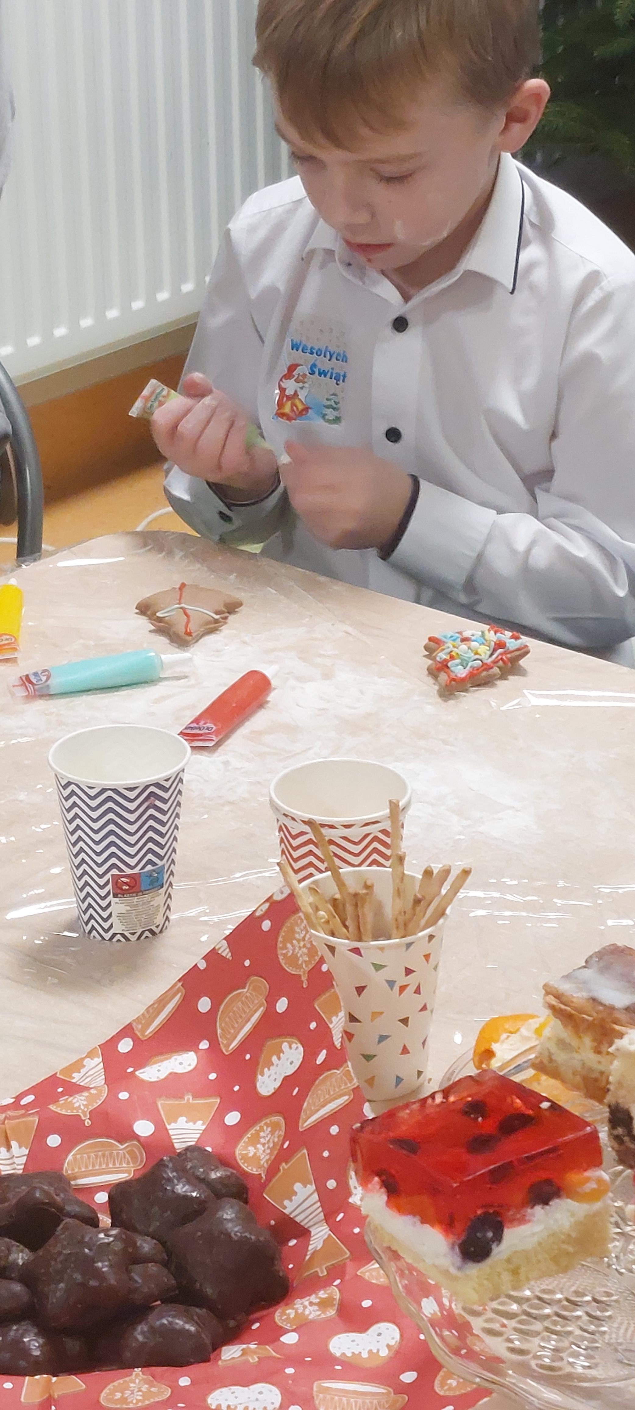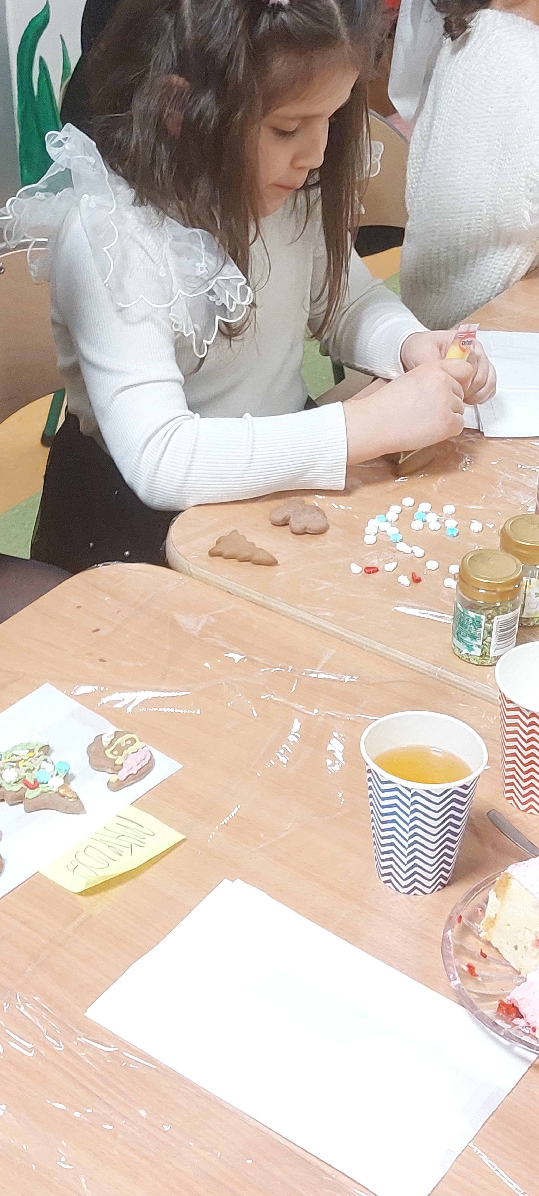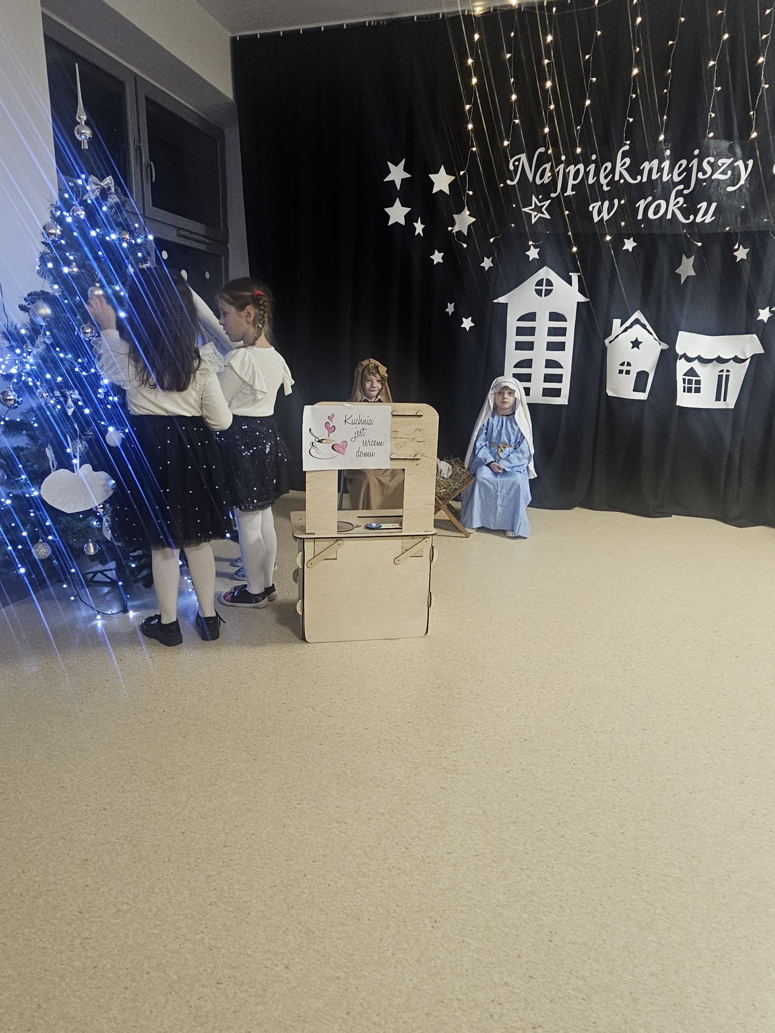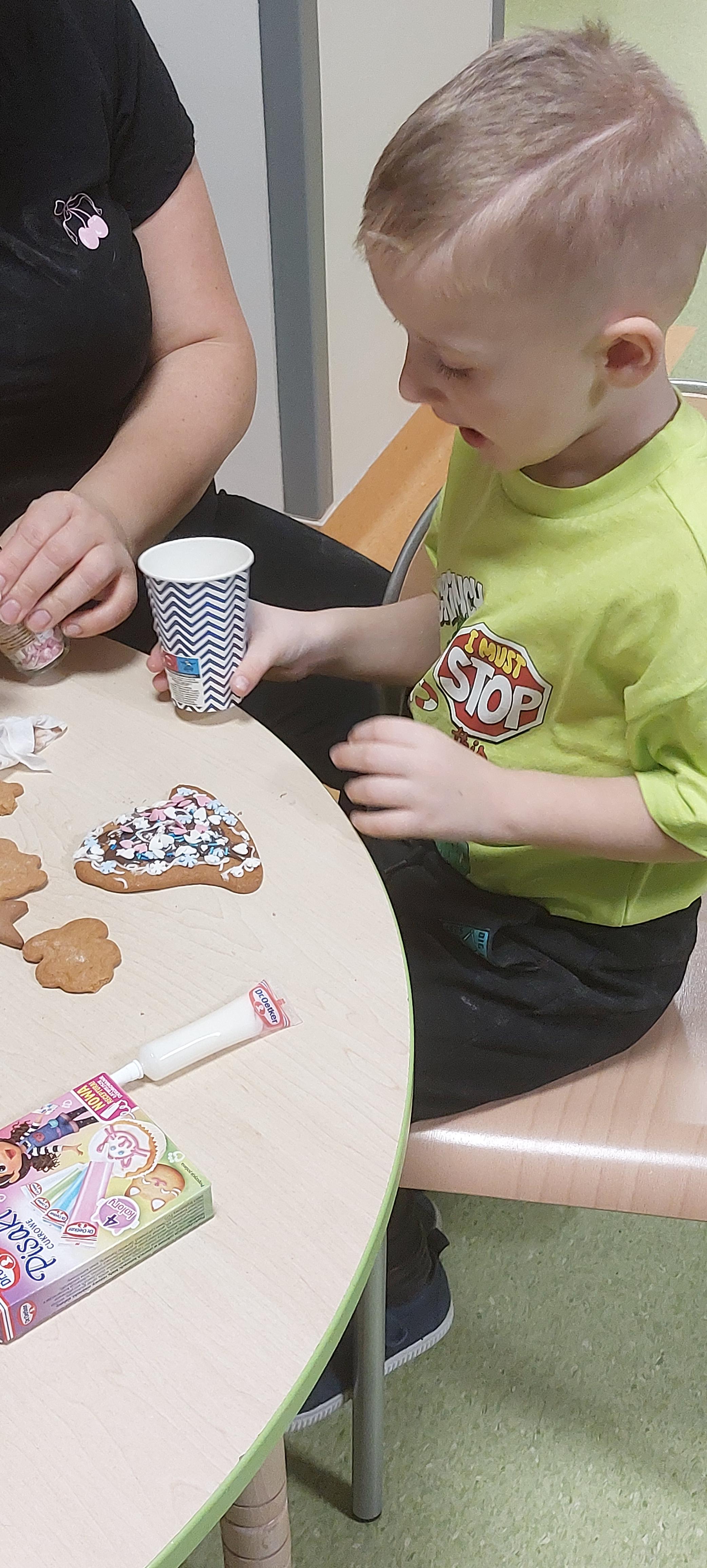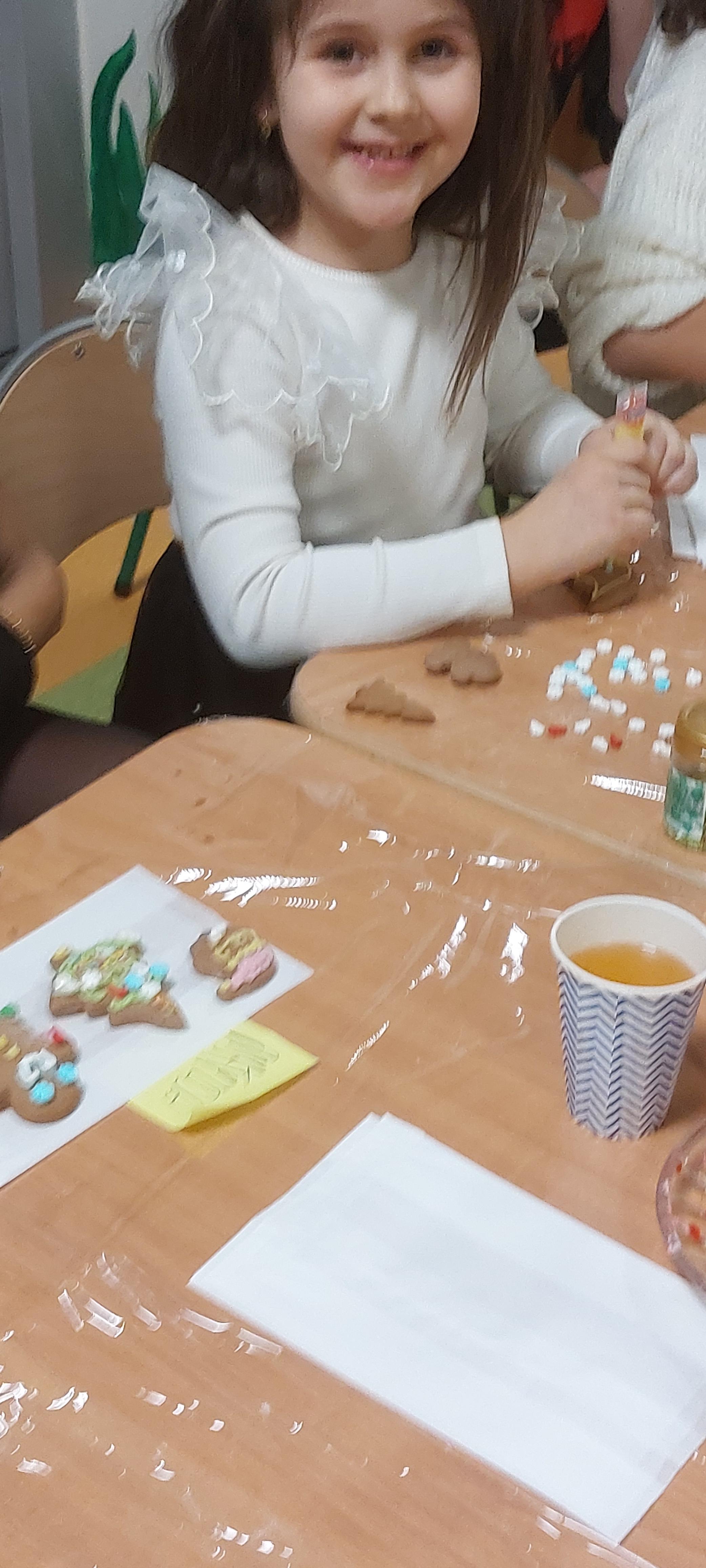 Na początku grudnia dzieci z grupy "Skrzaty" wystąpiły w przedstawieniu świątecznym "Najpiękniejszy dzień w roku" przygotowanym dla swoich rodziców. Dzieci wprowadziły wszystkich w atmosferę Świąt Bożego Narodzenia. Przedszkolaki z ogromną ekspresją i zaangażowaniem odgrywały powierzone role, śpiewały kolędy i pastorałki oraz wykonywały układ taneczno-ruchowy. Po części artystycznej, rodzice wzięli udział w warsztatach, na których wraz ze swoimi dziećmi piekli oraz ozdabiali pierniki. Spotkanie odbyło się w miłej i serdecznej atmosferze.