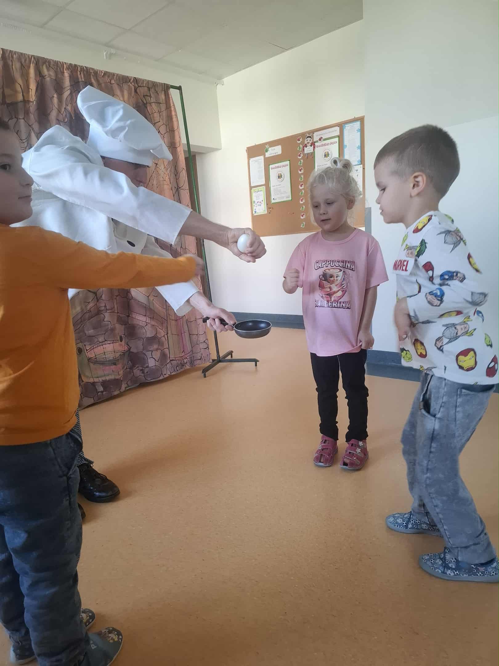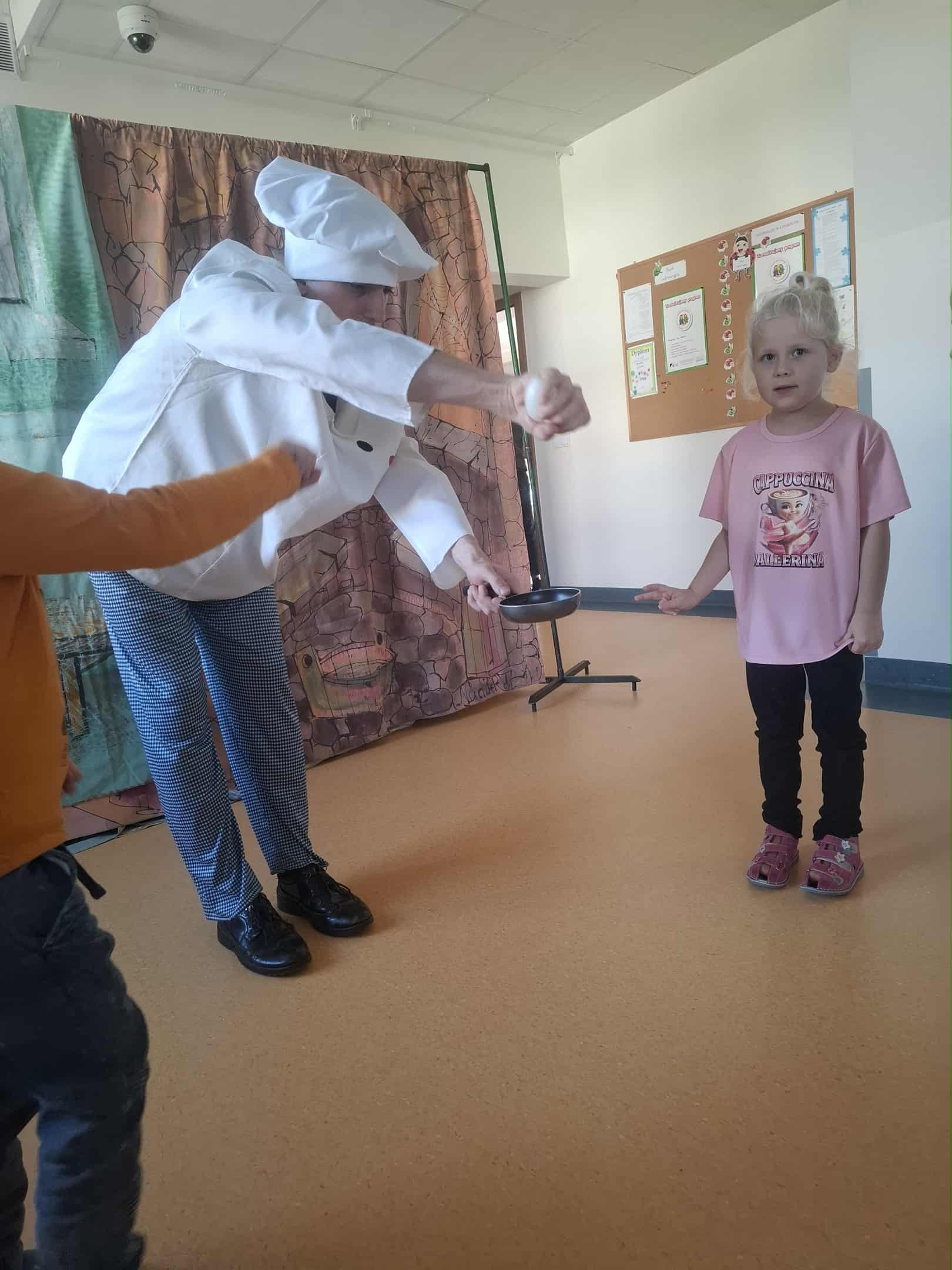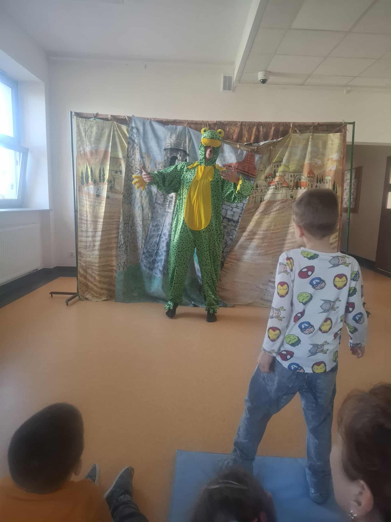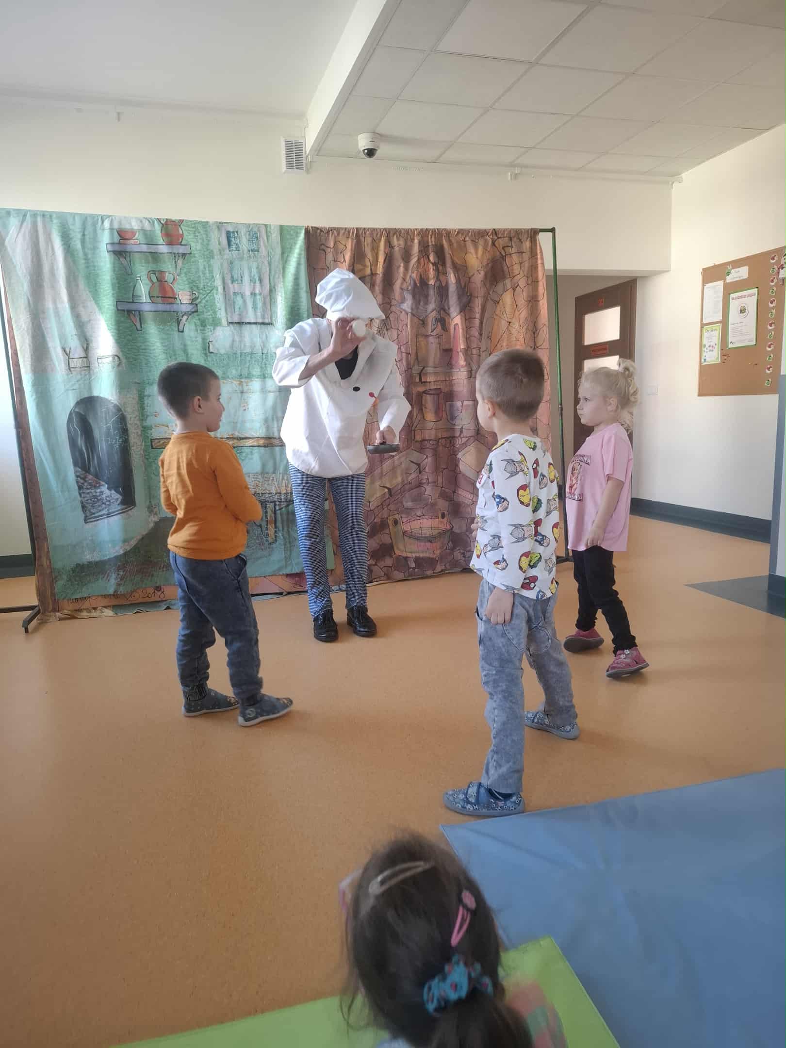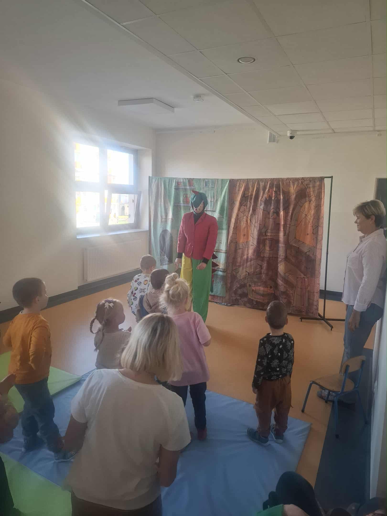 Dzieci z zainteresowaniem obejrzały przedstawienie pt. „Przygody Baltazara Gąbki” przygotowane przez teatr gościnny. Nasze Sówki obserwowały aktorów, ich barwne stroje oraz ciekawe rekwizyty, z radością uczestnicząc w teatralnej przygodzie.