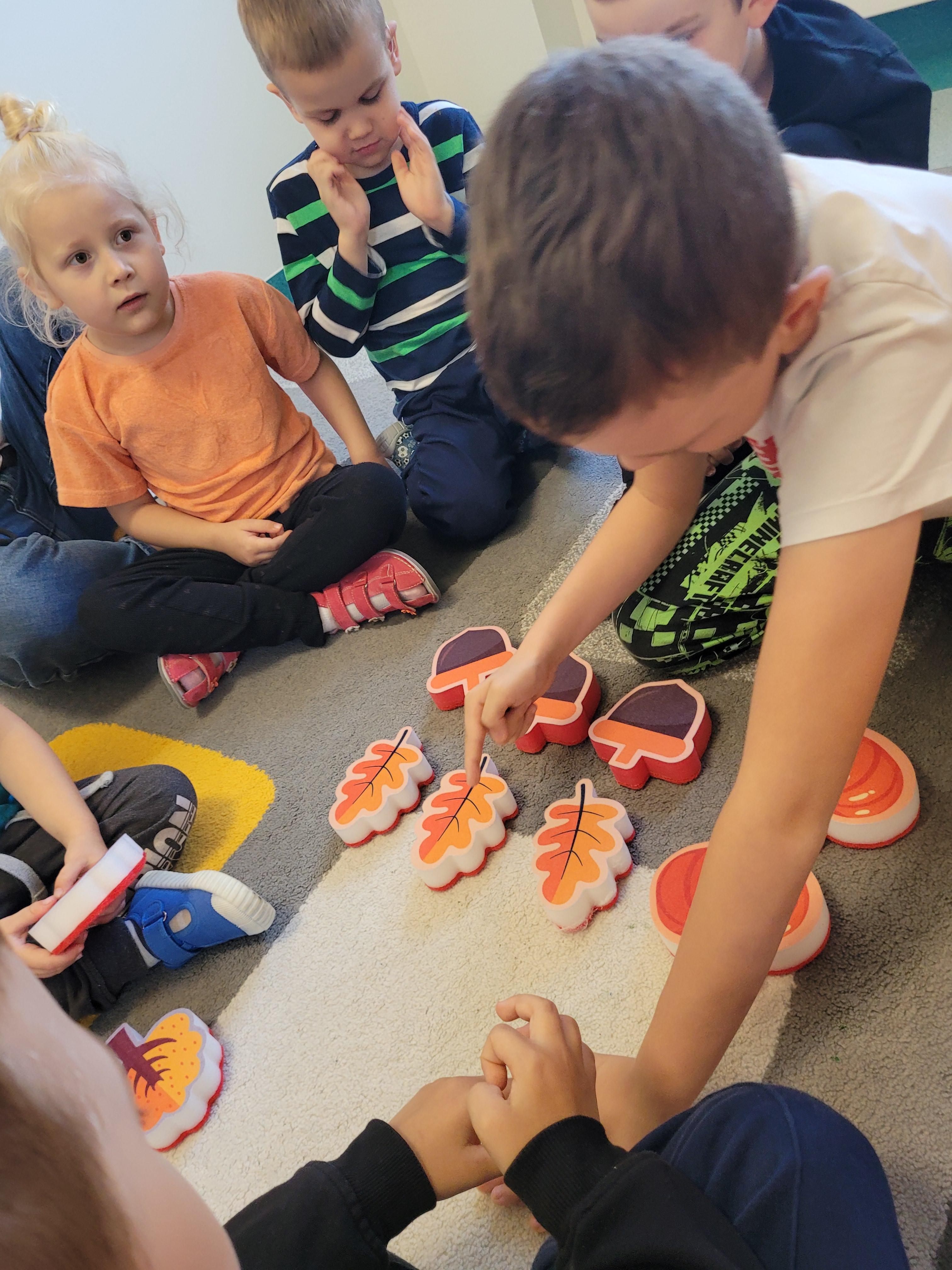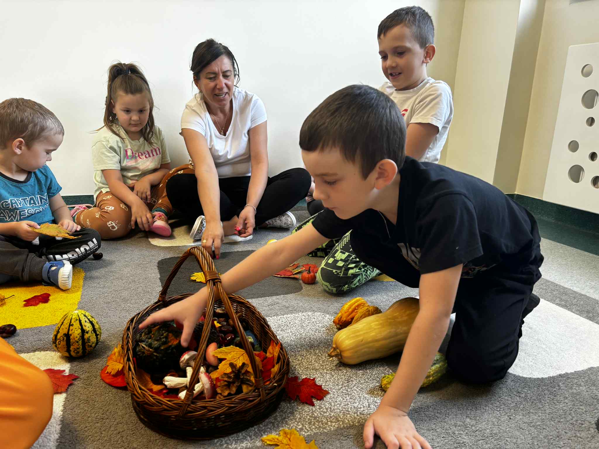 Wspolne zabawy, liczenie kasztanów, liści, prace plastyczne a także poczęstunek