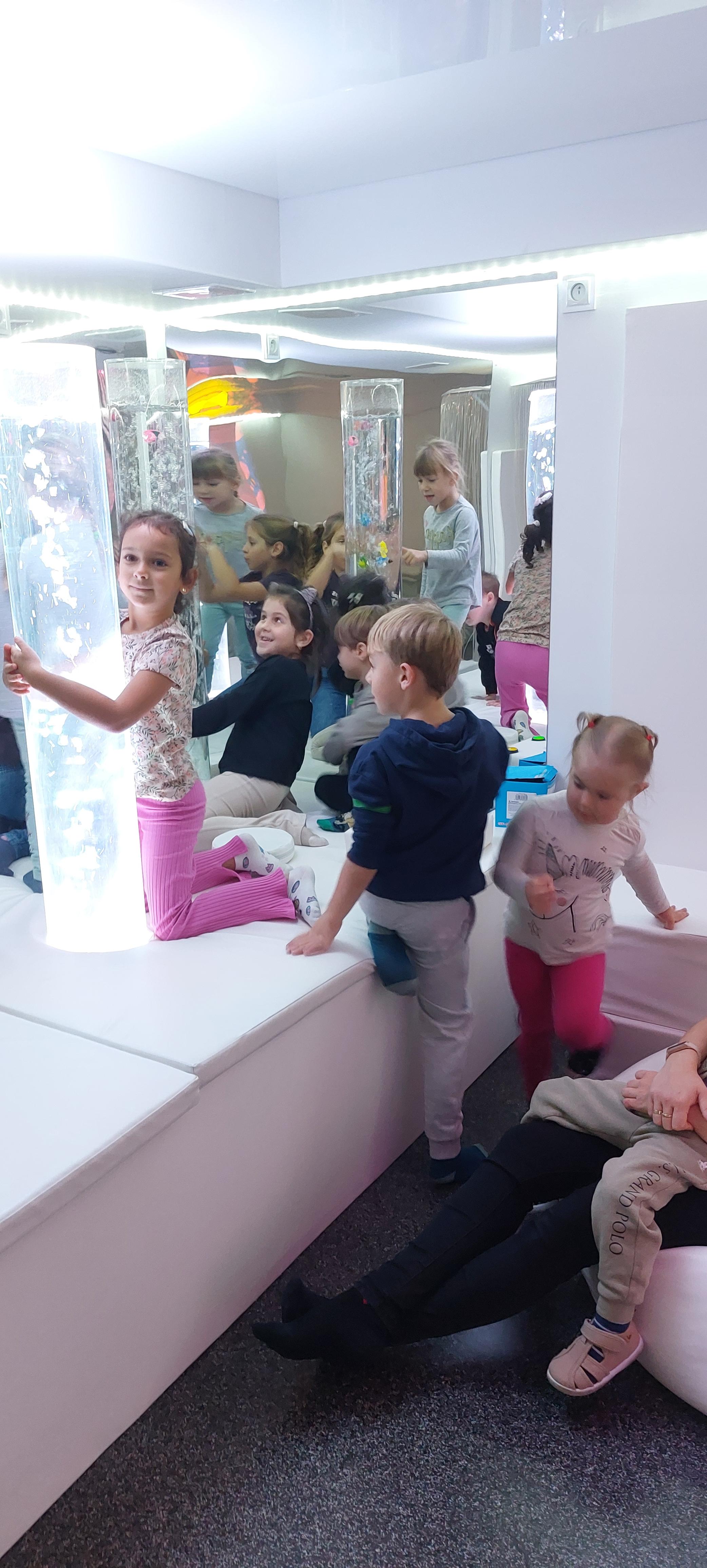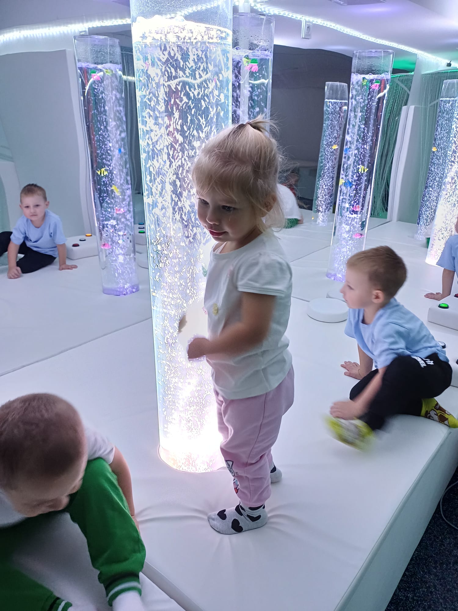 Dzieci z grupy "Skrzaty' odwiedziły w przedszkolu magiczne miejsce - Salę Doświadczania Świata. Pobyt tam pozwolił na rozwój zmysłów, które były odpowiednio stymulowane poprzez przedmioty i urządzenia, które się tam znajdują. Przedszkolaki były pod ogromnym wrażeniem. Na twarzach zagościł uśmiech od ucha do ucha.