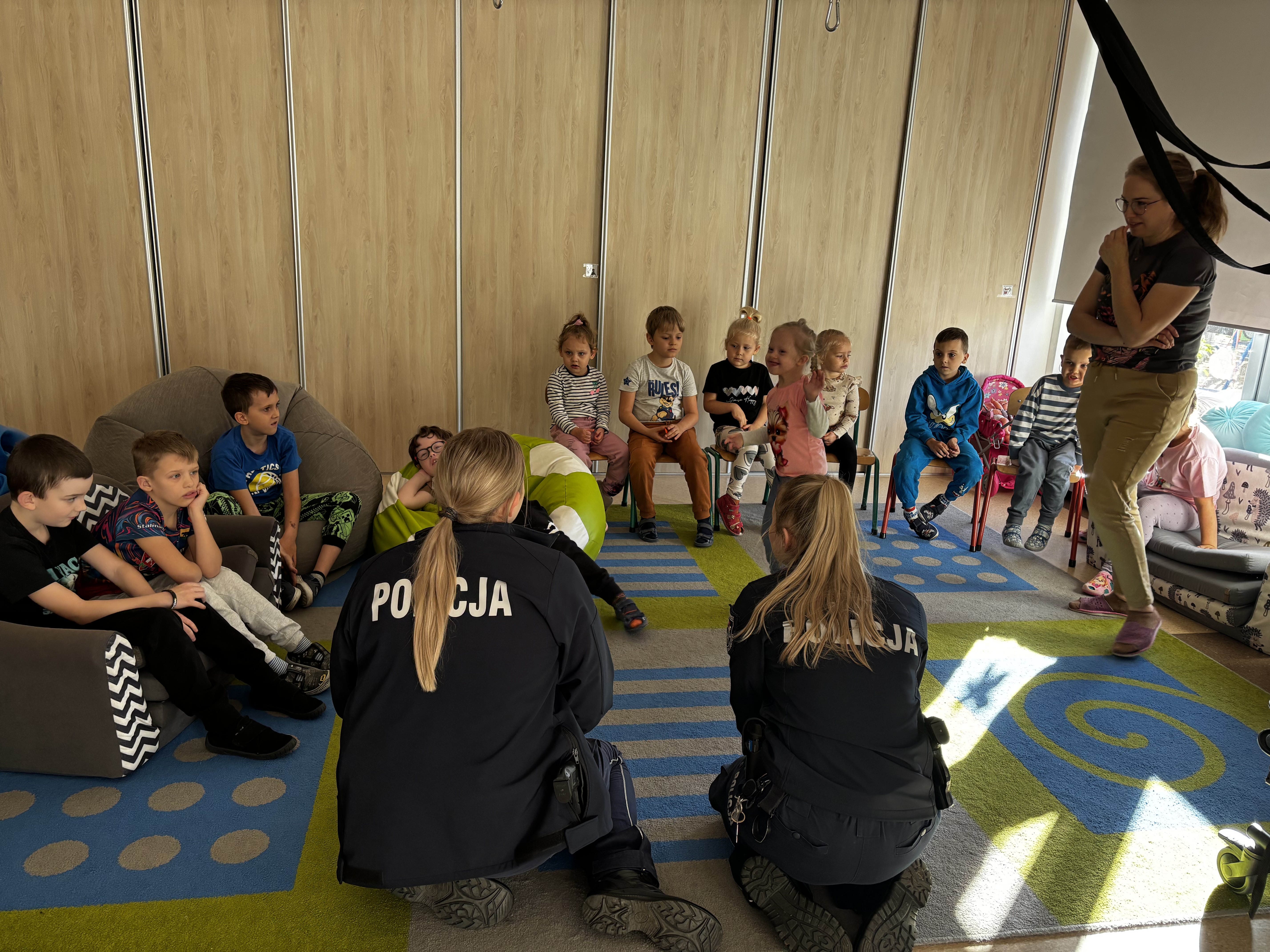 Dziś grupa Motylków, Elfów, Świetlików i Krasnali miała wyjątkowych gości – odwiedziły nas panie policjantki. Opowiedziały nam o swojej pracy, przypomniały zasady bezpieczeństwa. Każde dziecko otrzymało odblaskową opaskę, która na pewno przyda się podczas jesiennych spacerów.