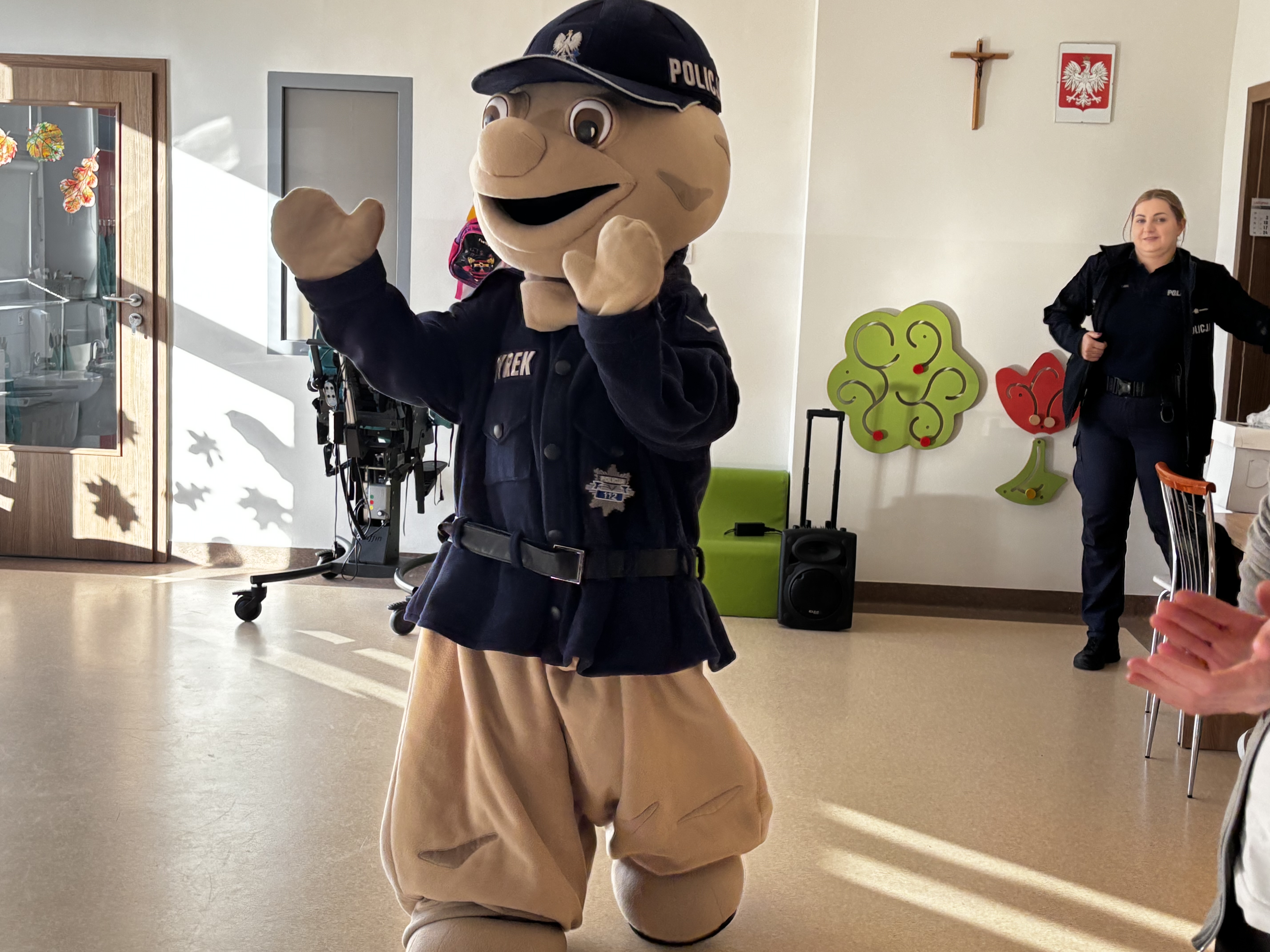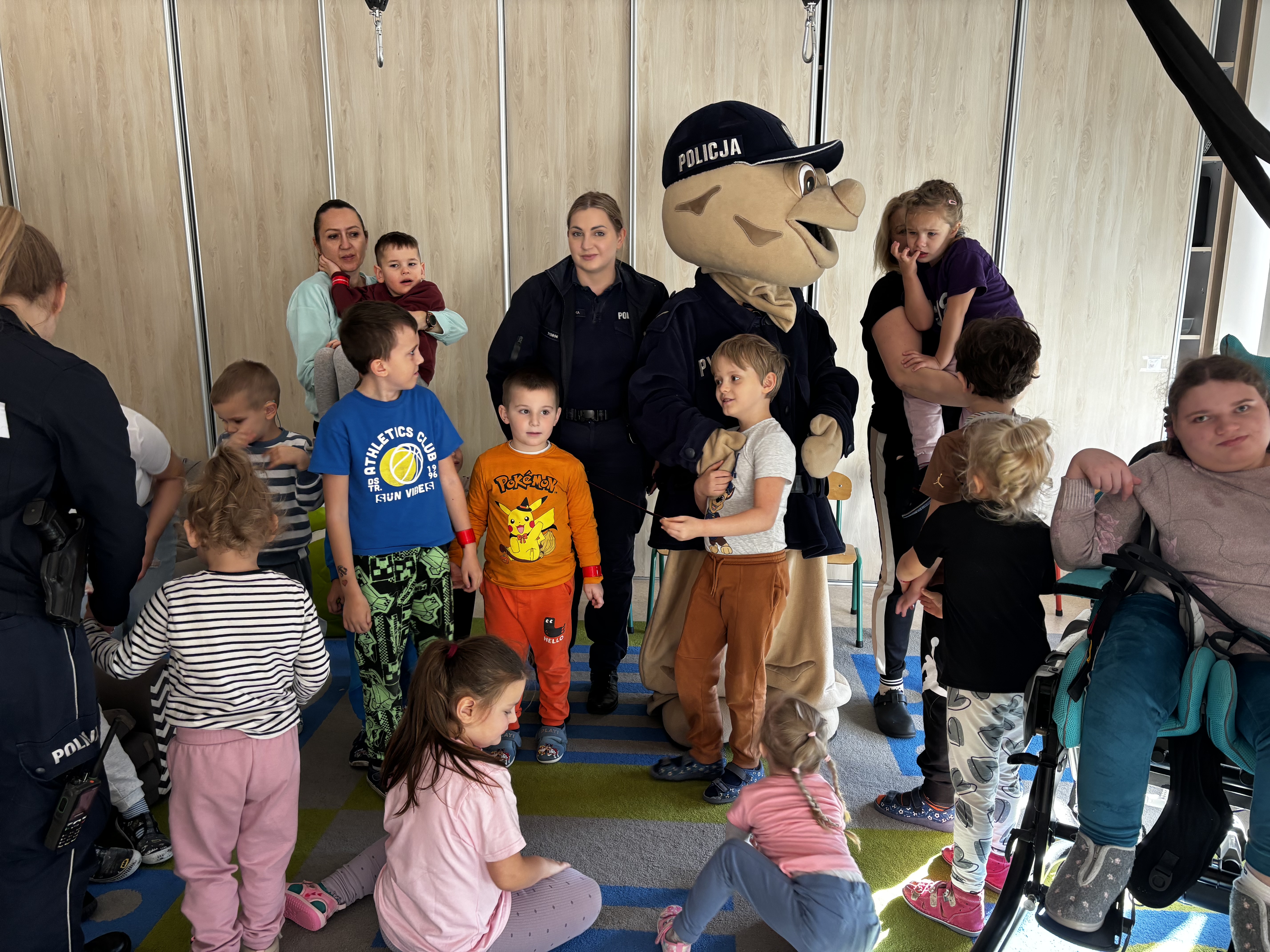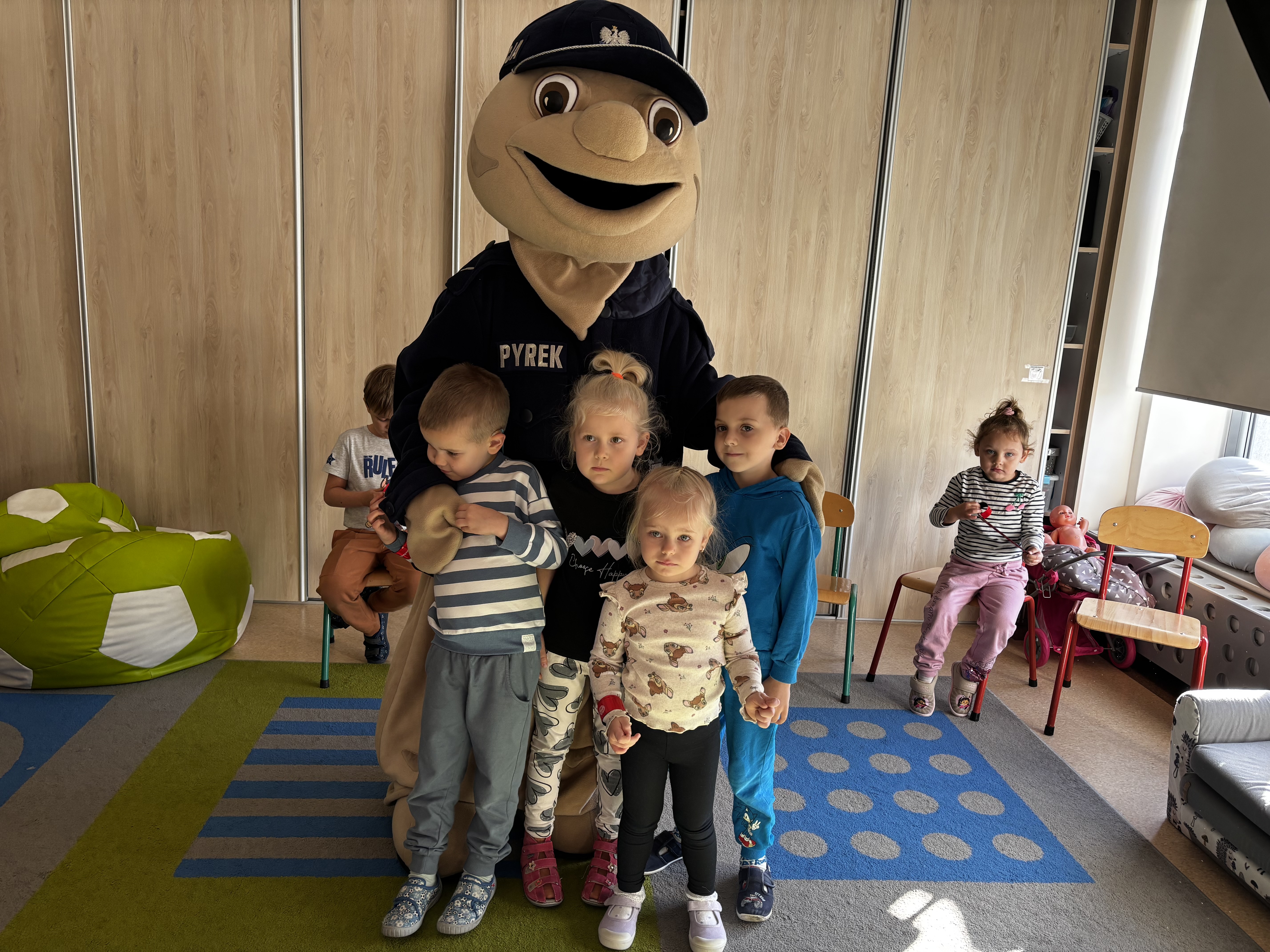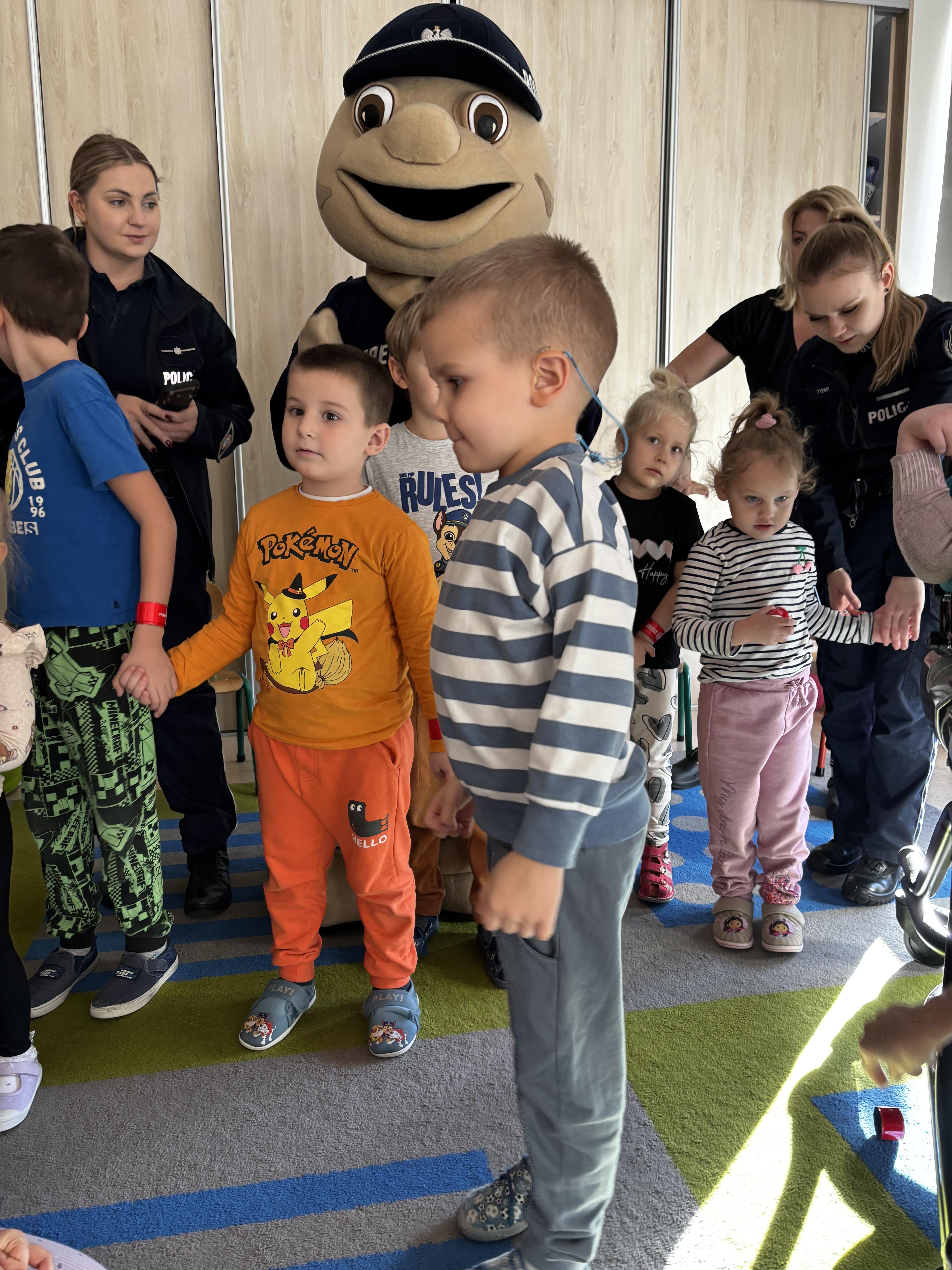 Największą atrakcją spotkania był Pyrek – policyjna maskotka, z którą tańczyliśmy i zrobiliśmy pamiątkowe zdjęcia.