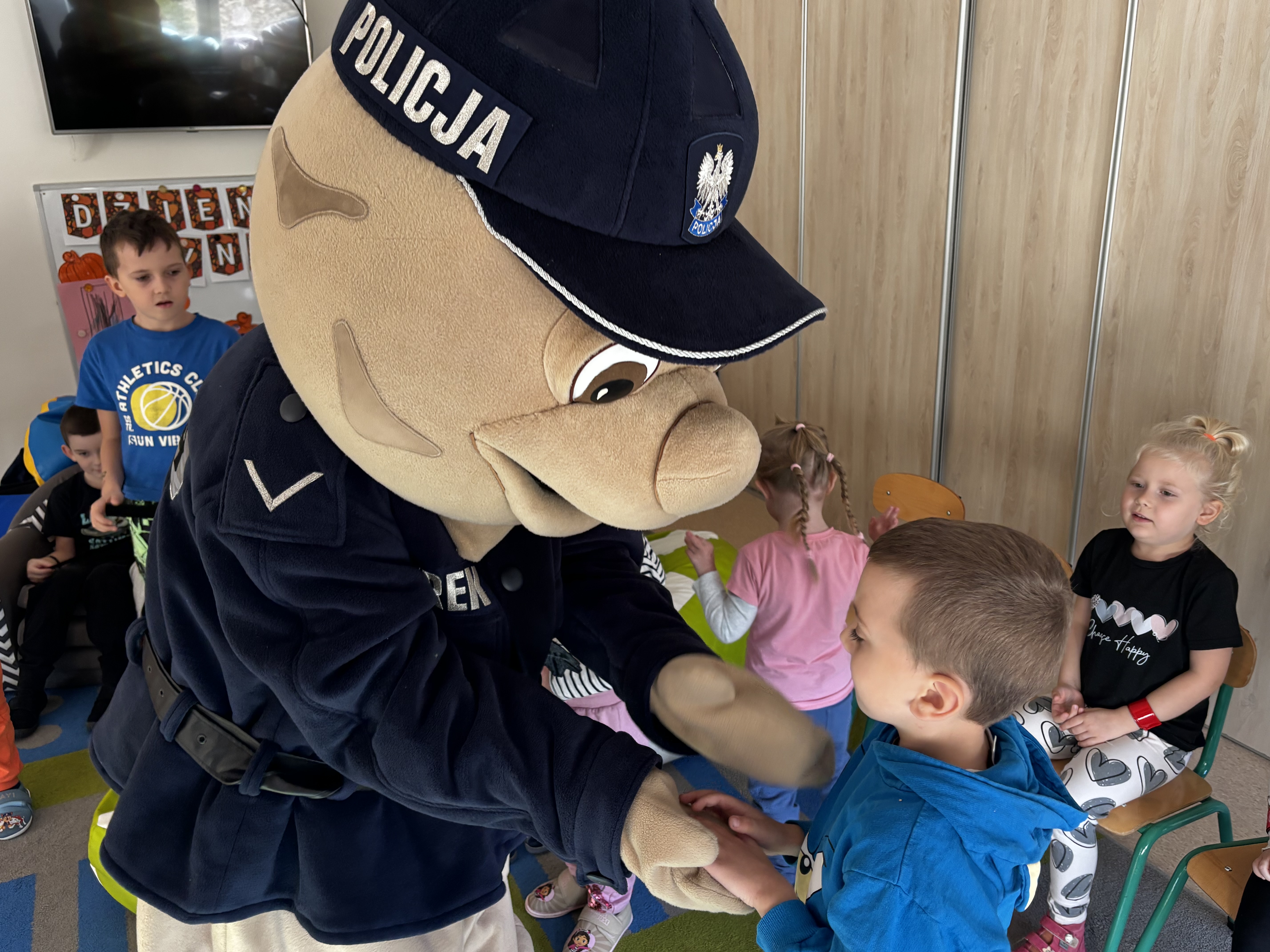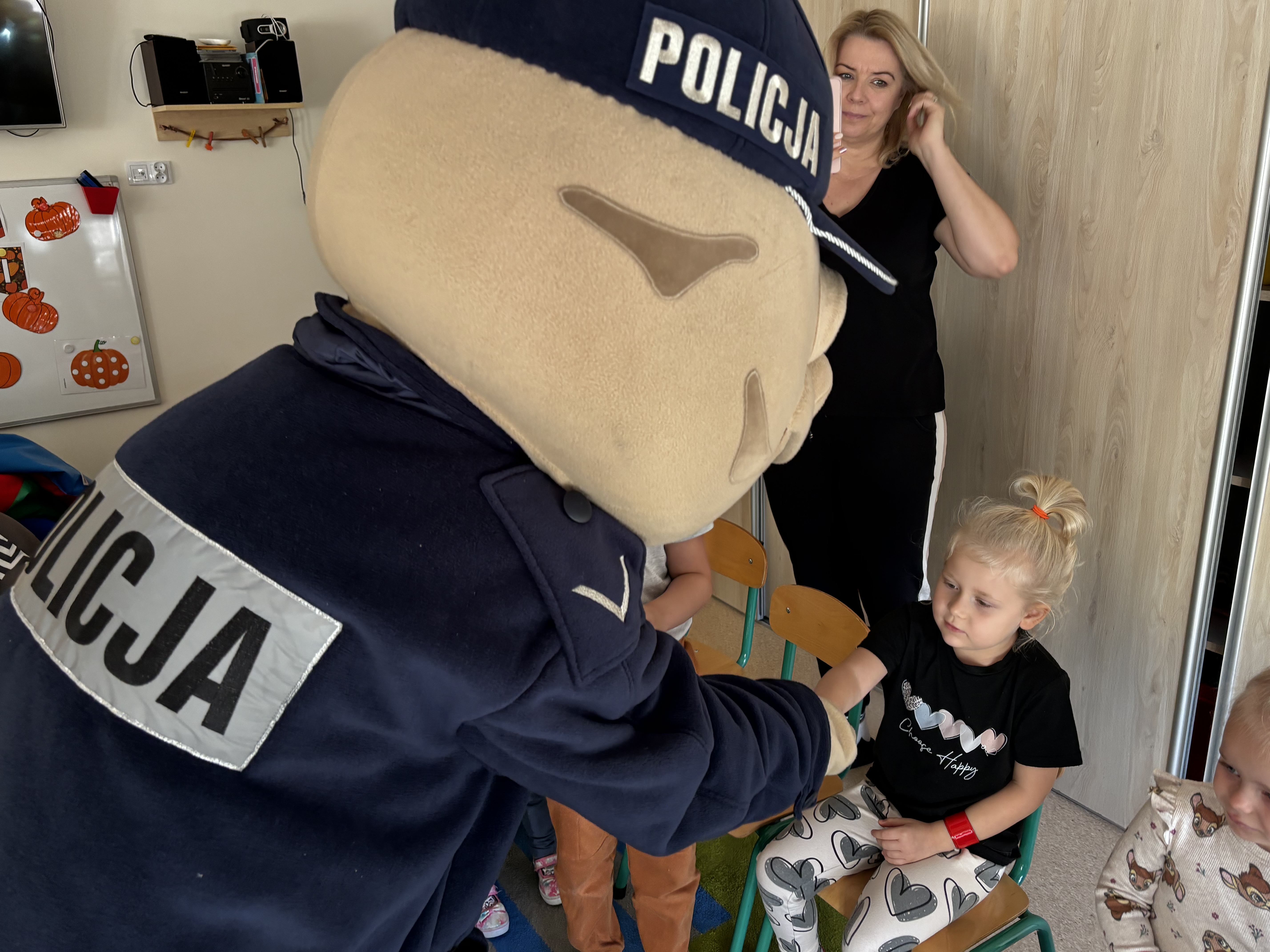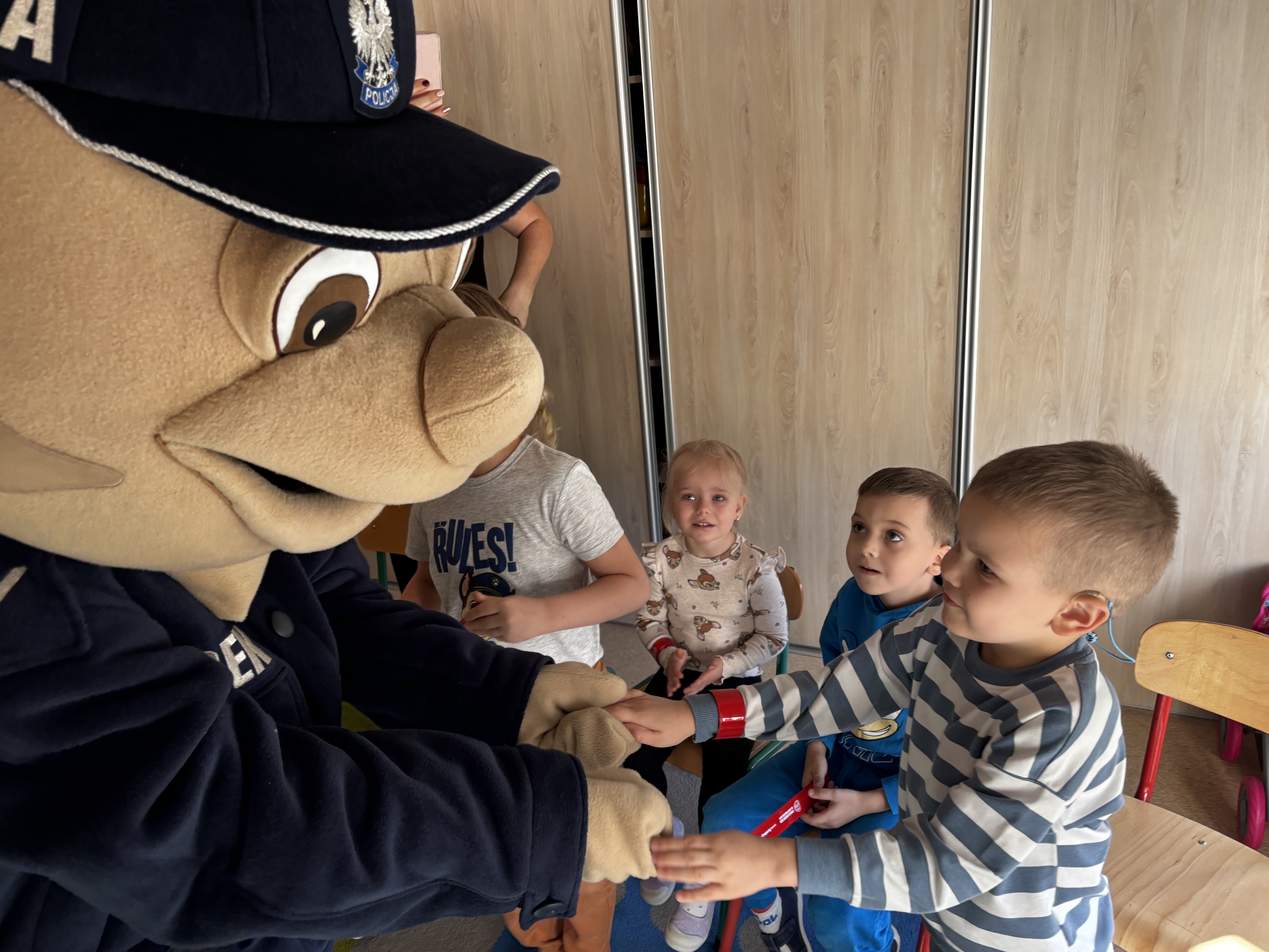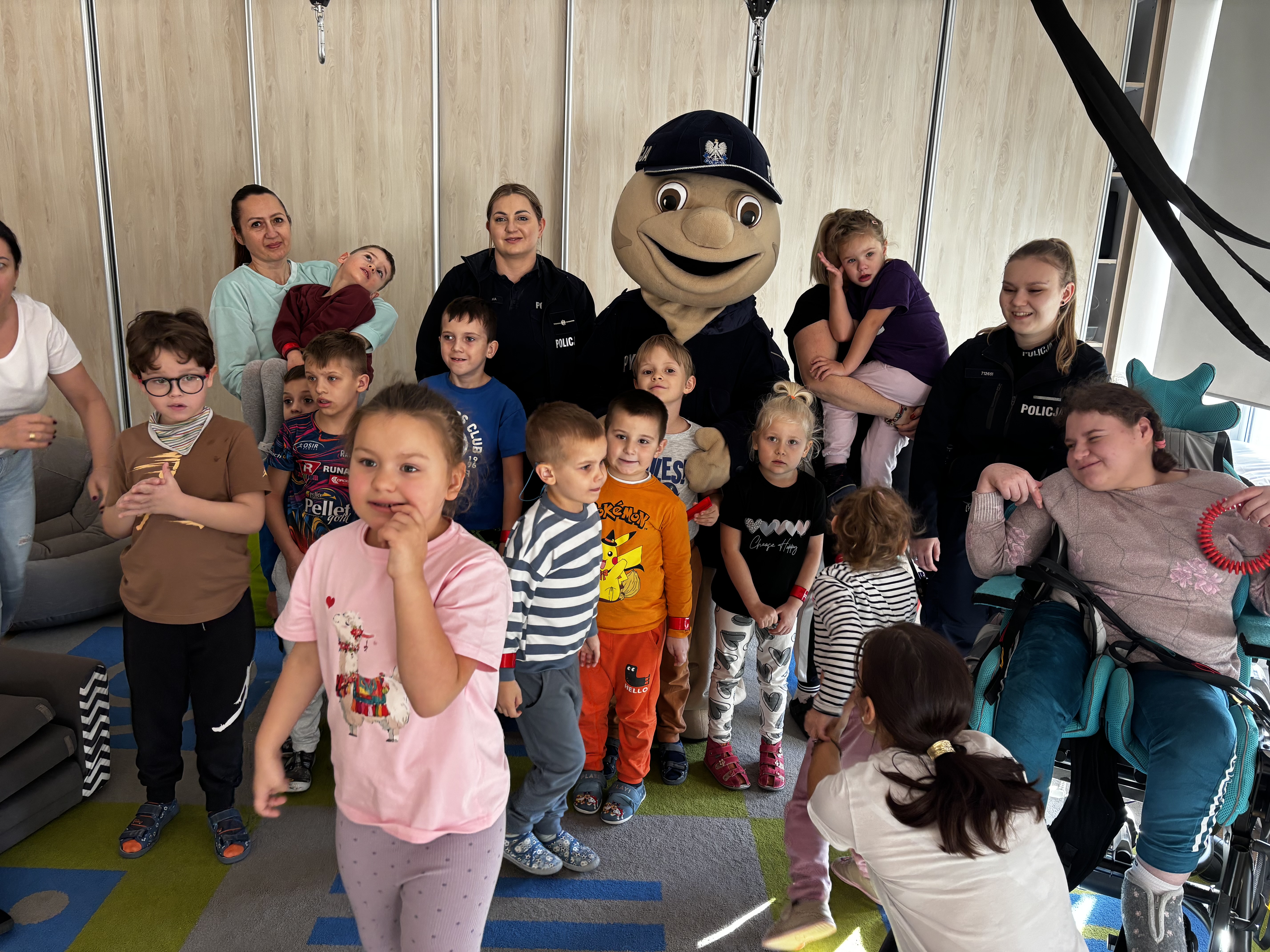 Największą atrakcją spotkania był Pyrek – policyjna maskotka, z którą tańczyliśmy i zrobiliśmy pamiątkowe zdjęcia.