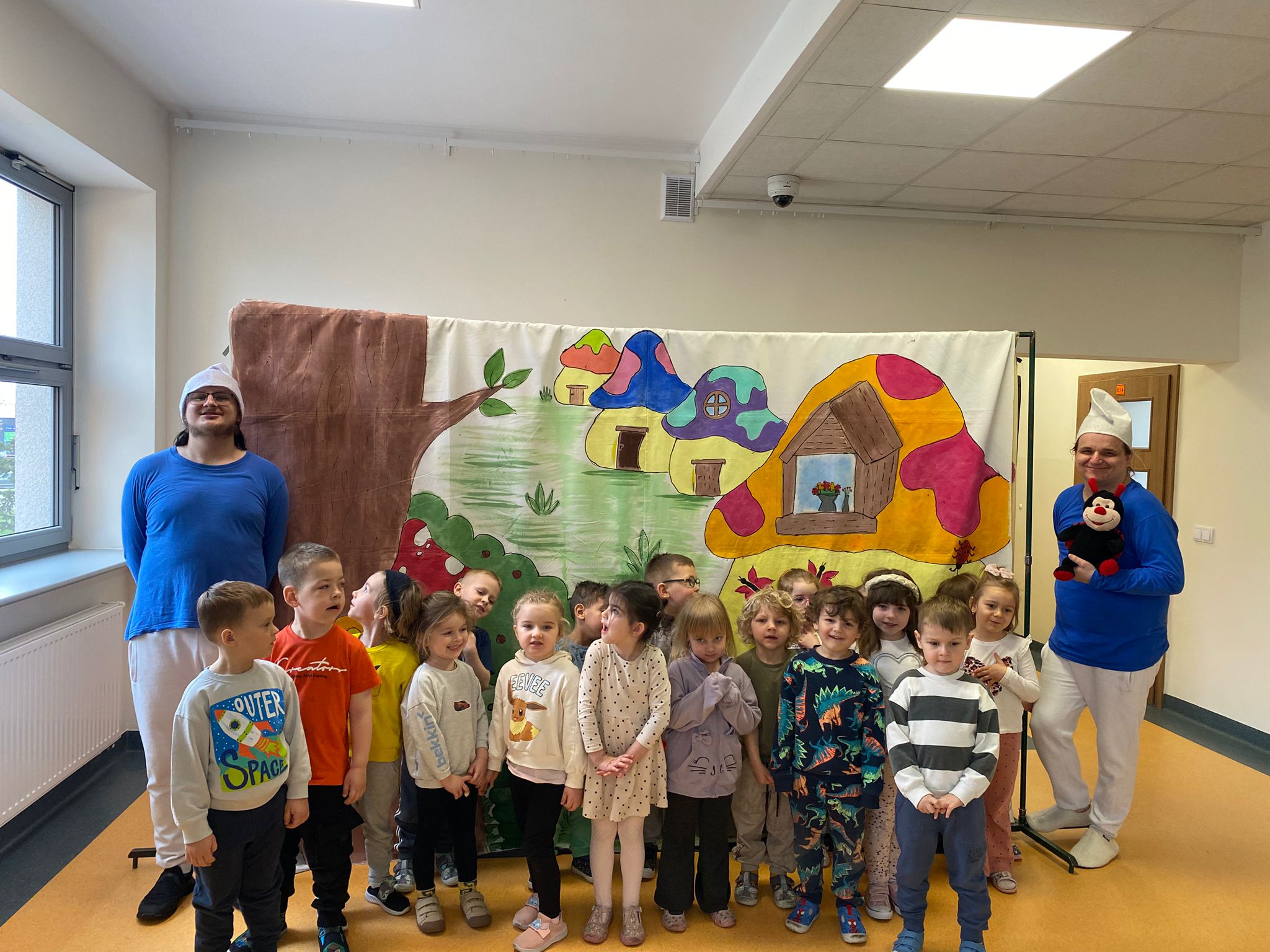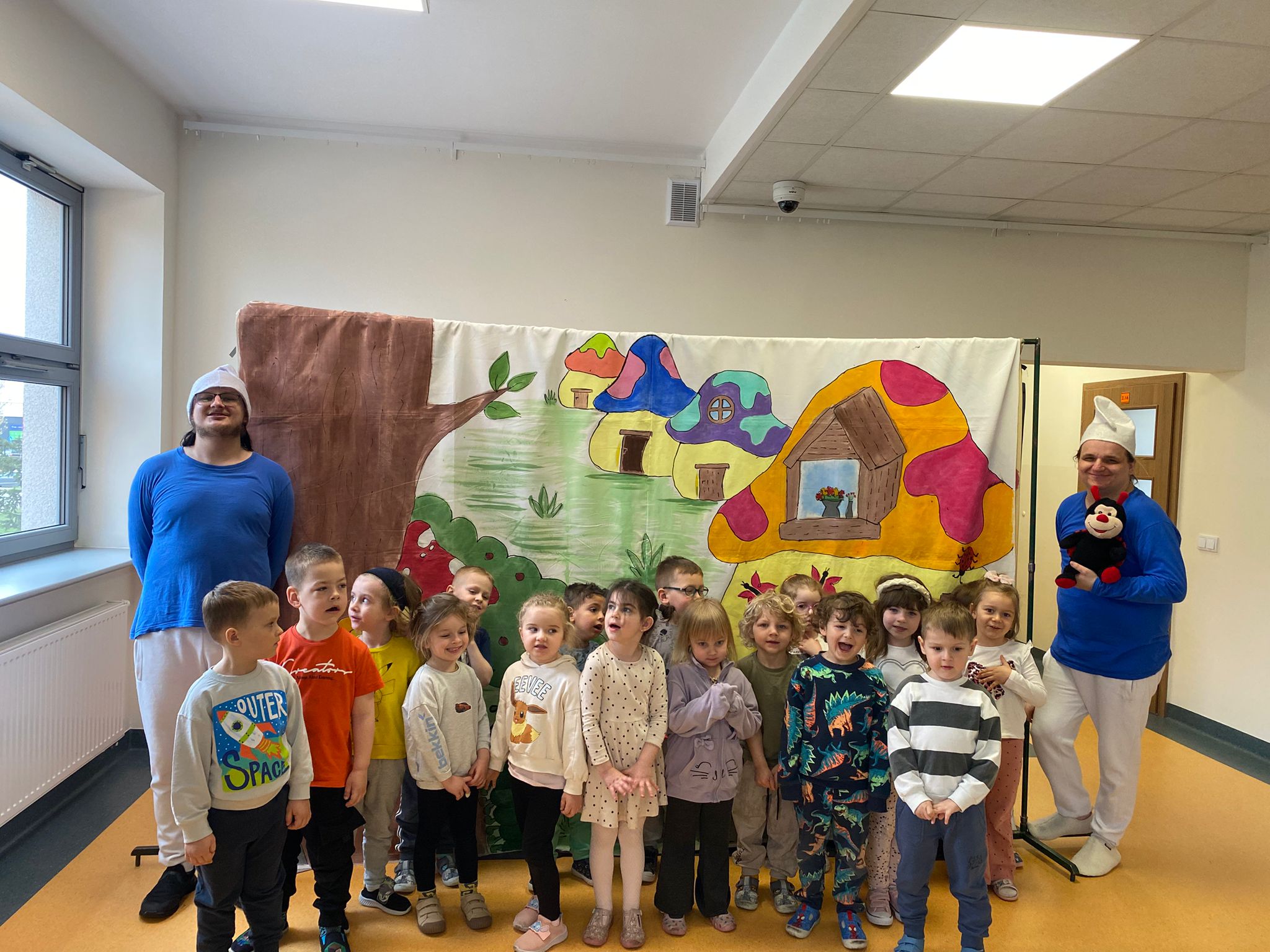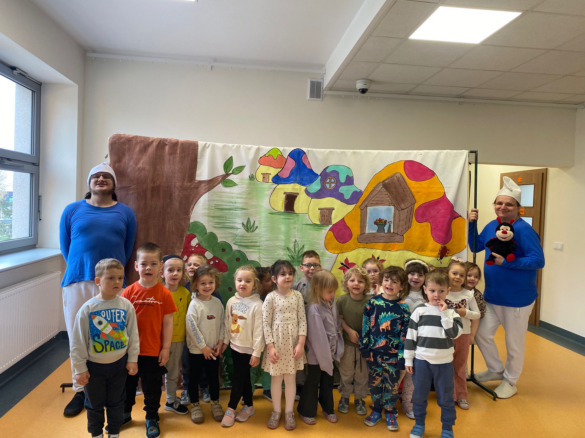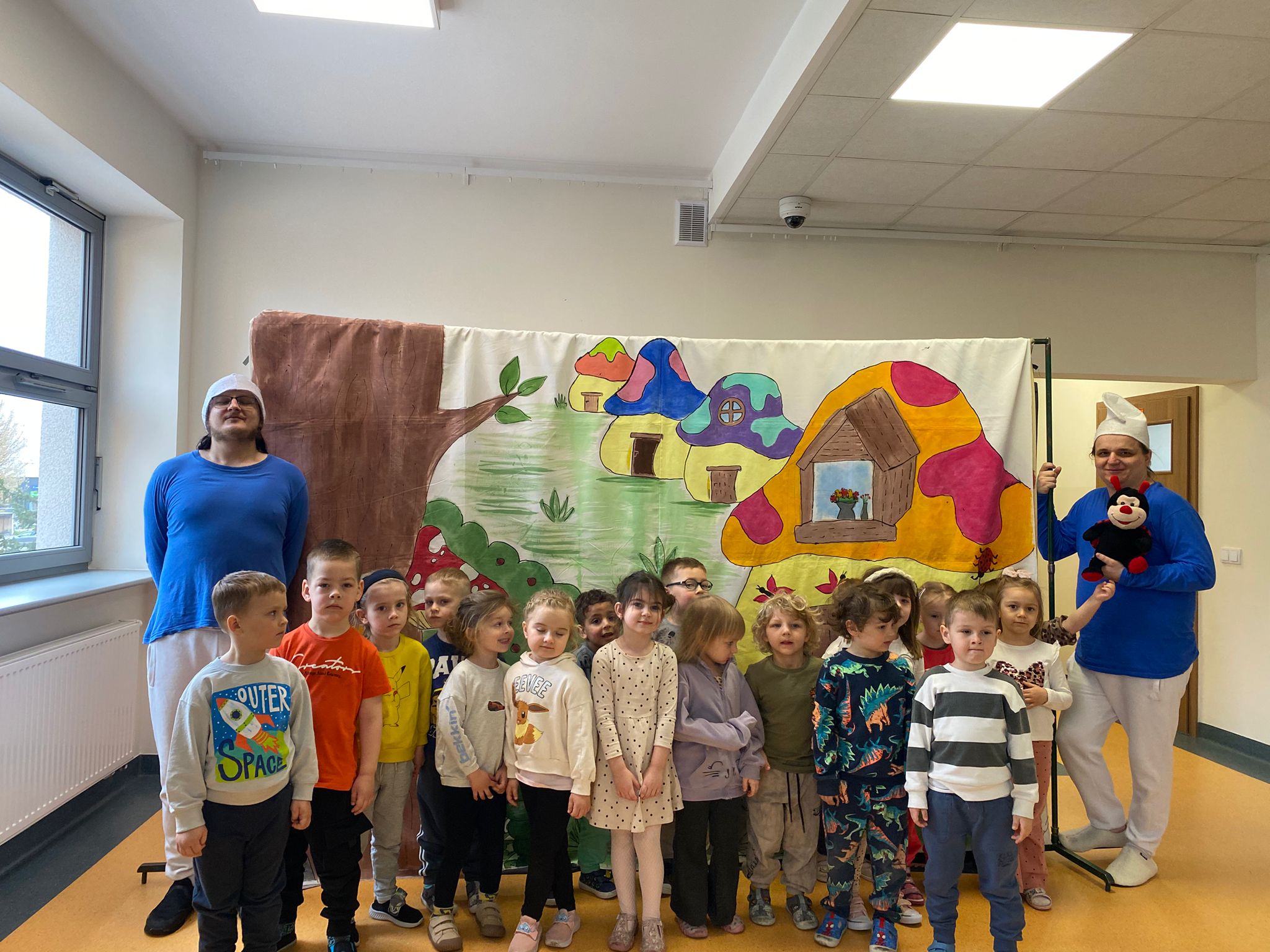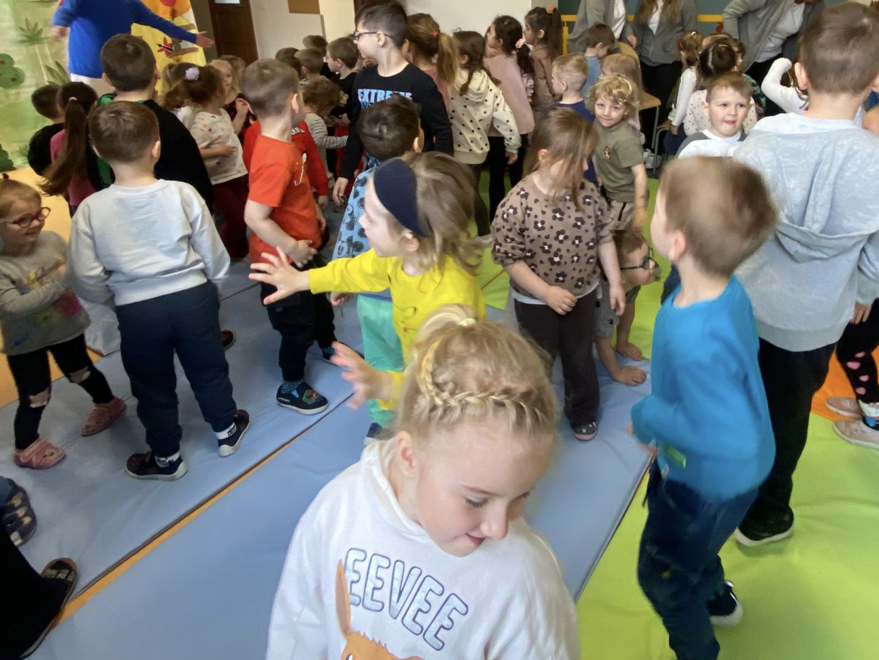 Nasze przedszkole odwiedził Teatr Blaszany Bębenek ze spektaklem Smurfy. Prezentowany spektakl dostarczył dzieciom wiele radości i pozytywnych emocji. Podczas przedstawienia aktywnie uczestniczyły w wydarzeniach, angażując się w proponowane przez aktorów działania. Dzięki temu mogły poczuć się częścią opowieści. Całe spotkanie przebiegło w miłej i przyjaznej atmosferze, a dzieci spędziły czas w sposób ciekawy i wartościowy. Na zakończenie mali widzowie nagrodzili aktorów gromkimi oklaskami.