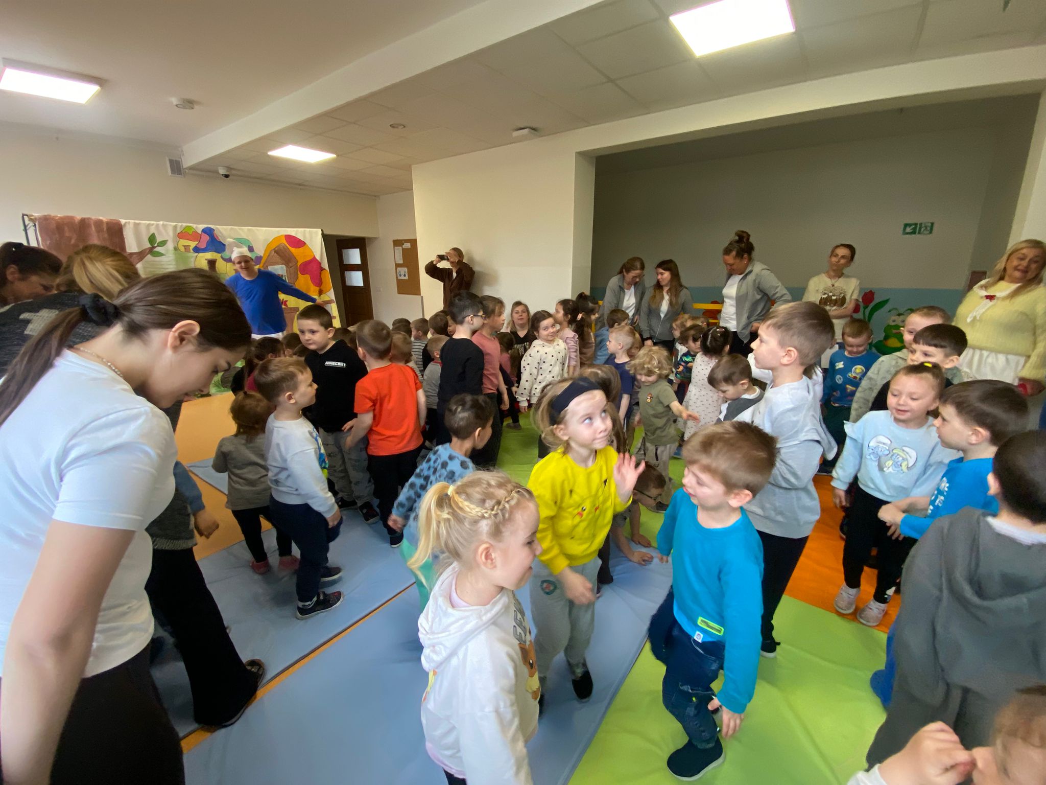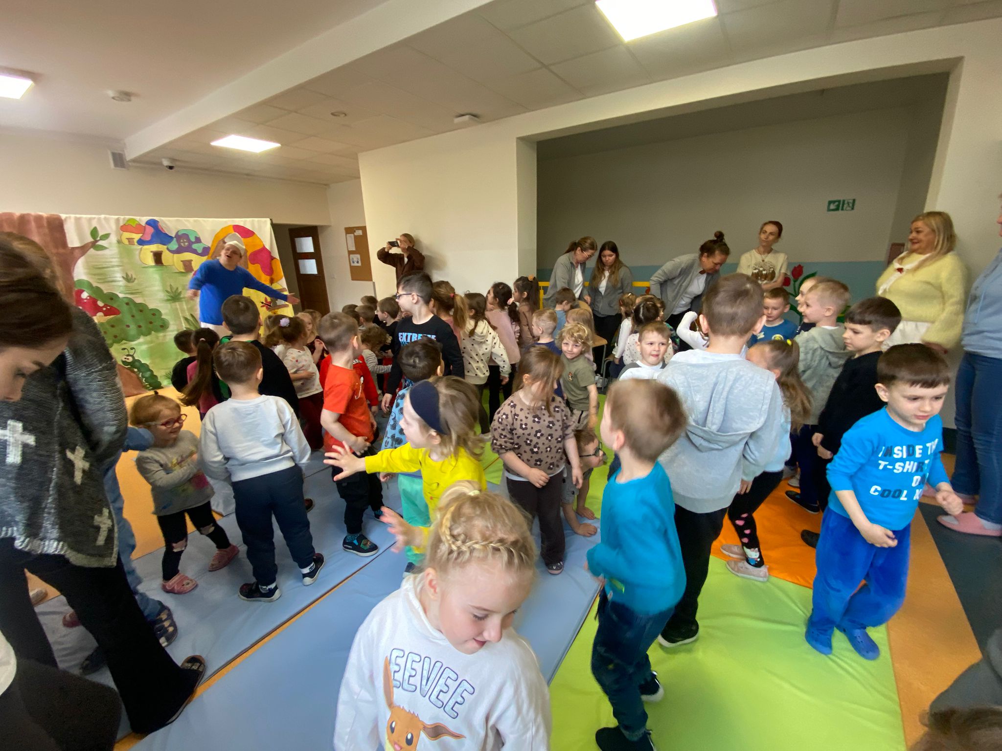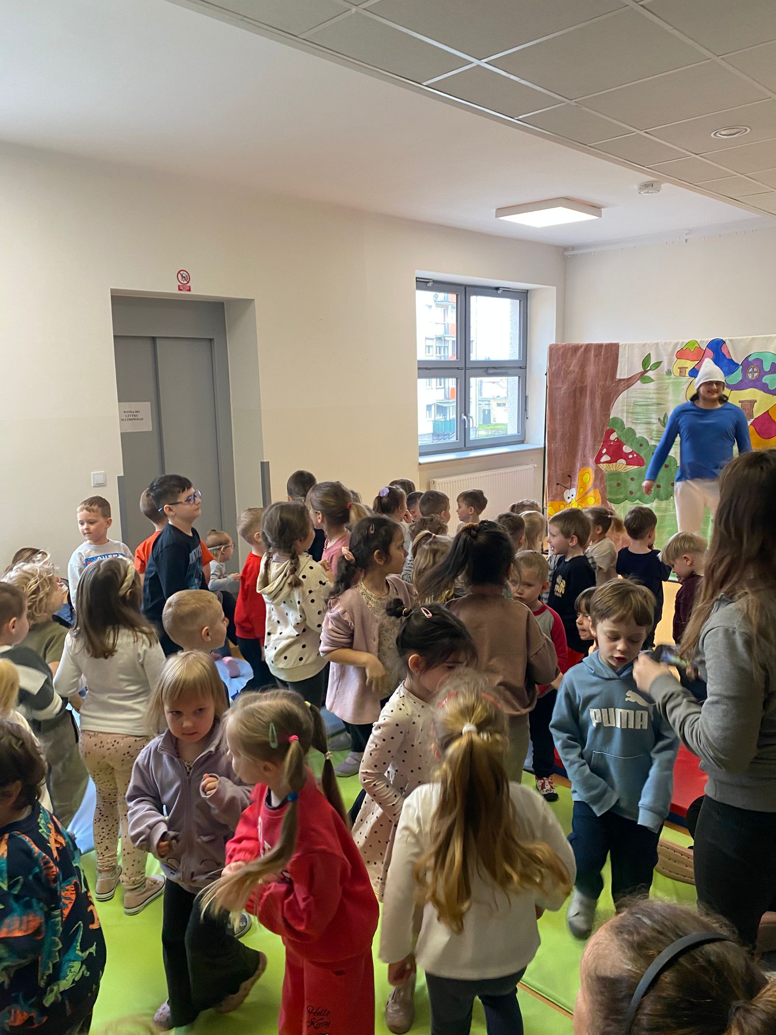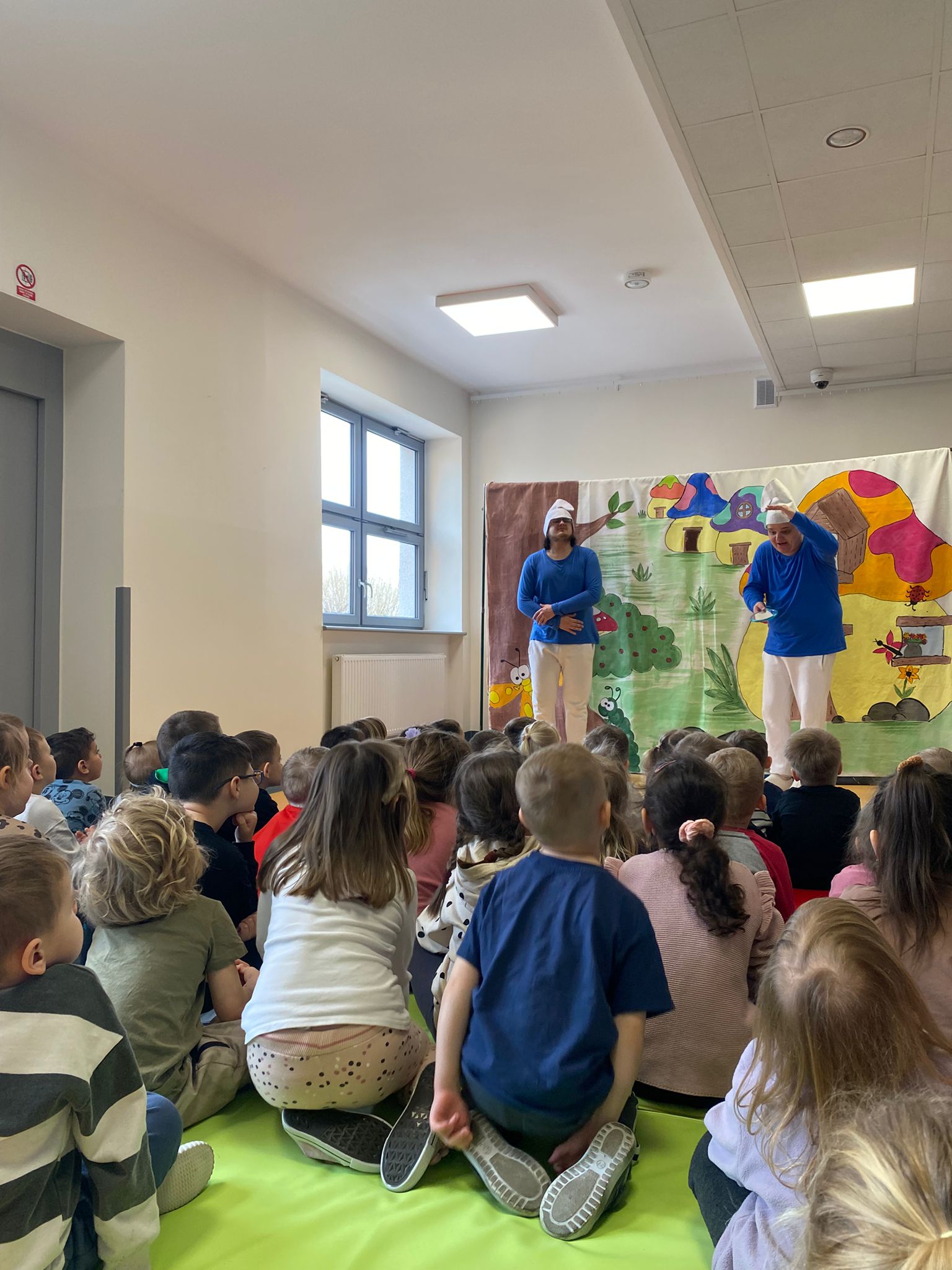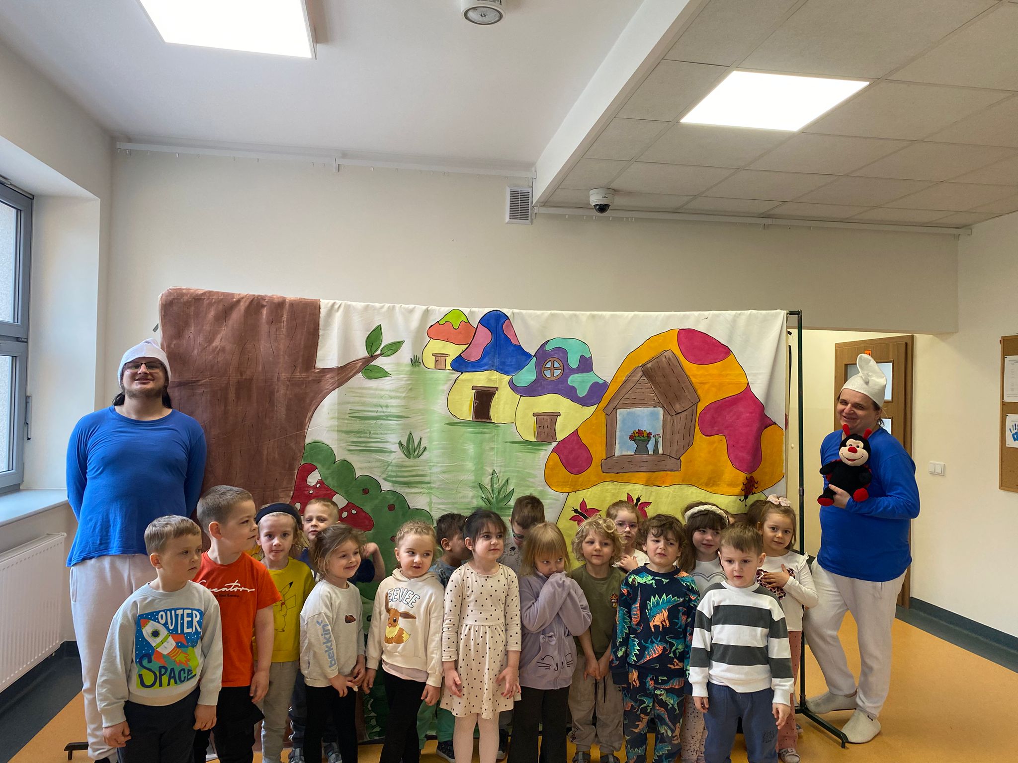 Nasze przedszkole odwiedził Teatr Blaszany Bębenek ze spektaklem Smurfy. Prezentowany spektakl dostarczył dzieciom wiele radości i pozytywnych emocji. Podczas przedstawienia aktywnie uczestniczyły w wydarzeniach, angażując się w proponowane przez aktorów działania. Dzięki temu mogły poczuć się częścią opowieści. Całe spotkanie przebiegło w miłej i przyjaznej atmosferze, a dzieci spędziły czas w sposób ciekawy i wartościowy. Na zakończenie mali widzowie nagrodzili aktorów gromkimi oklaskami.