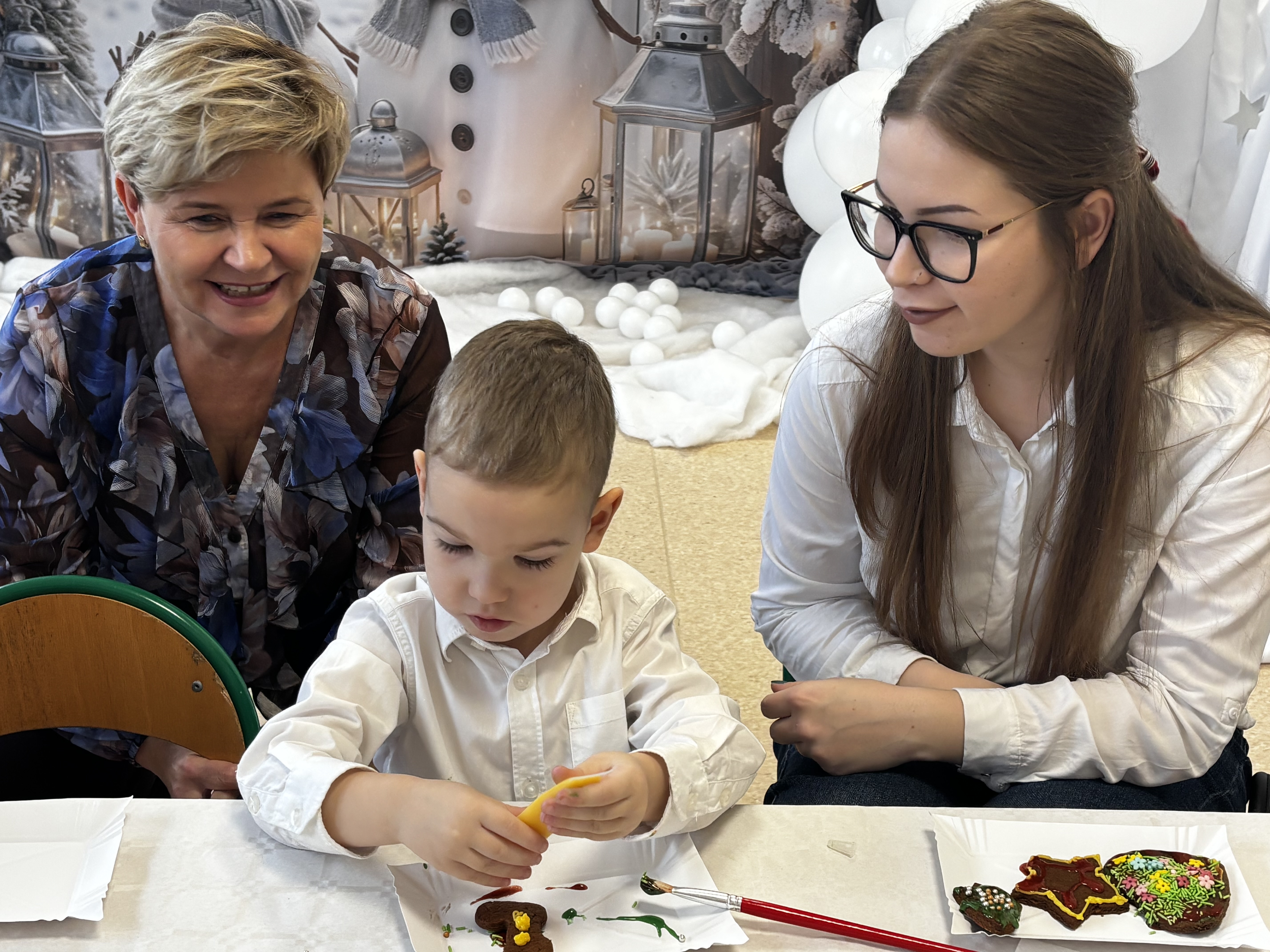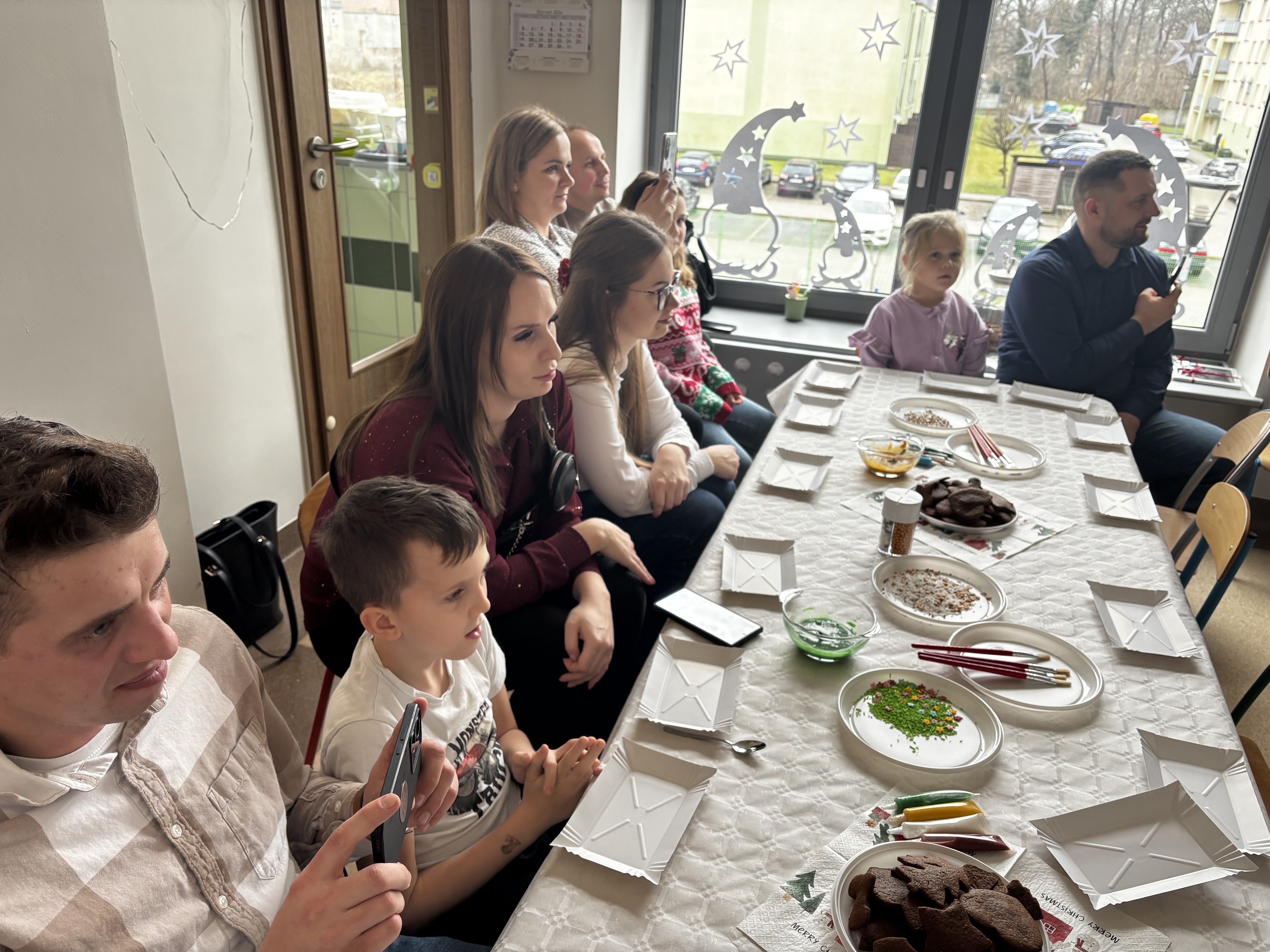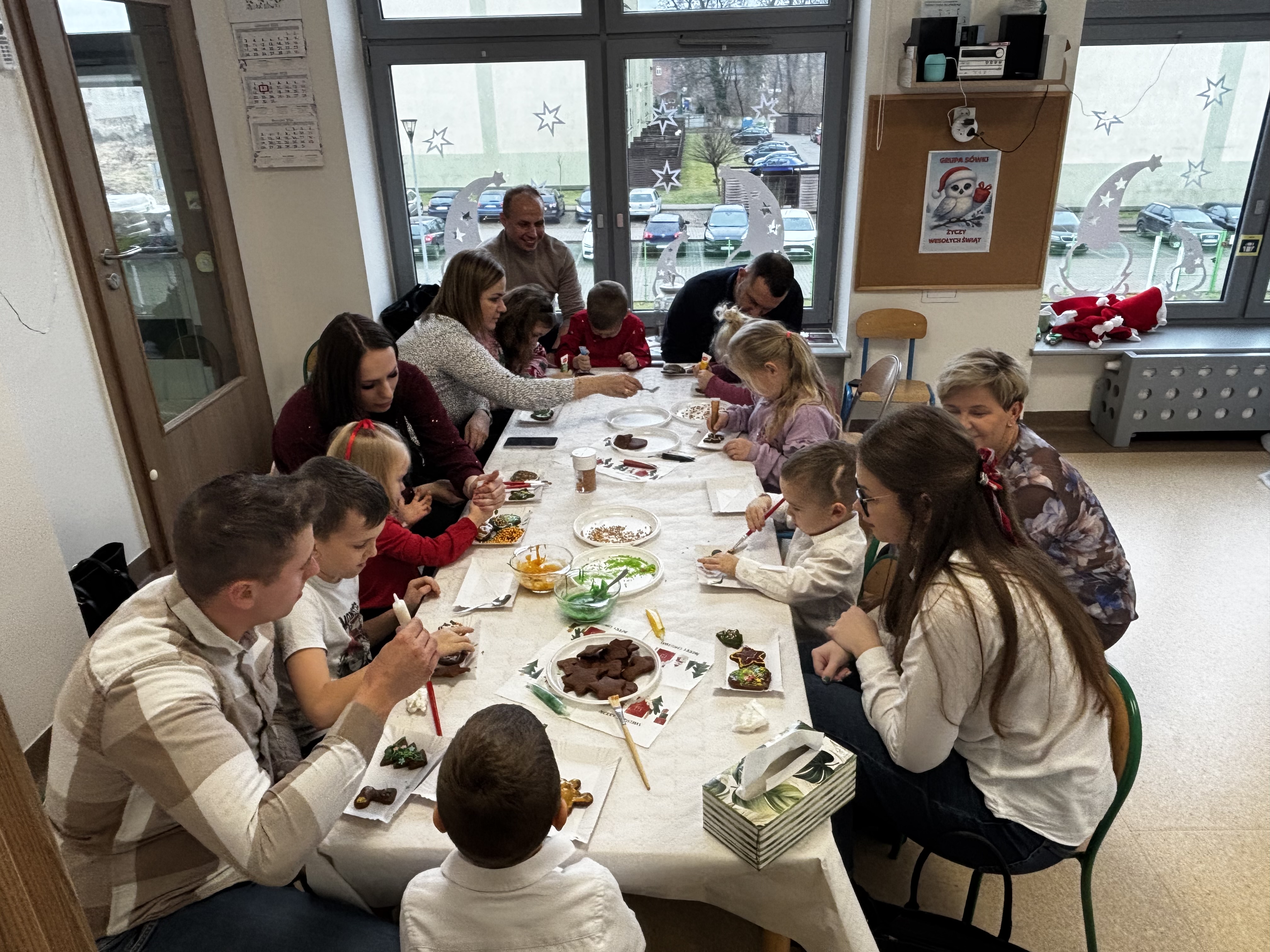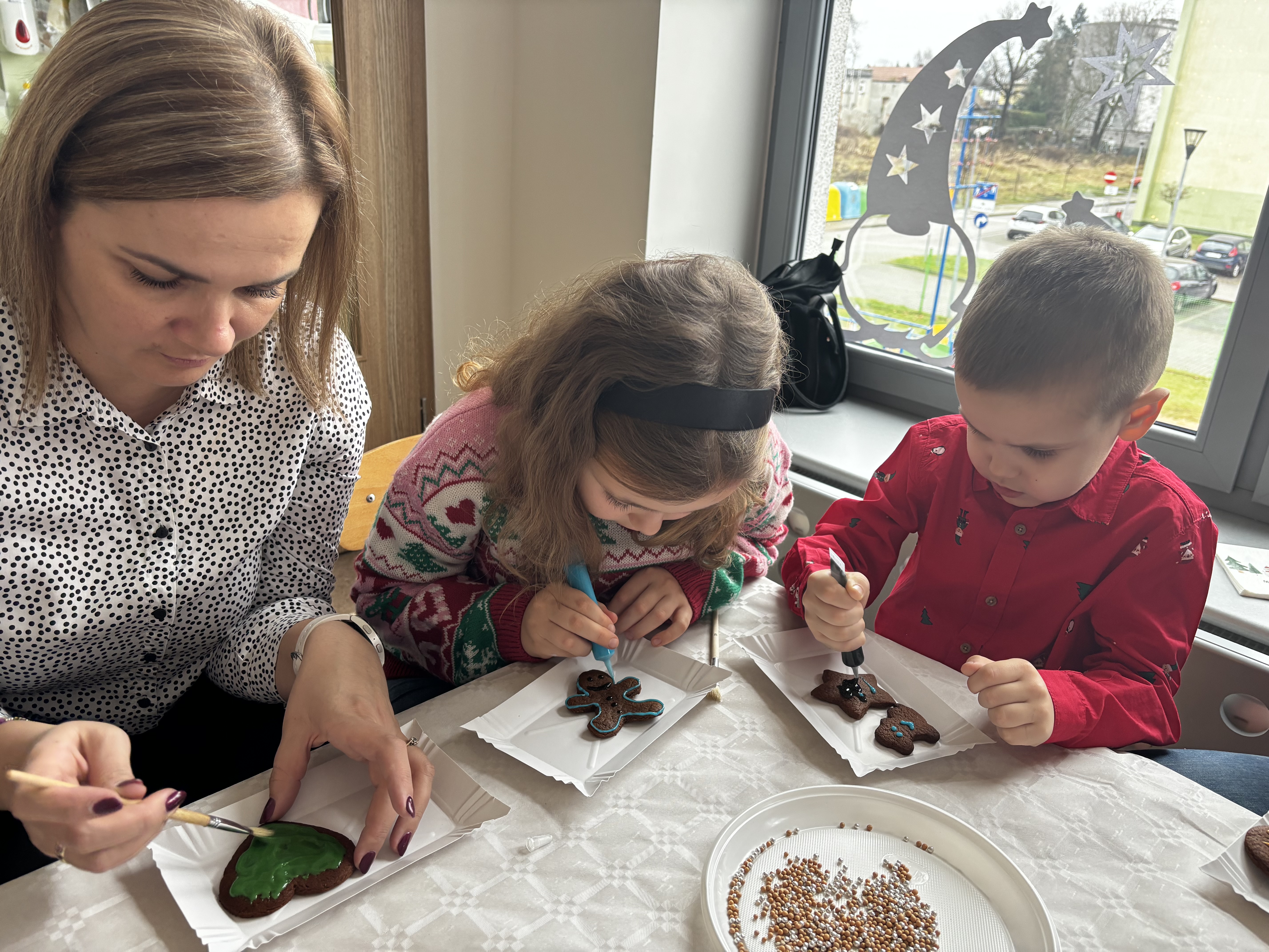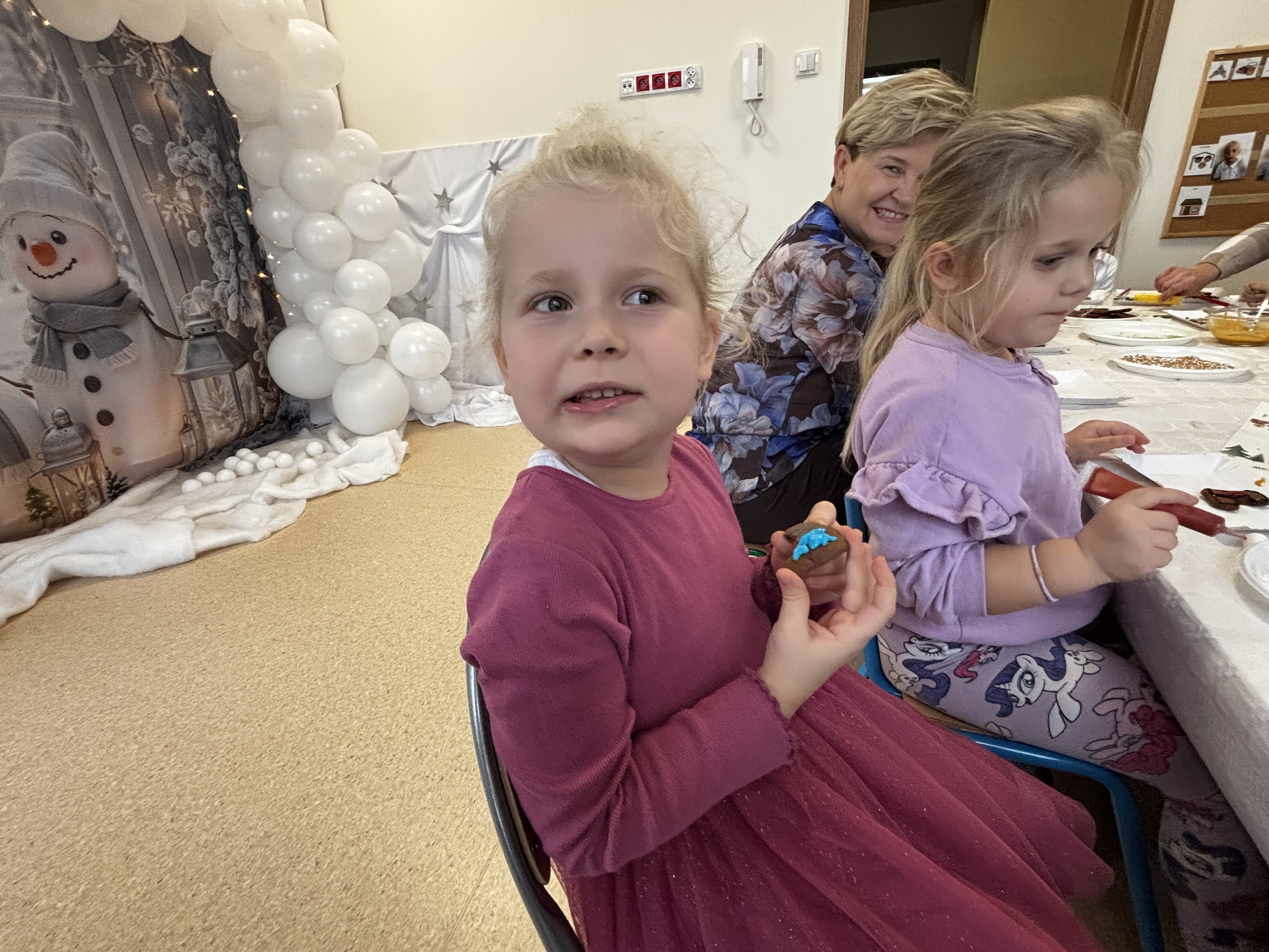 W naszej grupie odbyło się wyjątkowe spotkanie wigilijne z rodzicami. Dzieci zaprezentowały świąteczny występ, który wzruszył i zachwycił wszystkich obecnych. Panie są niezwykle dumne z Sówek-z ich odwagi, zaangażowania i radości, z jaką wystąpili przed rodzicami.Po części artystycznej odbyły się rodzinne warsztaty ozdabiania pierników. To był czas pełen twórczej zabawy, zapachu korzennych przypraw i wspólnego tworzenia małych, słodkich dzieł sztuki. W trakcie spotkania odbyła się także rodzinna sesja zdjęciowa, która stworzyła piękną pamiątkę tego wyjątkowego dnia. Na rodziców czekały również drobne upominki oraz świąteczny poczęstunek.Spotkanie przebiegło w rodzinnej, podniosłej i radosnej atmosferze, wypełnionej uśmiechami i ciepłymi rozmowami. Dziękujemy wszystkim za obecność i wspólne świętowanie!