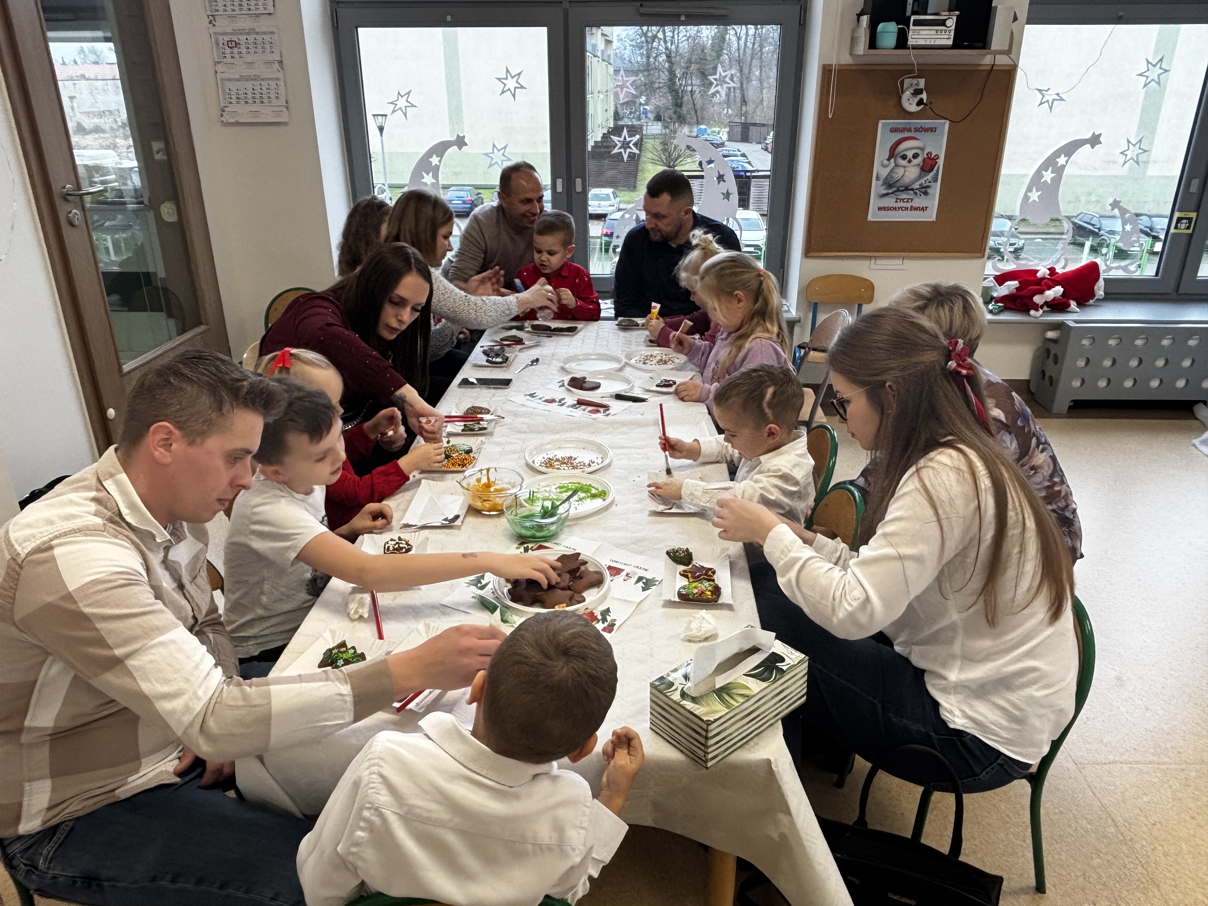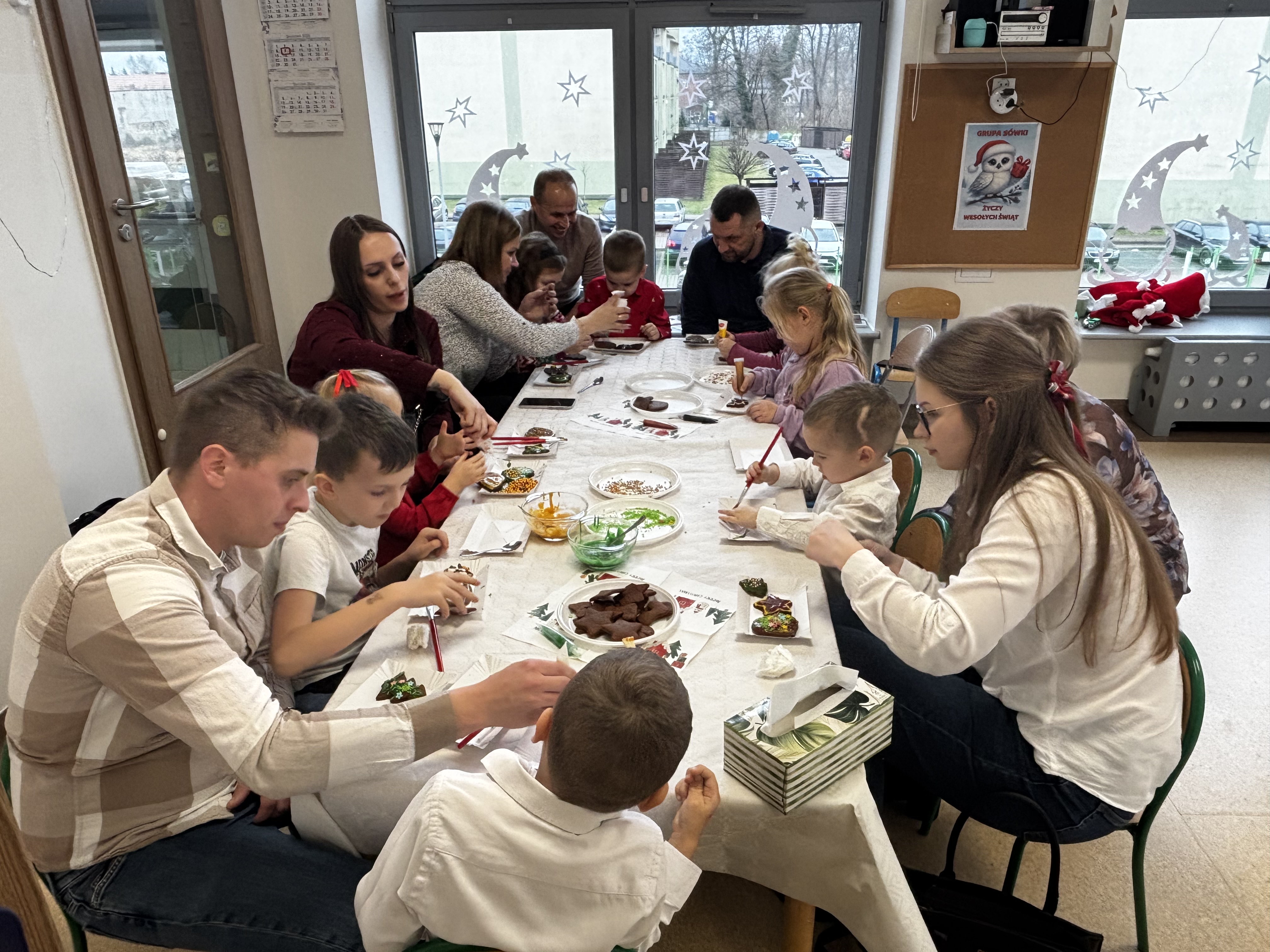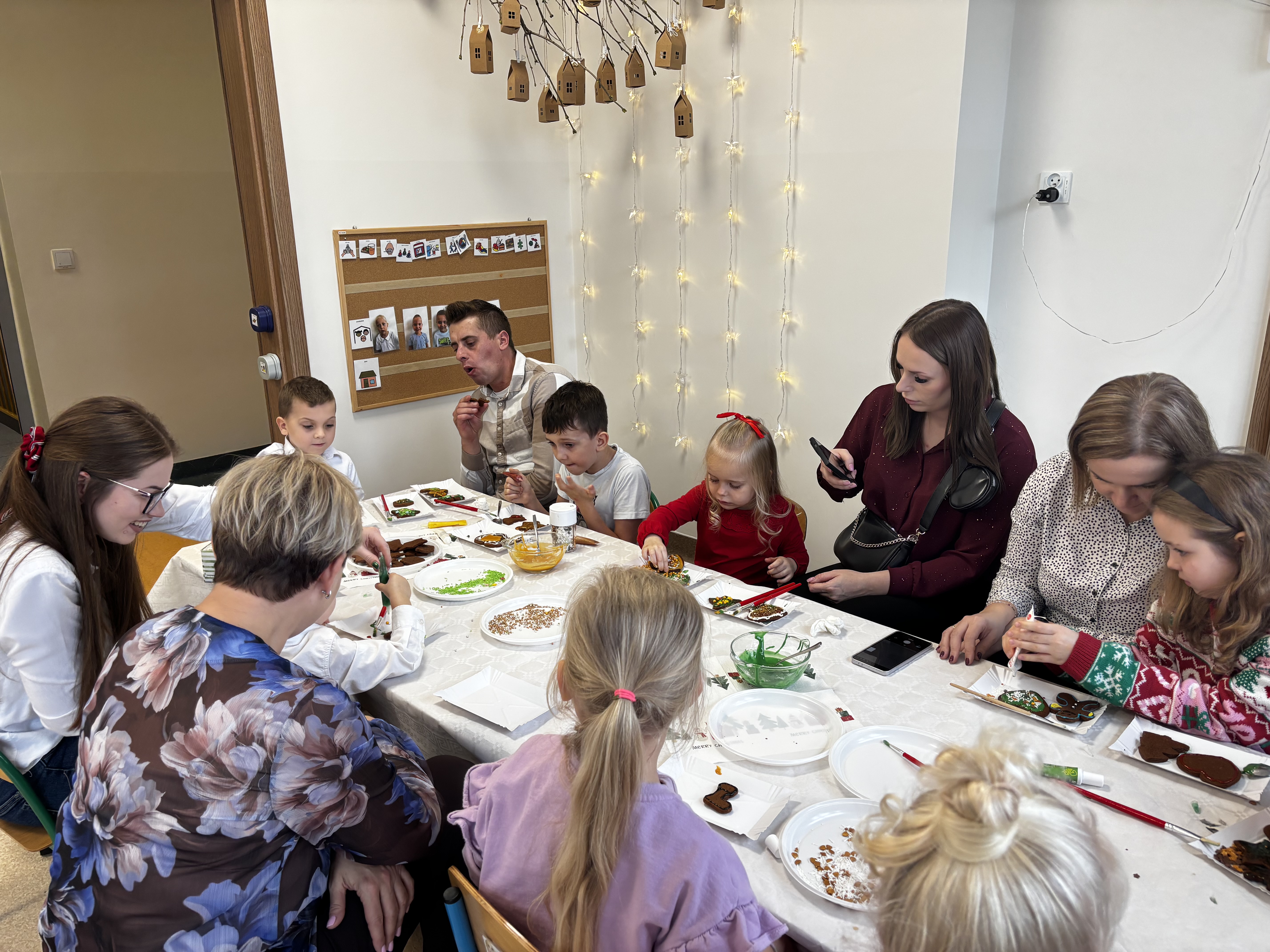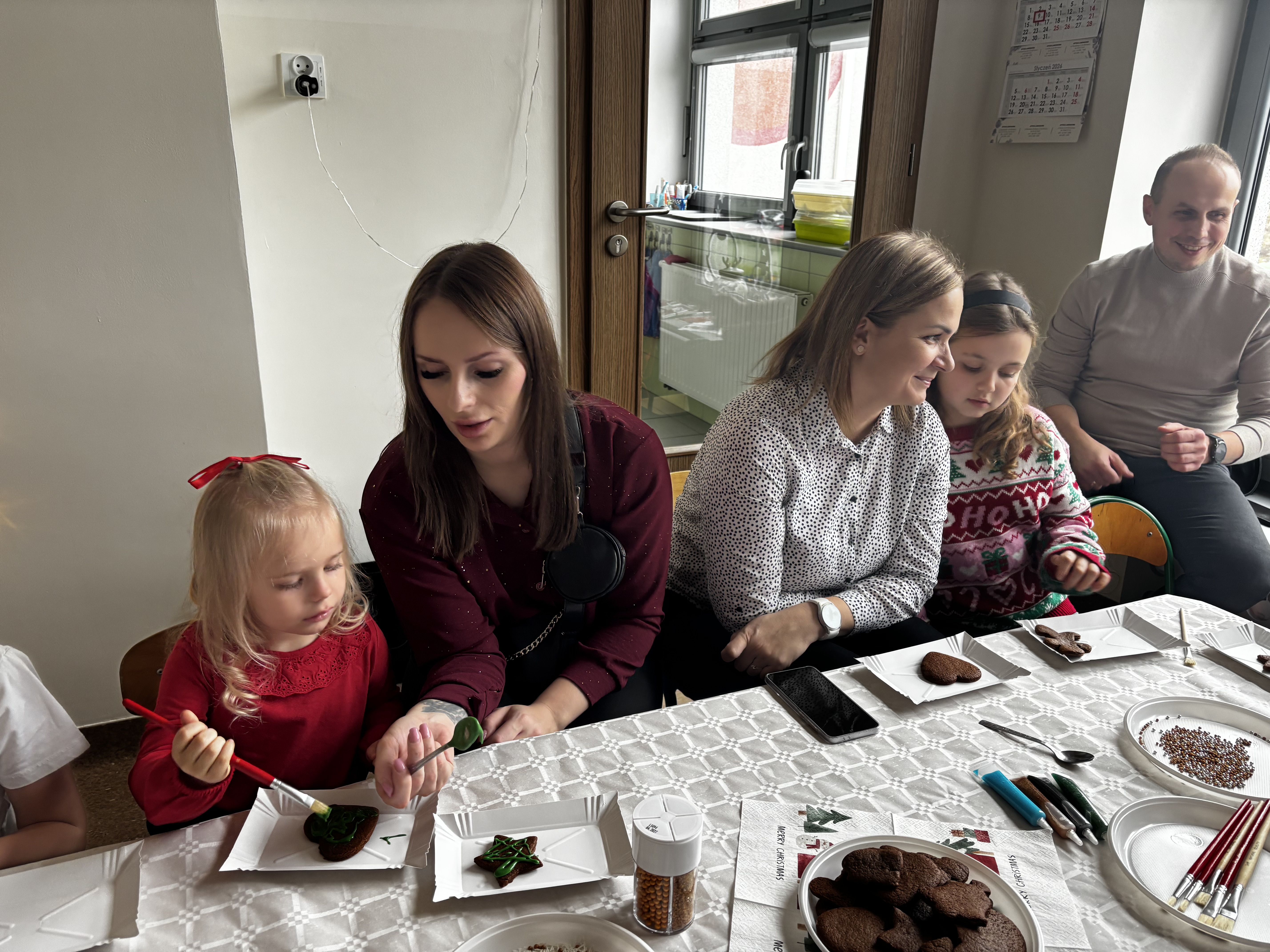 W naszej grupie odbyło się wyjątkowe spotkanie wigilijne z rodzicami. Dzieci zaprezentowały świąteczny występ, który wzruszył i zachwycił wszystkich obecnych. Panie są niezwykle dumne z Sówek-z ich odwagi, zaangażowania i radości, z jaką wystąpili przed rodzicami.Po części artystycznej odbyły się rodzinne warsztaty ozdabiania pierników. To był czas pełen twórczej zabawy, zapachu korzennych przypraw i wspólnego tworzenia małych, słodkich dzieł sztuki. W trakcie spotkania odbyła się także rodzinna sesja zdjęciowa, która stworzyła piękną pamiątkę tego wyjątkowego dnia. Na rodziców czekały również drobne upominki oraz świąteczny poczęstunek.Spotkanie przebiegło w rodzinnej, podniosłej i radosnej atmosferze, wypełnionej uśmiechami i ciepłymi rozmowami. Dziękujemy wszystkim za obecność i wspólne świętowanie!