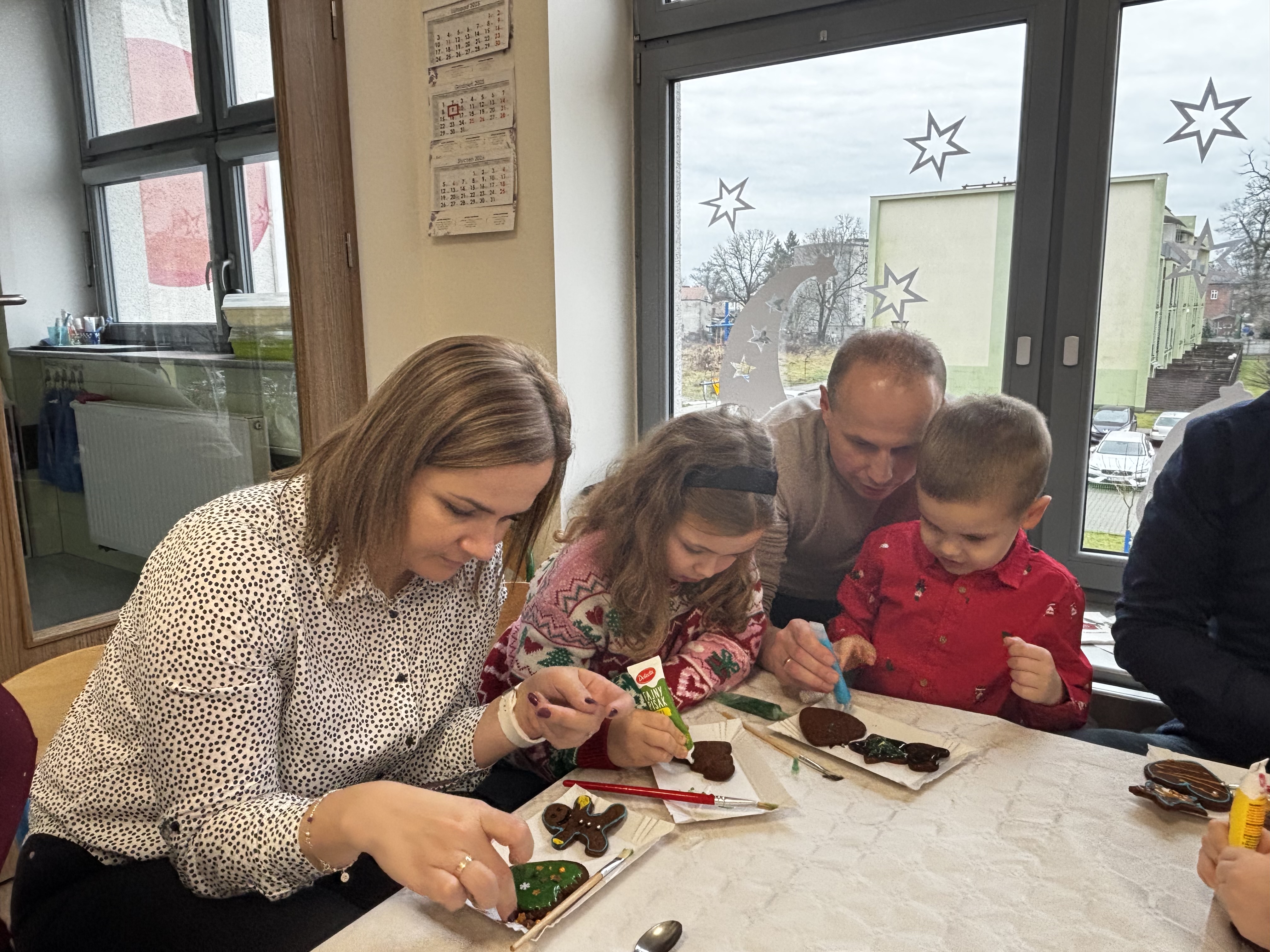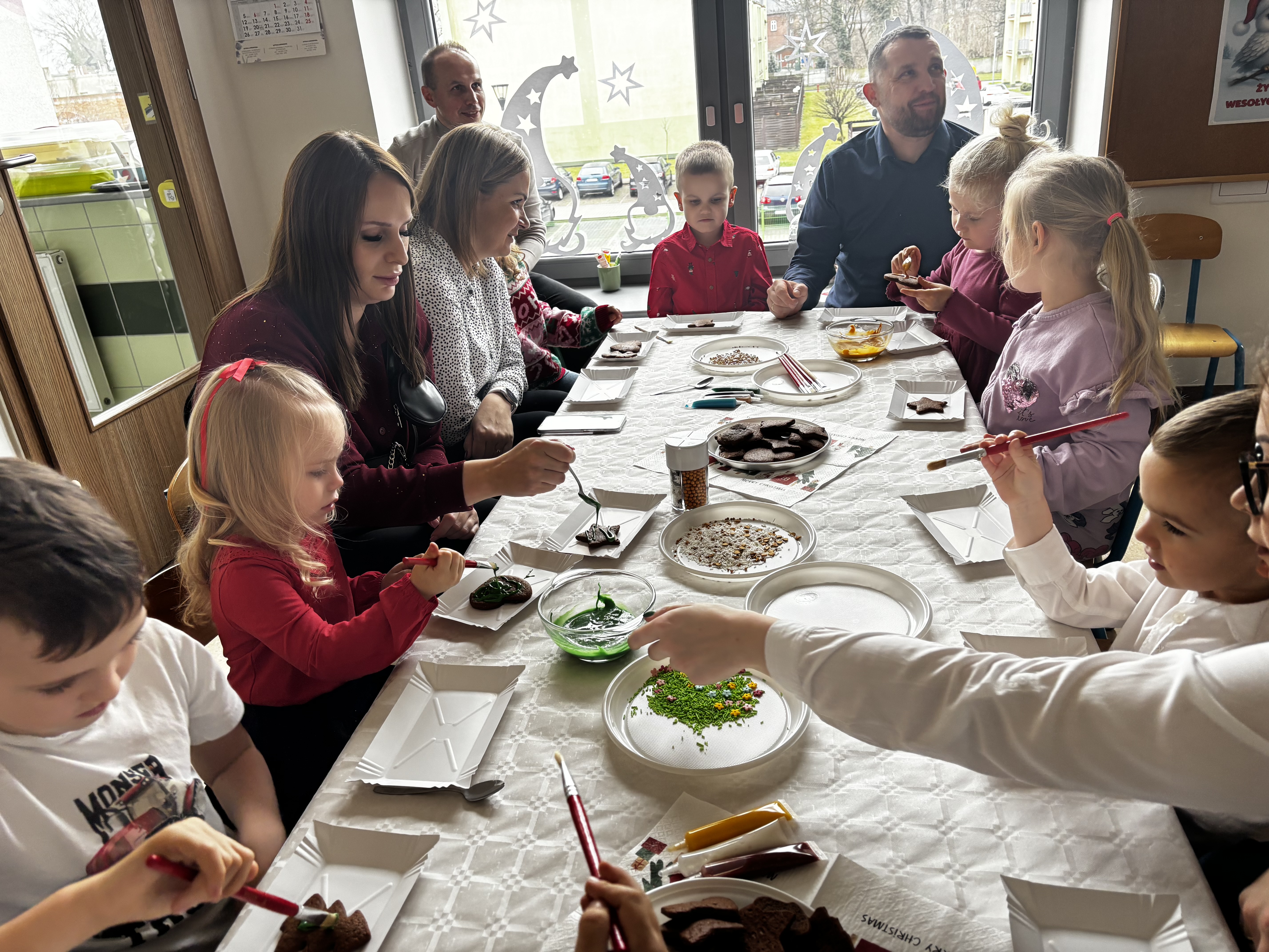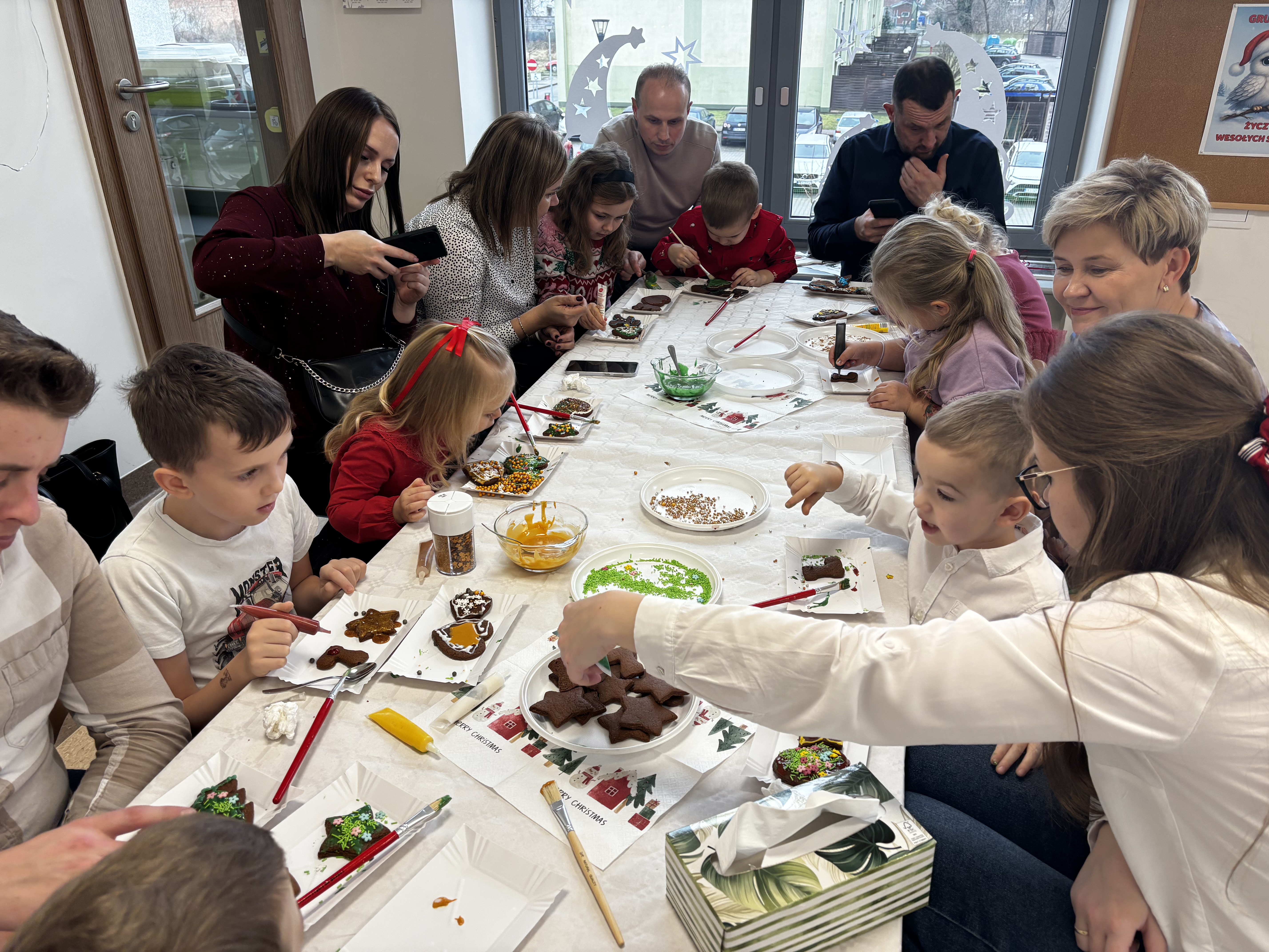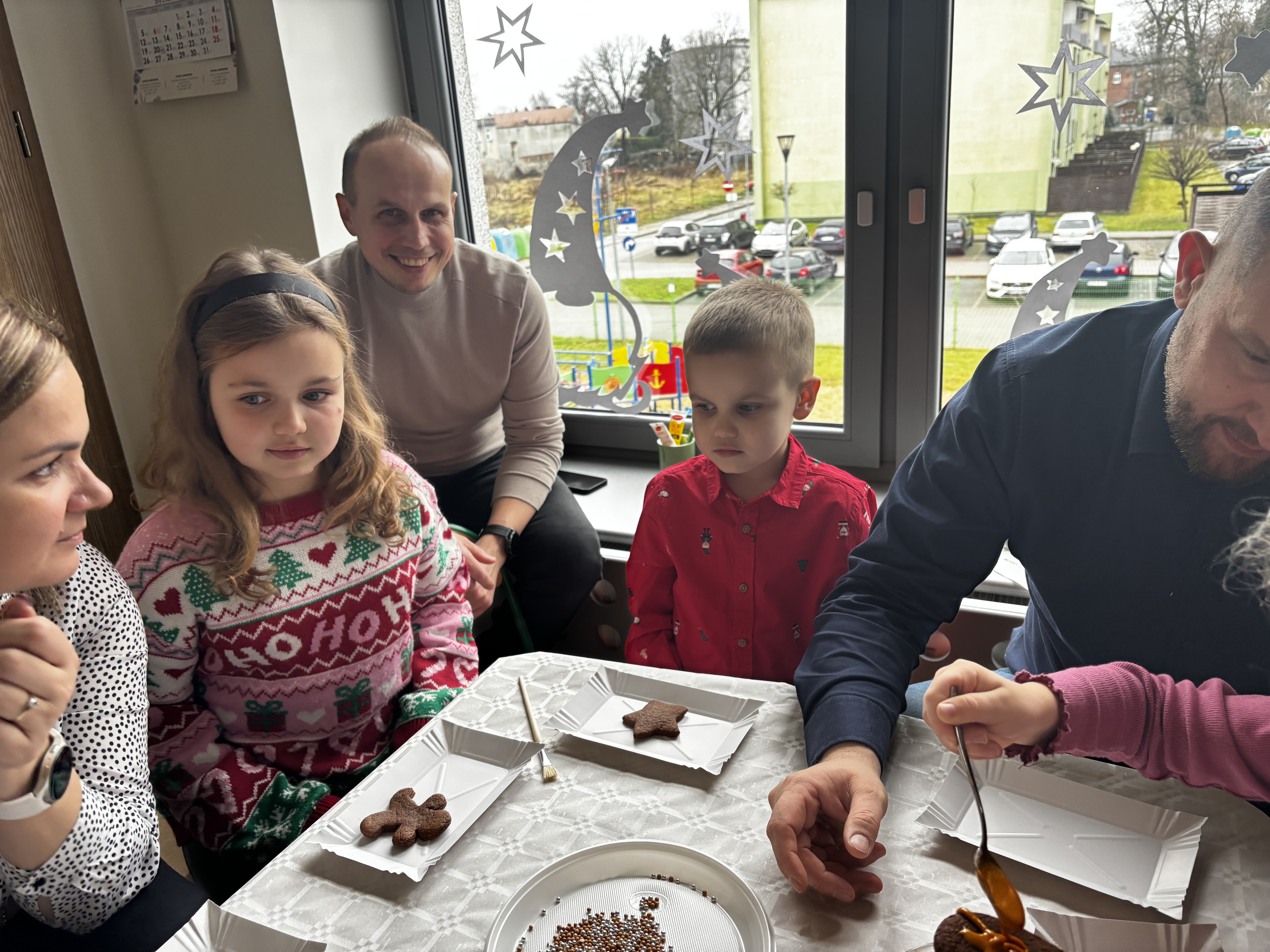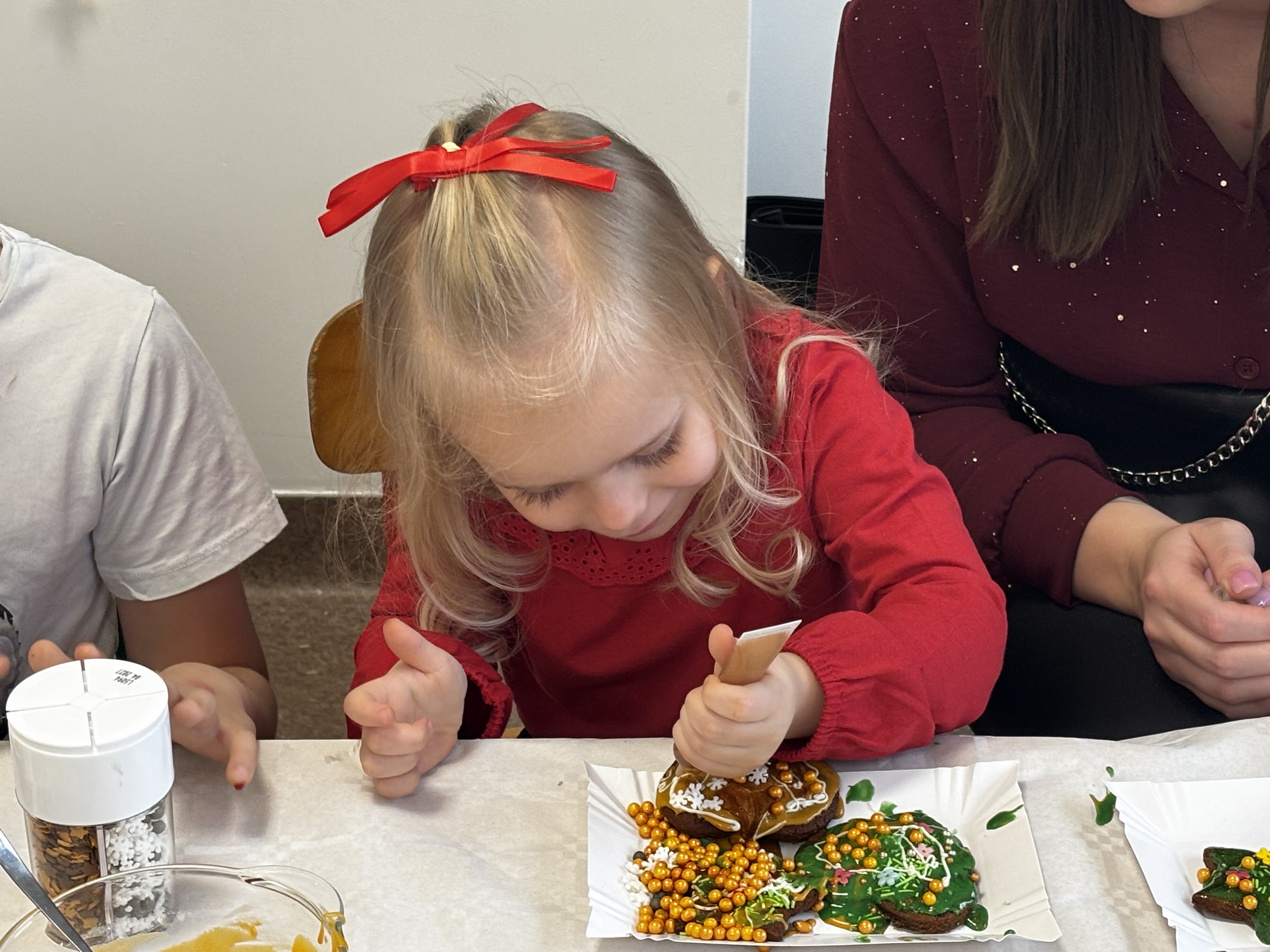 W naszej grupie odbyło się wyjątkowe spotkanie wigilijne z rodzicami. Dzieci zaprezentowały świąteczny występ, który wzruszył i zachwycił wszystkich obecnych. Panie są niezwykle dumne z Sówek-z ich odwagi, zaangażowania i radości, z jaką wystąpili przed rodzicami.Po części artystycznej odbyły się rodzinne warsztaty ozdabiania pierników. To był czas pełen twórczej zabawy, zapachu korzennych przypraw i wspólnego tworzenia małych, słodkich dzieł sztuki. W trakcie spotkania odbyła się także rodzinna sesja zdjęciowa, która stworzyła piękną pamiątkę tego wyjątkowego dnia. Na rodziców czekały również drobne upominki oraz świąteczny poczęstunek.Spotkanie przebiegło w rodzinnej, podniosłej i radosnej atmosferze, wypełnionej uśmiechami i ciepłymi rozmowami. Dziękujemy wszystkim za obecność i wspólne świętowanie!
