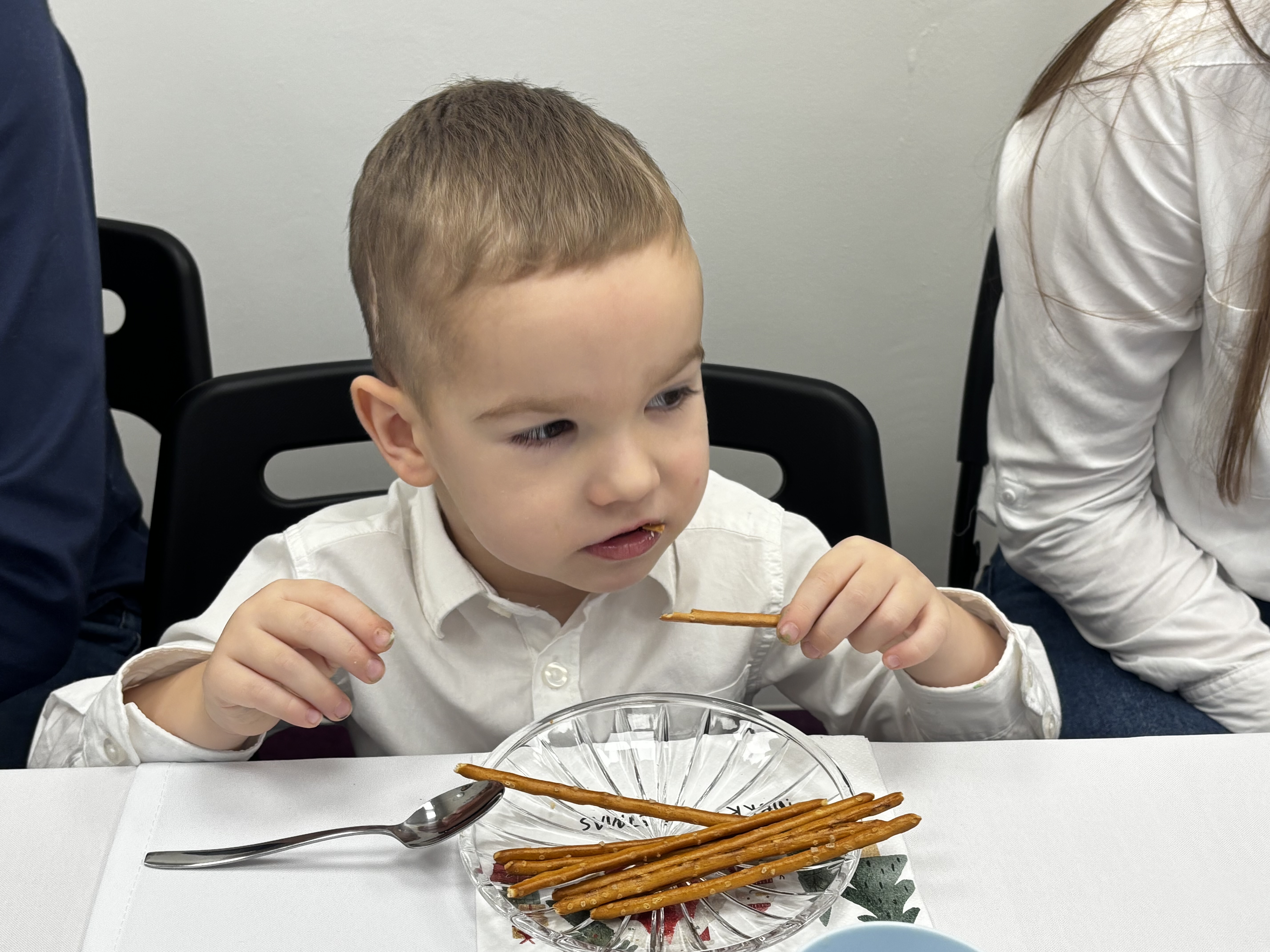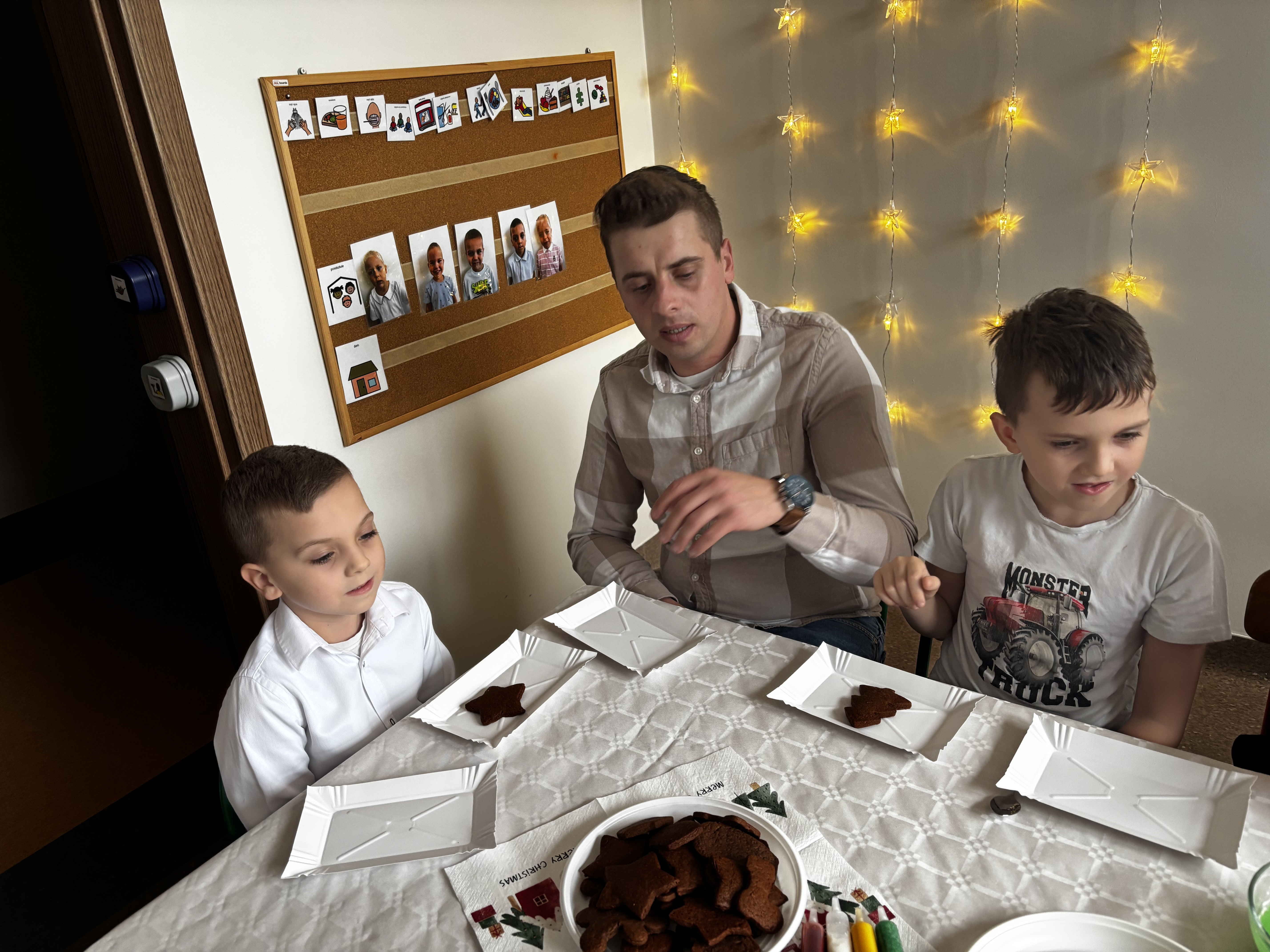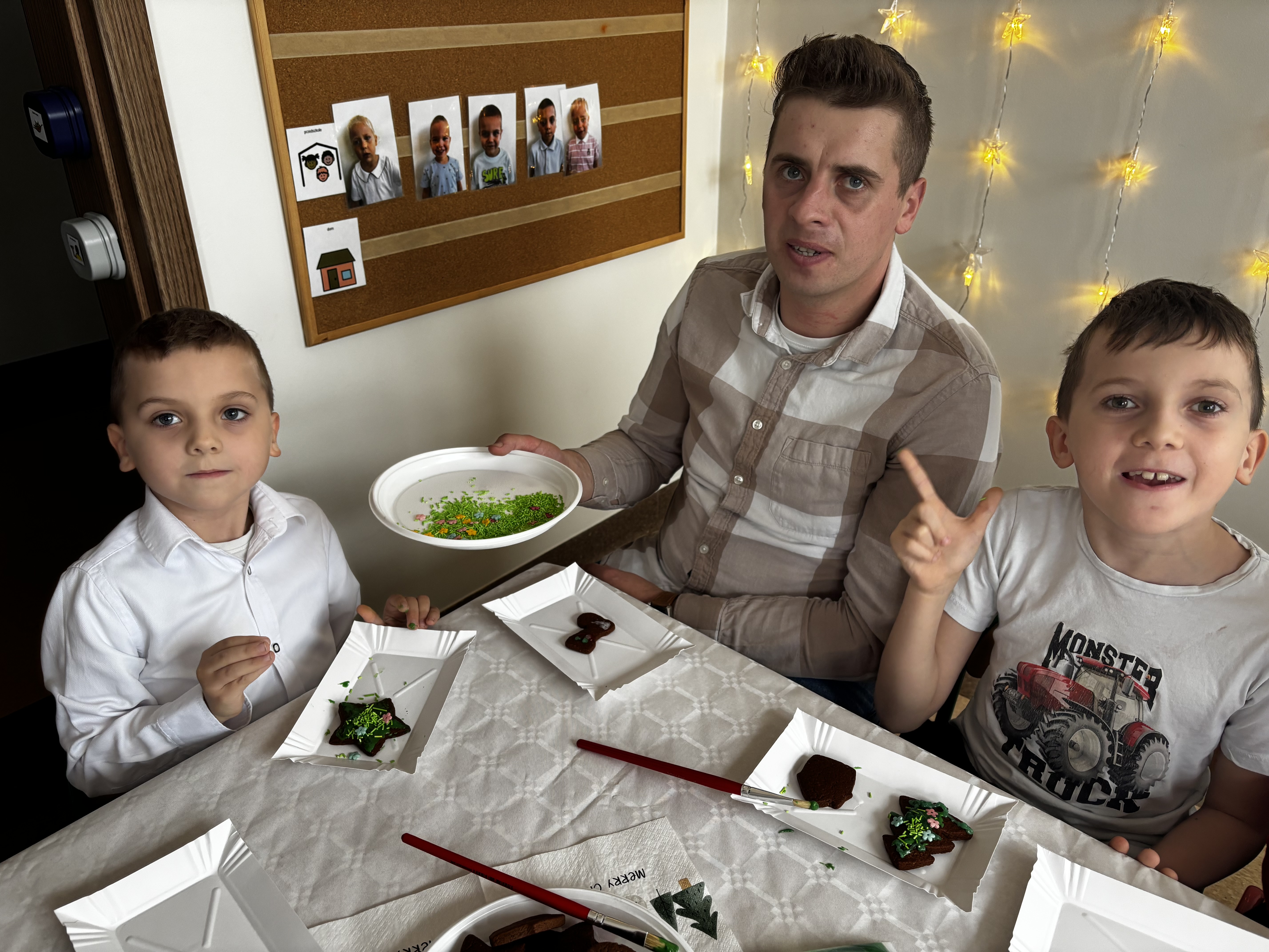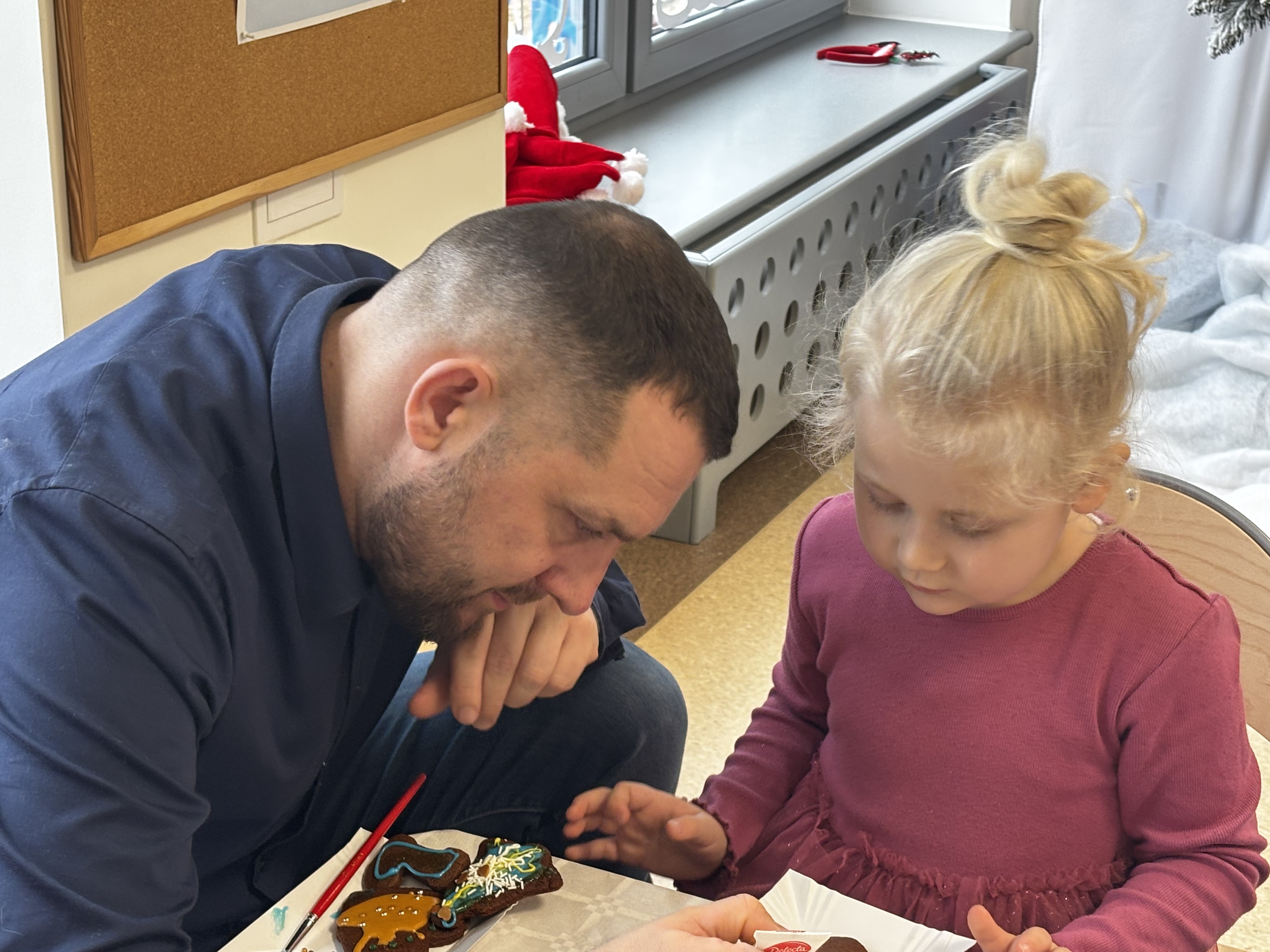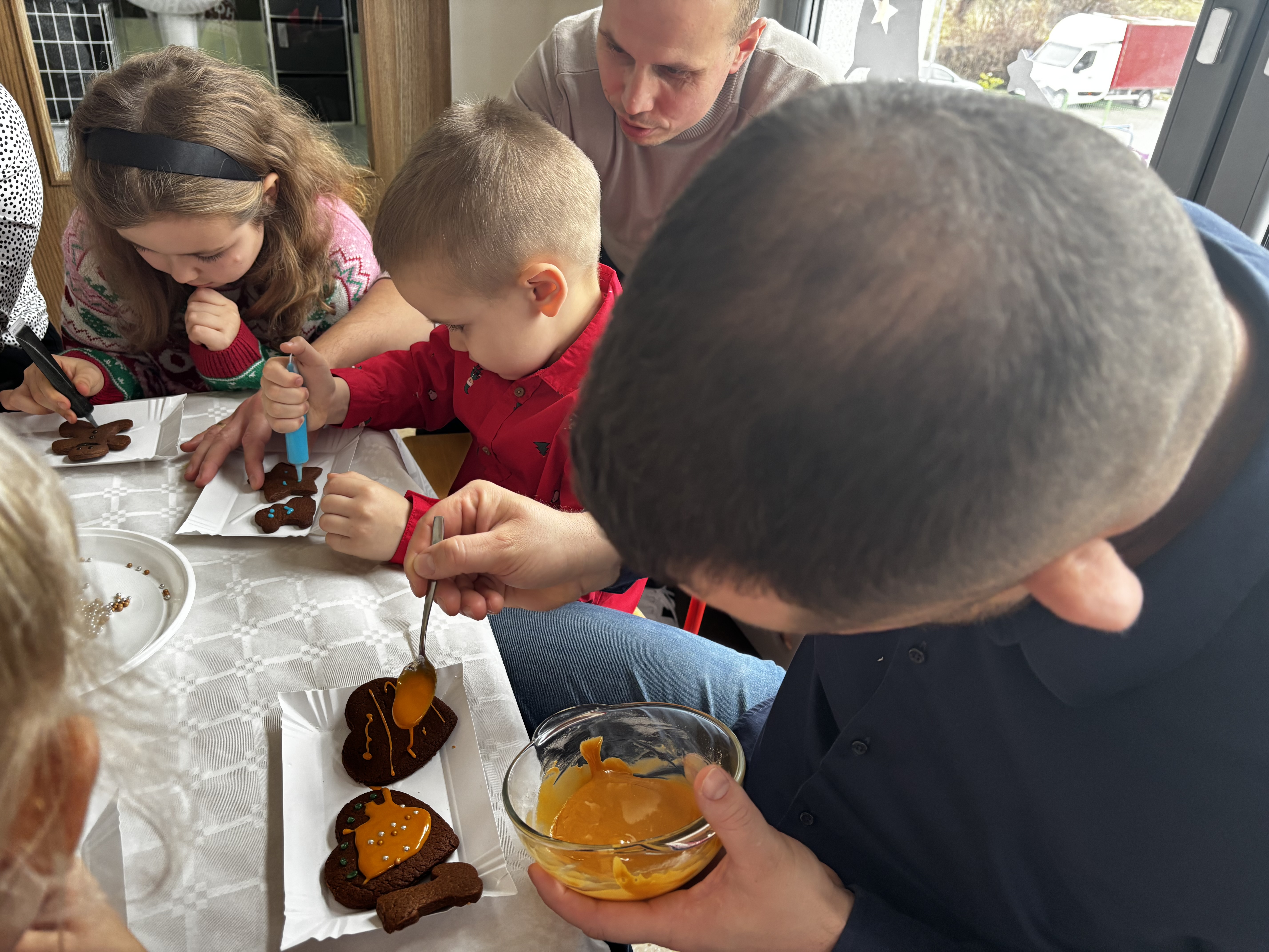 W naszej grupie odbyło się wyjątkowe spotkanie wigilijne z rodzicami. Dzieci zaprezentowały świąteczny występ, który wzruszył i zachwycił wszystkich obecnych. Panie są niezwykle dumne z Sówek-z ich odwagi, zaangażowania i radości, z jaką wystąpili przed rodzicami.Po części artystycznej odbyły się rodzinne warsztaty ozdabiania pierników. To był czas pełen twórczej zabawy, zapachu korzennych przypraw i wspólnego tworzenia małych, słodkich dzieł sztuki. W trakcie spotkania odbyła się także rodzinna sesja zdjęciowa, która stworzyła piękną pamiątkę tego wyjątkowego dnia. Na rodziców czekały również drobne upominki oraz świąteczny poczęstunek.Spotkanie przebiegło w rodzinnej, podniosłej i radosnej atmosferze, wypełnionej uśmiechami i ciepłymi rozmowami. Dziękujemy wszystkim za obecność i wspólne świętowanie!