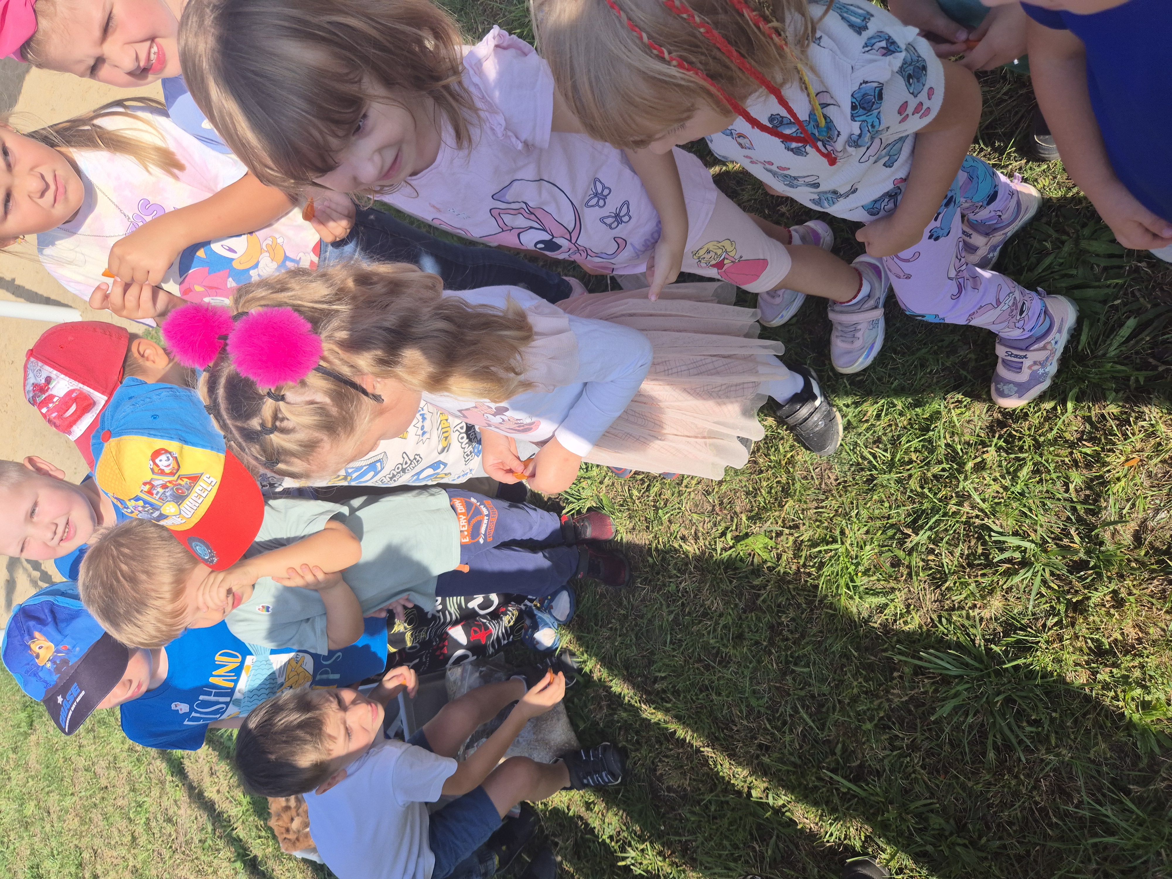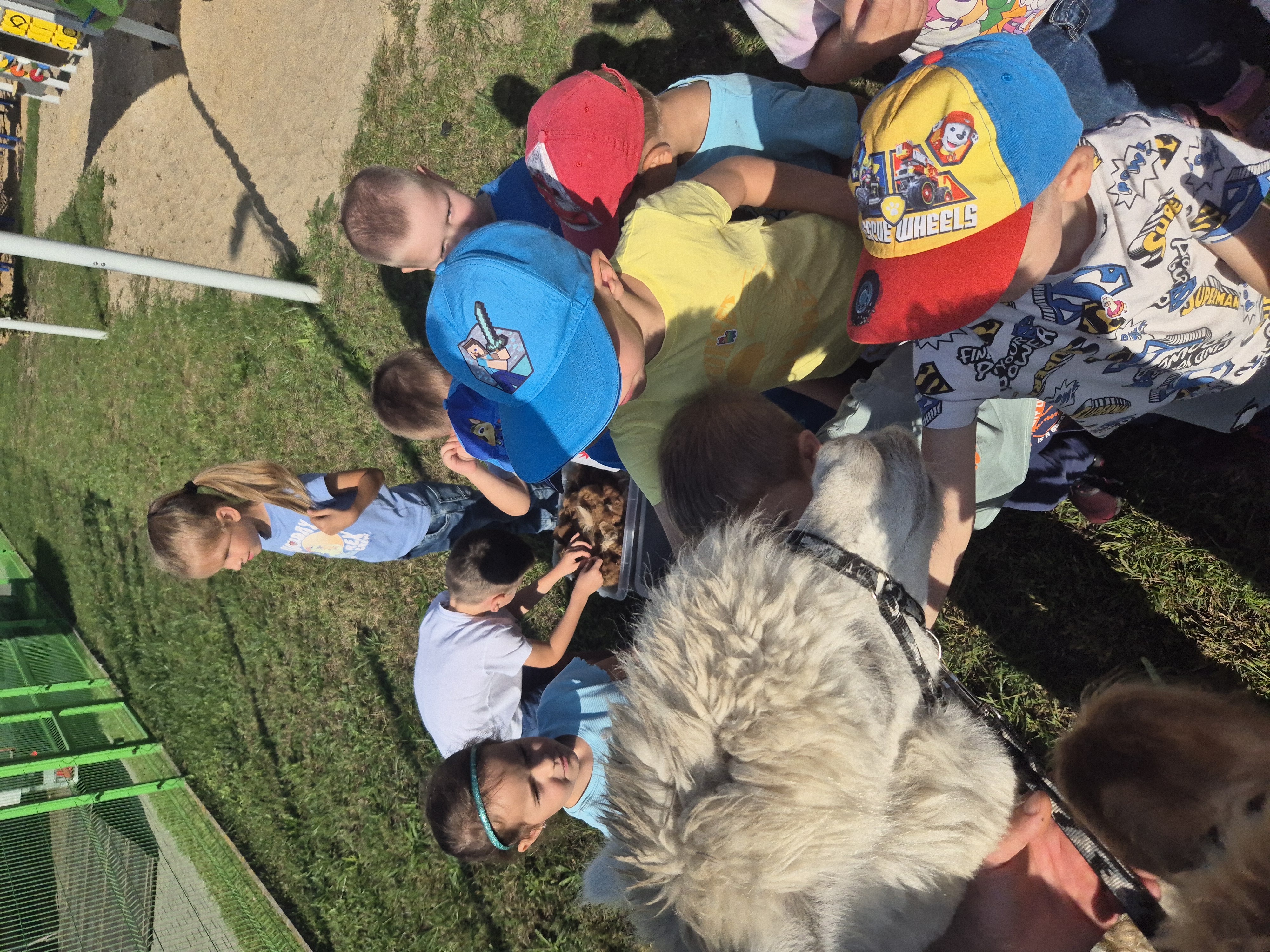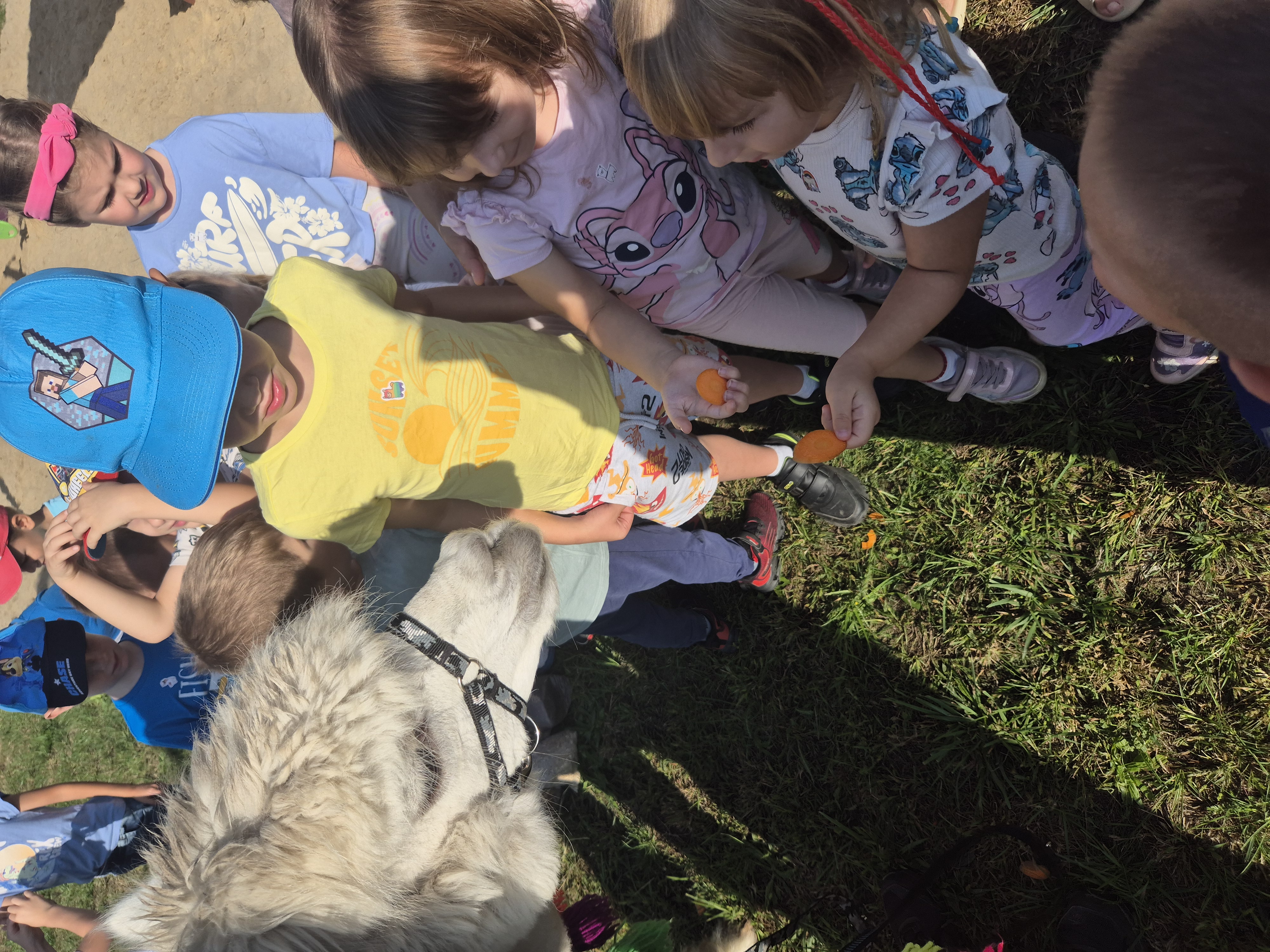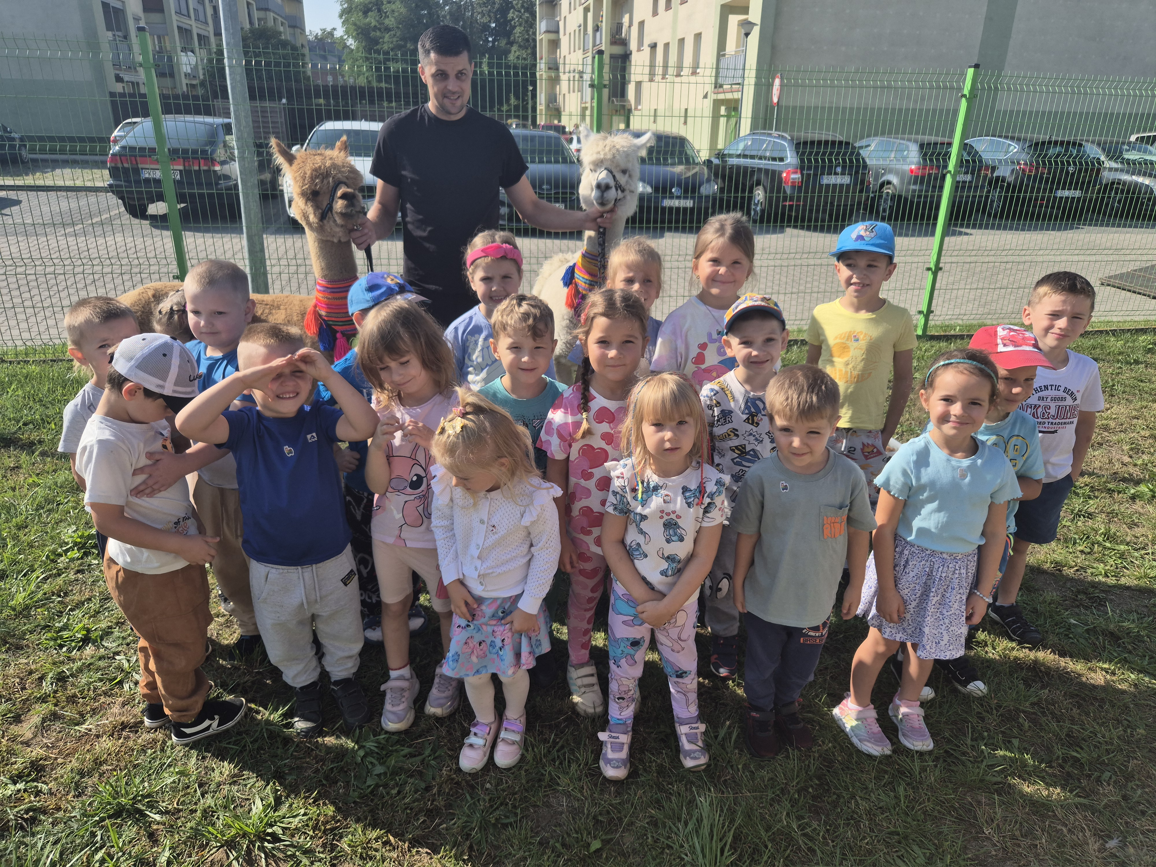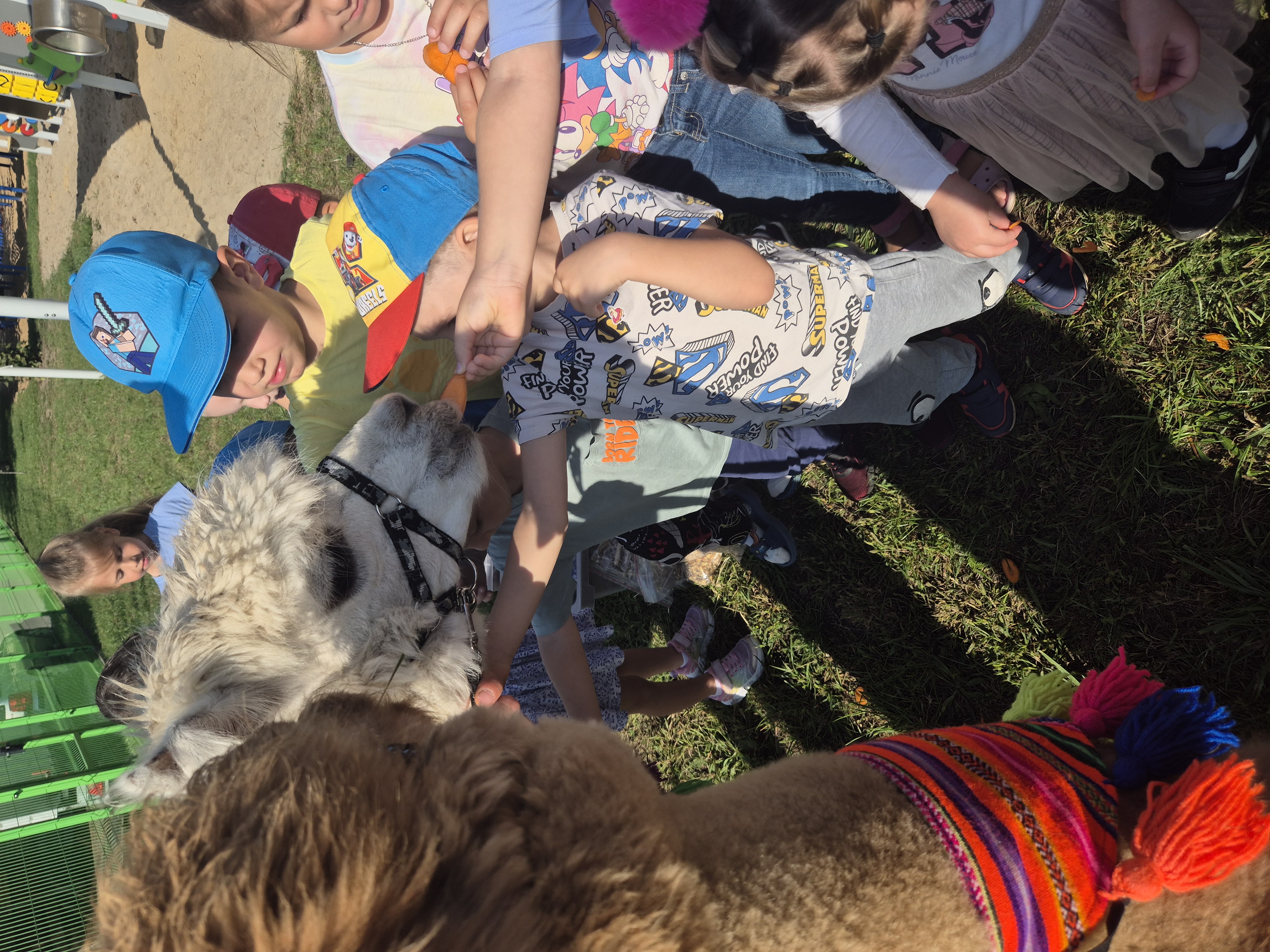 10 września nasze przedszkole odwiedziły alpaki. Alpaki, to zwierzęta o bardzo łagodnym usposobieniu. Są płochliwe i delikatne, zupełnie pozbawione agresji. Szczególnie pozytywnie nastawione są do dzieci. Głaskanie i przytulanie alpak pomaga dzieciom rozluźnić się i otworzyć. Wszystkie przedszkolaki były zachwycone ich wizytą. Śnieżek i Leoś to cudowne alpaki. Spotkanie z nimi było bardzo ciekawą lekcją edukacyjną, podczas której przedszkolaki poznały życie i zwyczaje tych przemiłych zwierząt. Dzieci wysłuchały wielu ciekawostek o alpakach. Każdy miał możliwość nakarmienia zwierzątka jego ulubionym przysmakiem – marchewką.