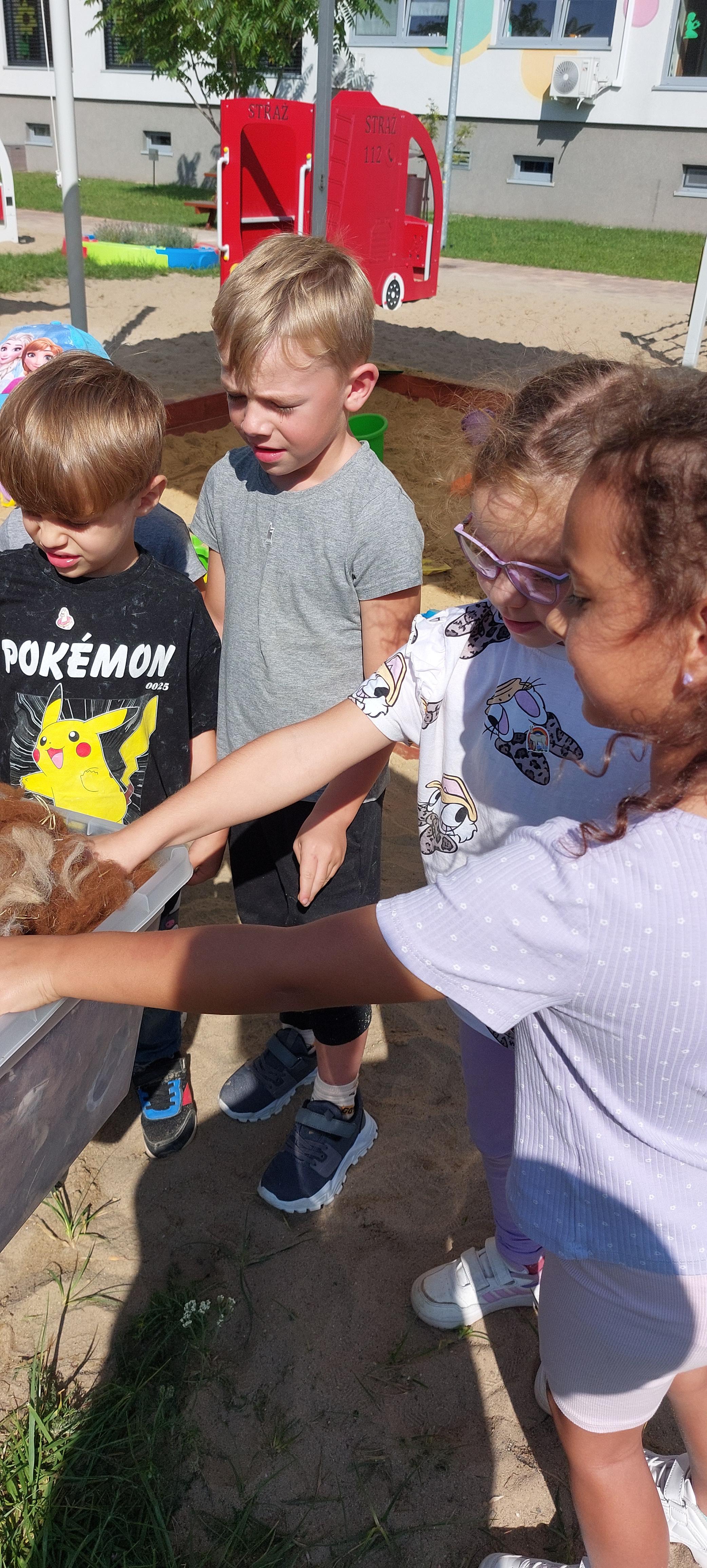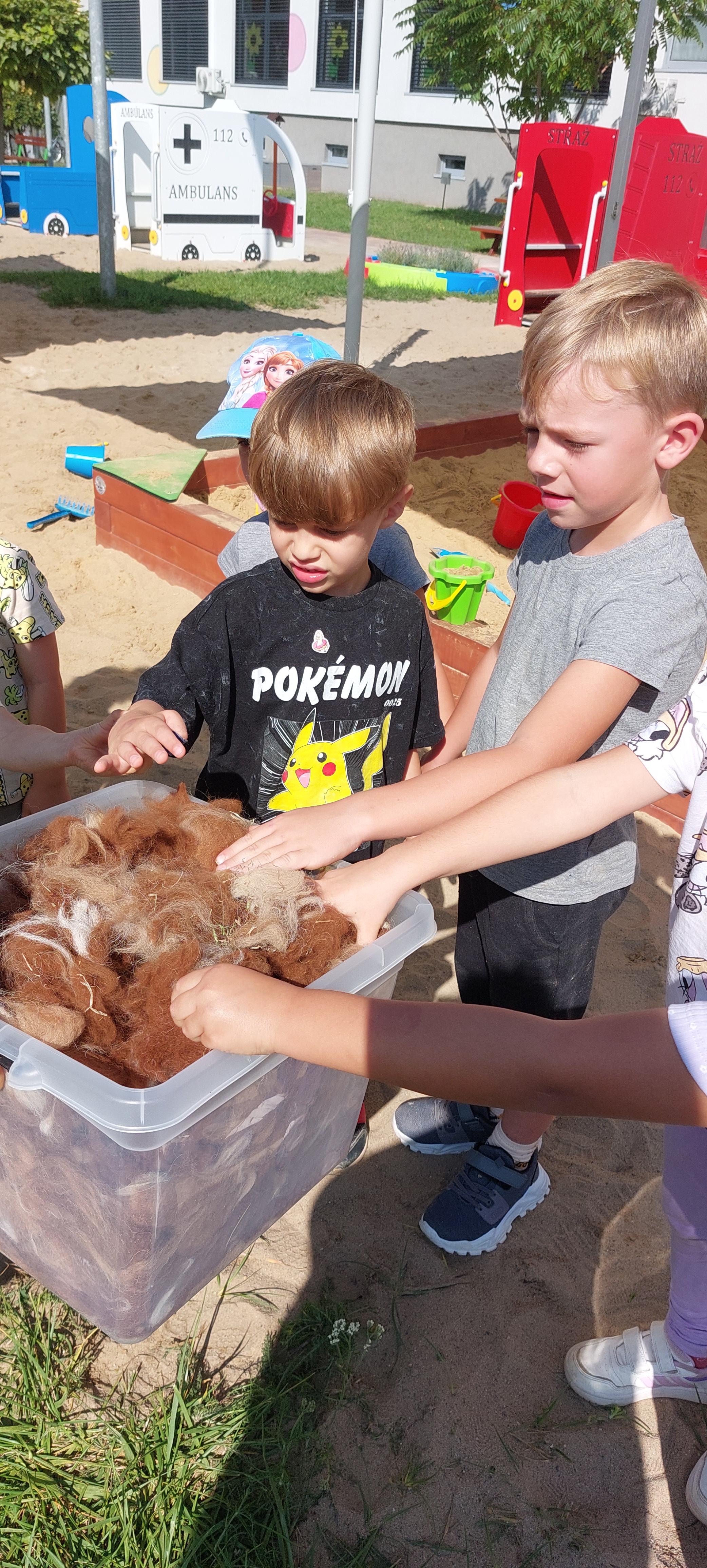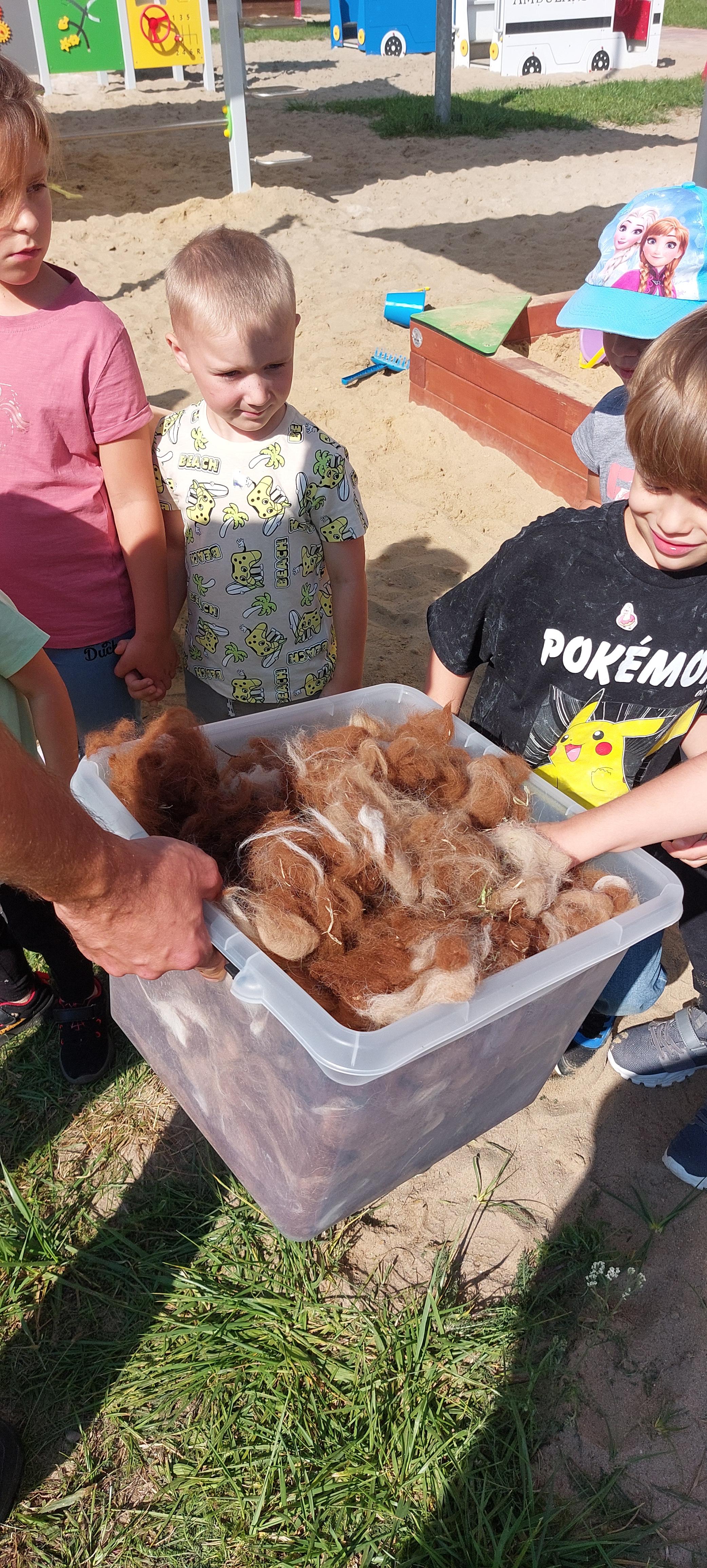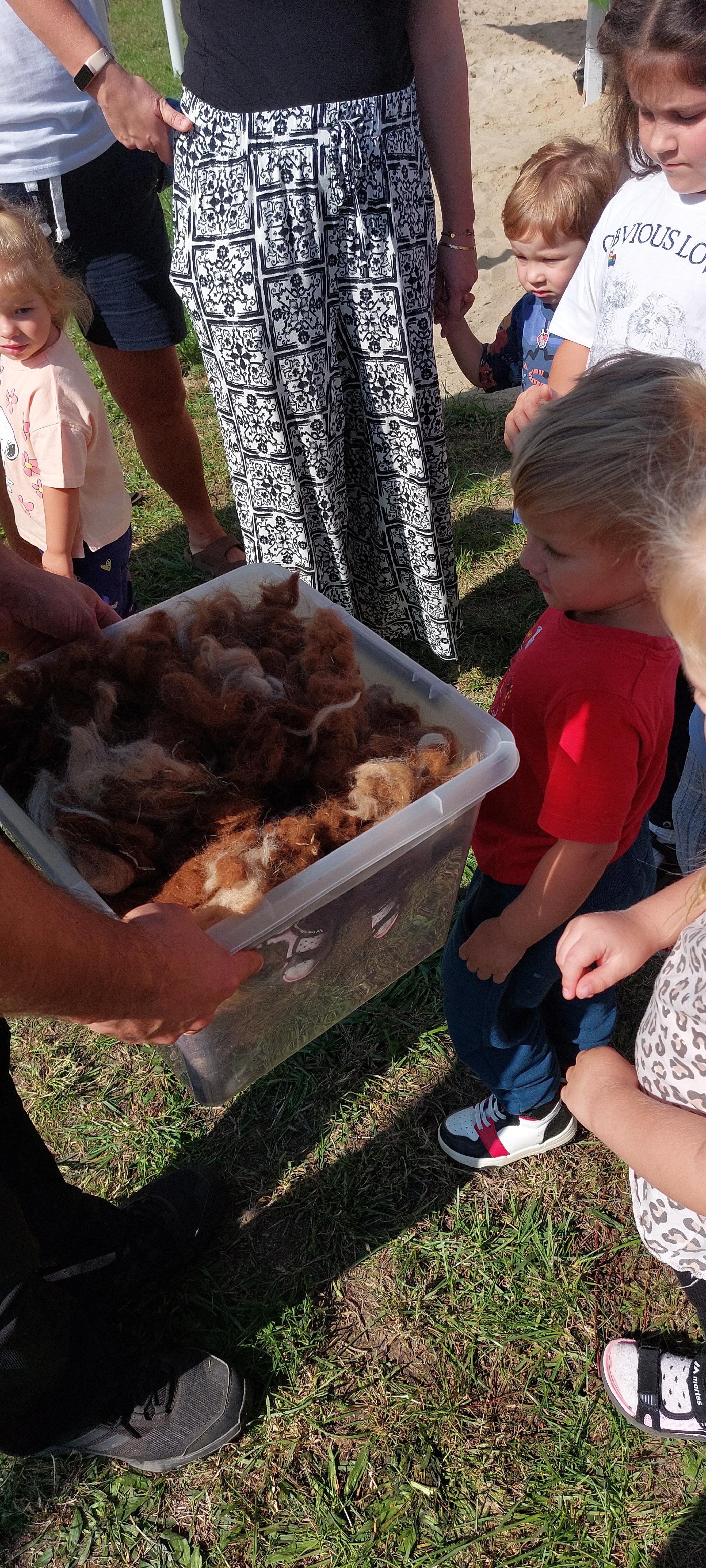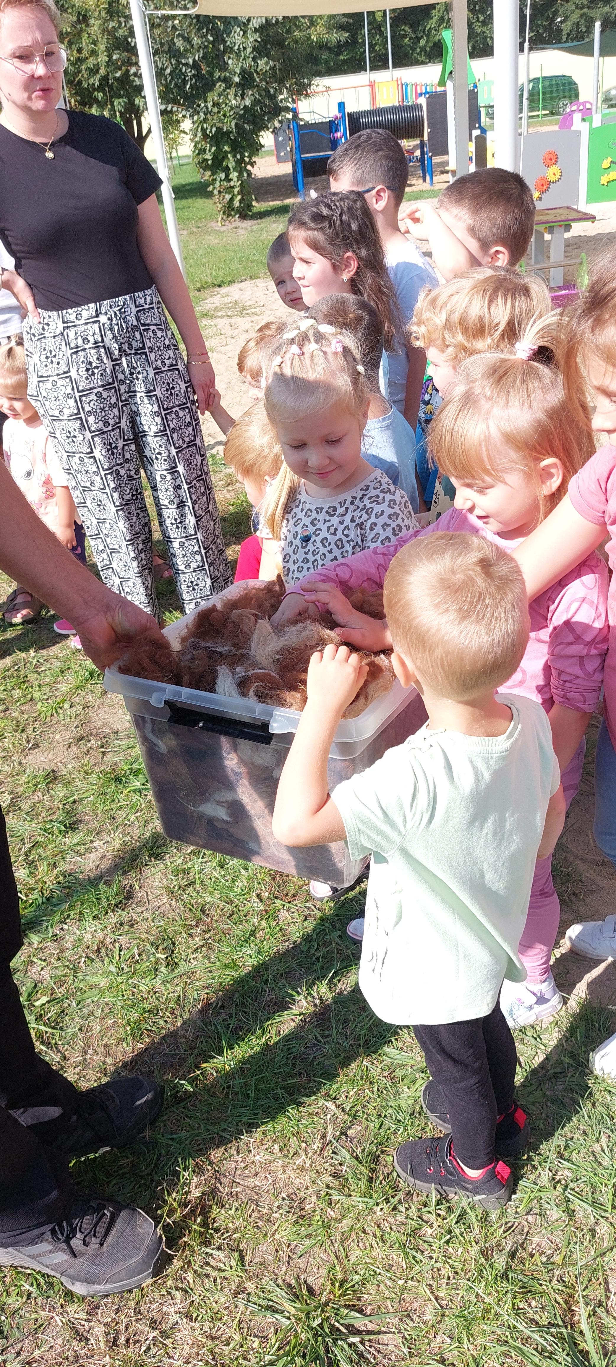 Na początku września do Naszego przedszkola zawitali wyjątkowi goście- Alpaki. Zwierzęta wzbudziły zachwyt u wszystkich dzieci oraz Pań. Dzieci dowiedziały się jak wygląda pielęgnacja zwierząt, jaki jest ulubiony przysmak, w jakiej pozycji śpią oraz jak często zażywają kąpieli. Każdy przedszkolak miał okazję nakarmić zwierzątko. Wizyta zwierząt sprawiła wszystkim dzieciom wiele radości, a dla niektórych przedszkolaków była to okazja do zmierzenia się z własnym lękiem.