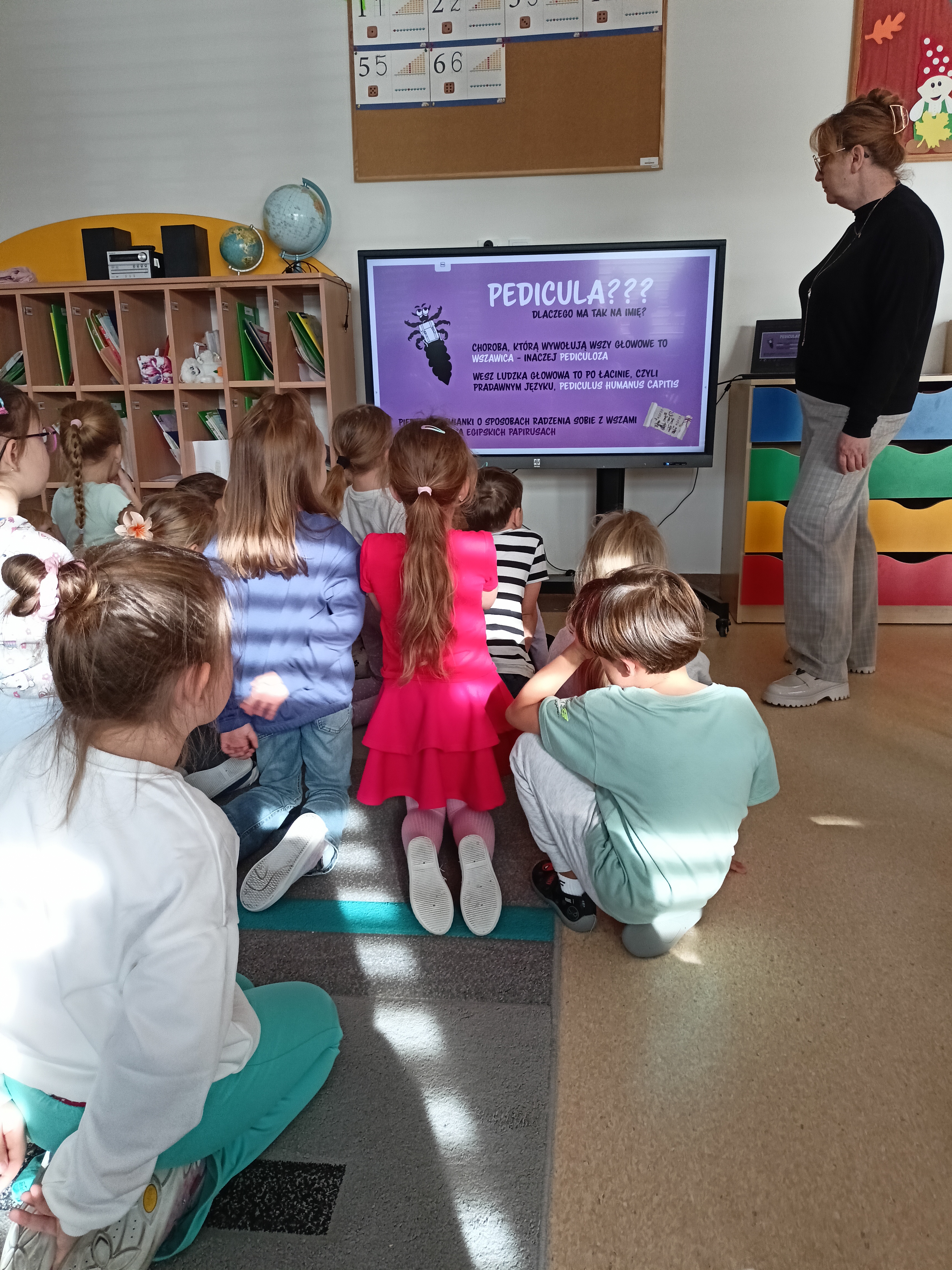 ,,Gdy coś chodzi po głowie"- taki program realizowały dziś z dziećmi panie z sanepidu, dotyczy on profilaktyki wszawicy.