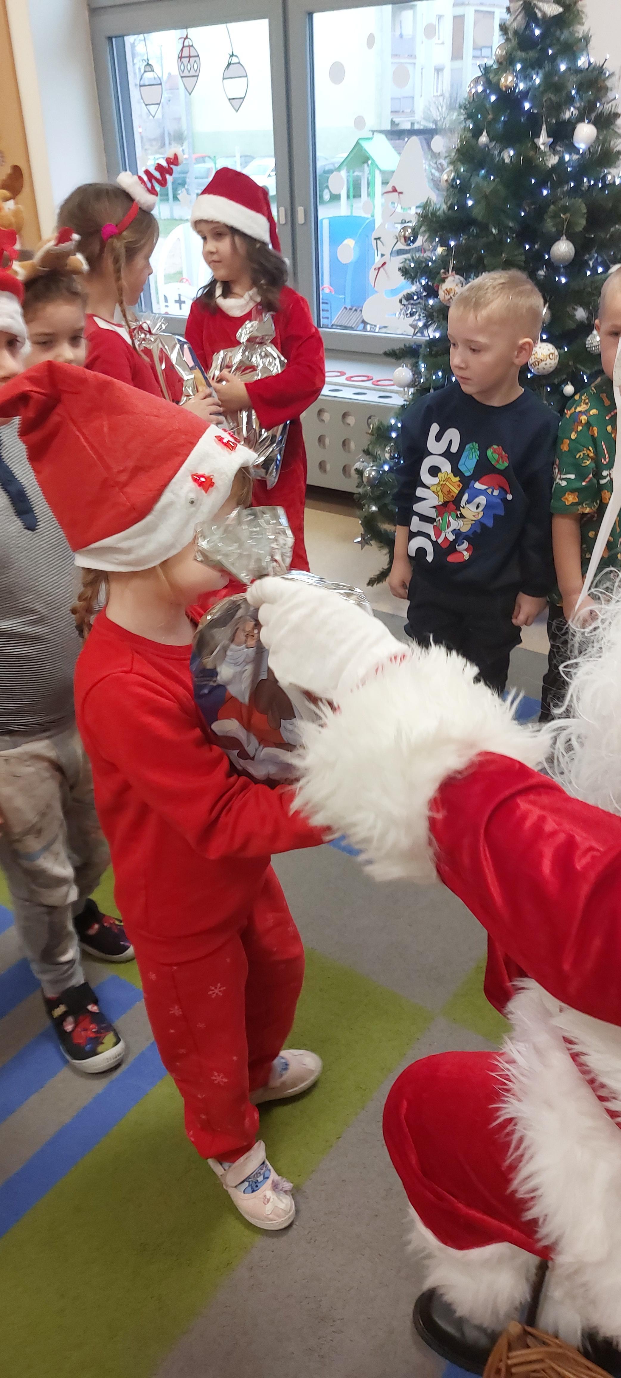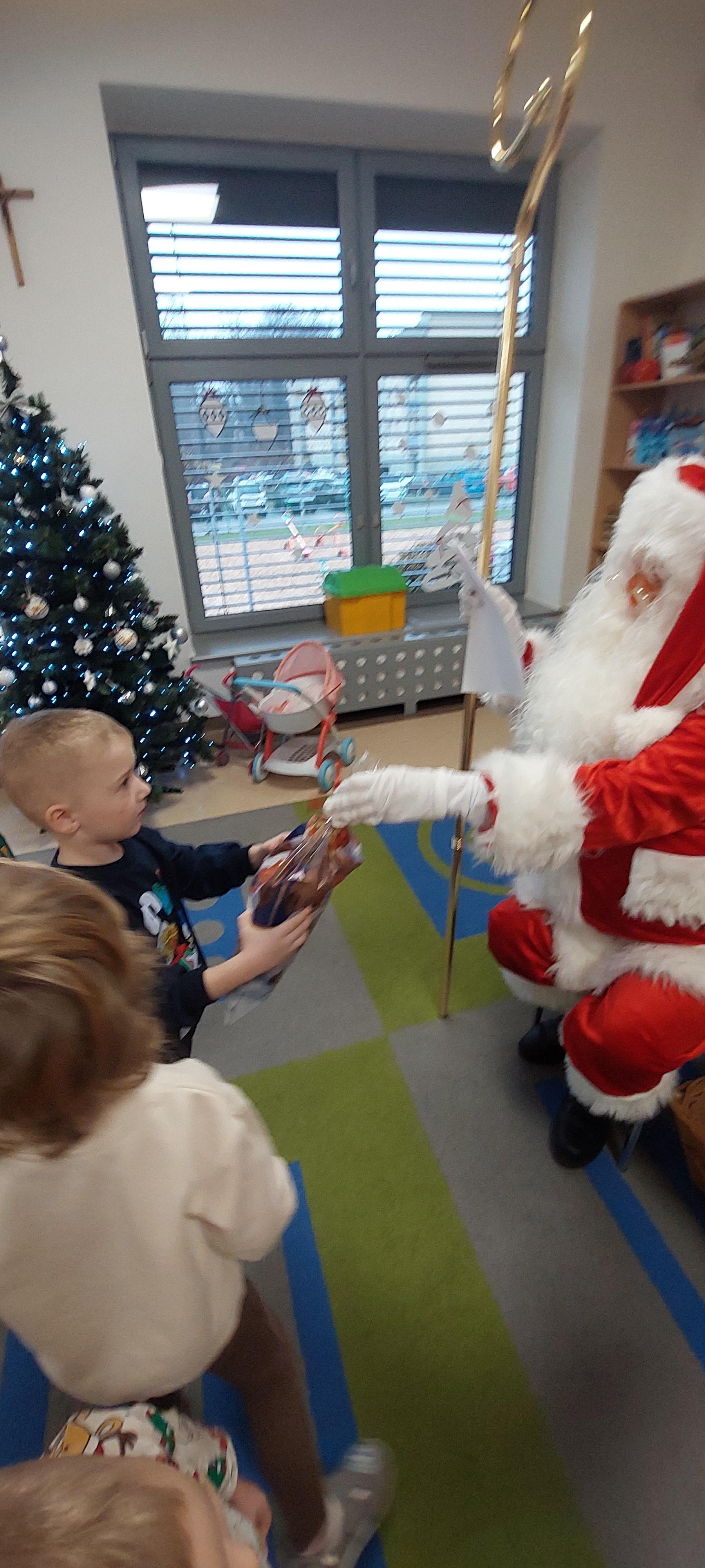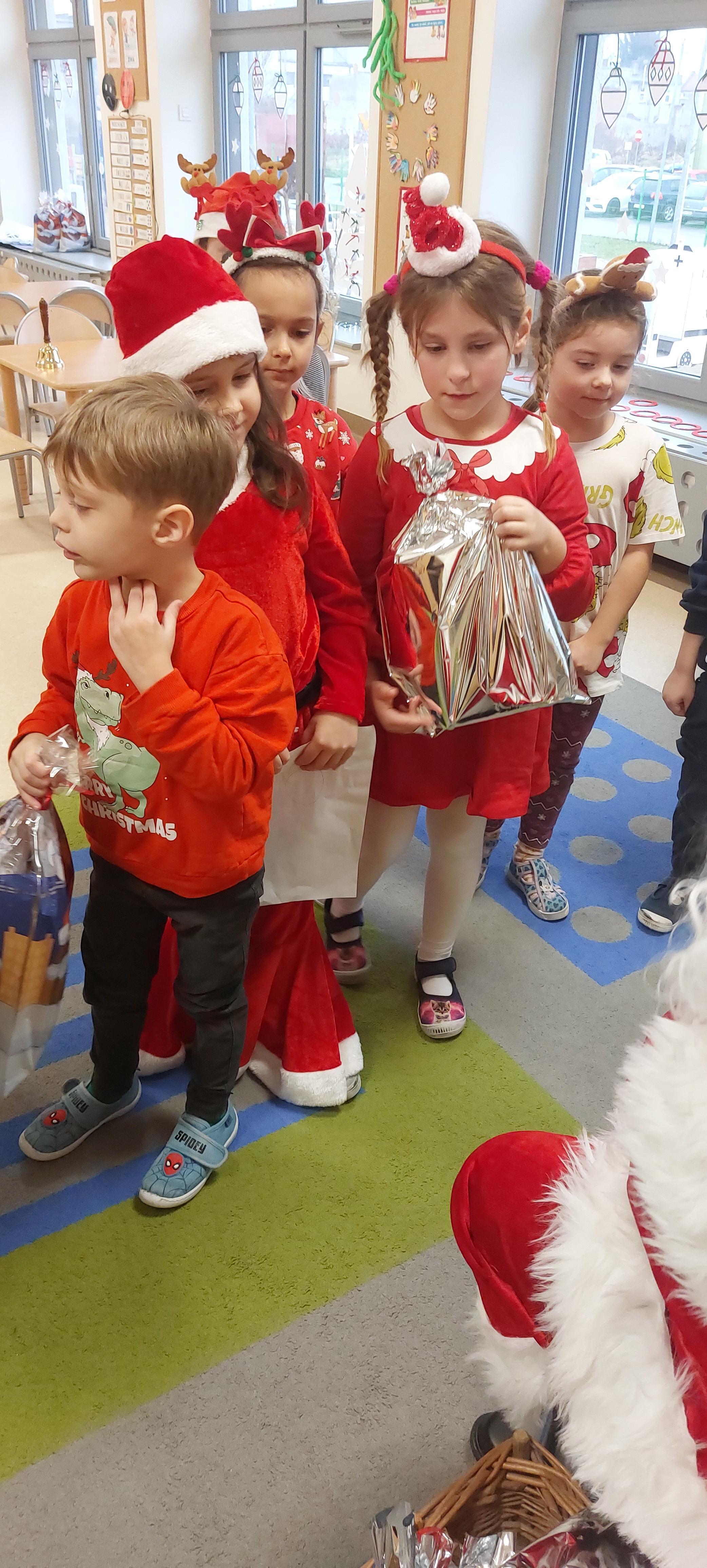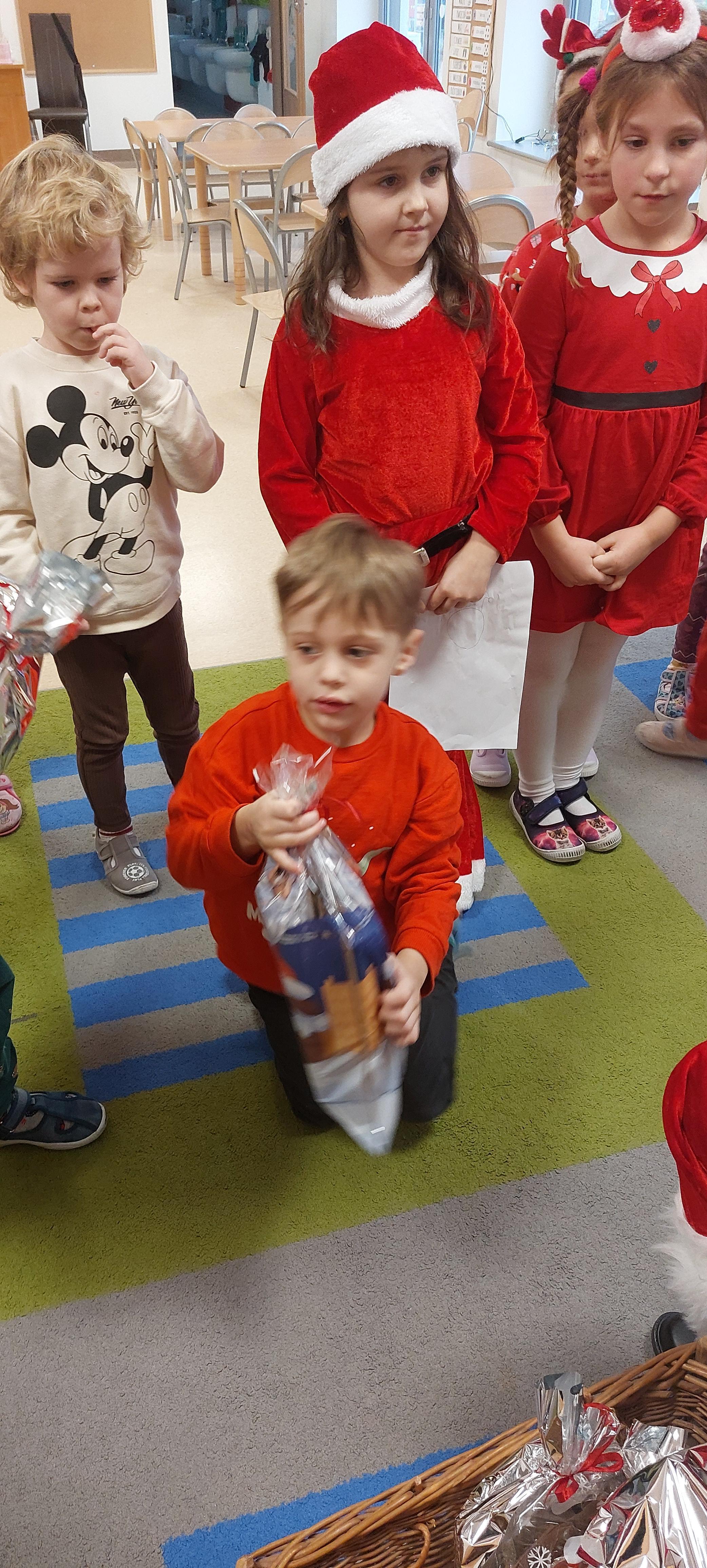 5 grudnia przedszkolaki wyglądały wyjątkowo - "Mikołajkowo". Od rana panował gwar i radość, dzieci z wielką niecierpliwością oczekiwały na przyjście niezwykłego gościa. Święty Mikołaj od rana witał wszystkie dzieci. Wręczył każdemu dziecku wspaniały prezent. Śmiechu i radości było wiele. Na twarzach dzieci było widać wielkie zadowolenie oraz ogromną radość!