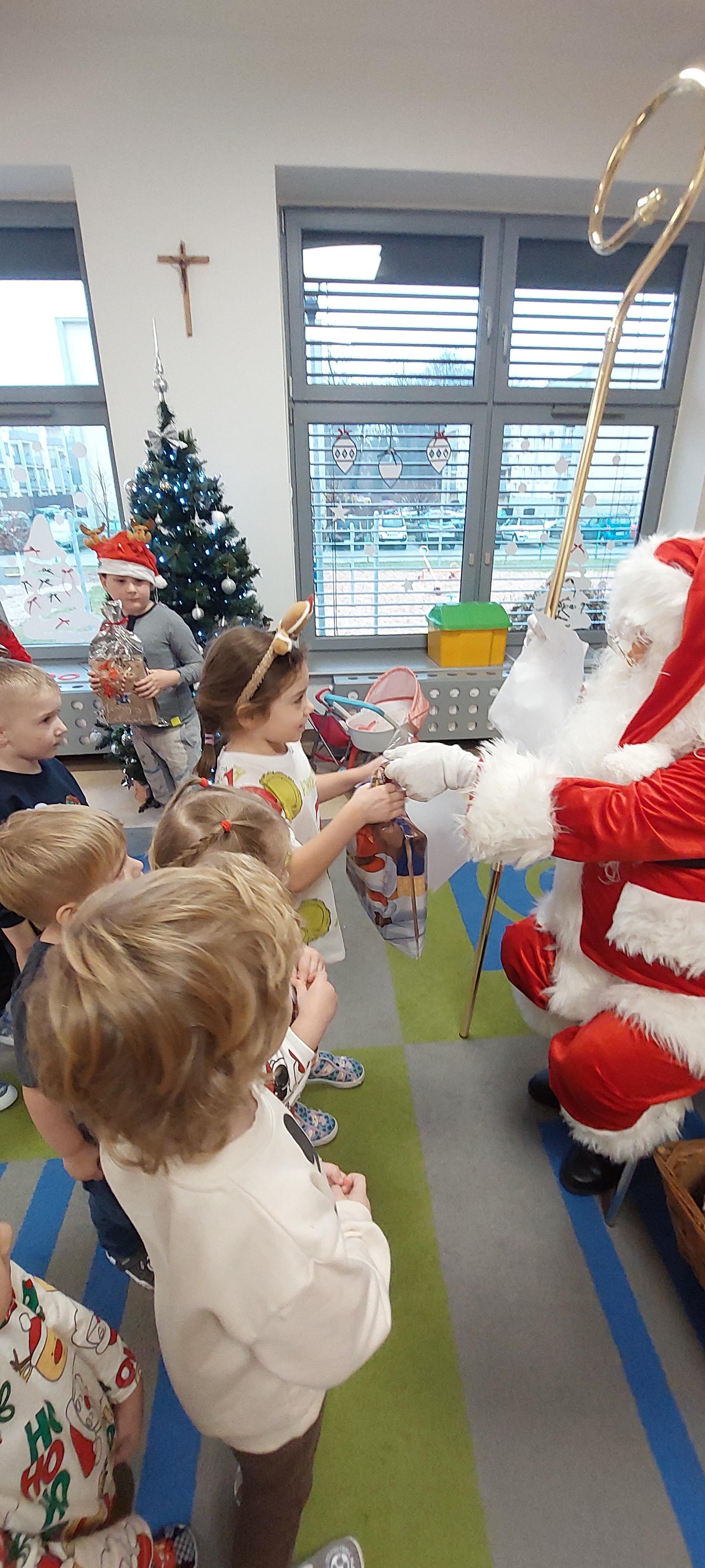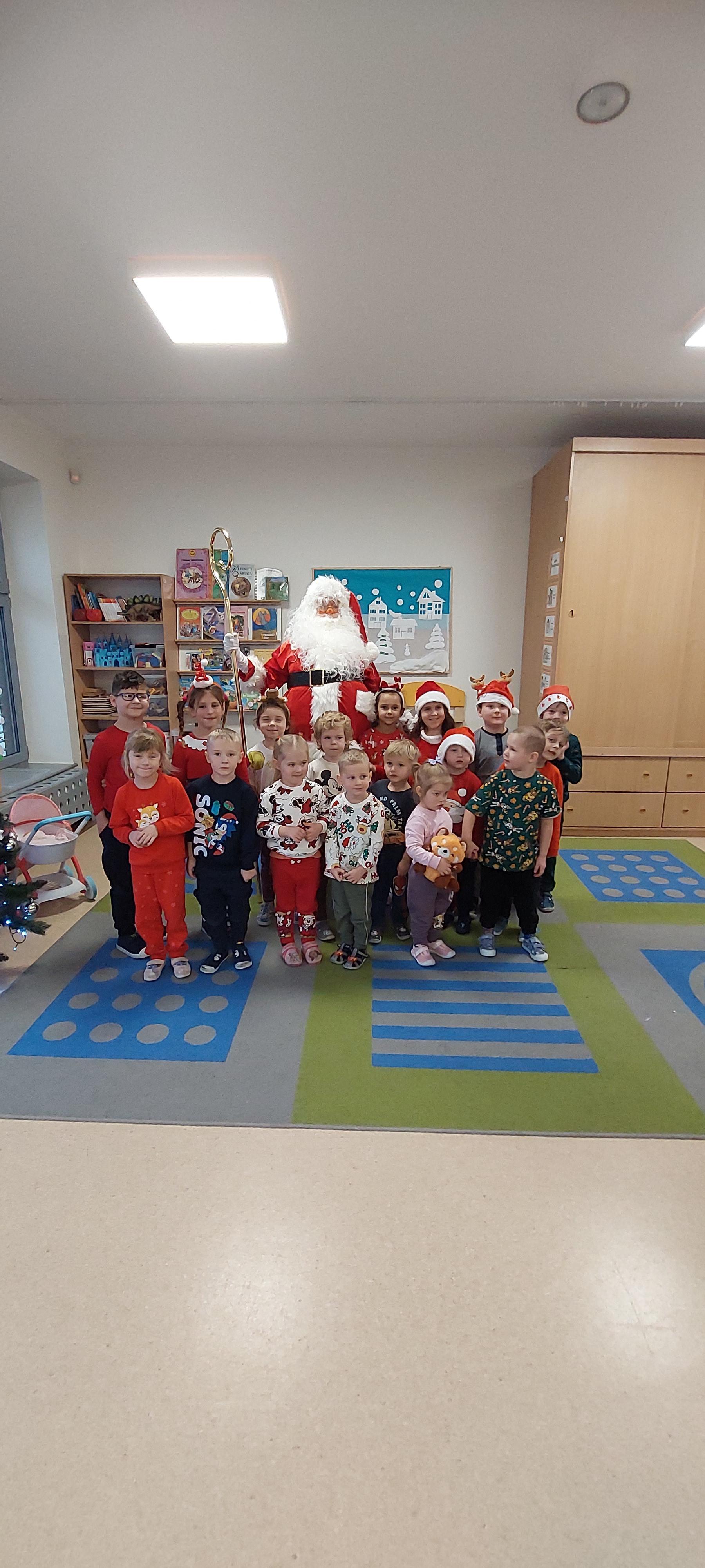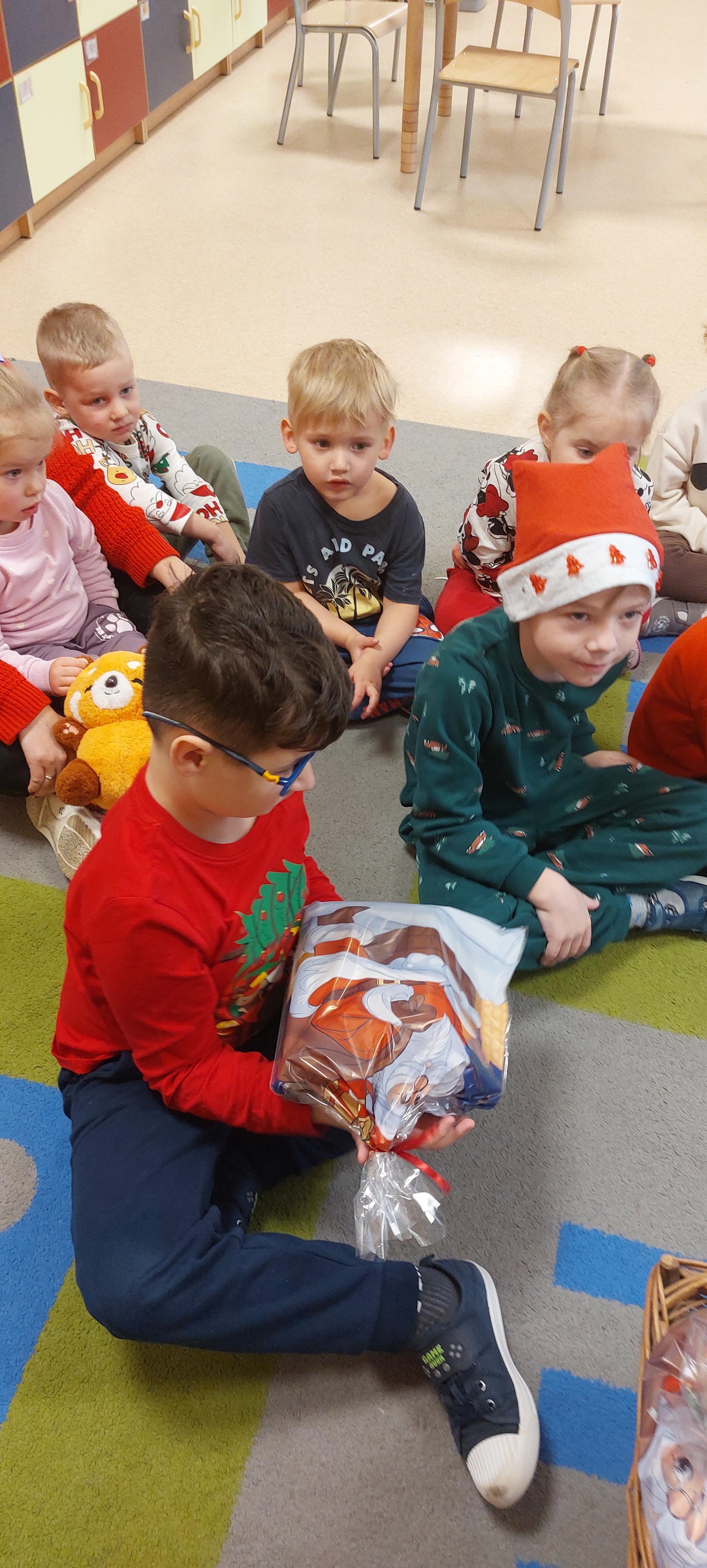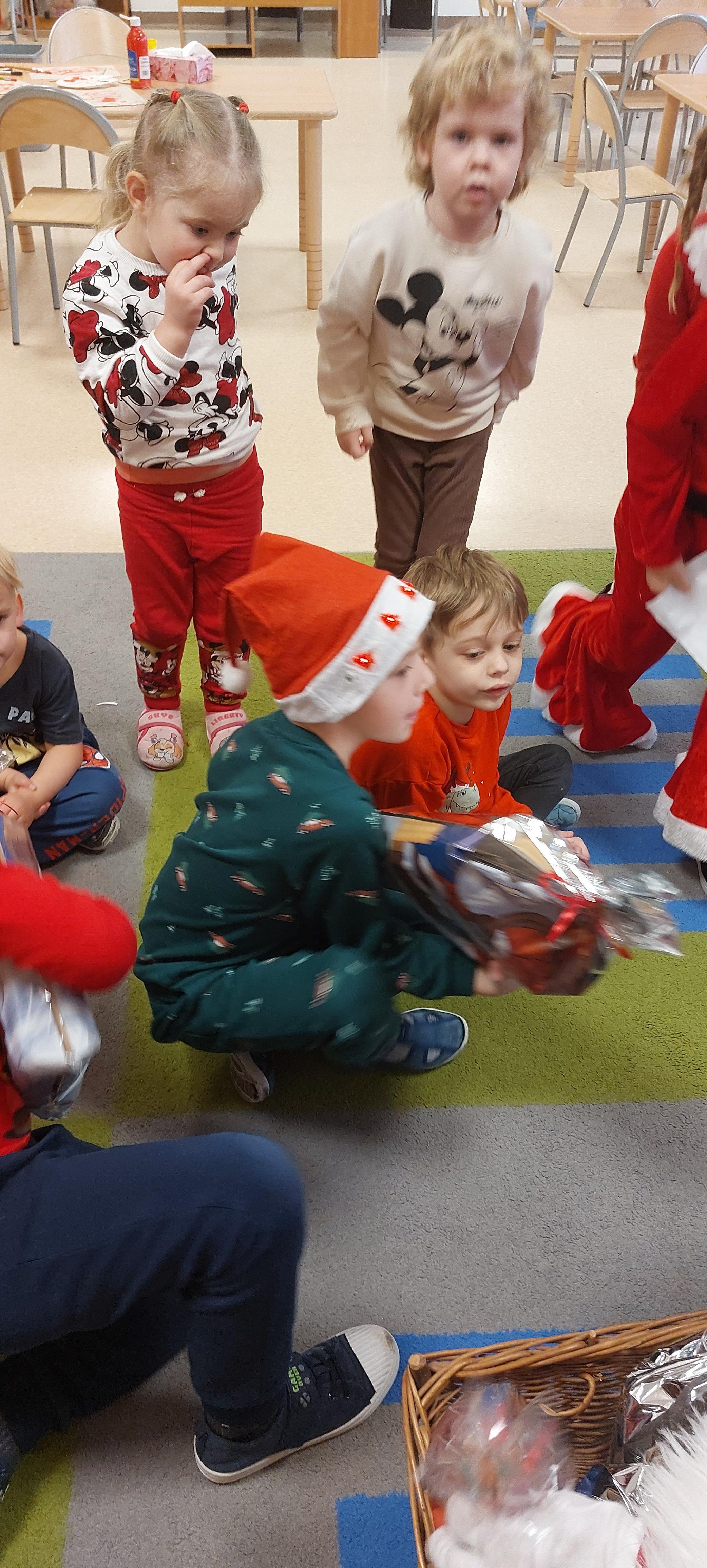 5 grudnia przedszkolaki wyglądały wyjątkowo - "Mikołajkowo". Od rana panował gwar i radość, dzieci z wielką niecierpliwością oczekiwały na przyjście niezwykłego gościa. Święty Mikołaj od rana witał wszystkie dzieci. Wręczył każdemu dziecku wspaniały prezent. Śmiechu i radości było wiele. Na twarzach dzieci było widać wielkie zadowolenie oraz ogromną radość!