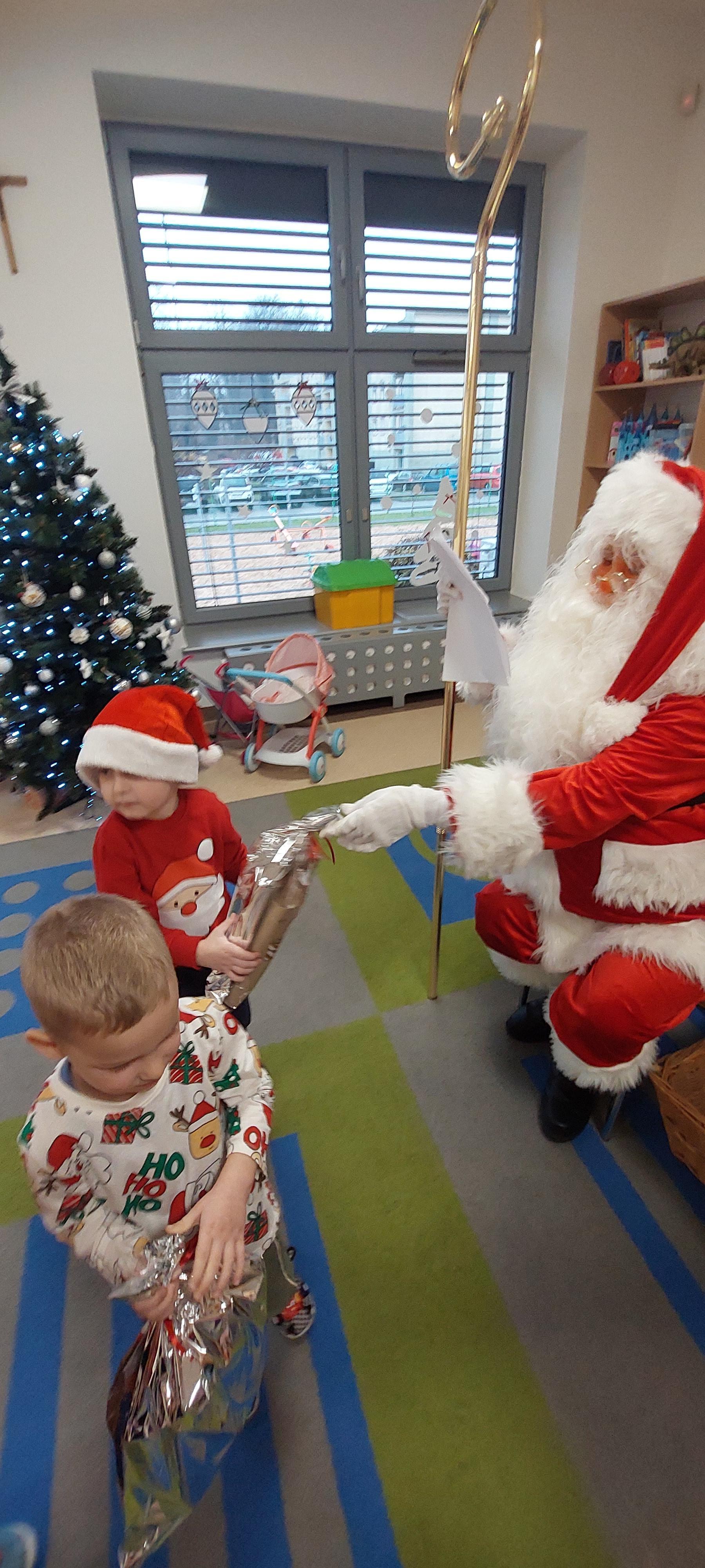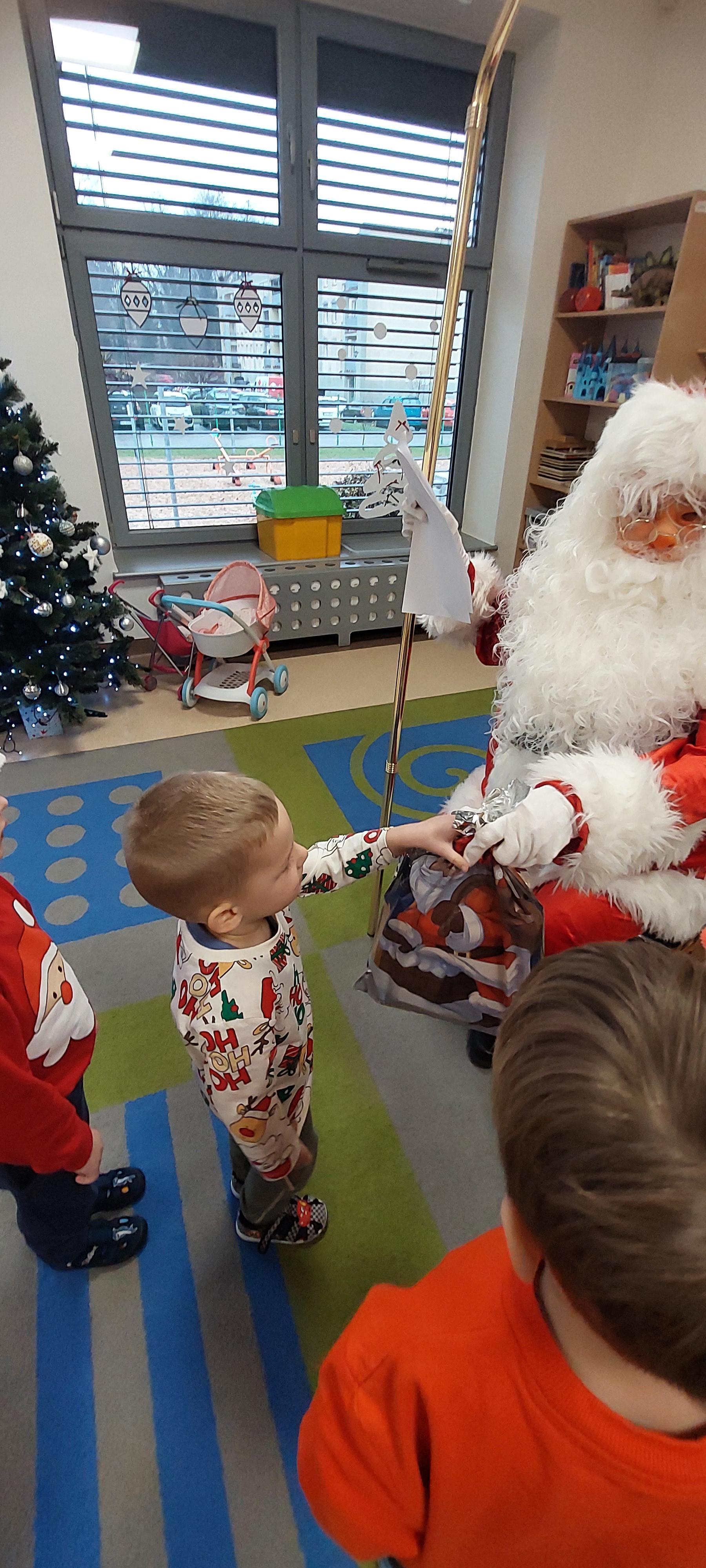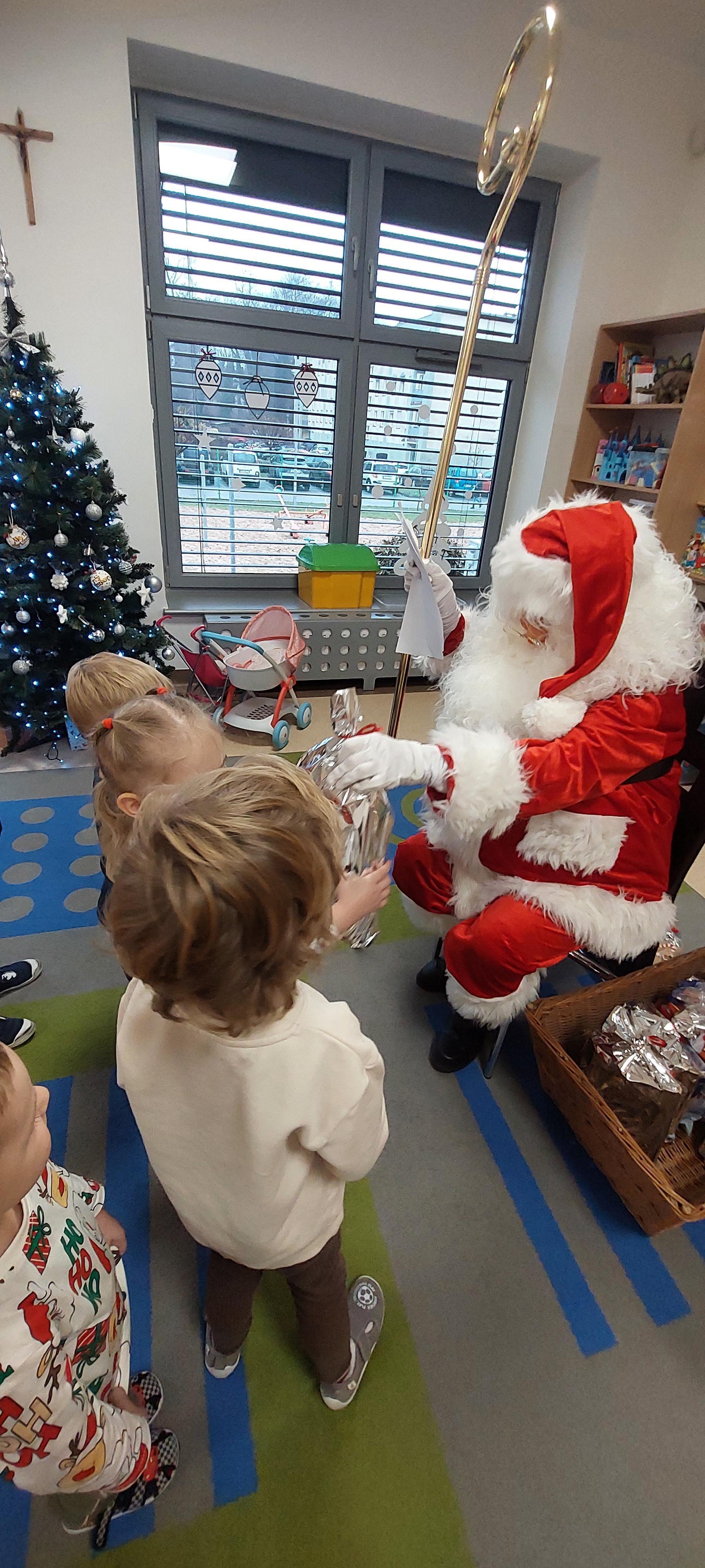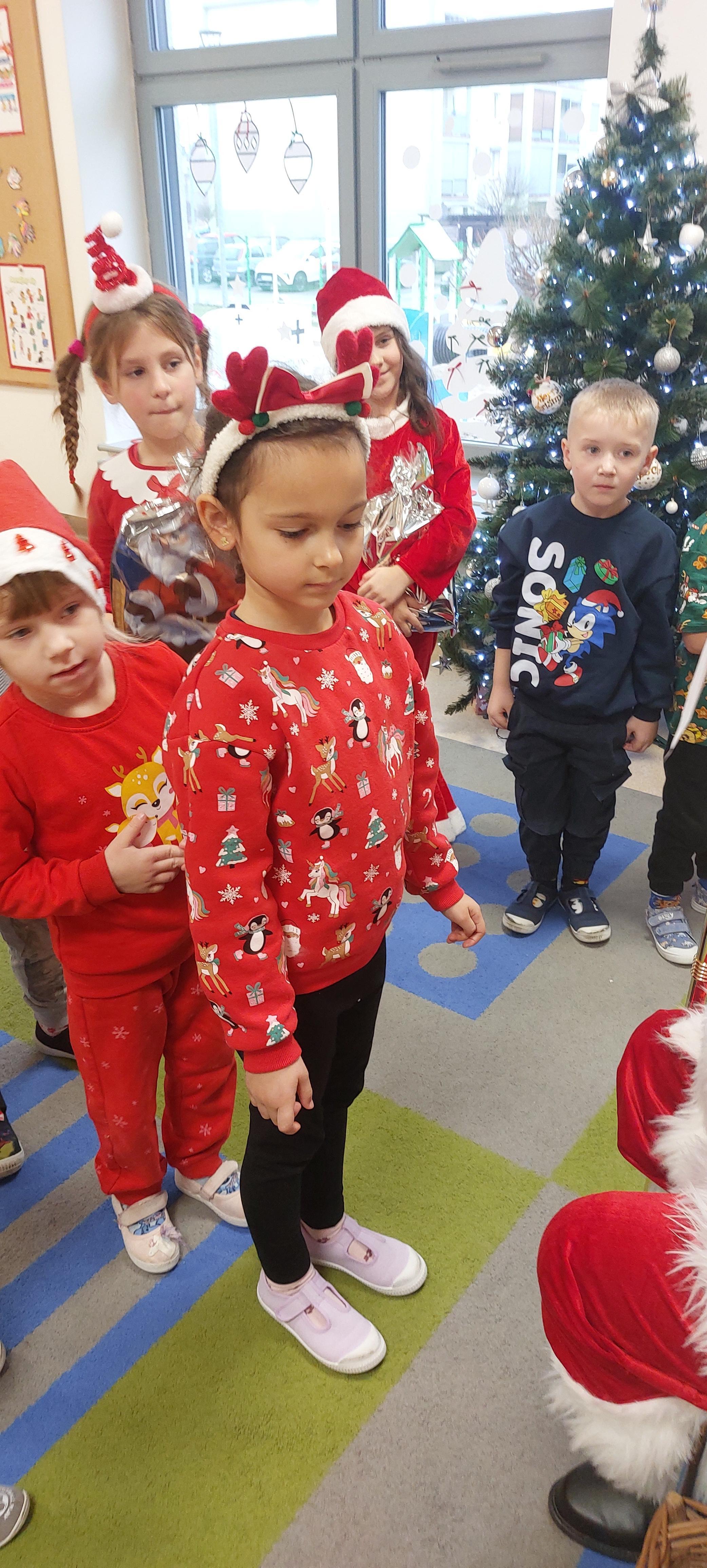 5 grudnia przedszkolaki wyglądały wyjątkowo - "Mikołajkowo". Od rana panował gwar i radość, dzieci z wielką niecierpliwością oczekiwały na przyjście niezwykłego gościa. Święty Mikołaj od rana witał wszystkie dzieci. Wręczył każdemu dziecku wspaniały prezent. Śmiechu i radości było wiele. Na twarzach dzieci było widać wielkie zadowolenie oraz ogromną radość!