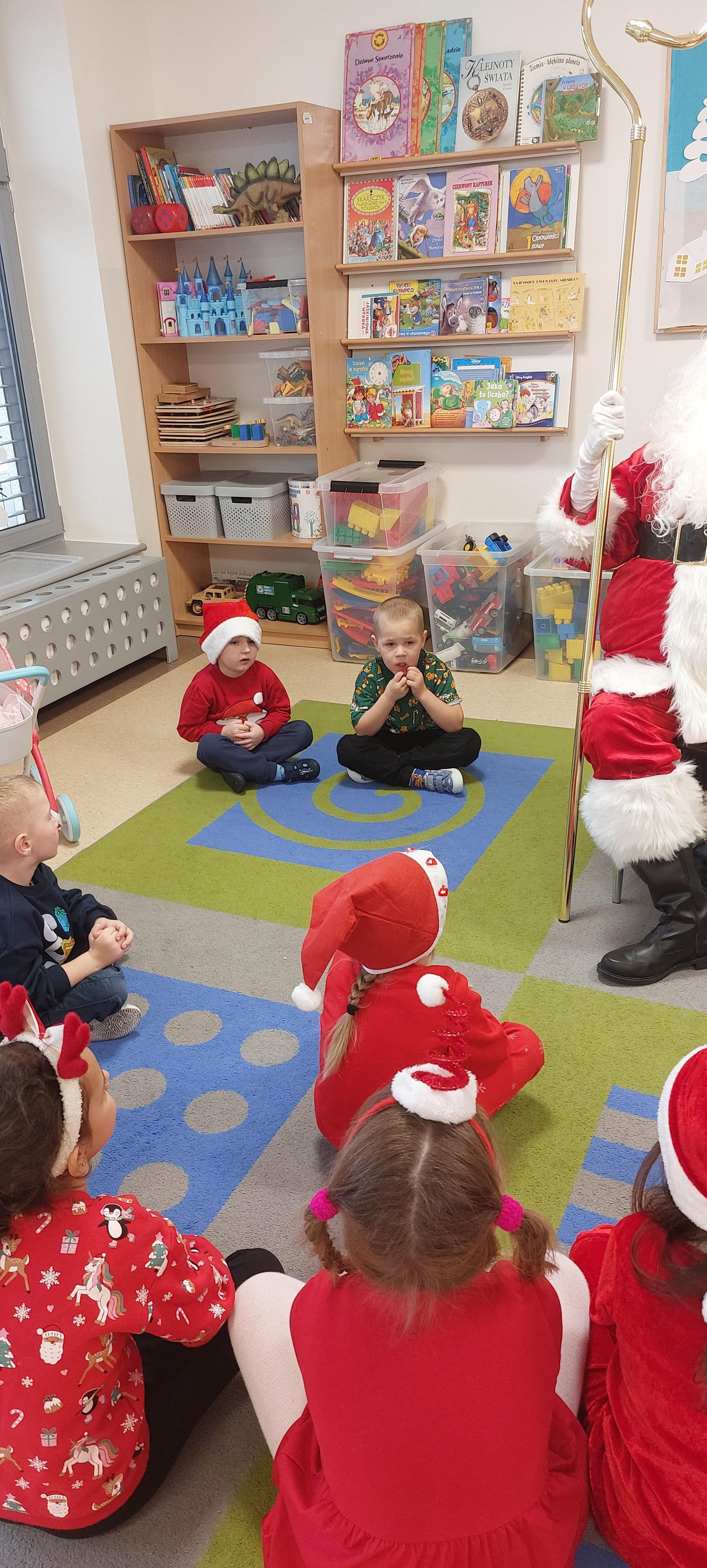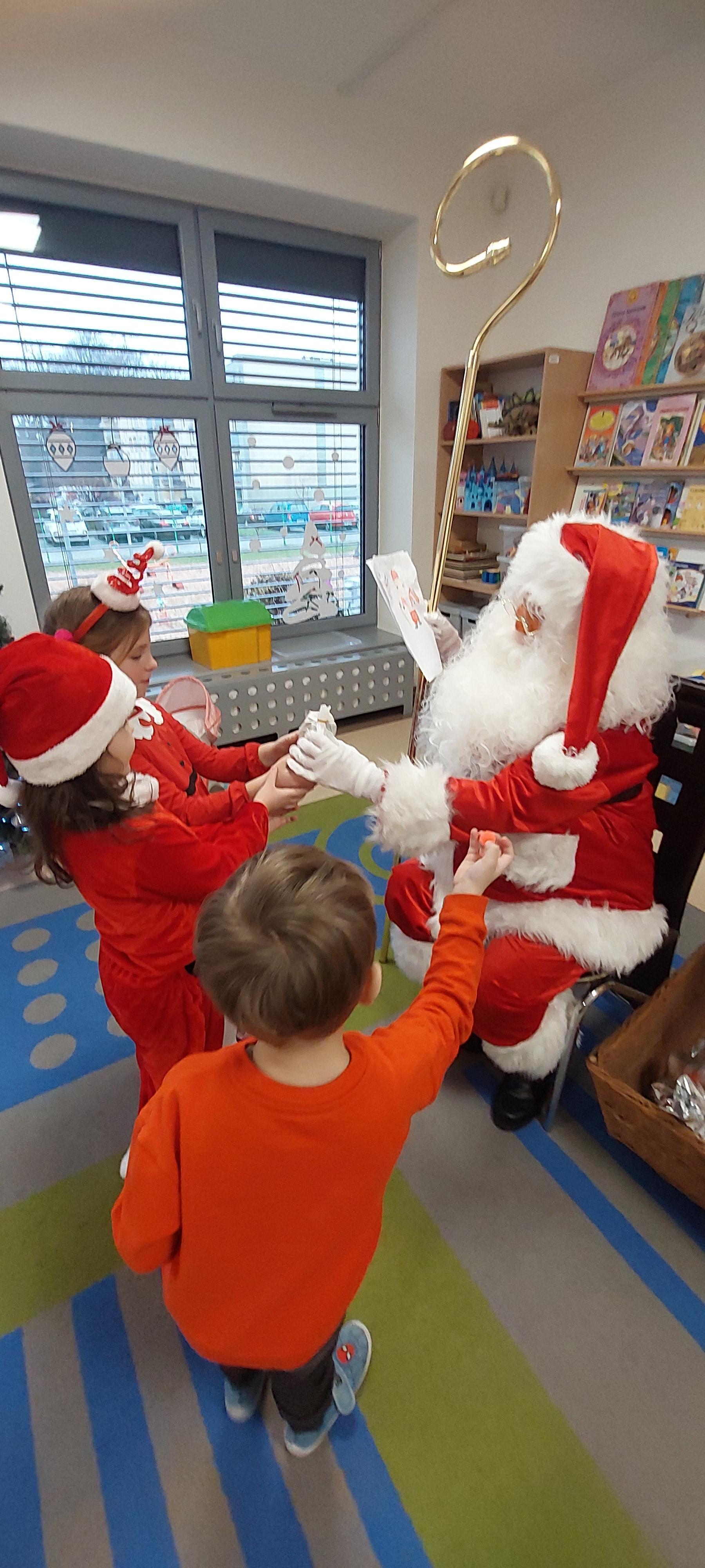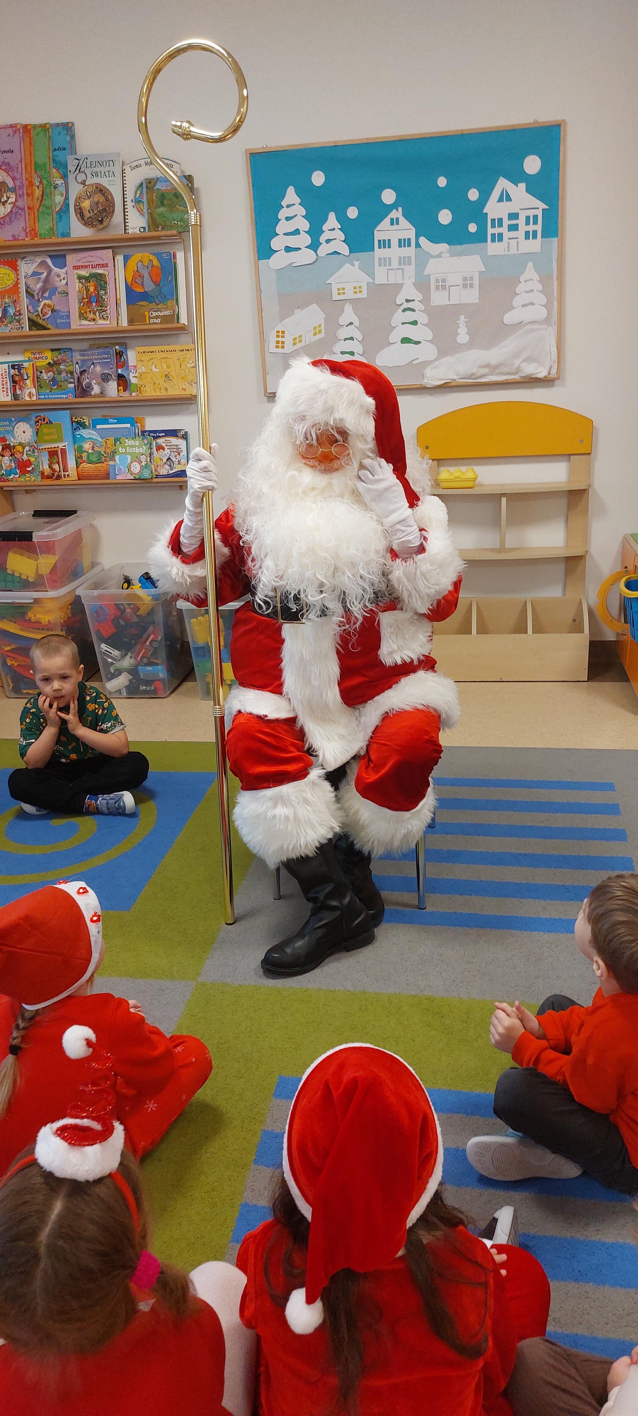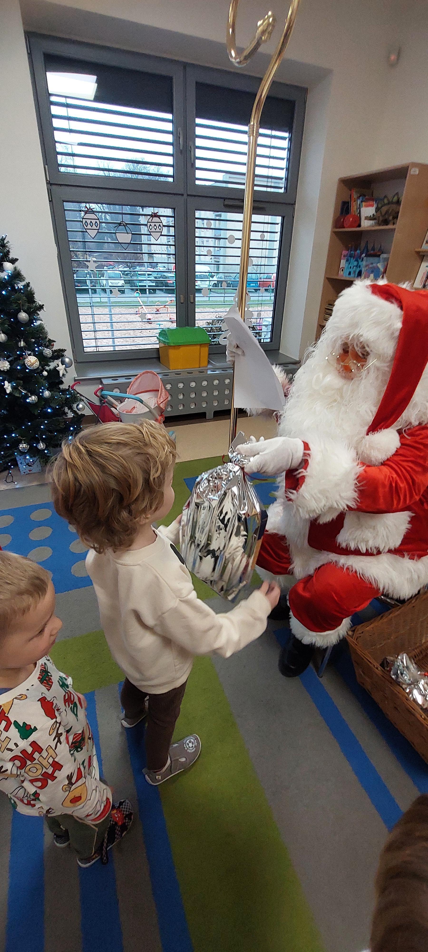 5 grudnia przedszkolaki wyglądały wyjątkowo - "Mikołajkowo". Od rana panował gwar i radość, dzieci z wielką niecierpliwością oczekiwały na przyjście niezwykłego gościa. Święty Mikołaj od rana witał wszystkie dzieci. Wręczył każdemu dziecku wspaniały prezent. Śmiechu i radości było wiele. Na twarzach dzieci było widać wielkie zadowolenie oraz ogromną radość!