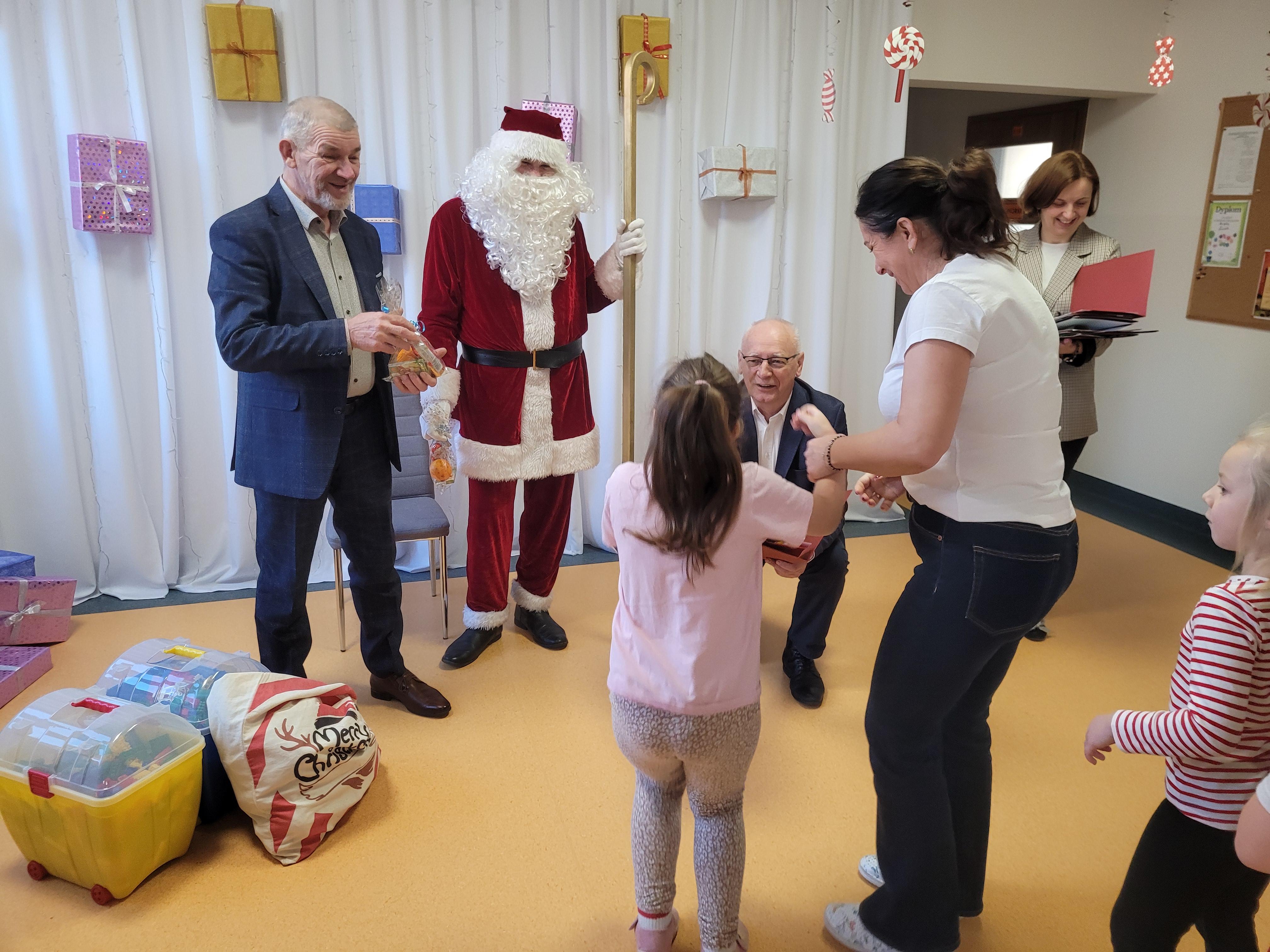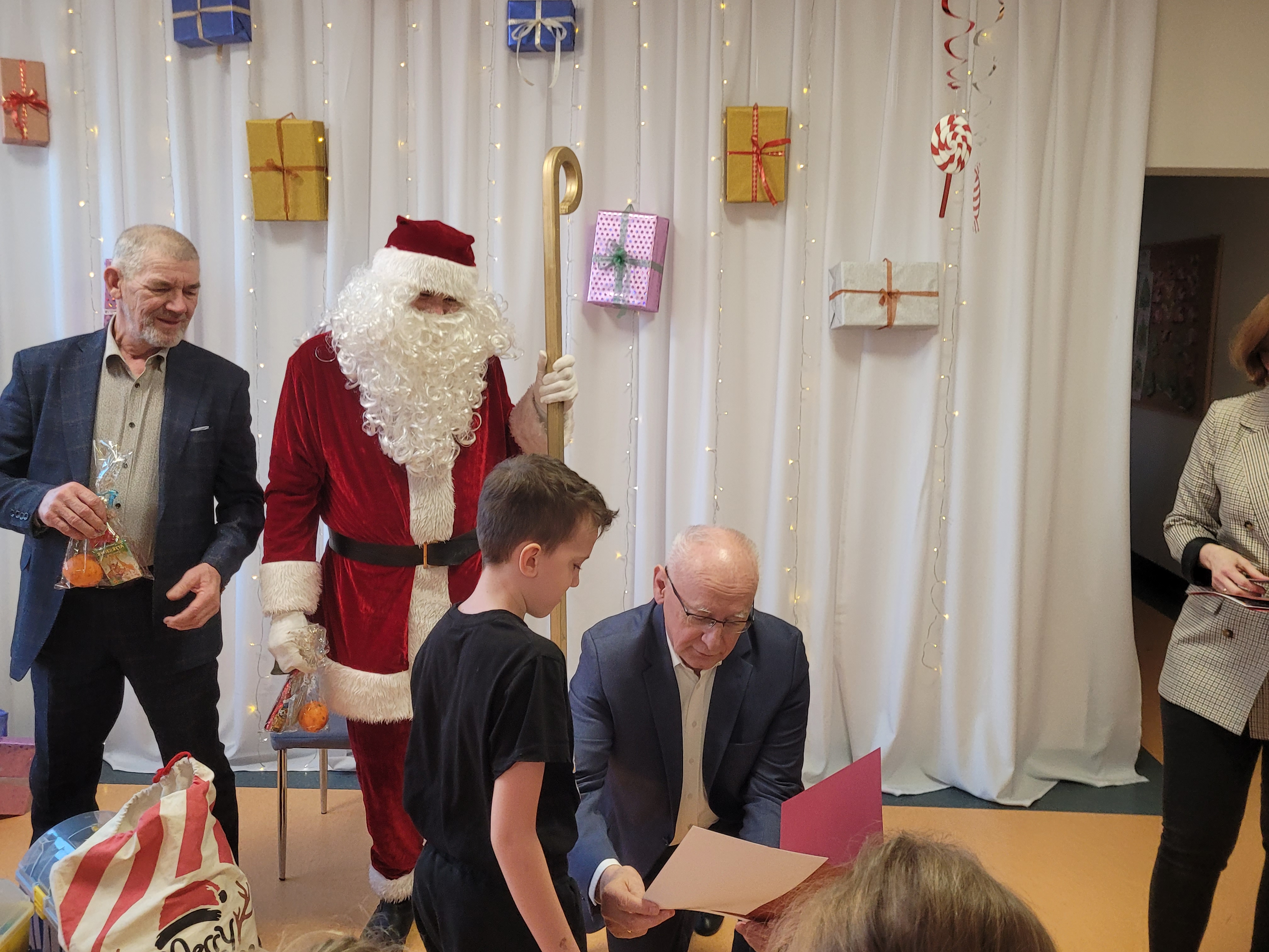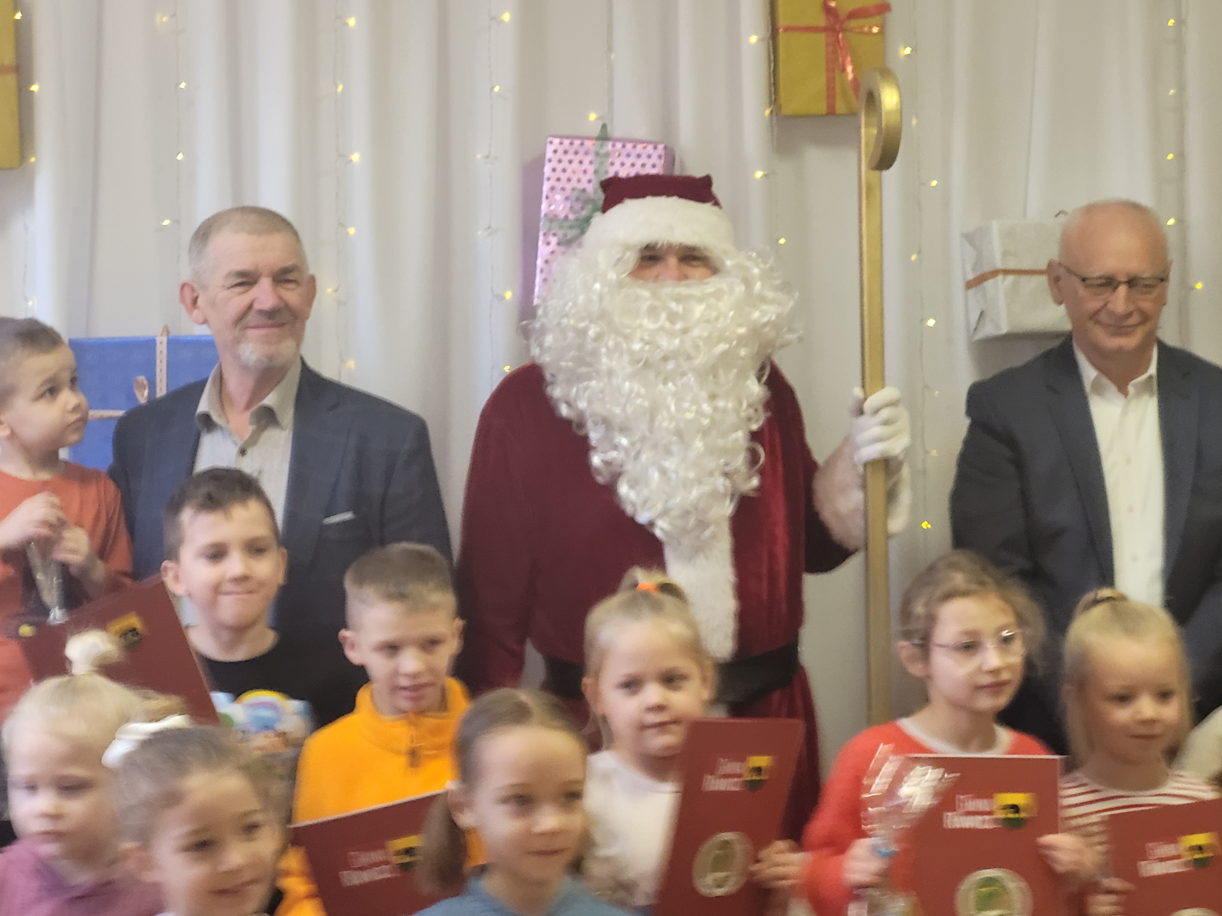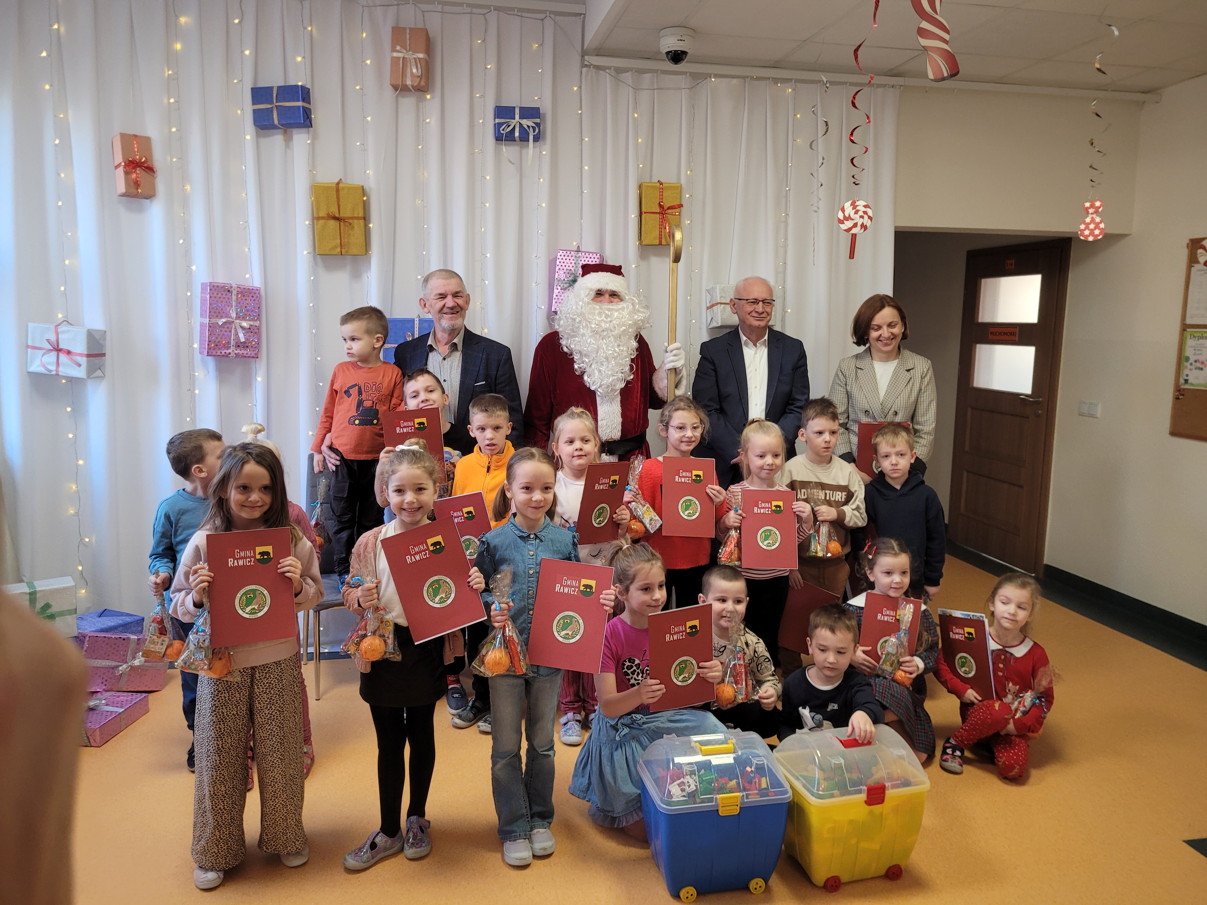 Wraz ze Świętym Mikołajem wręczyli dzieciom nagrody oraz dyplomy.