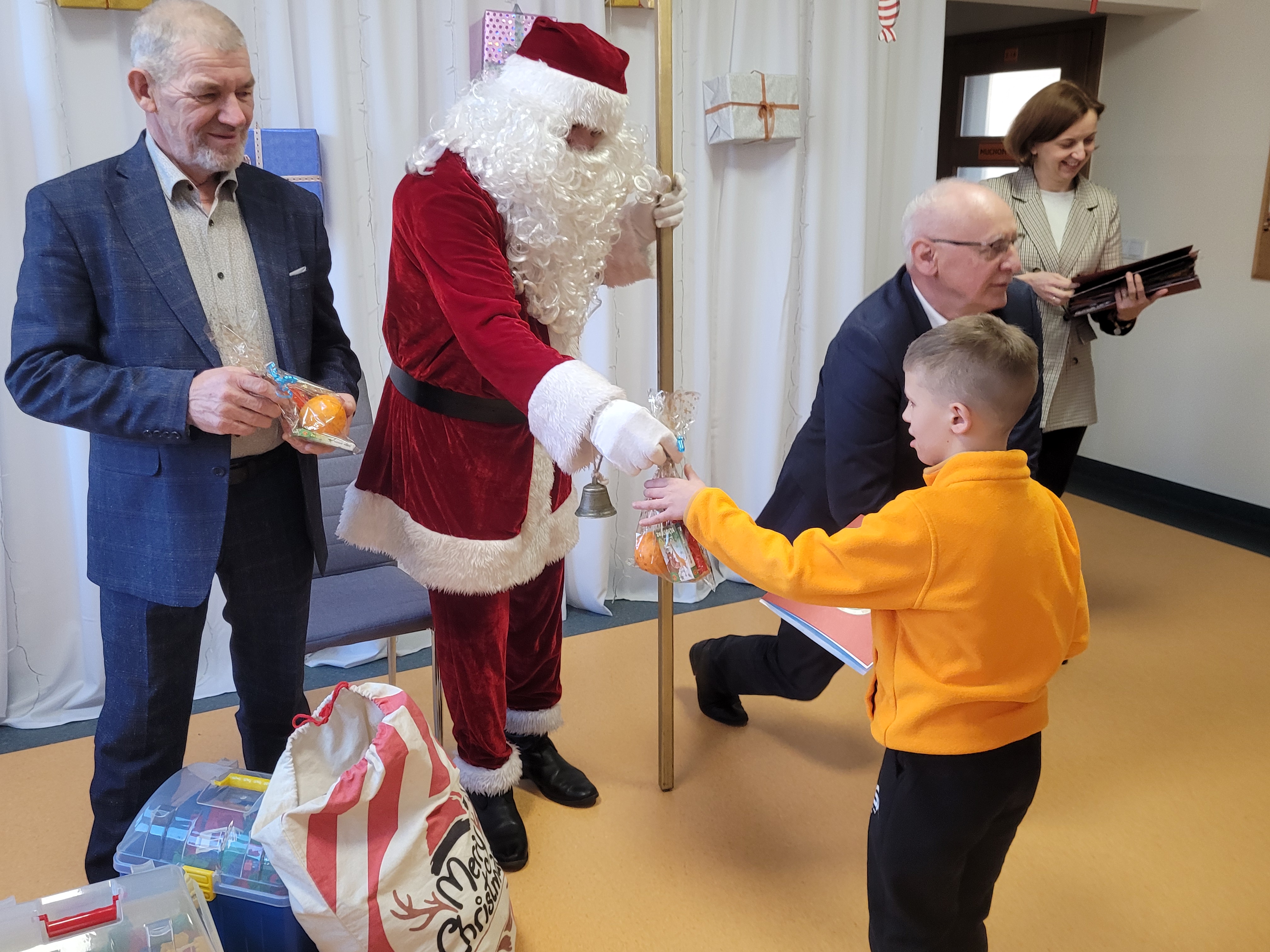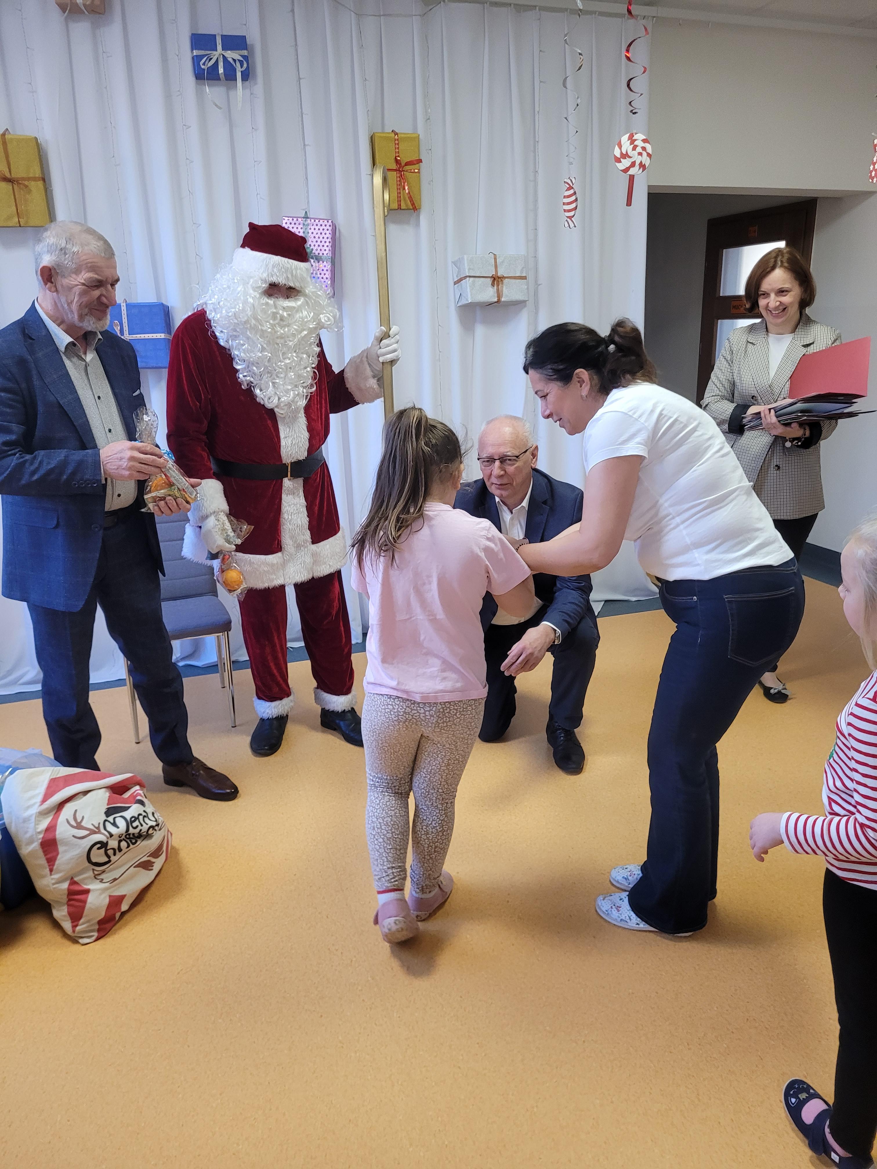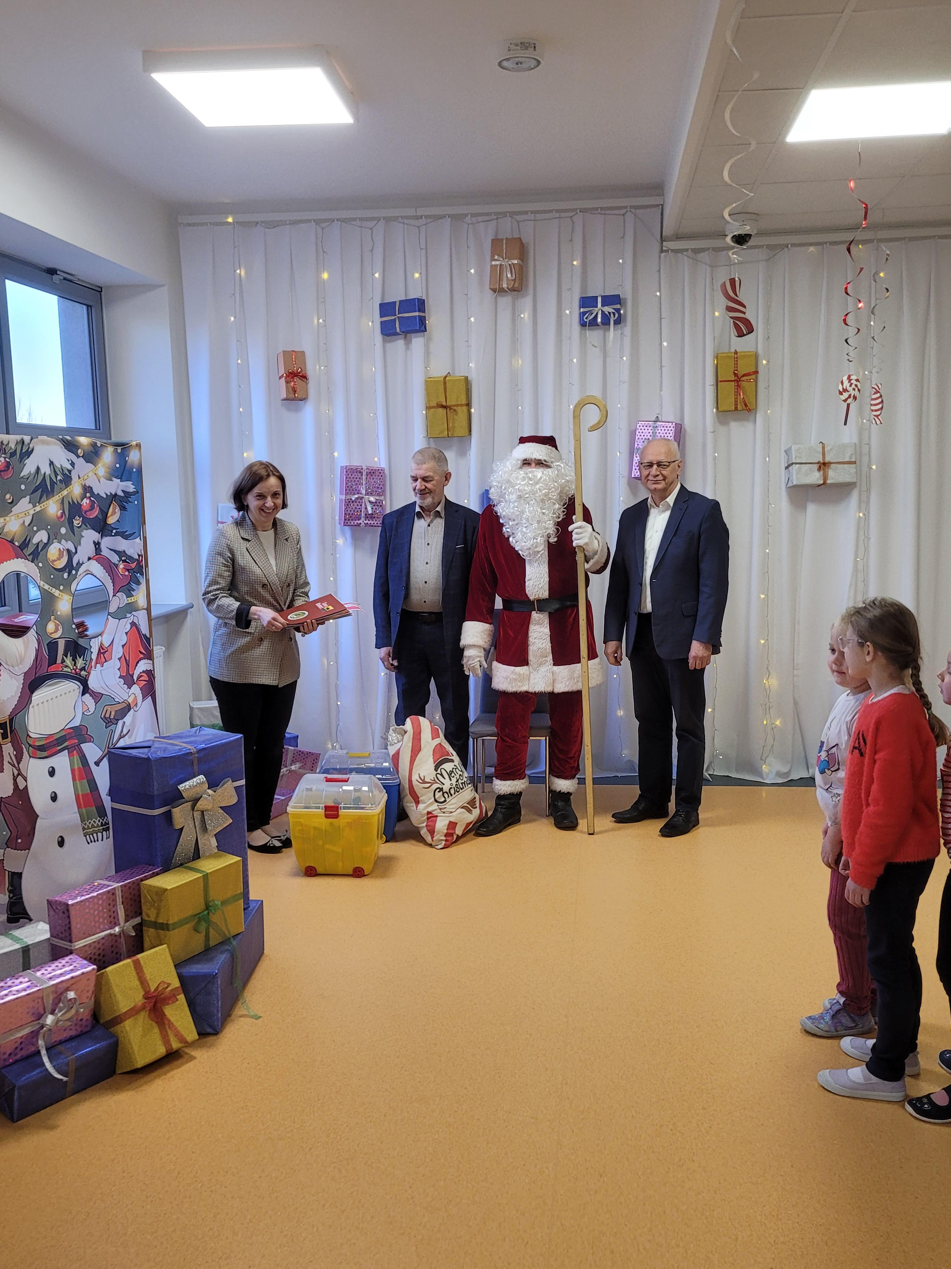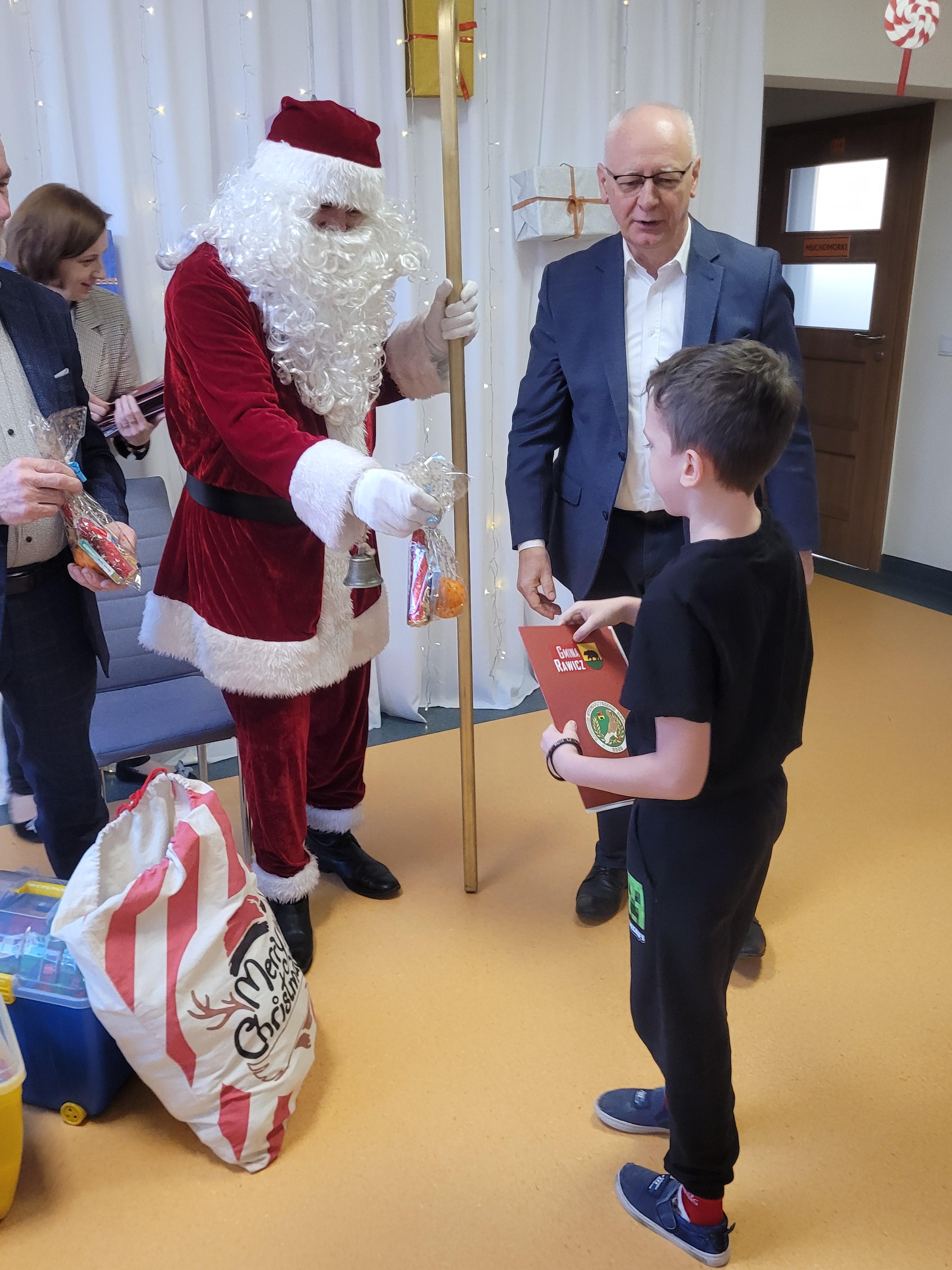 Wraz ze Świętym Mikołajem wręczyli dzieciom nagrody oraz dyplomy.
