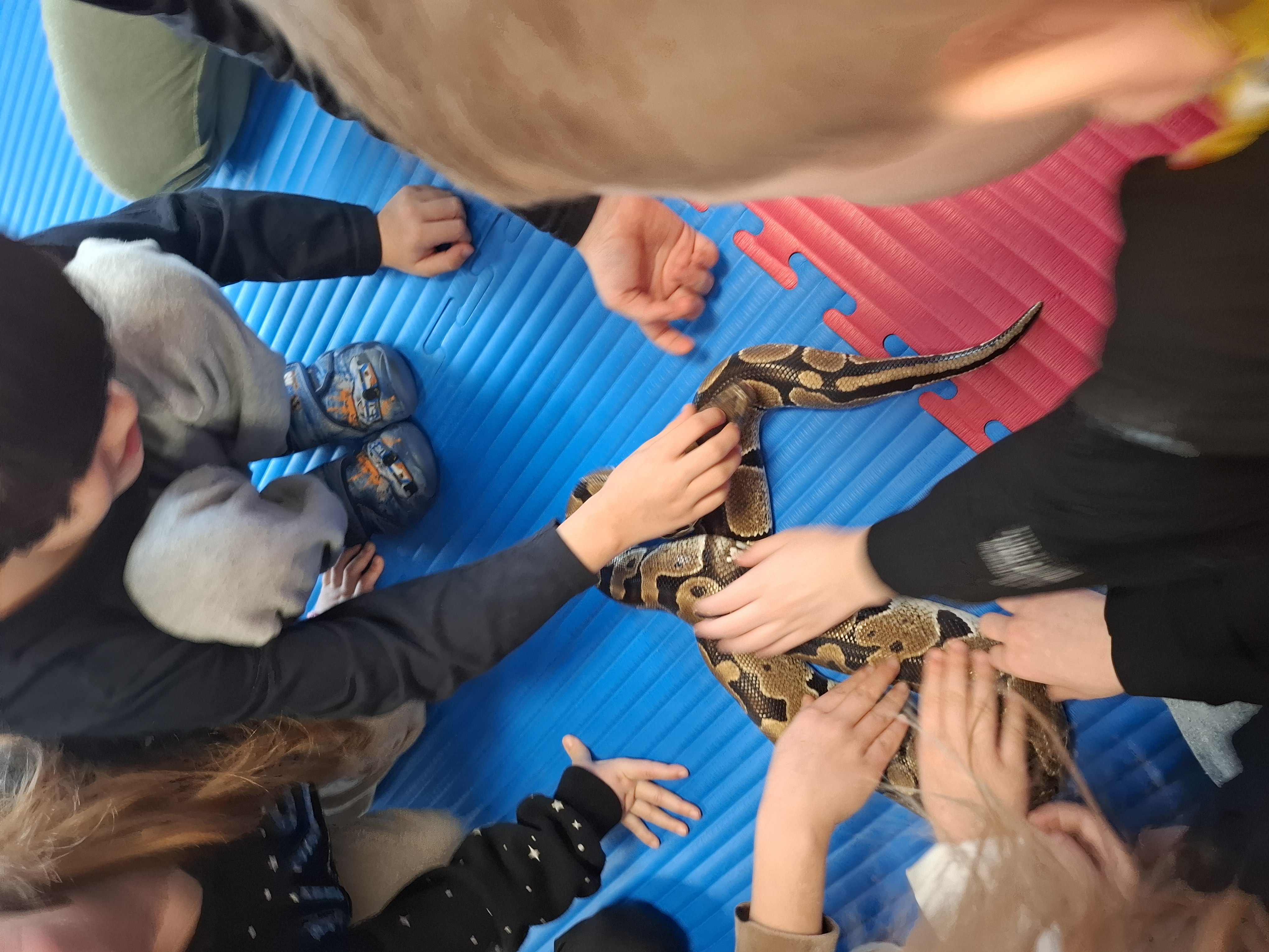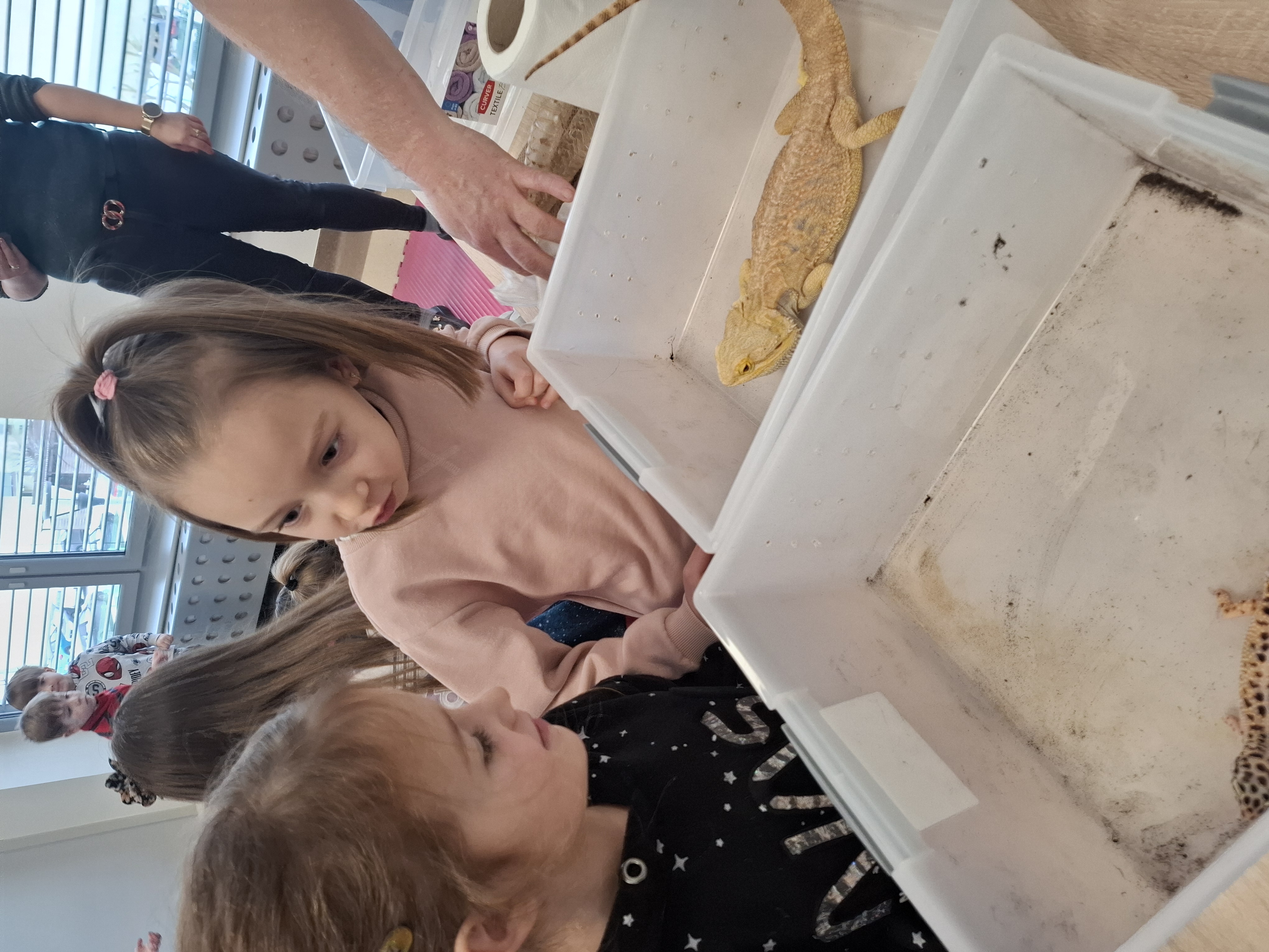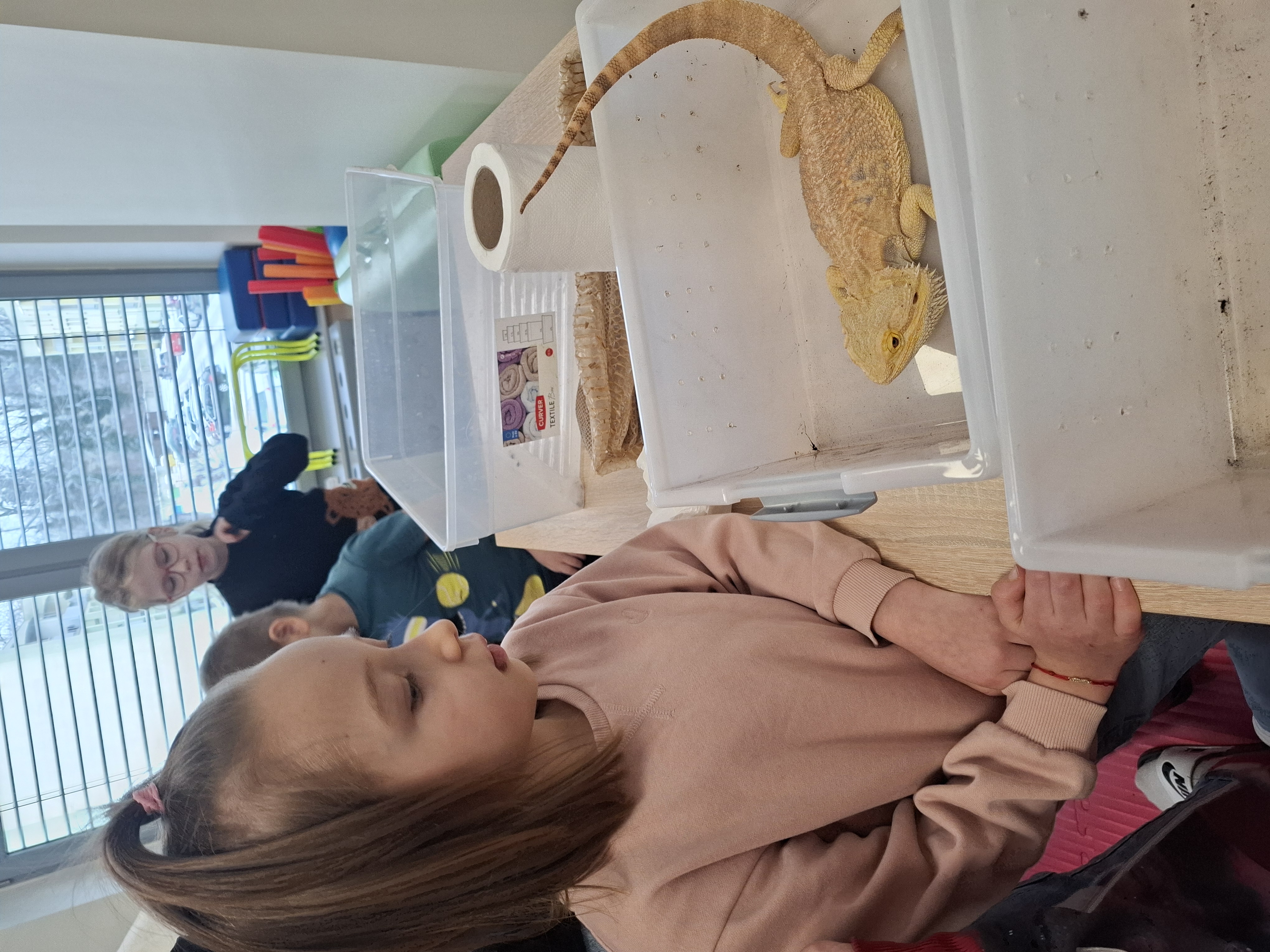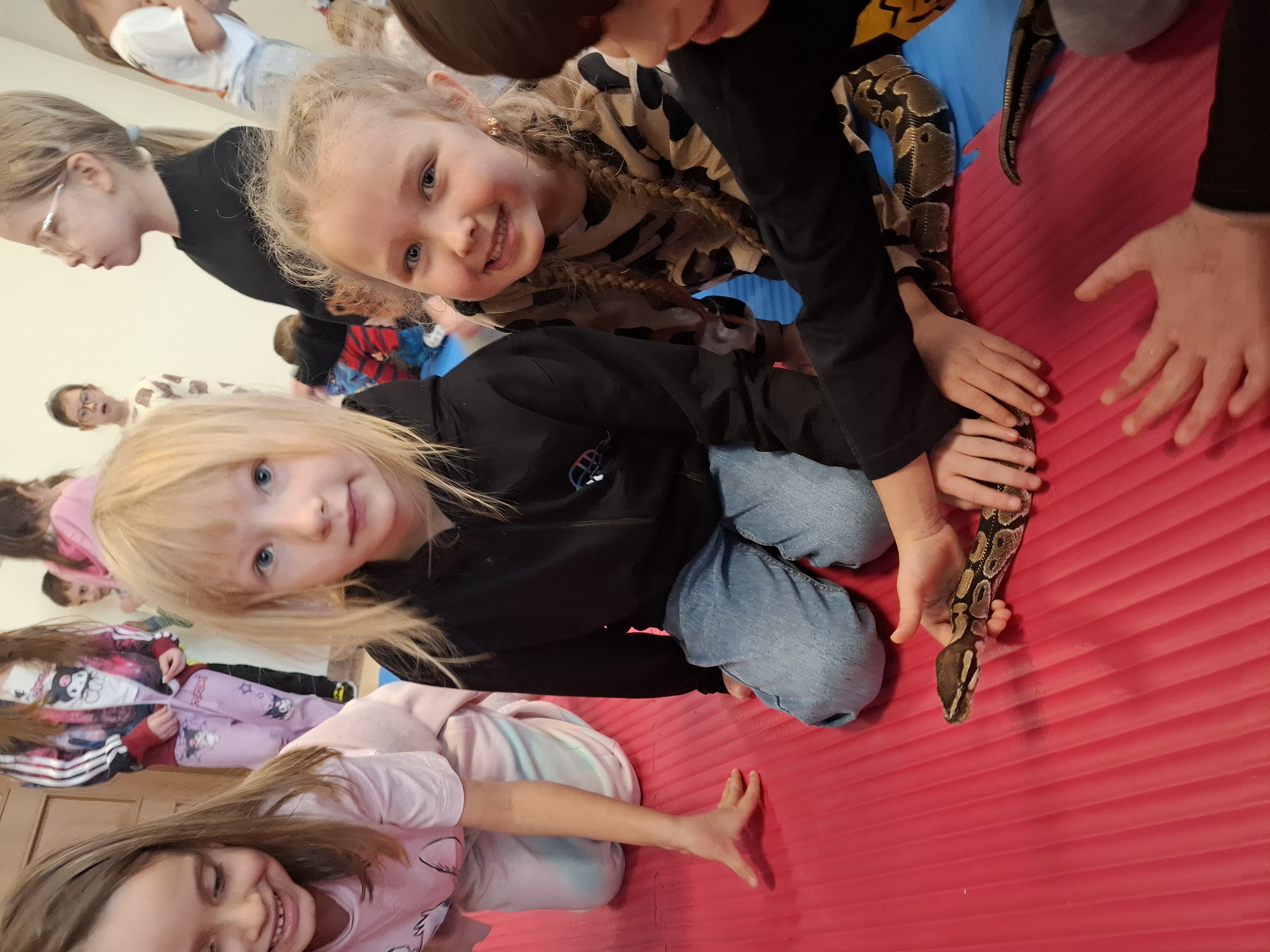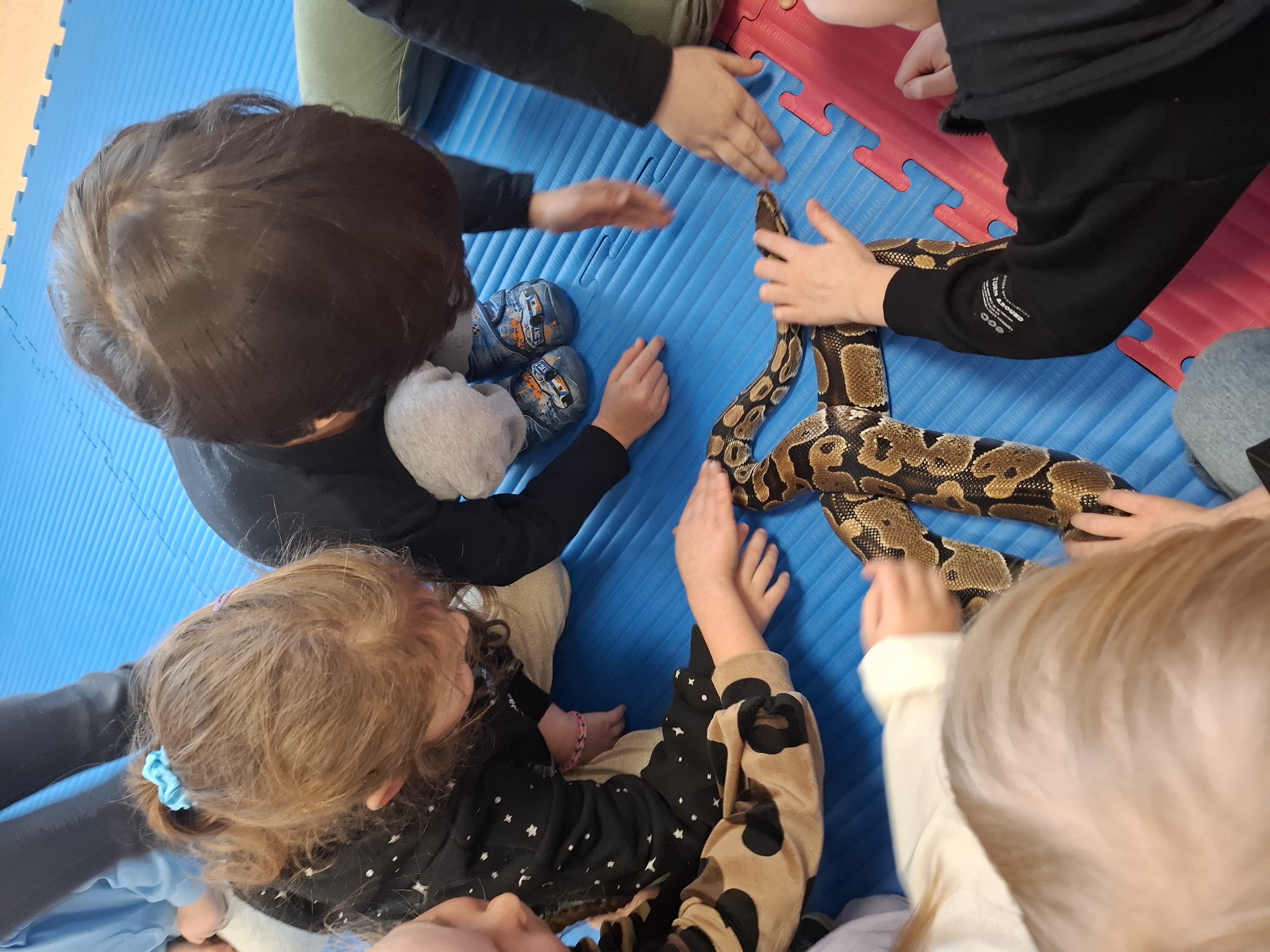 Dziś w przedszkolu dzieci uczestniczyły w warsztatach edukacyjnych. Podczas spotkania dzieci poznały różne gatunki zwierząt w tym zwierzęta egzotyczne: wąż,jaszczurka dragon,gekon lamparci. Zajęcia pozwoliły rozwinąć empatię do zwierząt,uczyły odpowiedzialności,szacunku do przyrody oraz zasad opieki.