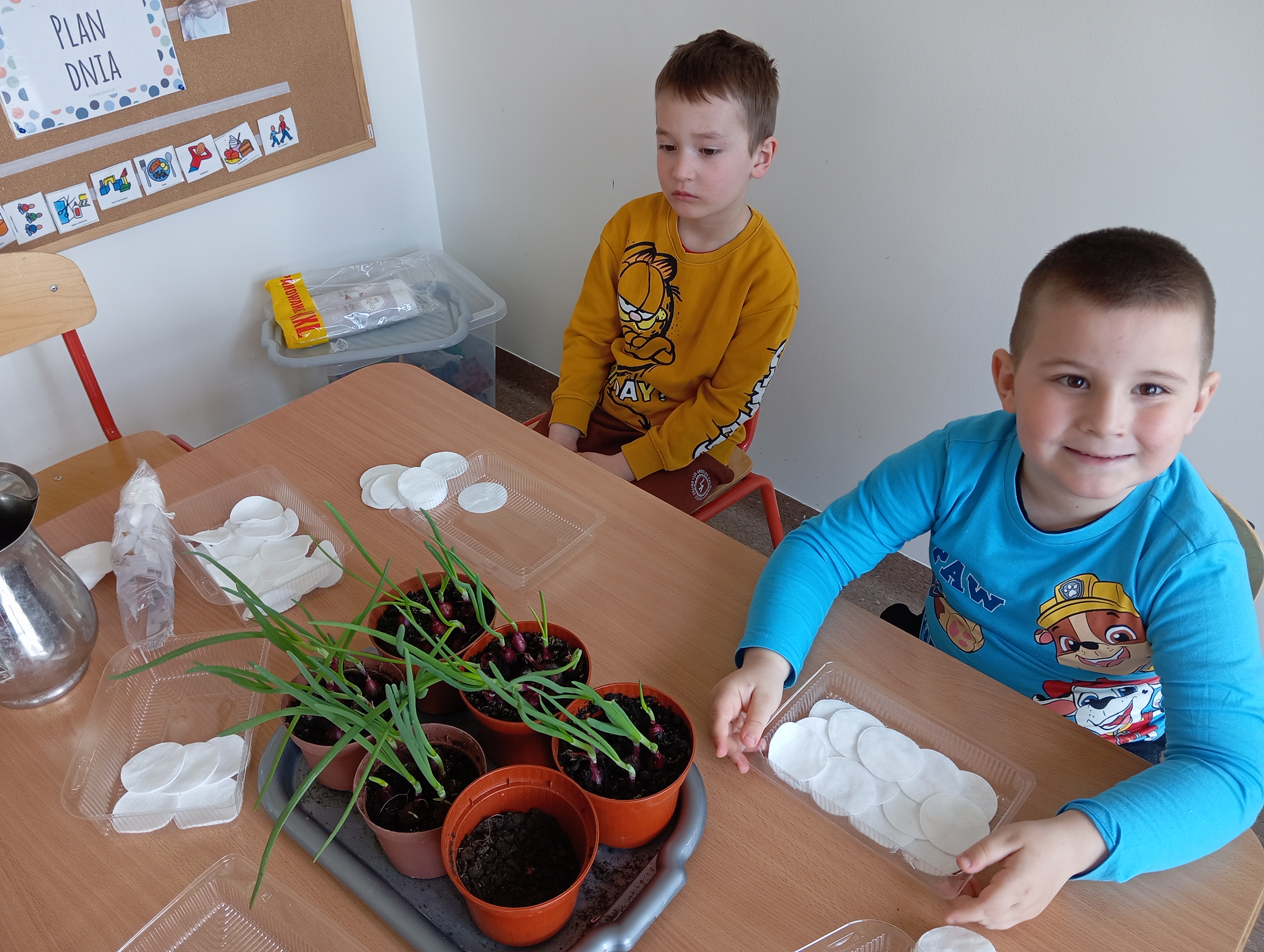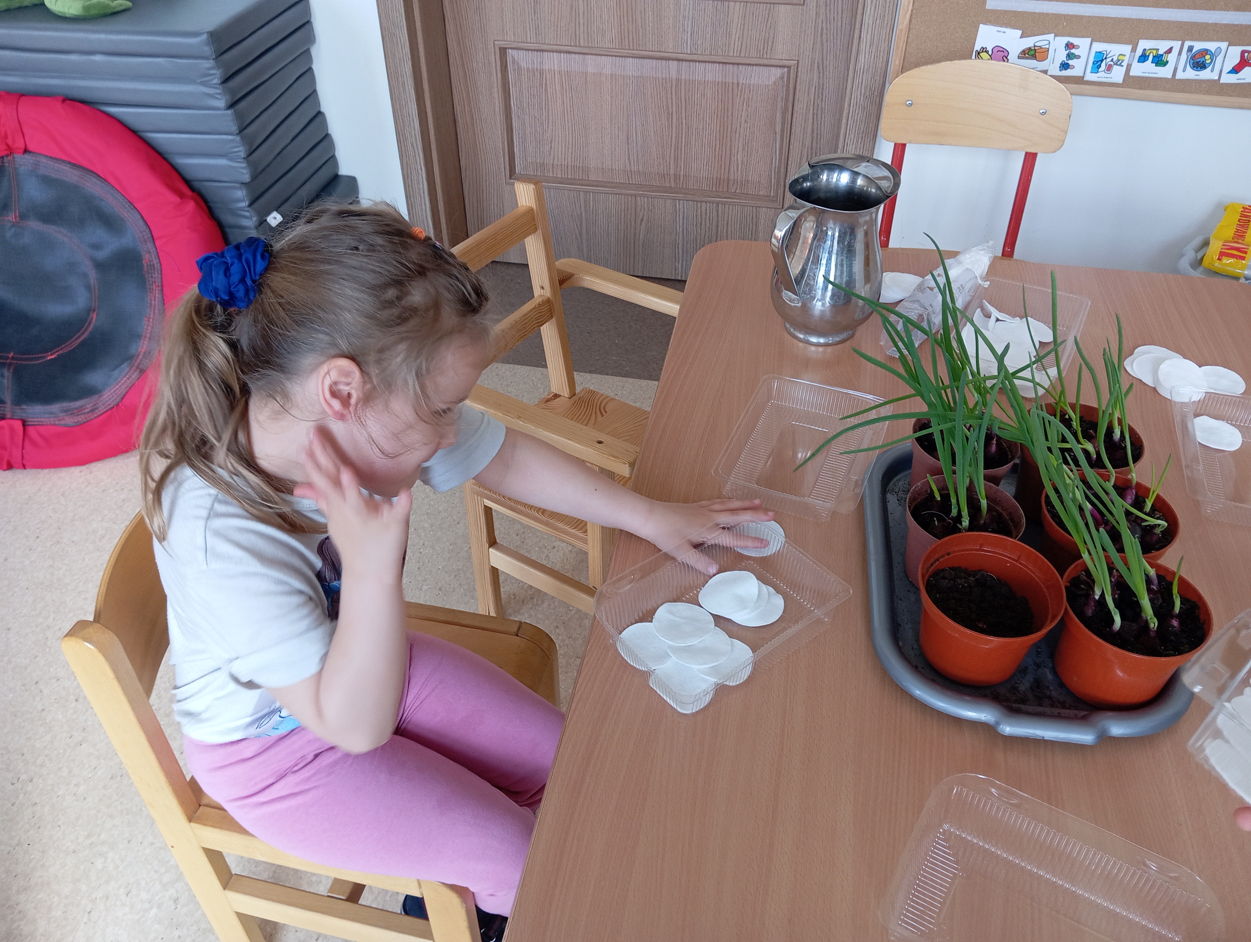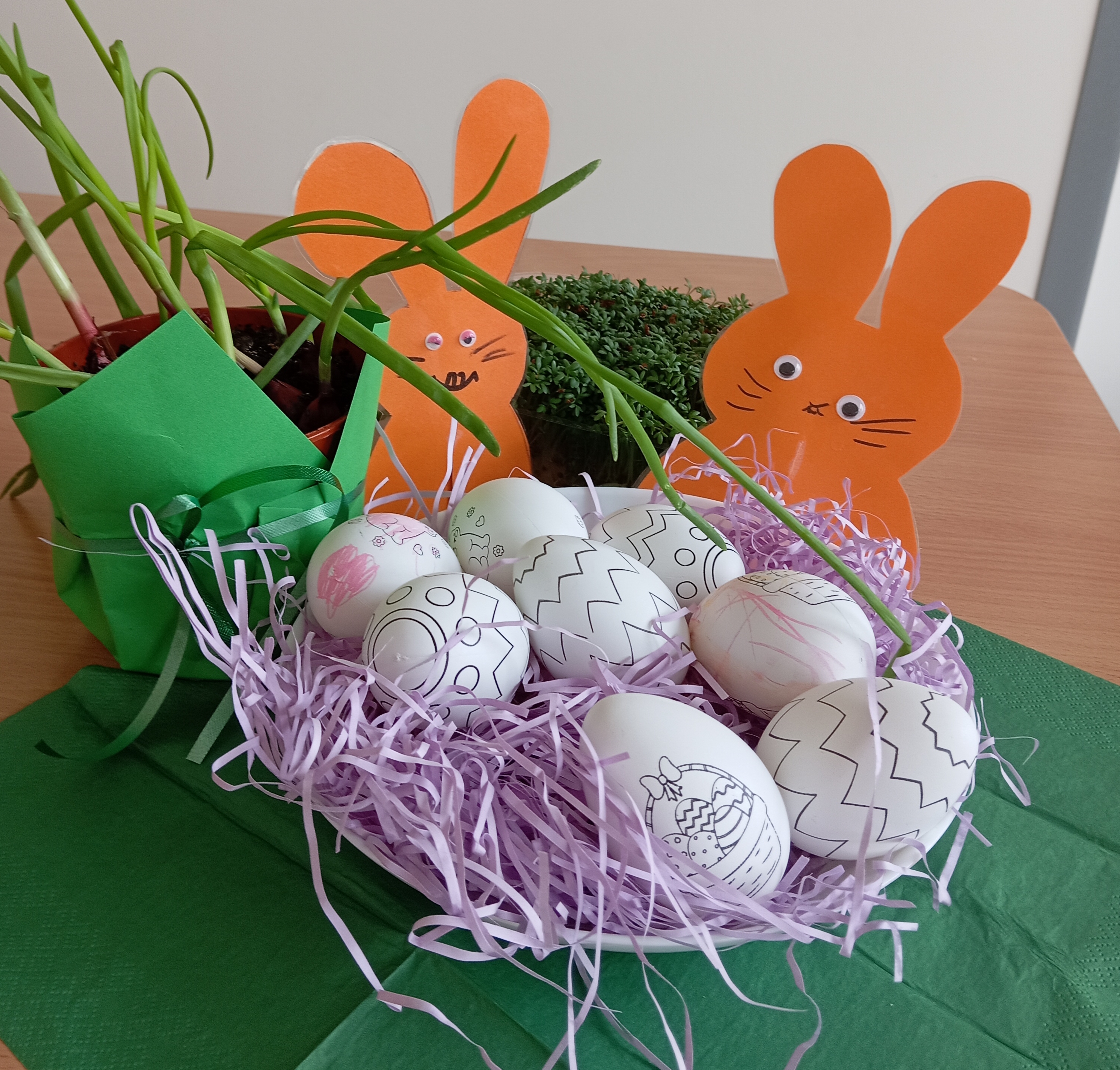 Nasze przygotowania do Świąt Wielkanocnych rozpoczęliśmy od zasiania rzeżuchy i posadzenia cebulek na szczypiorek. Nie mogło również zabraknąć akcentu dekoracyjnego.