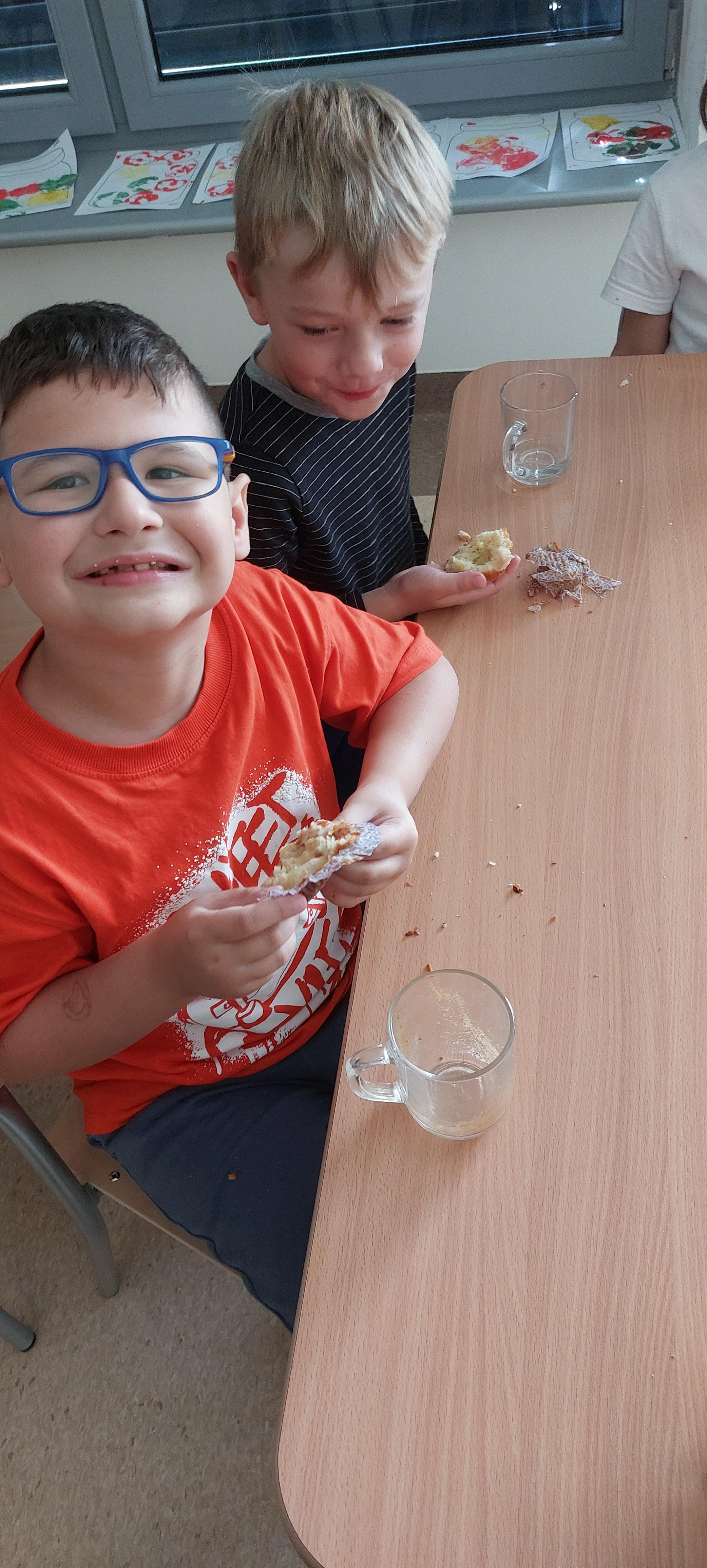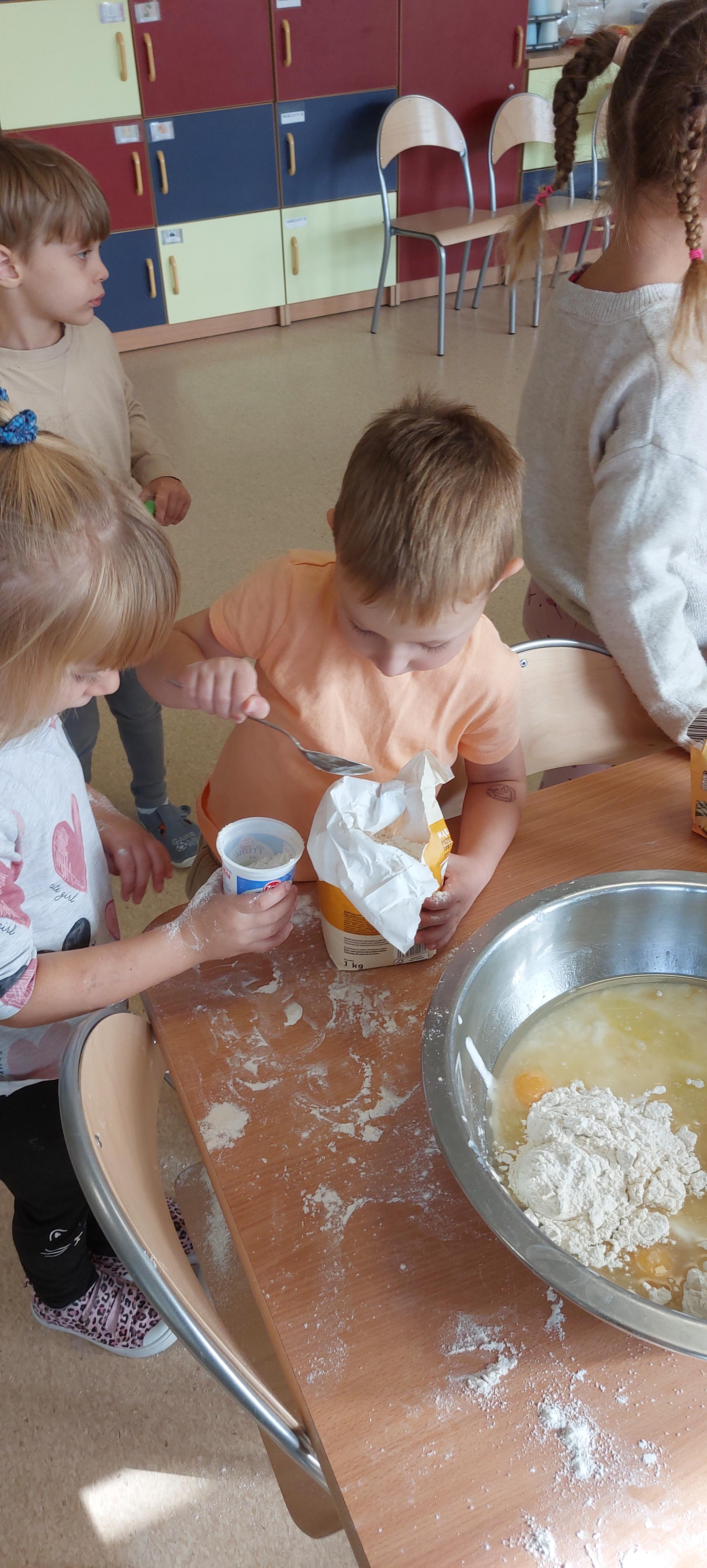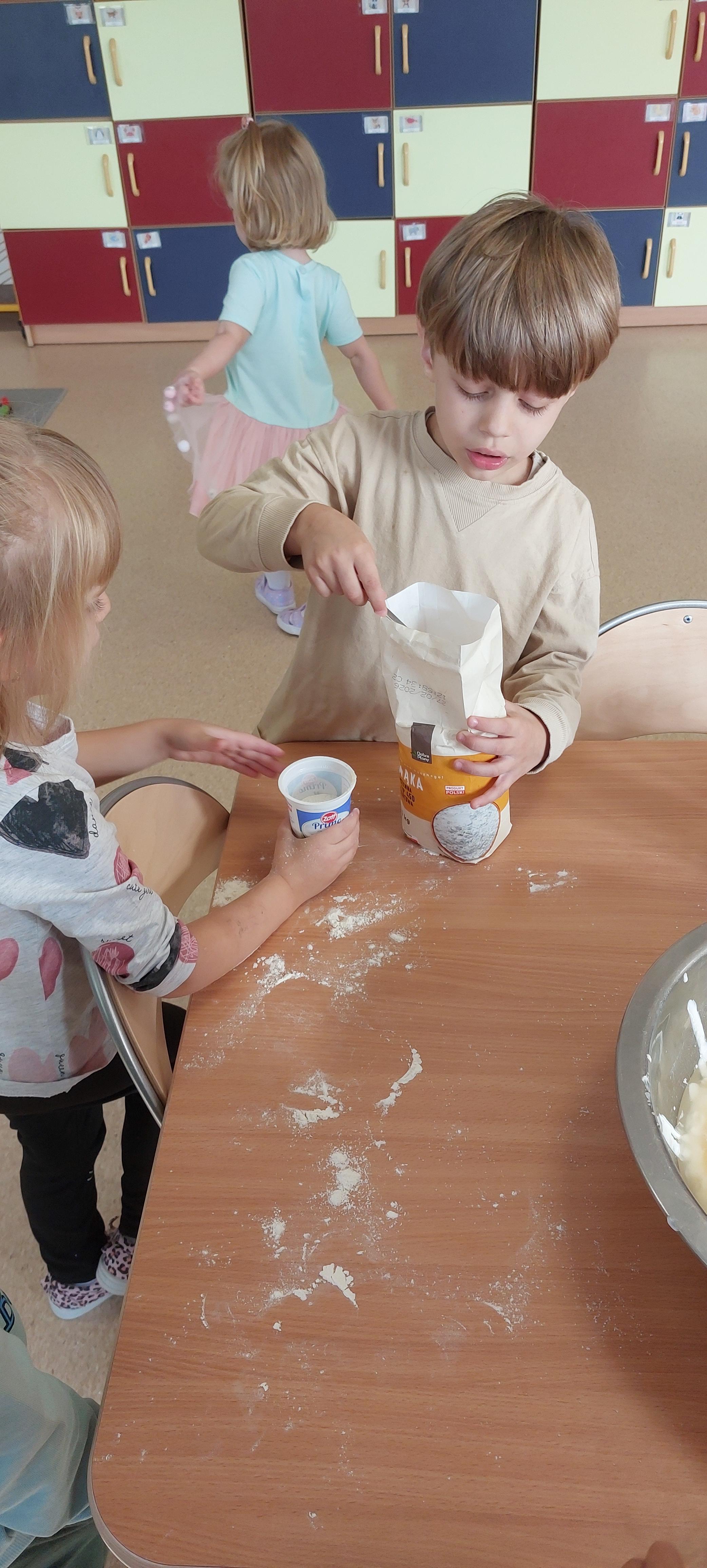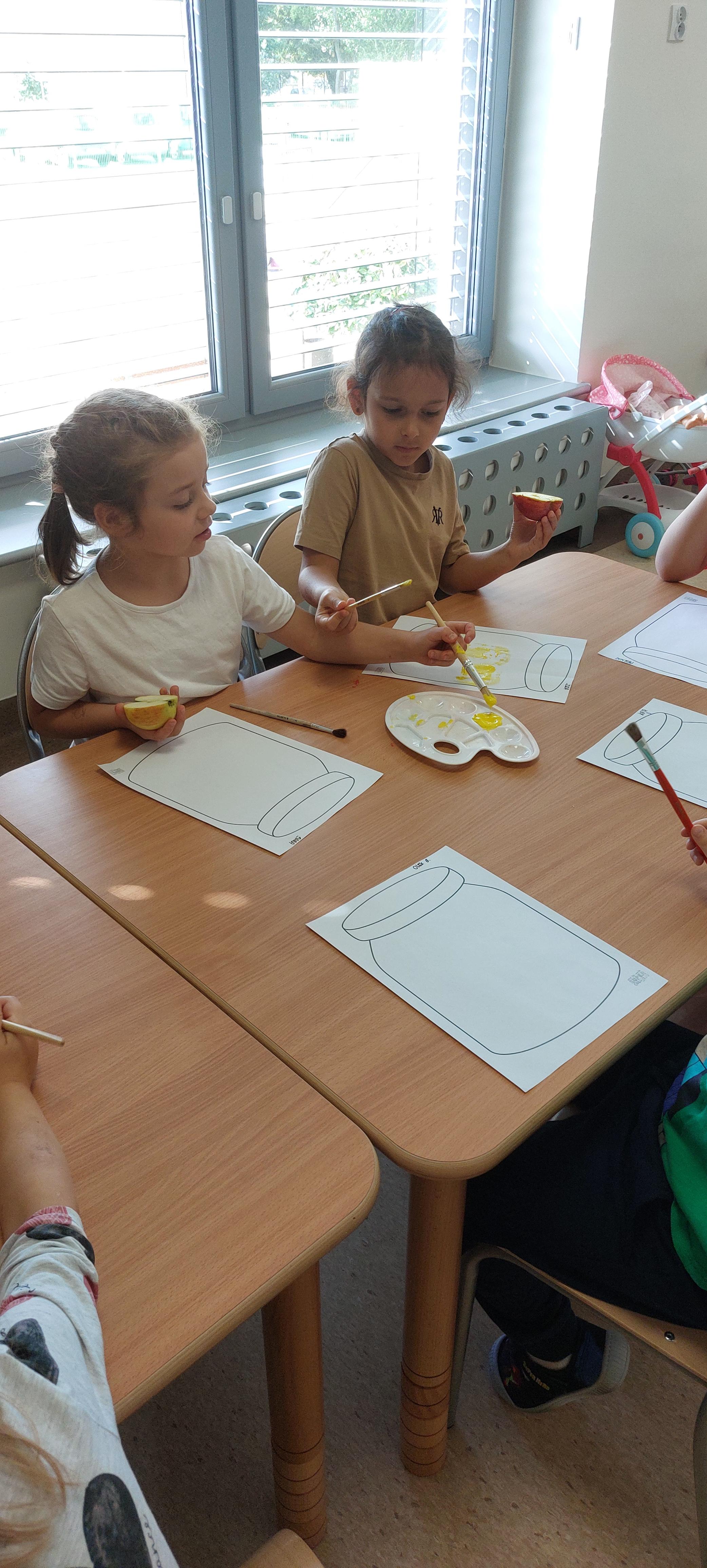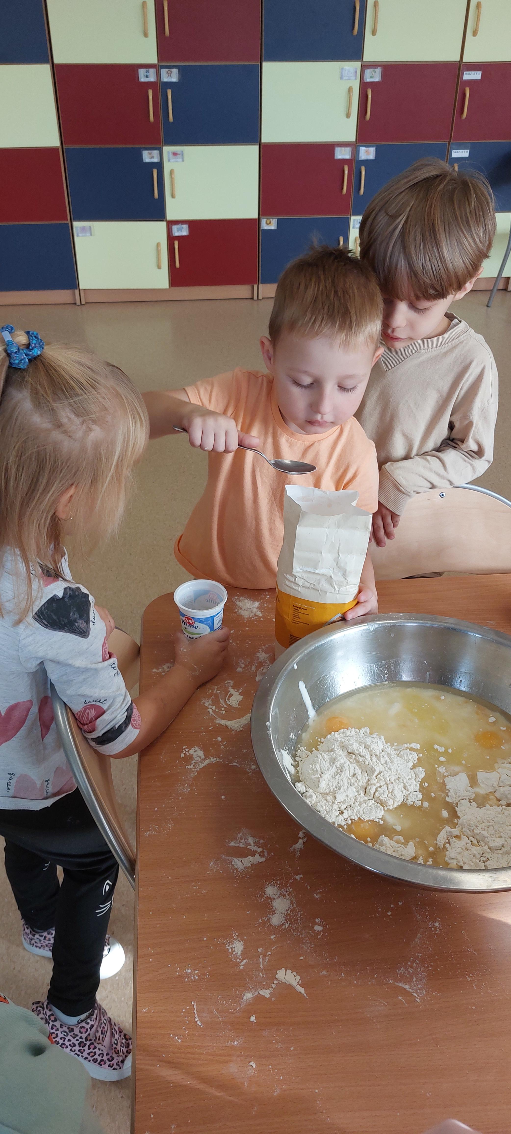 W piątek dzieci z grupy "Skrzaty" obchodziły Dzień Jabłka. Na początku odbyła się pogadanka na temat jego wyglądu, kolorów, wielkości, kształtu, smaku, różnych odmian. Później dzieci wykonały babeczki oraz sok jabłkowy, a także zajadały się surowymi jabłkami. Następnie wykonały prace plastyczną- jabłkowe pieczątki w słoiku oraz malowały za pomocą farby jabłka na worku strunowym. Na twarzach dzieci gościły uśmiechy.