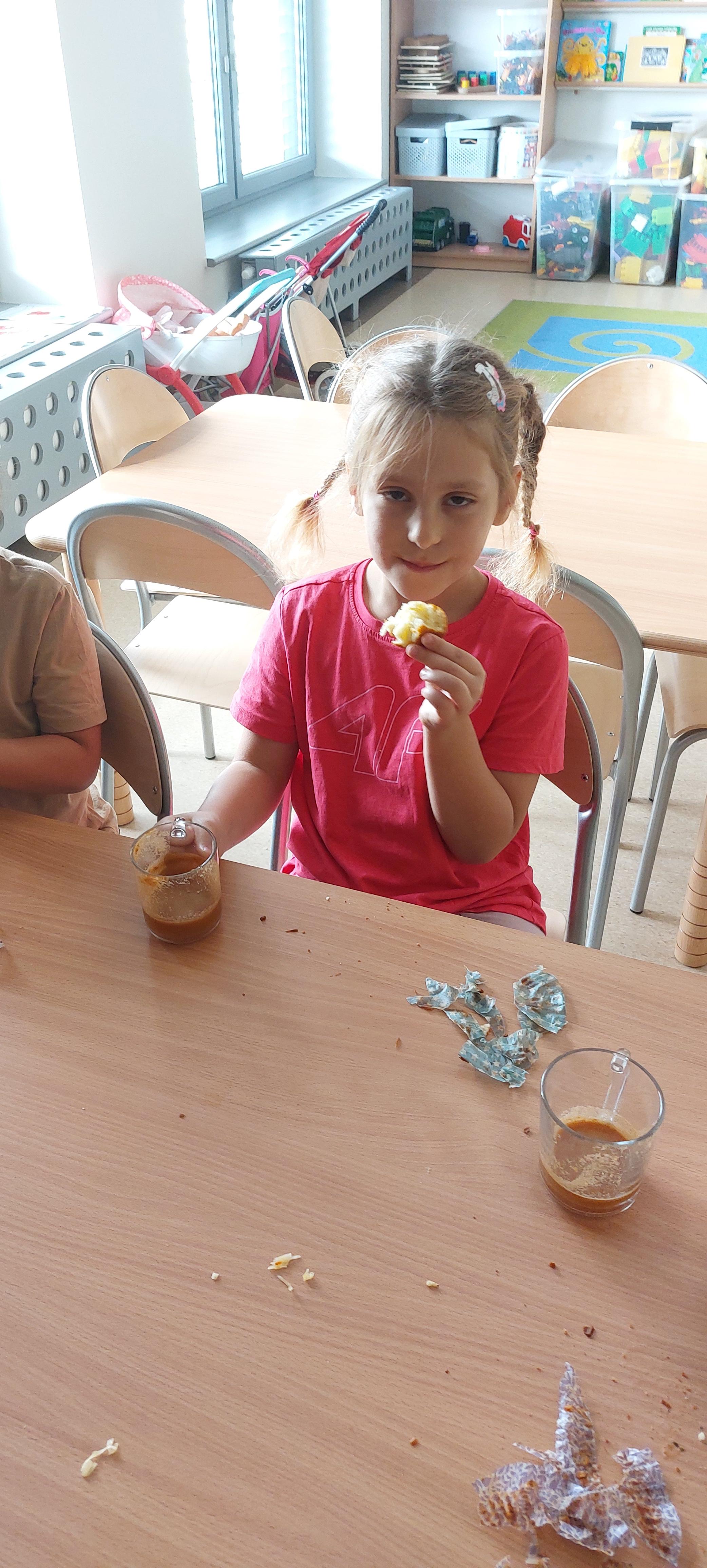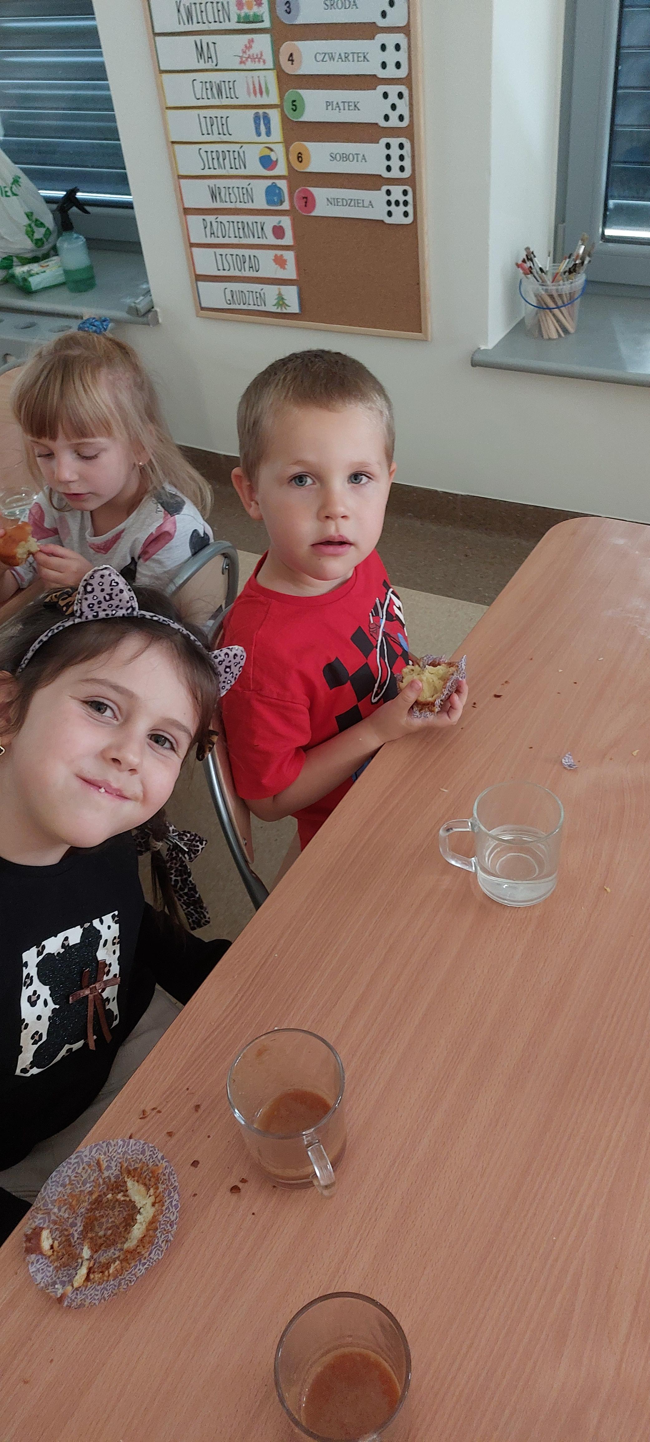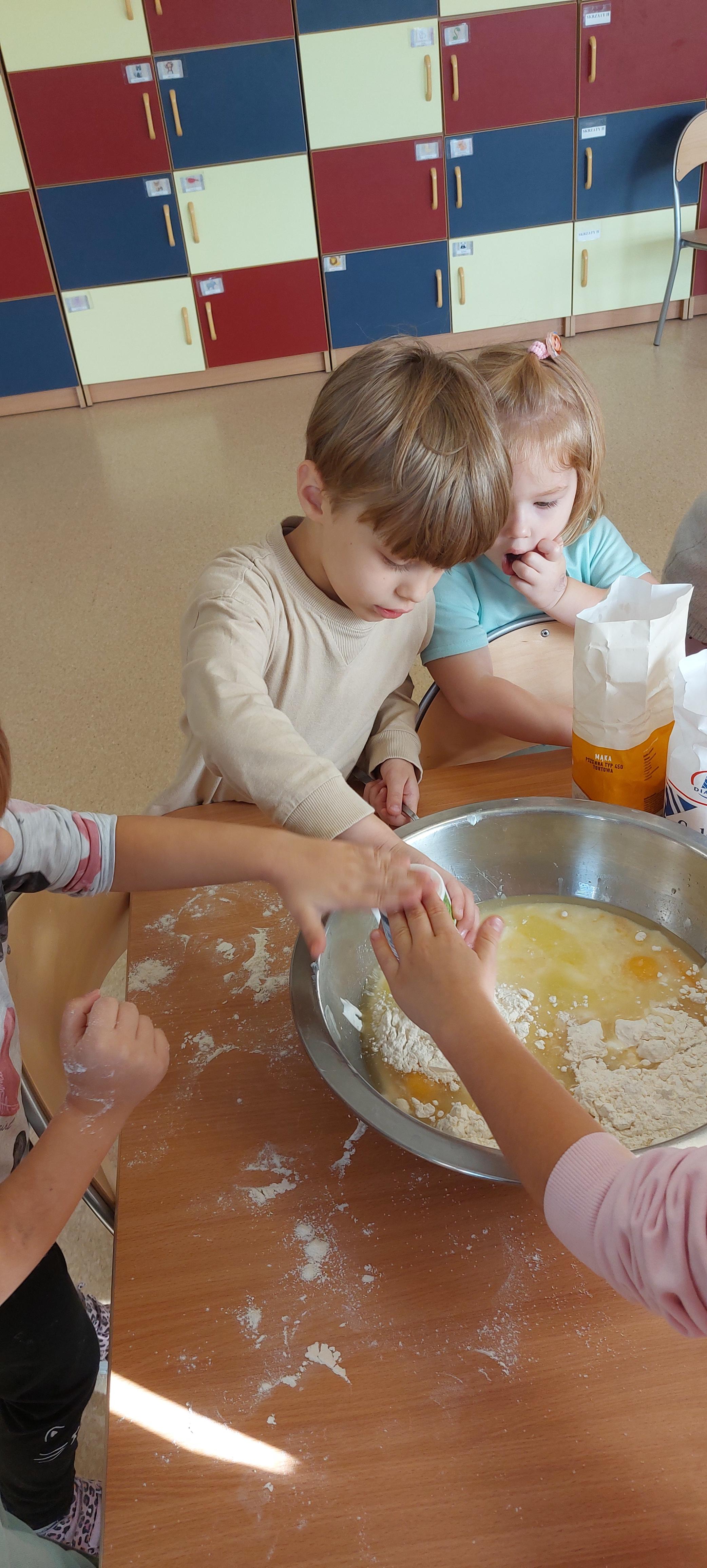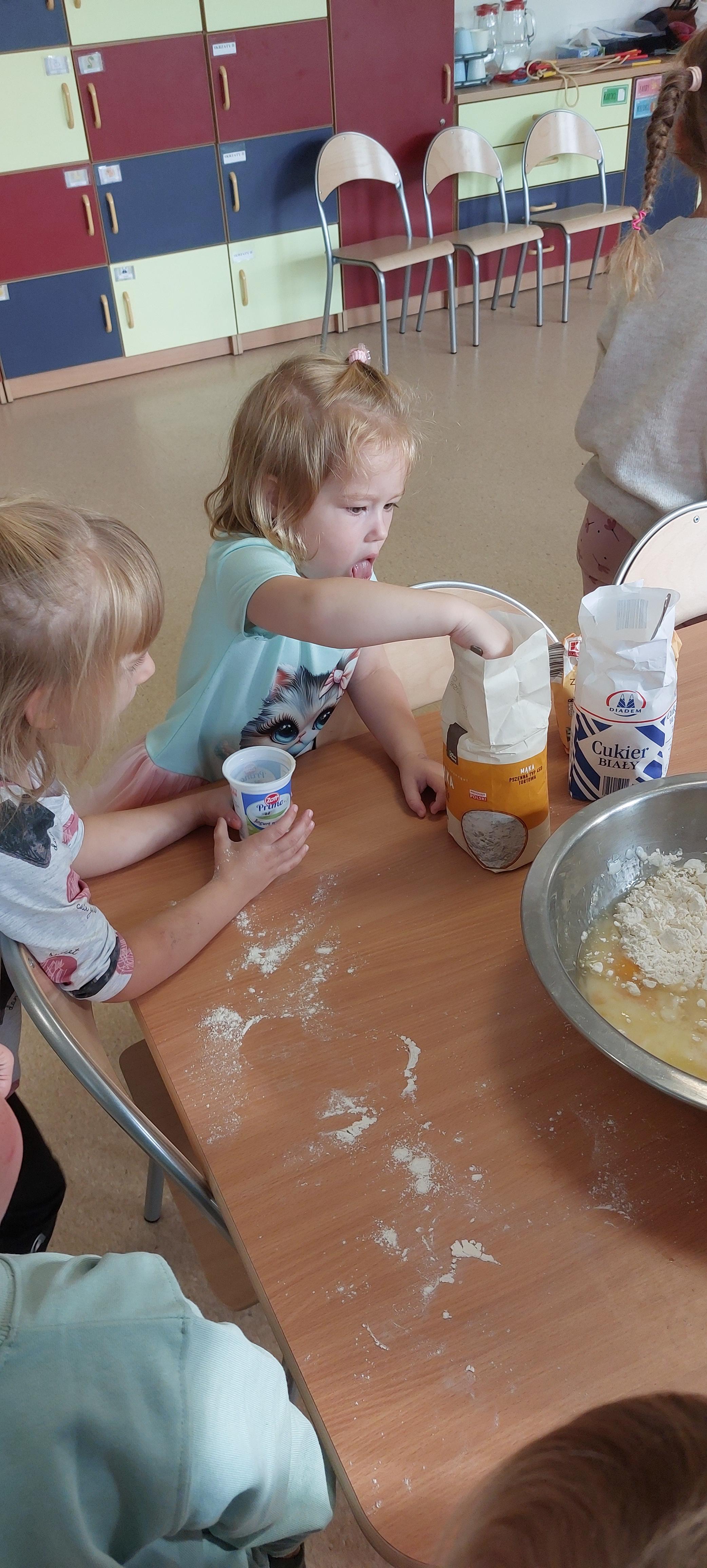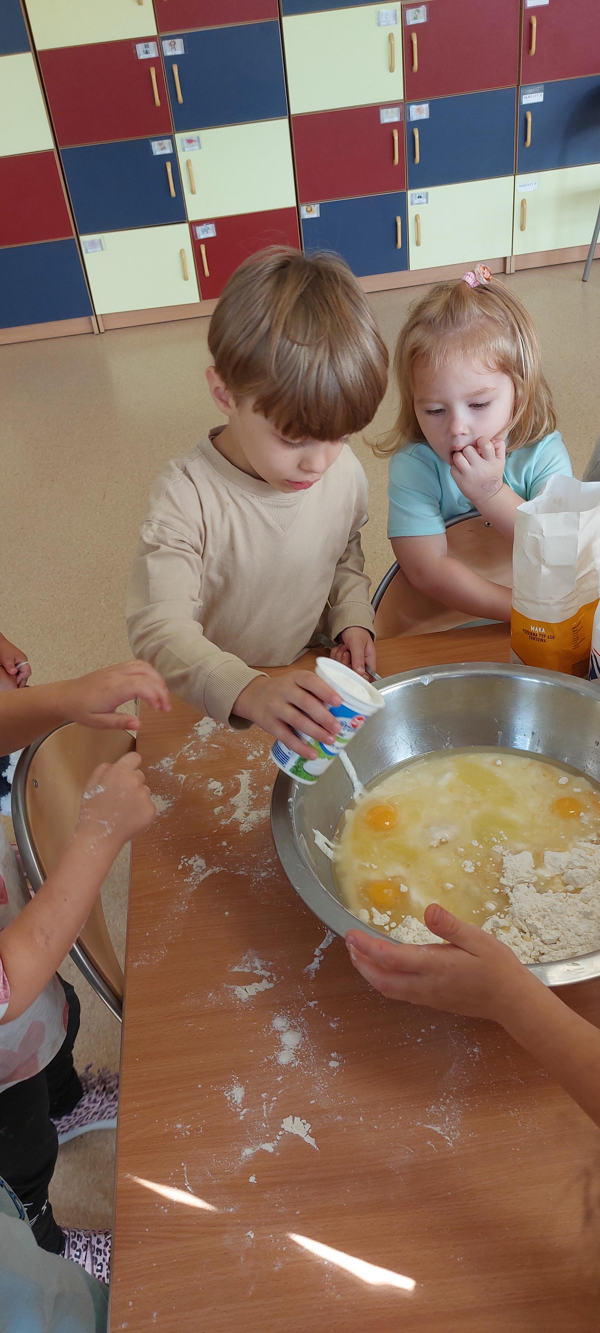 W piątek dzieci z grupy "Skrzaty" obchodziły Dzień Jabłka. Na początku odbyła się pogadanka na temat jego wyglądu, kolorów, wielkości, kształtu, smaku, różnych odmian. Później dzieci wykonały babeczki oraz sok jabłkowy, a także zajadały się surowymi jabłkami. Następnie wykonały prace plastyczną- jabłkowe pieczątki w słoiku oraz malowały za pomocą farby jabłka na worku strunowym. Na twarzach dzieci gościły uśmiechy.