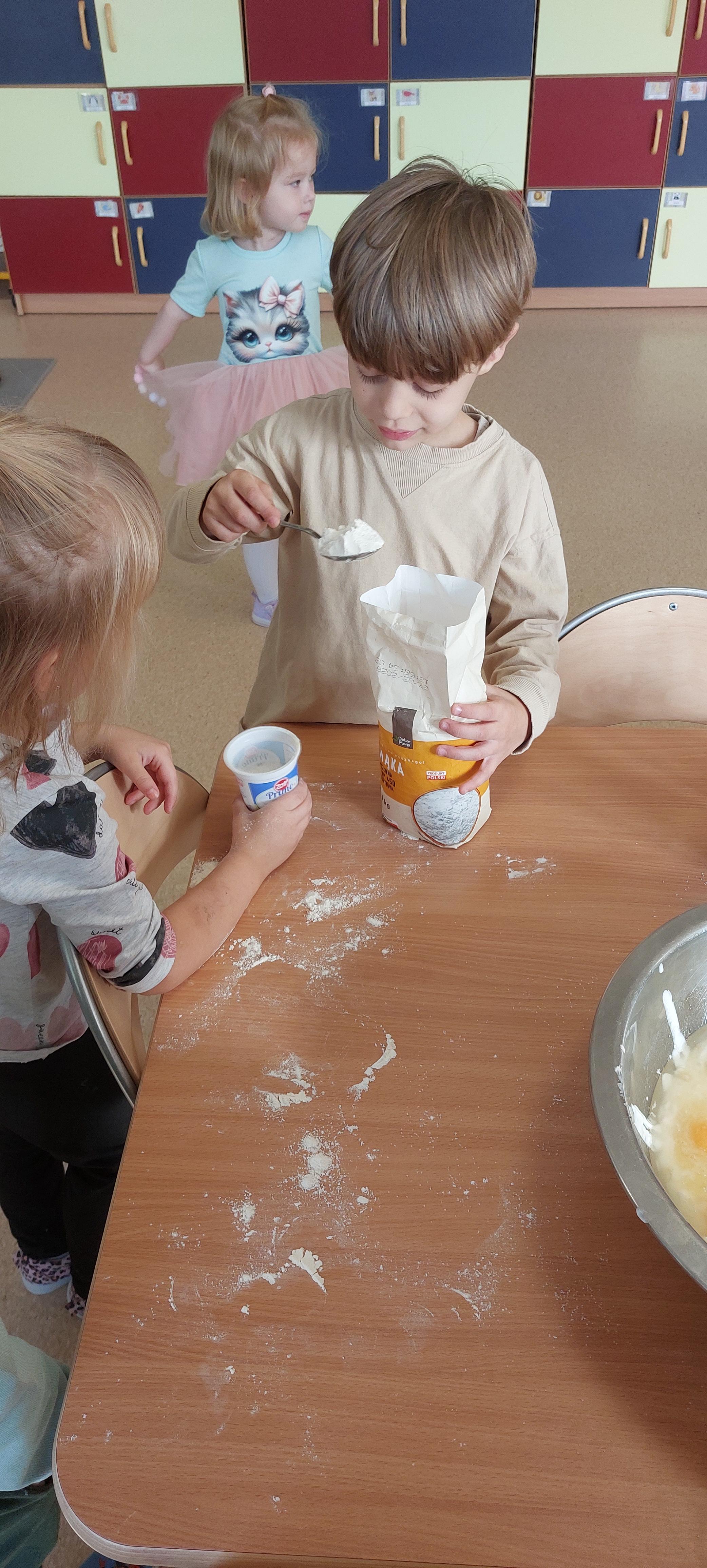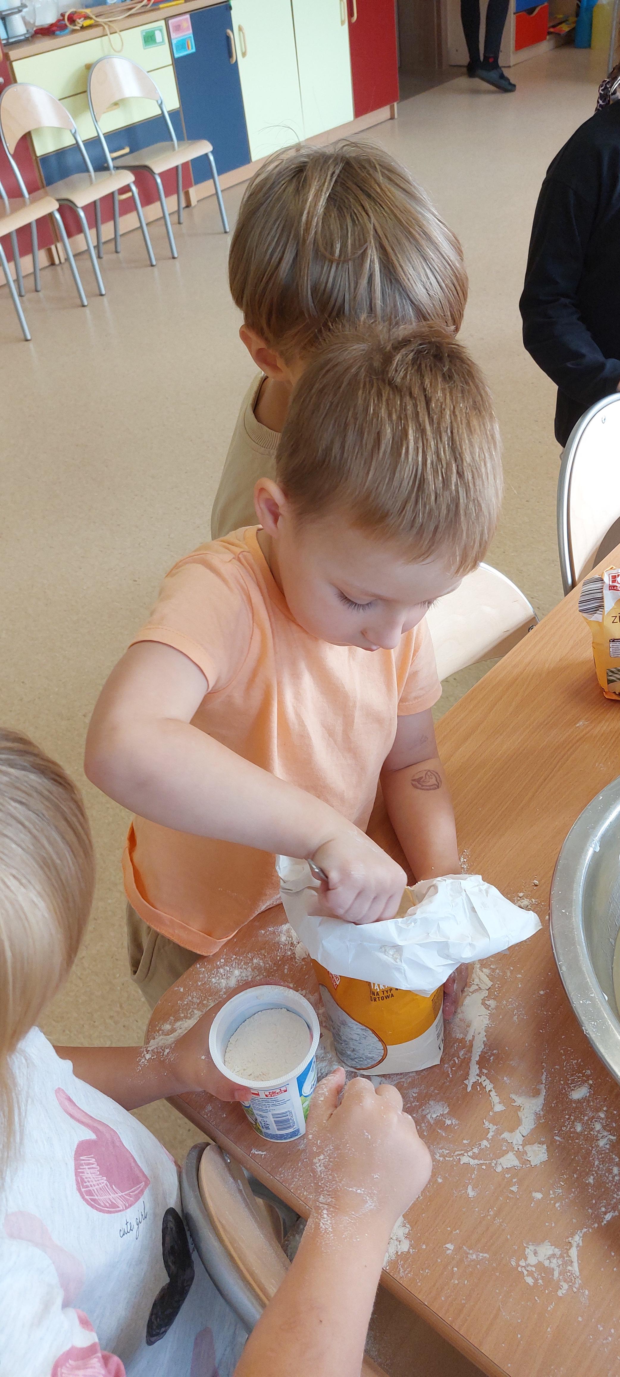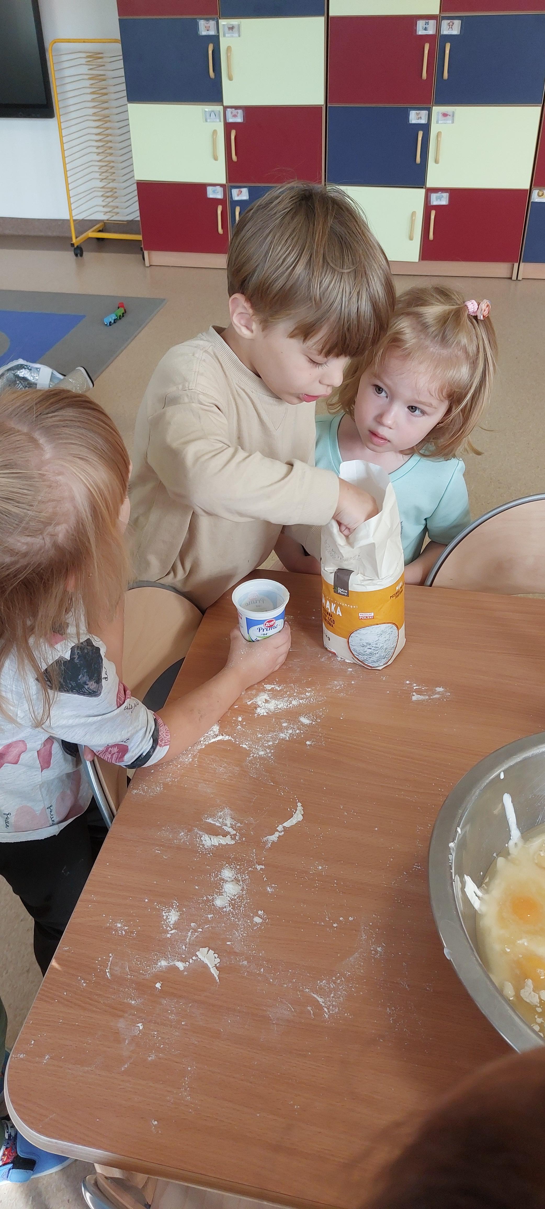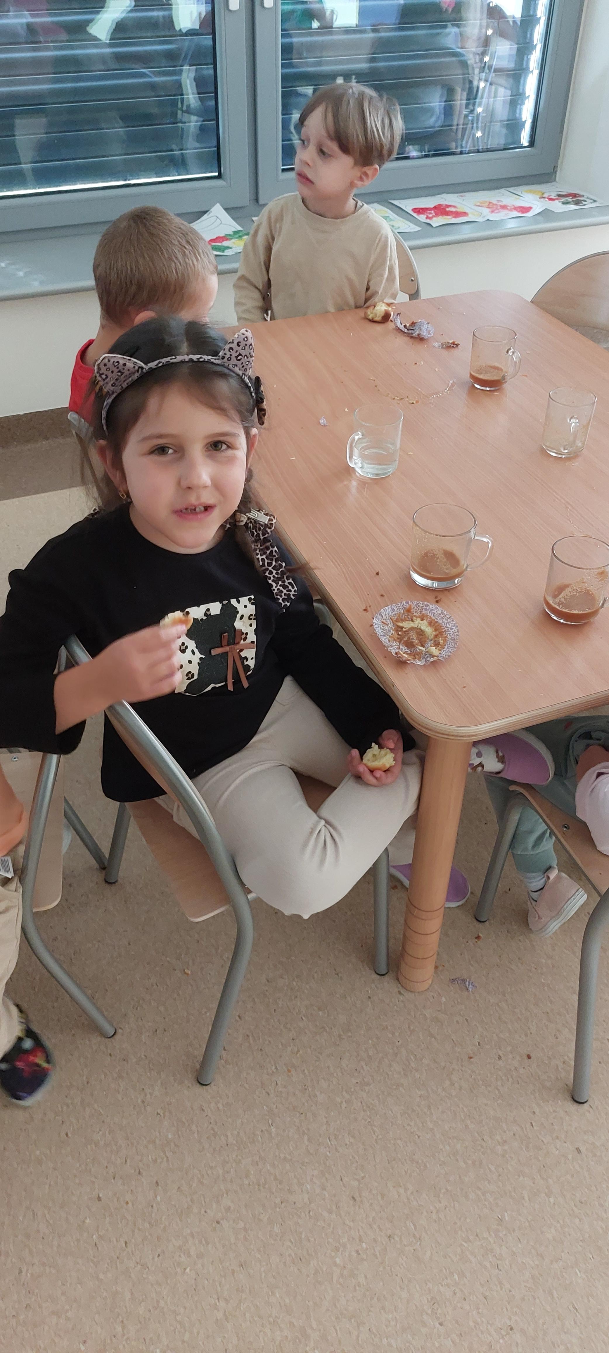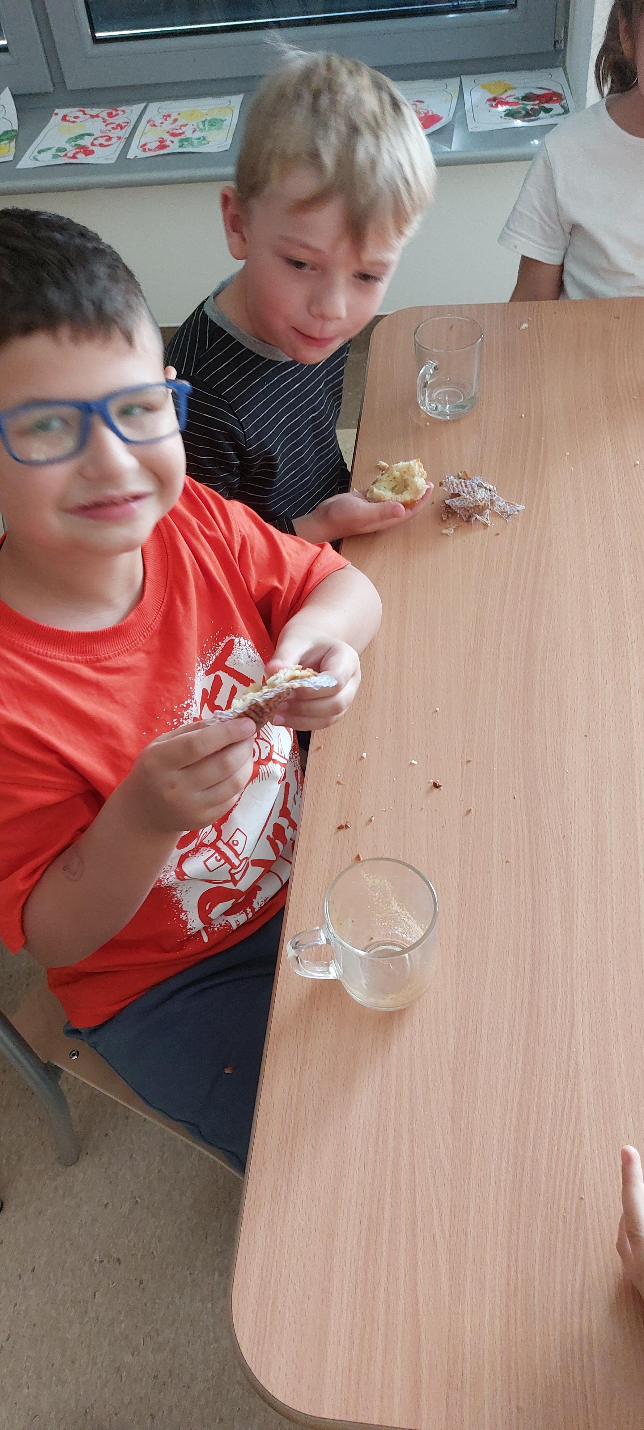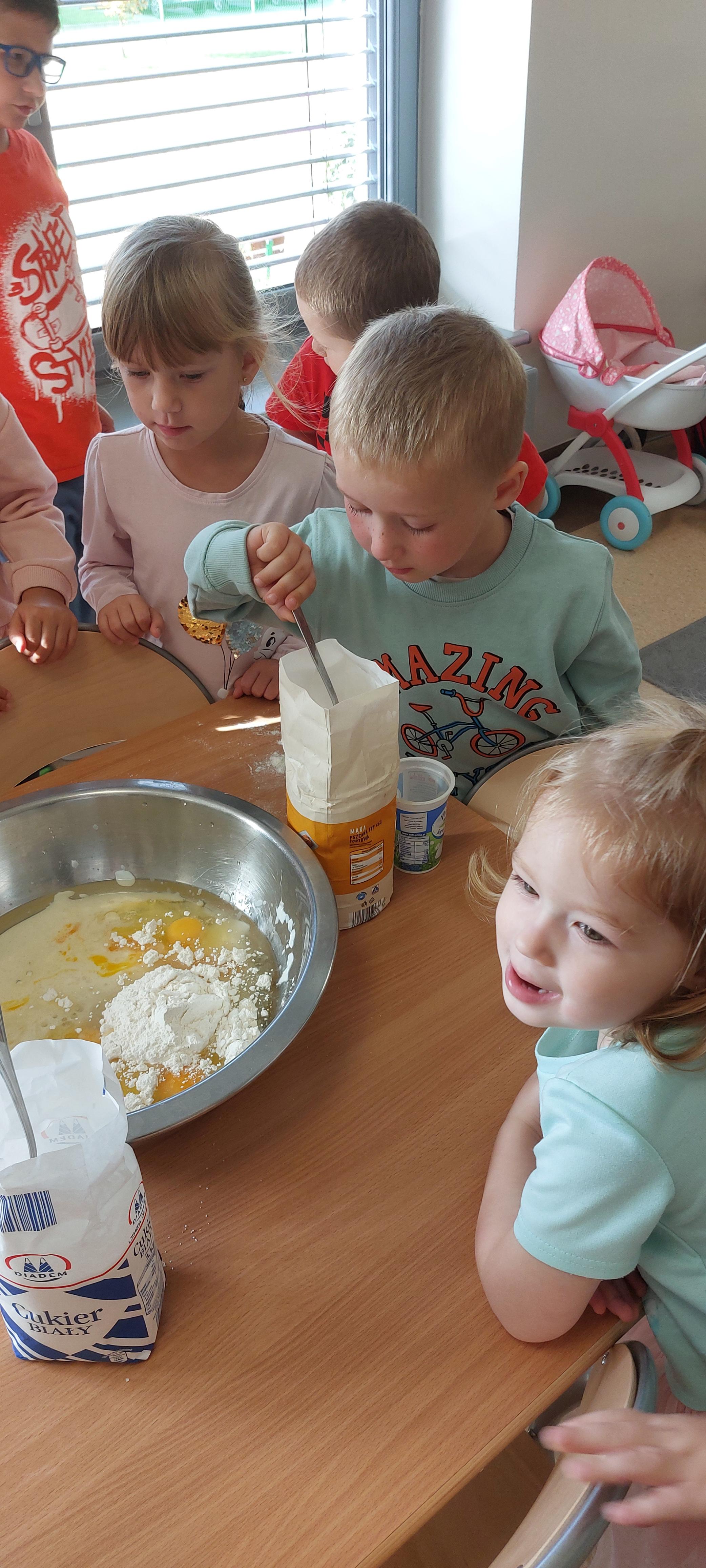 W piątek dzieci z grupy "Skrzaty" obchodziły Dzień Jabłka. Na początku odbyła się pogadanka na temat jego wyglądu, kolorów, wielkości, kształtu, smaku, różnych odmian. Później dzieci wykonały babeczki oraz sok jabłkowy, a także zajadały się surowymi jabłkami. Następnie wykonały prace plastyczną- jabłkowe pieczątki w słoiku oraz malowały za pomocą farby jabłka na worku strunowym. Na twarzach dzieci gościły uśmiechy.