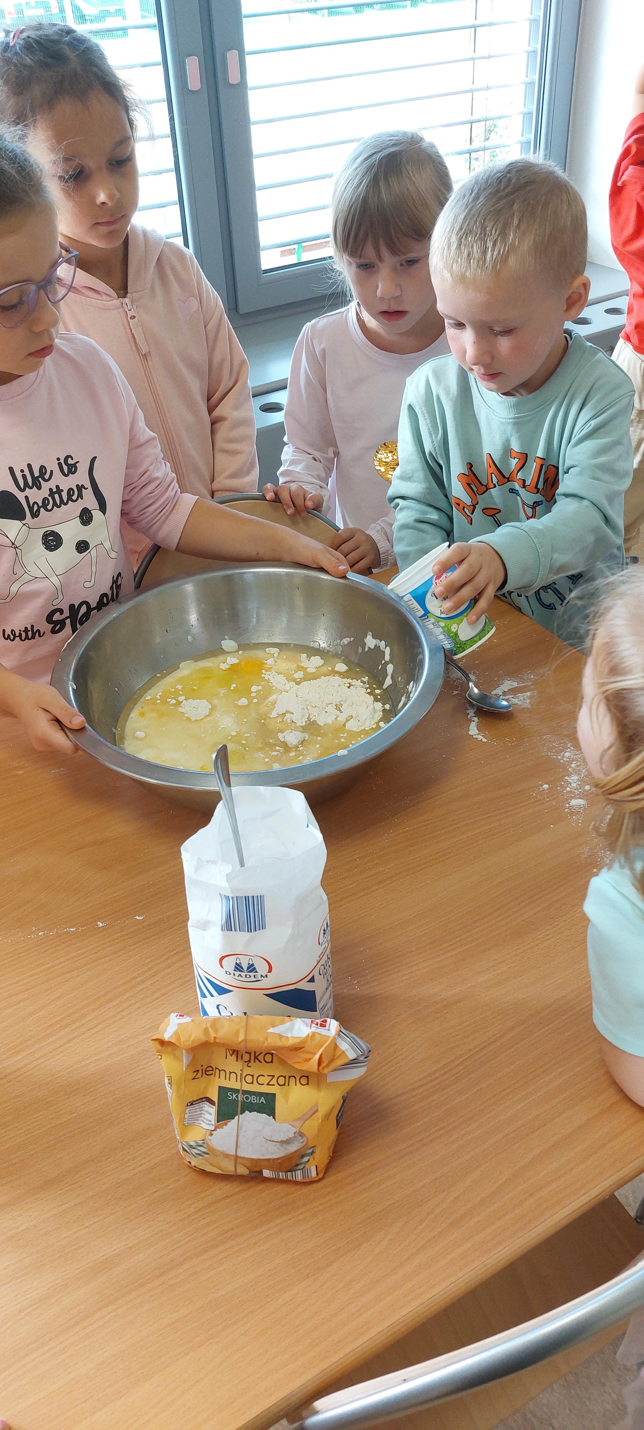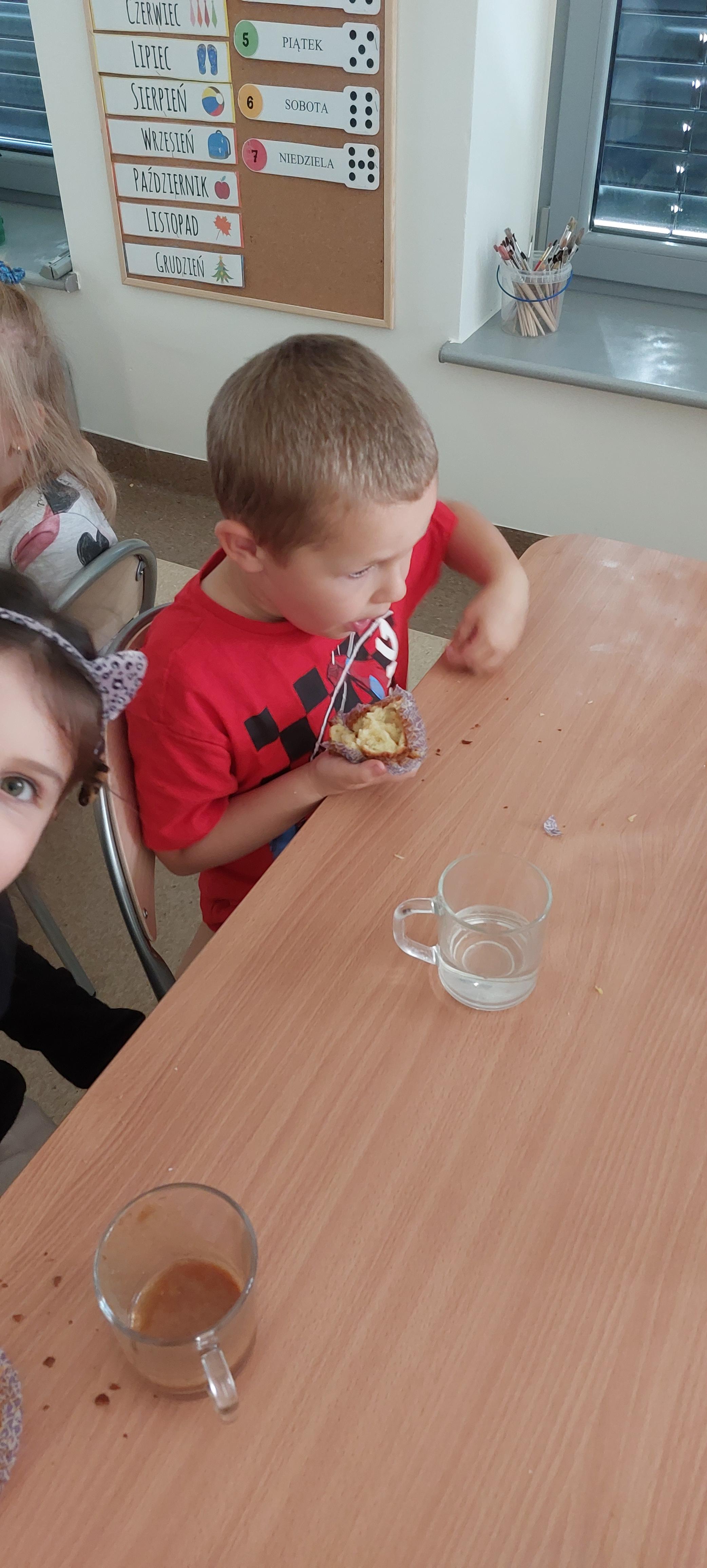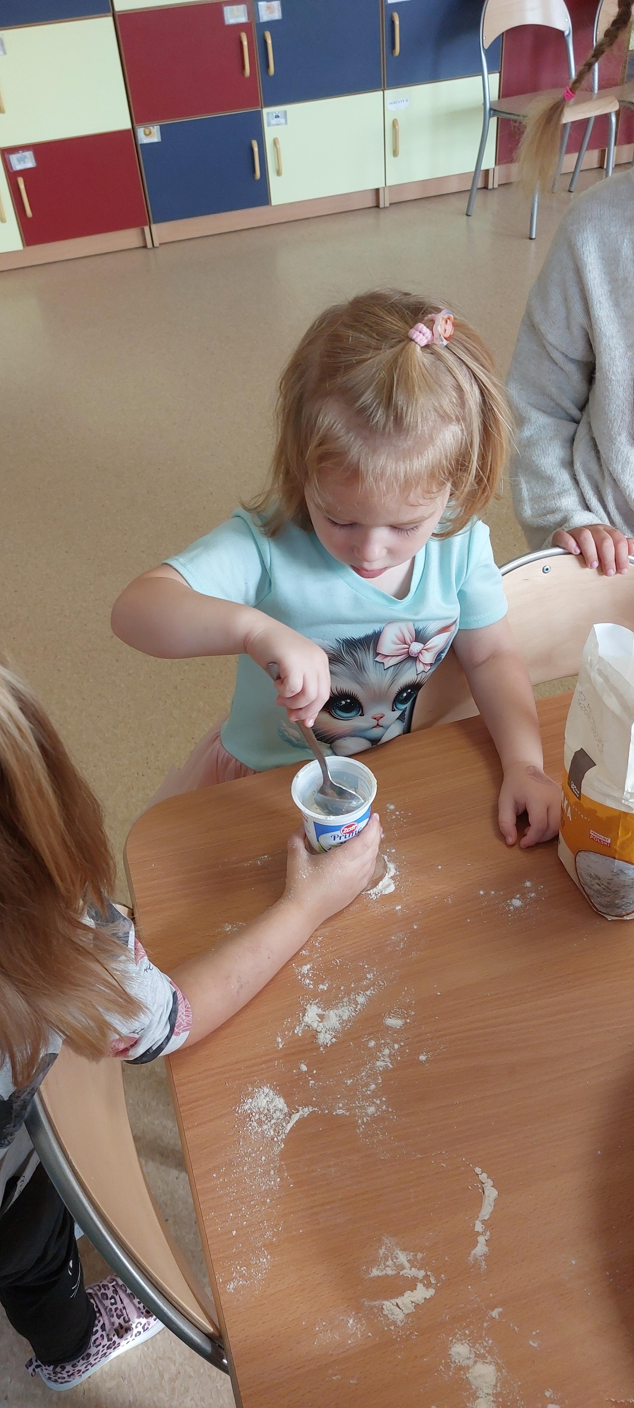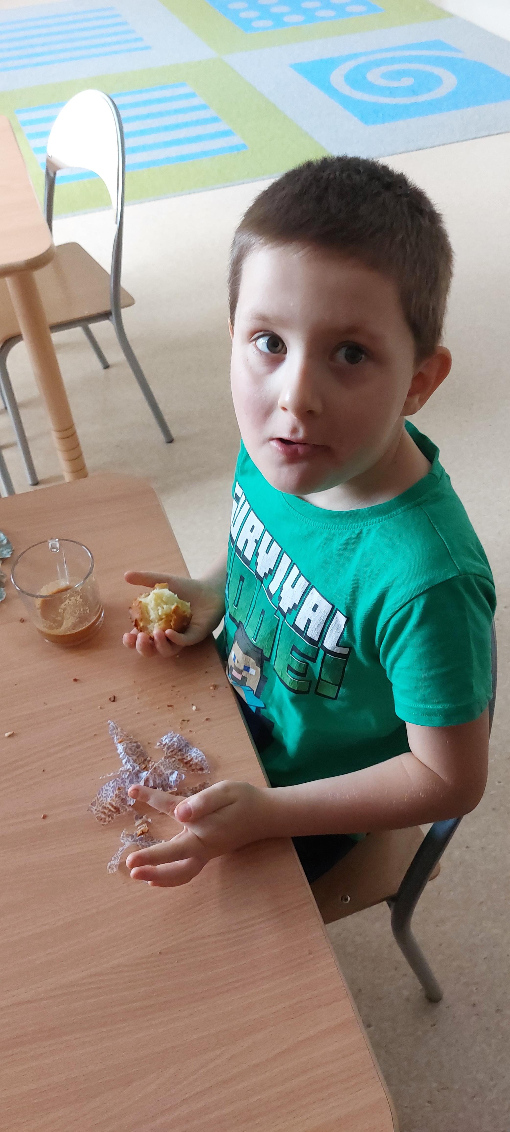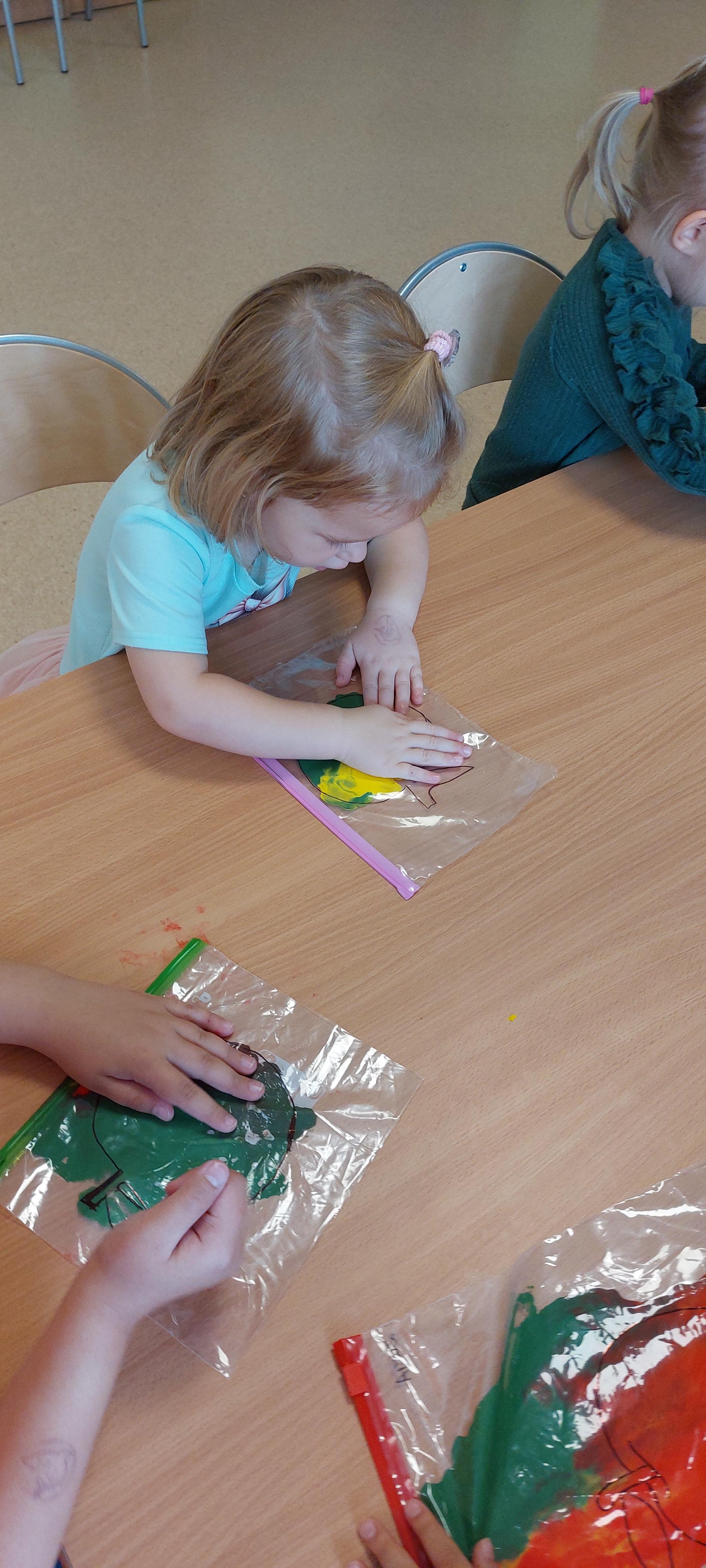 W piątek dzieci z grupy "Skrzaty" obchodziły Dzień Jabłka. Na początku odbyła się pogadanka na temat jego wyglądu, kolorów, wielkości, kształtu, smaku, różnych odmian. Później dzieci wykonały babeczki oraz sok jabłkowy, a także zajadały się surowymi jabłkami. Następnie wykonały prace plastyczną- jabłkowe pieczątki w słoiku oraz malowały za pomocą farby jabłka na worku strunowym. Na twarzach dzieci gościły uśmiechy.
