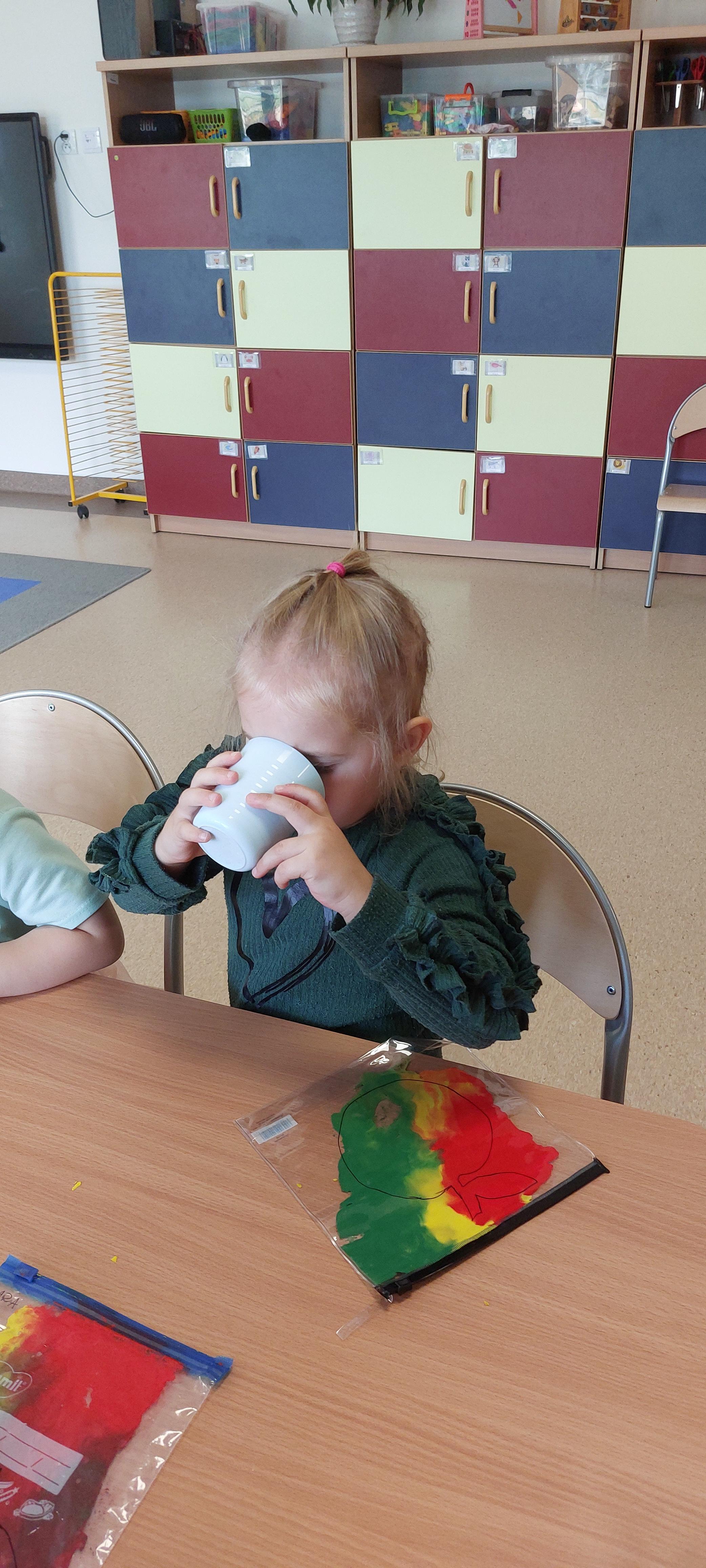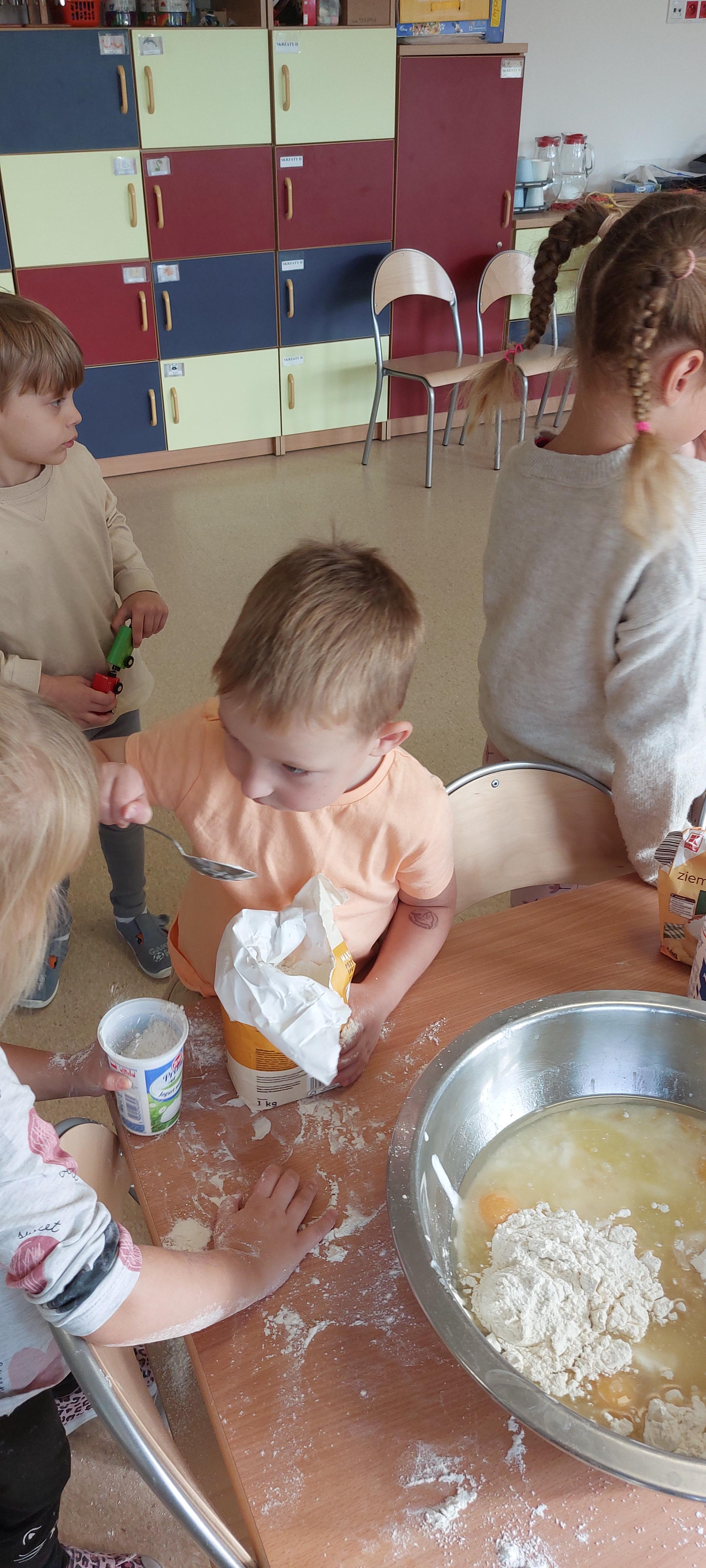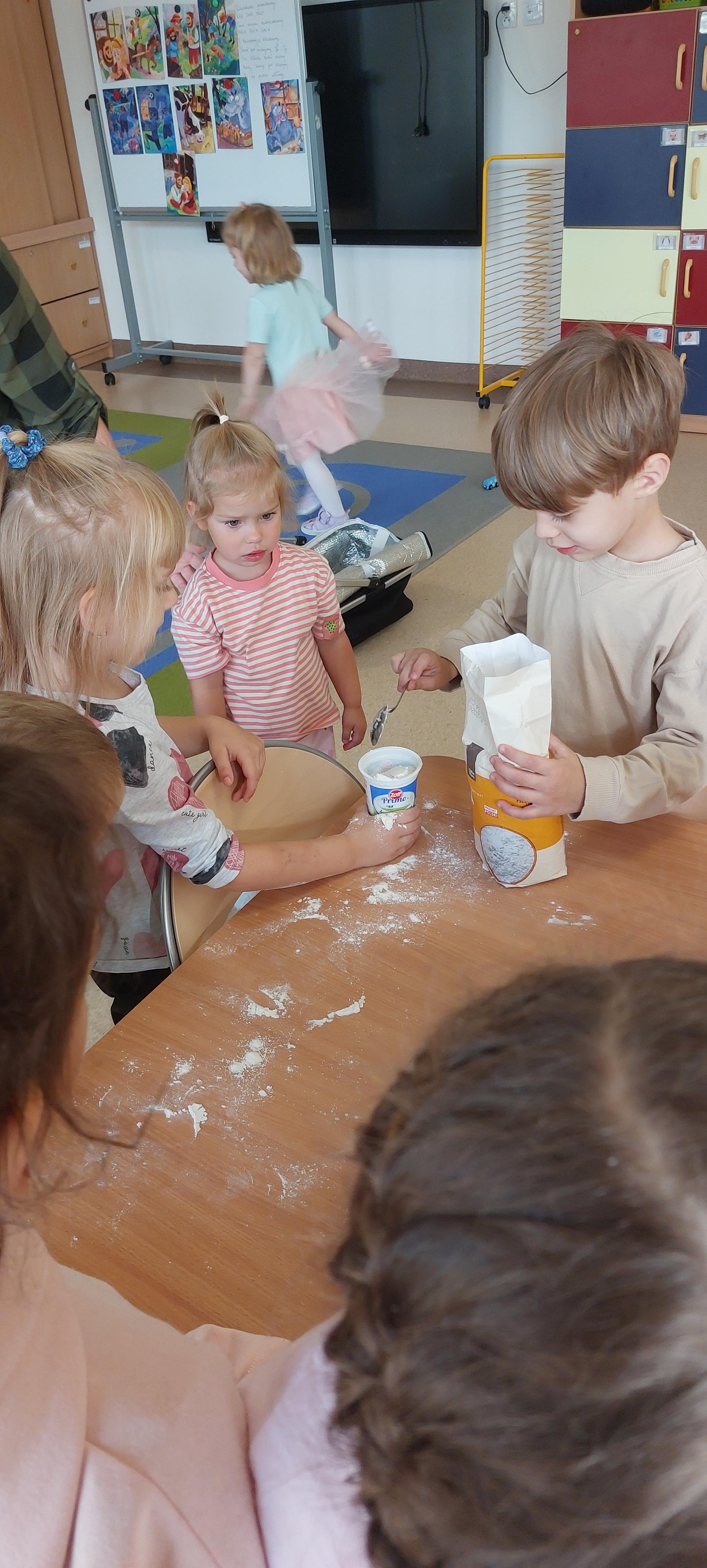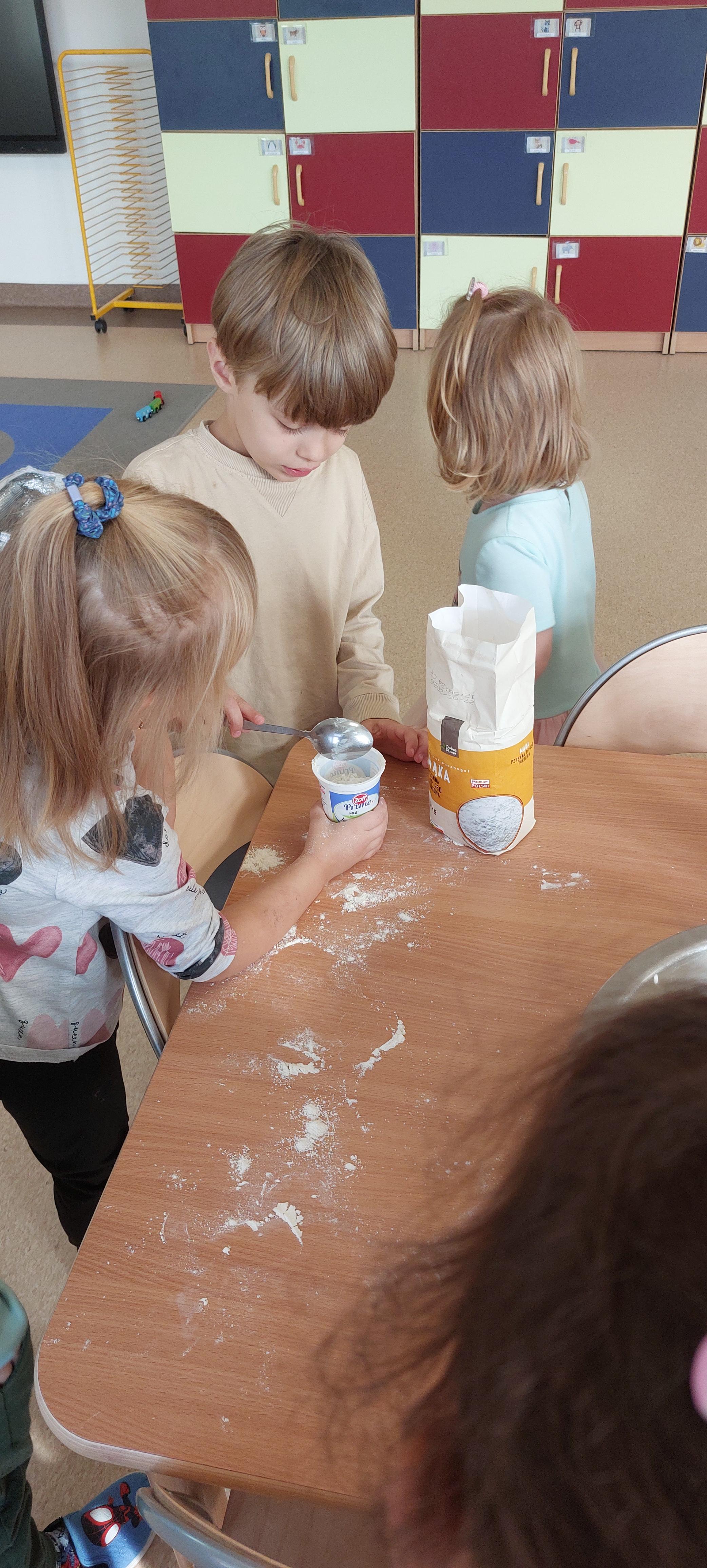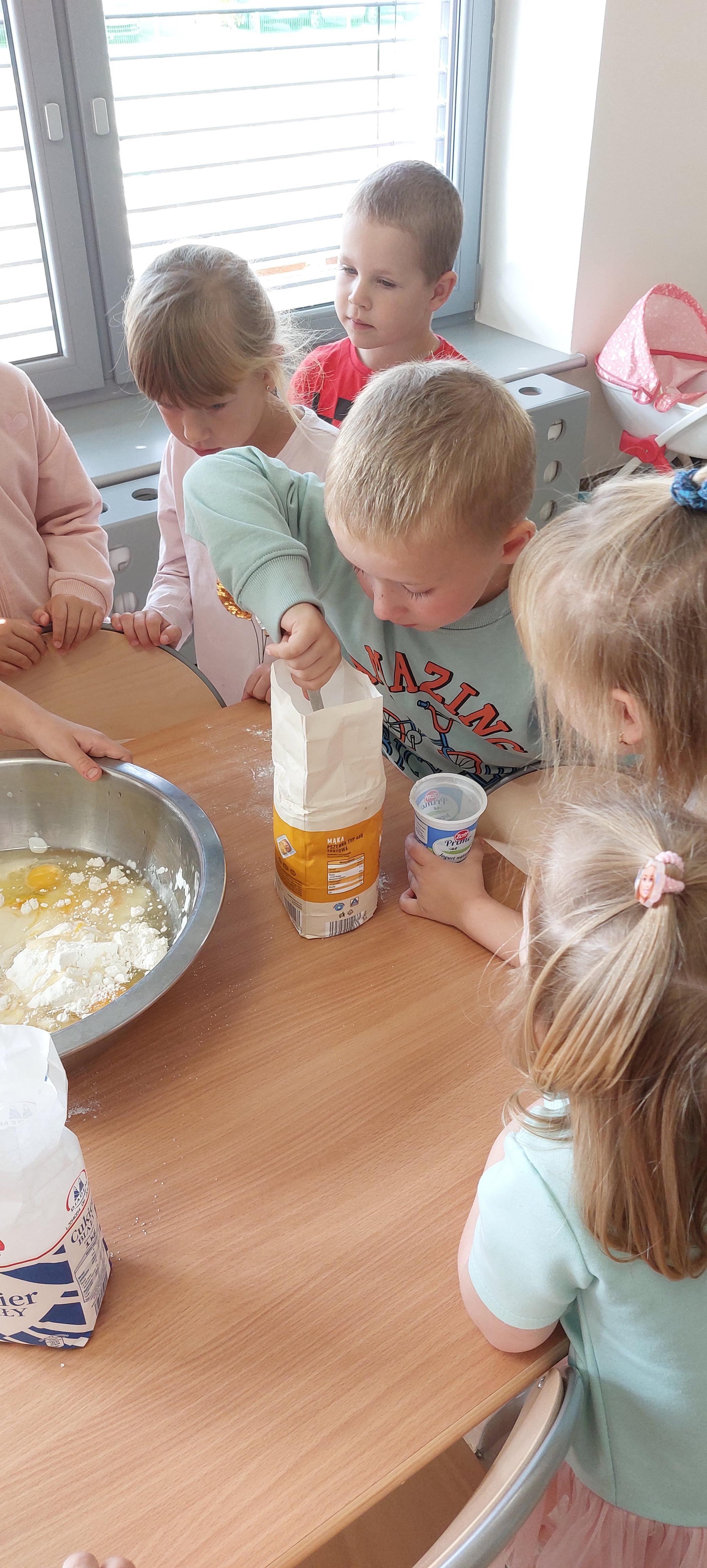 W piątek dzieci z grupy "Skrzaty" obchodziły Dzień Jabłka. Na początku odbyła się pogadanka na temat jego wyglądu, kolorów, wielkości, kształtu, smaku, różnych odmian. Później dzieci wykonały babeczki oraz sok jabłkowy, a także zajadały się surowymi jabłkami. Następnie wykonały prace plastyczną- jabłkowe pieczątki w słoiku oraz malowały za pomocą farby jabłka na worku strunowym. Na twarzach dzieci gościły uśmiechy.