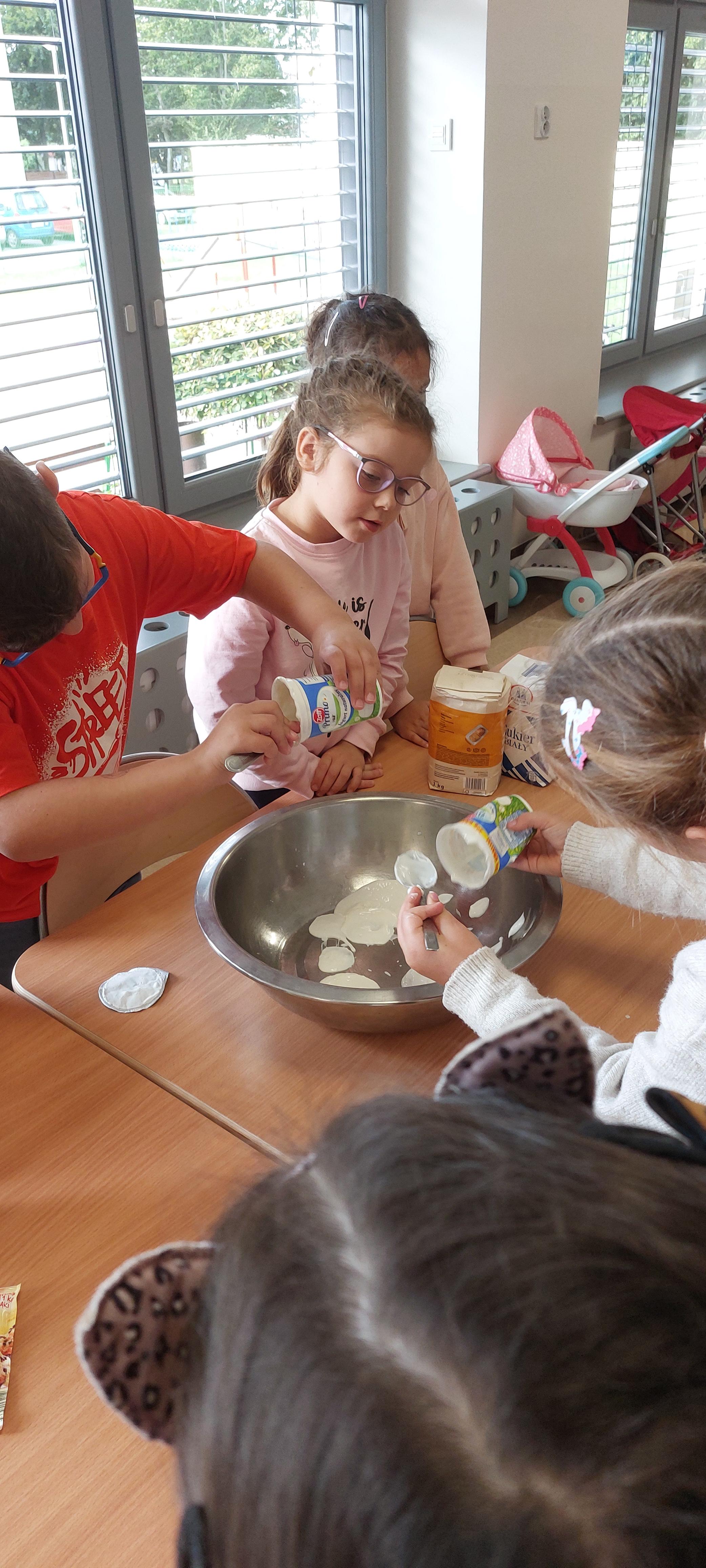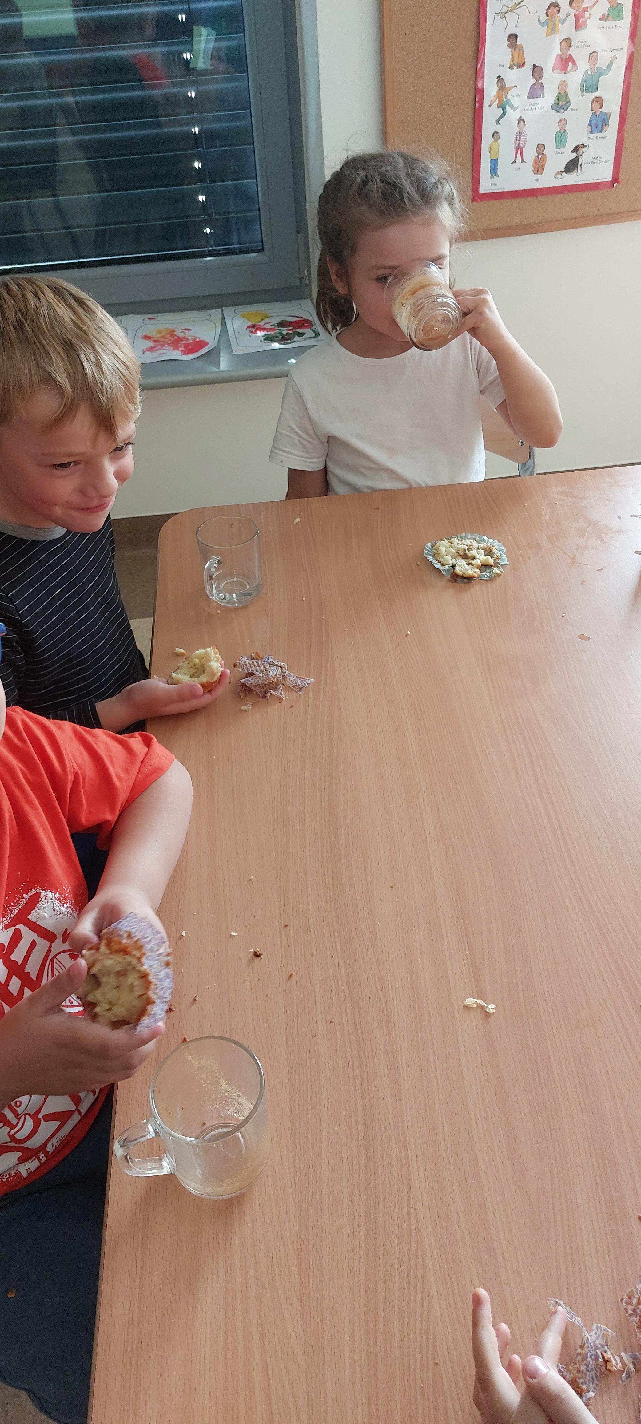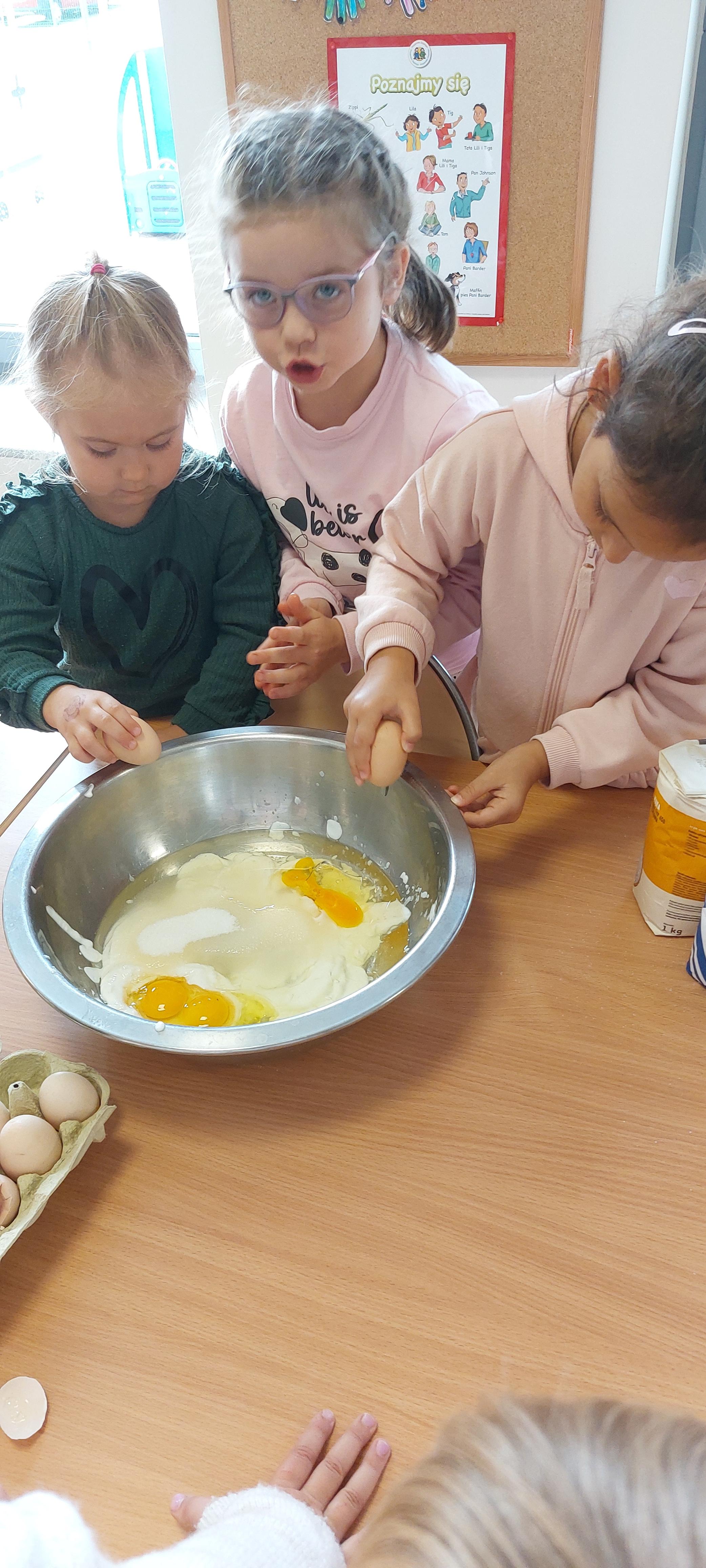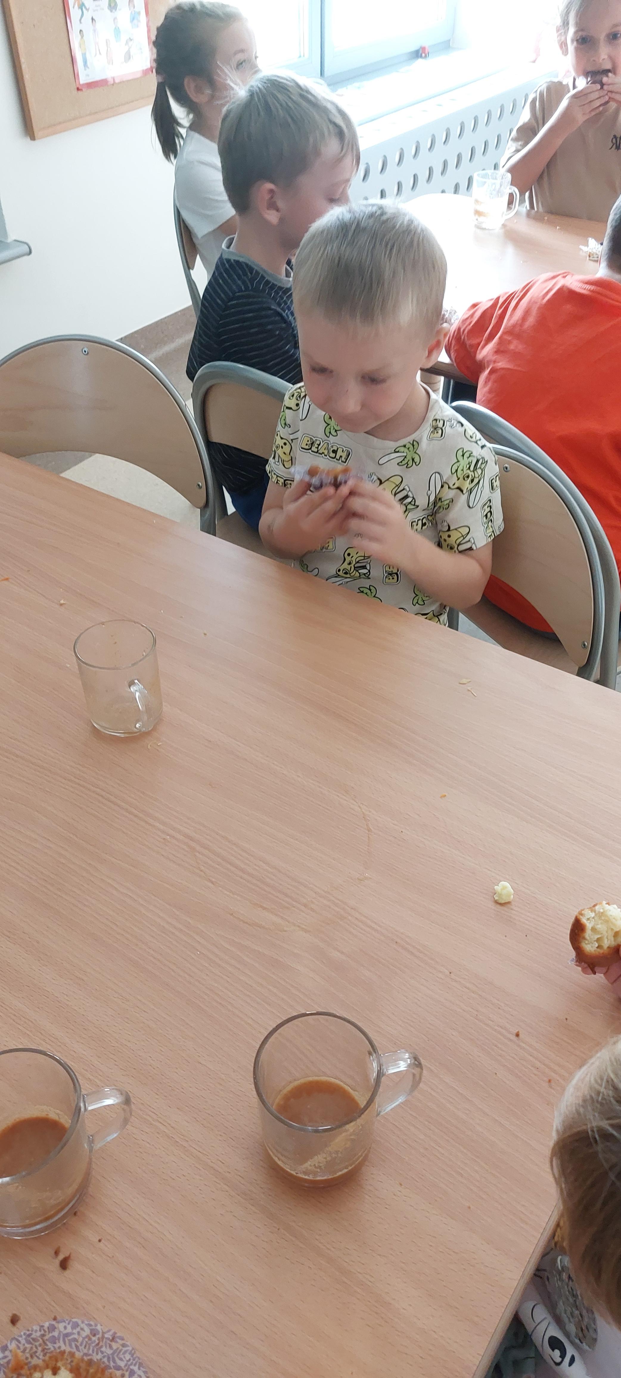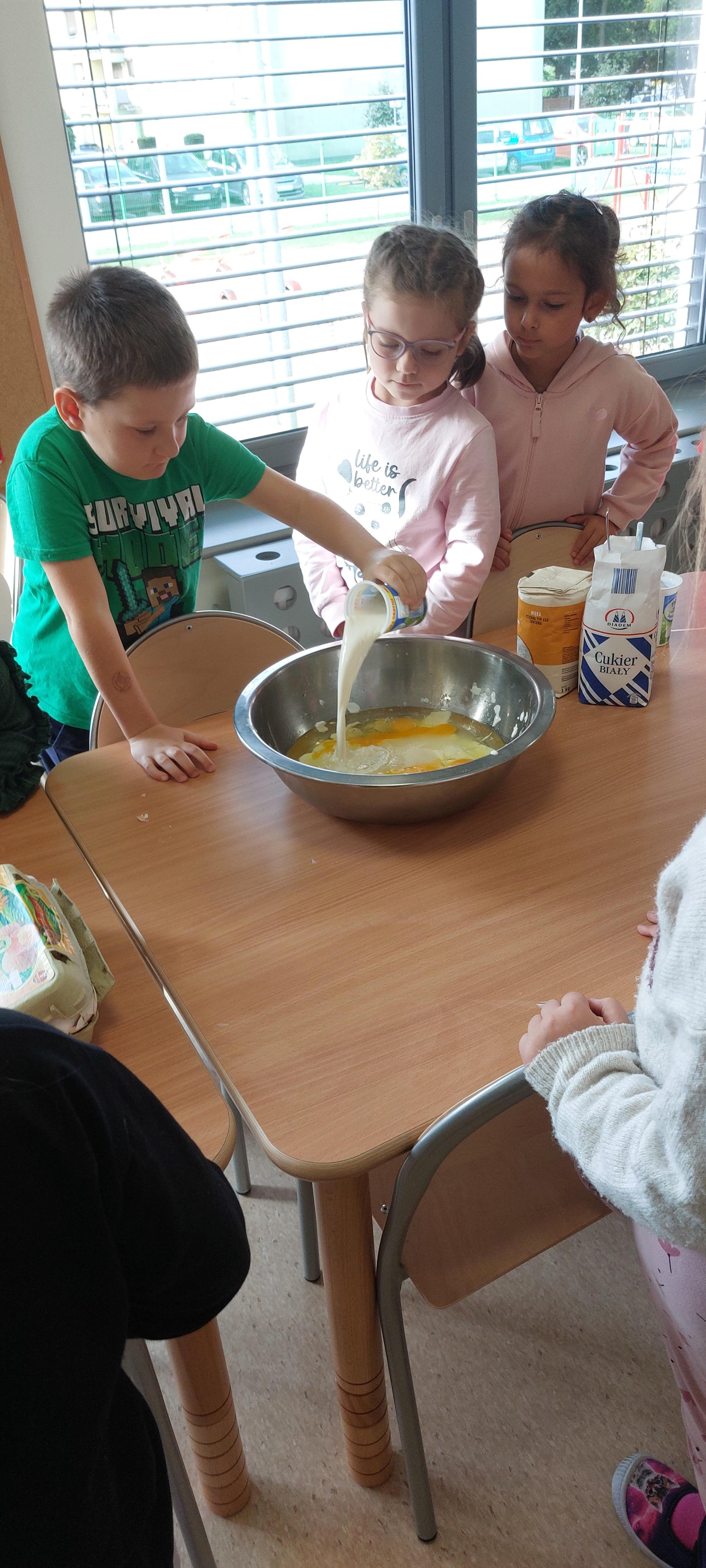 W piątek dzieci z grupy "Skrzaty" obchodziły Dzień Jabłka. Na początku odbyła się pogadanka na temat jego wyglądu, kolorów, wielkości, kształtu, smaku, różnych odmian. Później dzieci wykonały babeczki oraz sok jabłkowy, a także zajadały się surowymi jabłkami. Następnie wykonały prace plastyczną- jabłkowe pieczątki w słoiku oraz malowały za pomocą farby jabłka na worku strunowym. Na twarzach dzieci gościły uśmiechy.