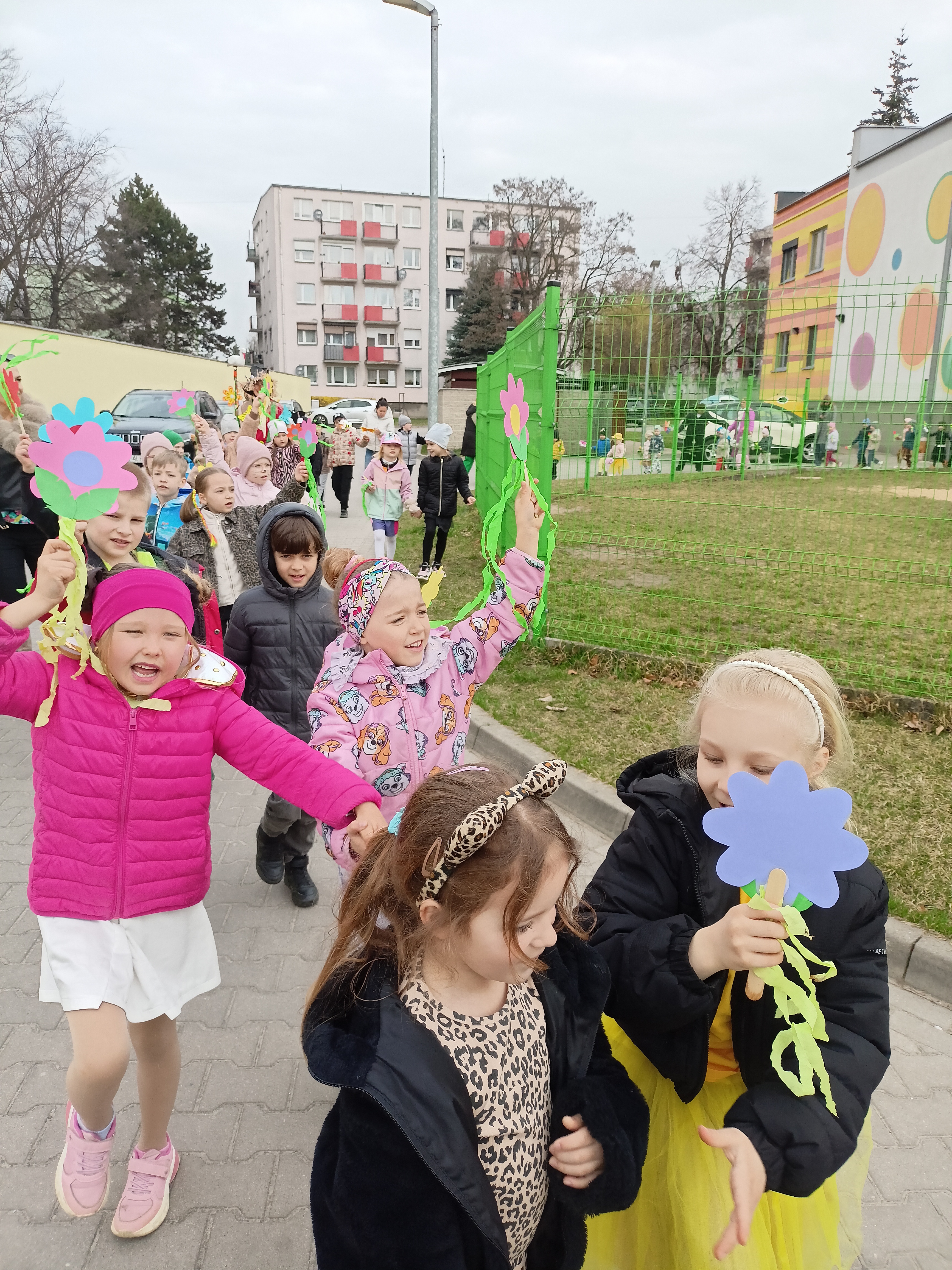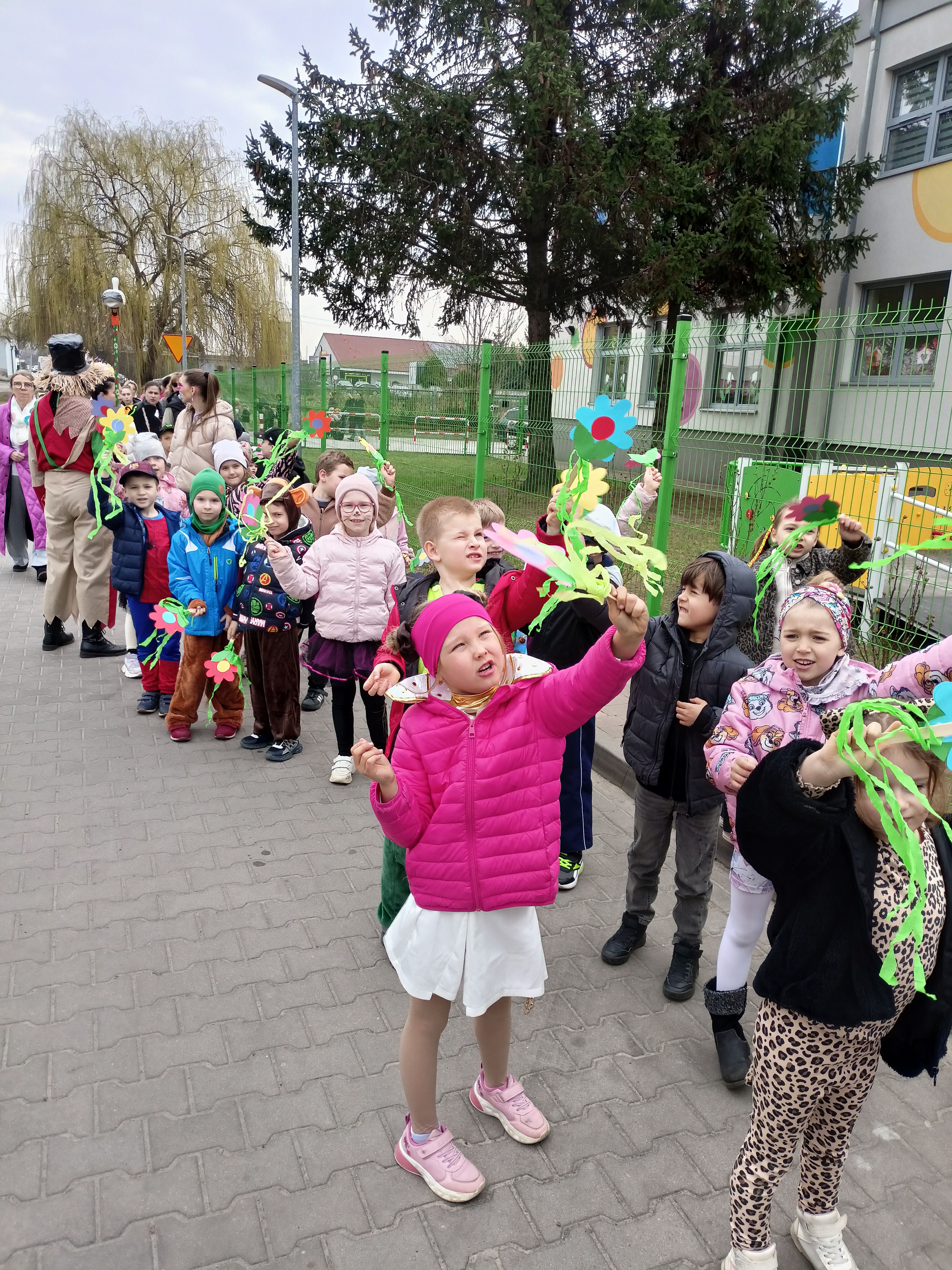Dziś dzieci z naszego przedszkola przywitały Wiosnę. Wszyscy zebraliśmy się na placu zabaw, pożegnaliśmy Marzannę, a potem przywitaliśmy Panią Wiosnę. Następnie ruszyliśmy korowodem śpiewając piosenki. Zostały też dziś ogłoszone wyniki konkursu plastycznego na "Panią Wiosnę". Żwirki zdobyły kilka wyróżnień, drugie i trzecie miejsca. Serdecznie wszystkim gratulujemy i dziękujemy za udział w konkursie. Witaj Wiosno!