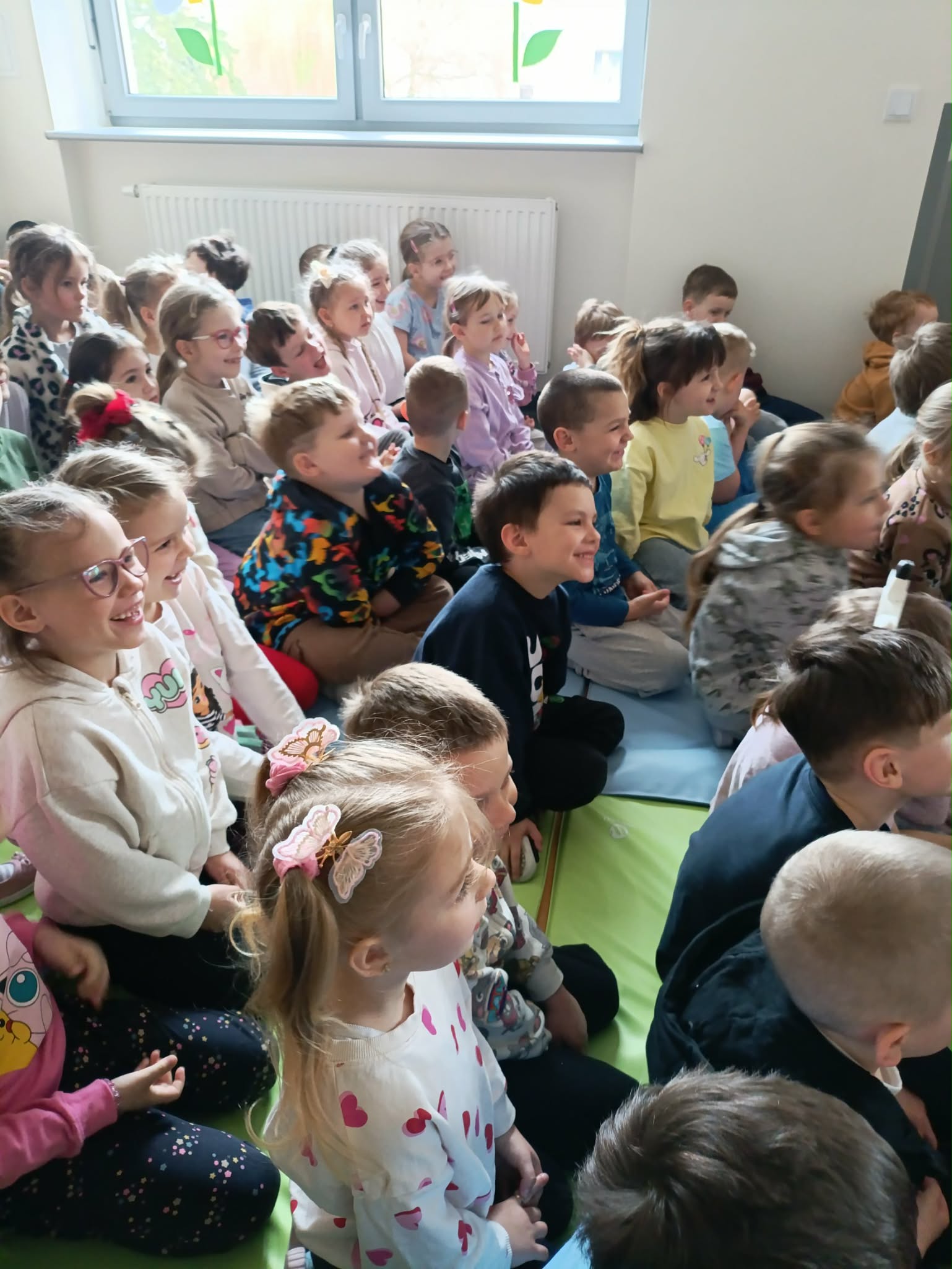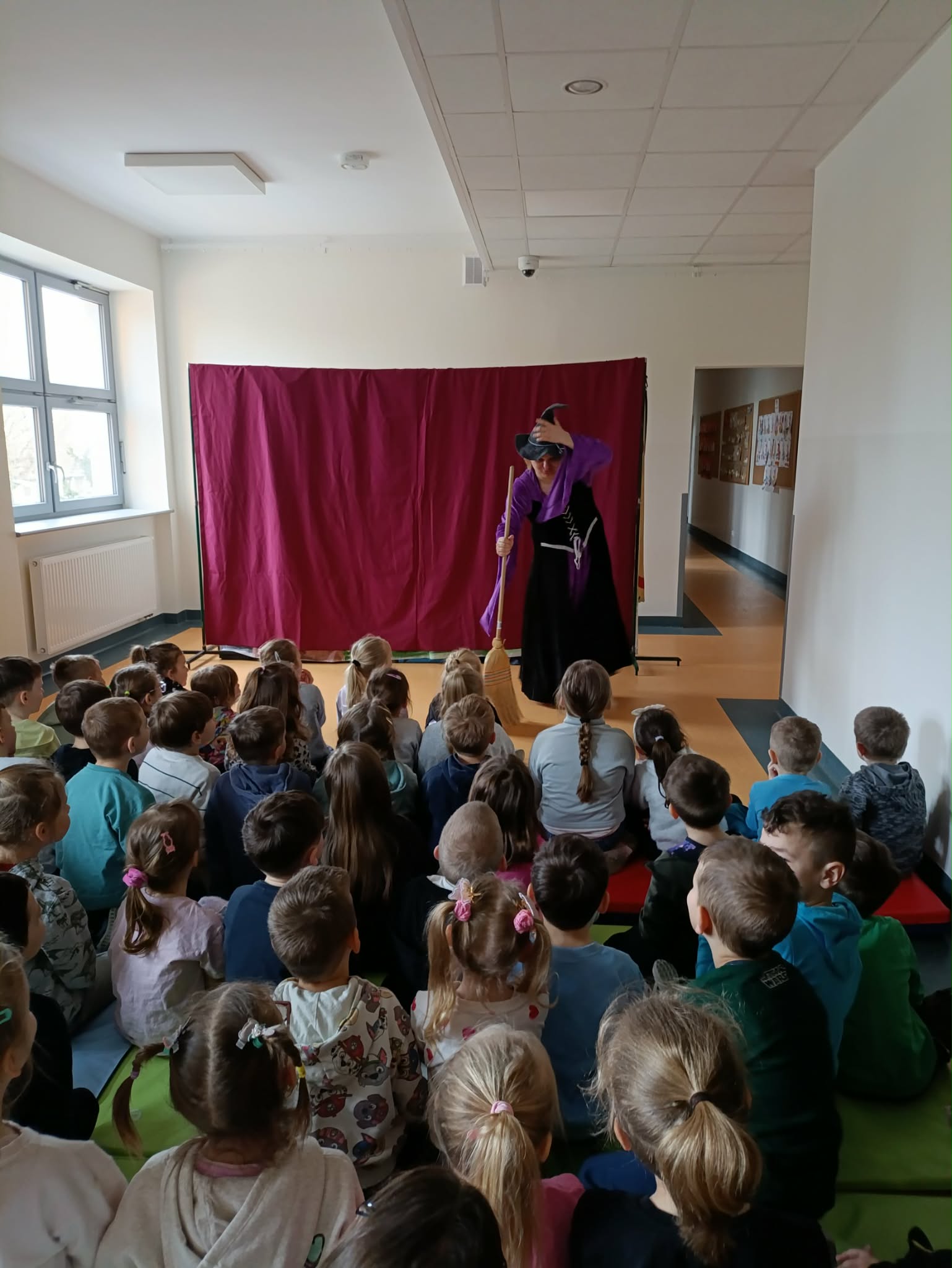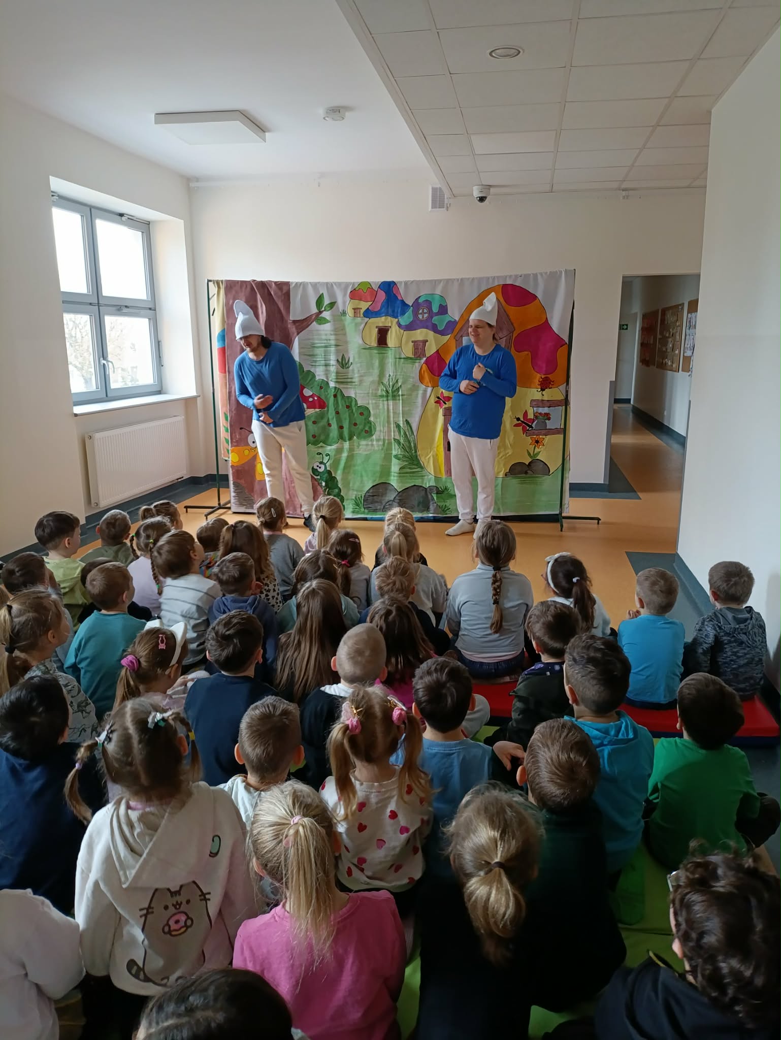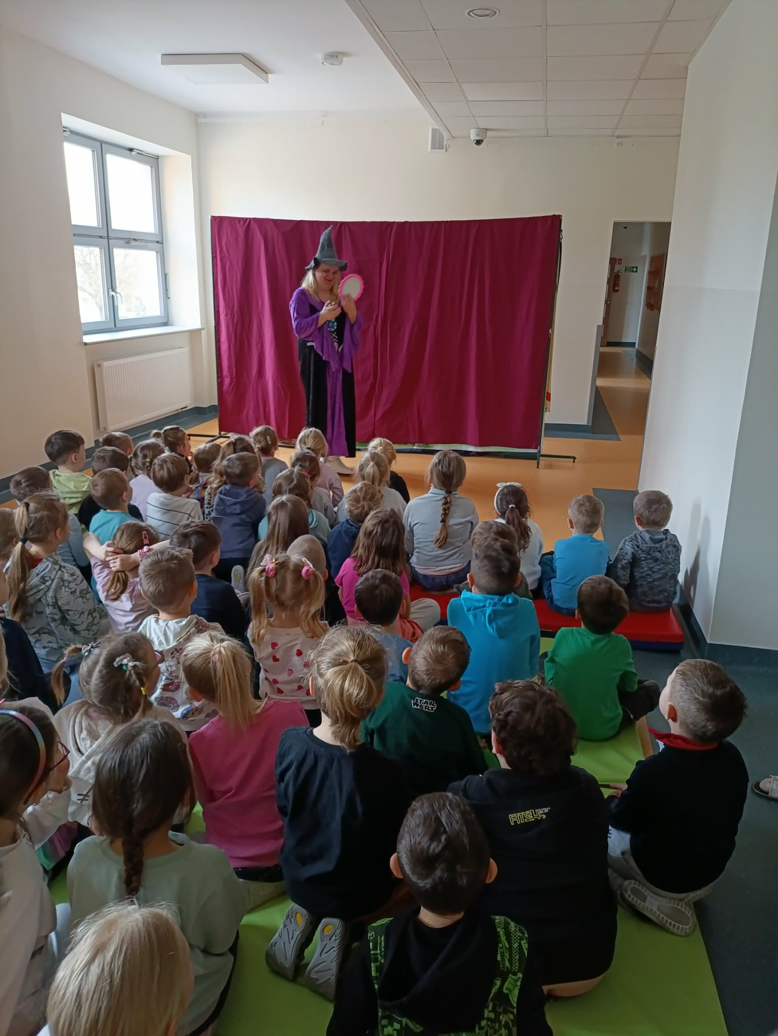 Dzisiaj w przedszkolu odwiedzili nas aktorzy, którzy wcielili się w rolę Smerfów i złej czarownicy.