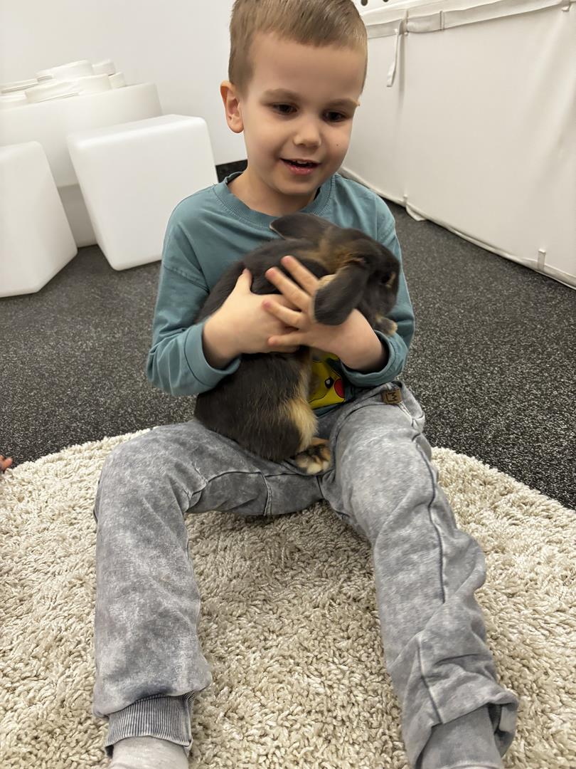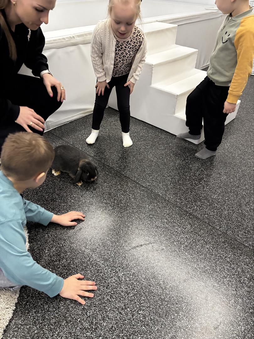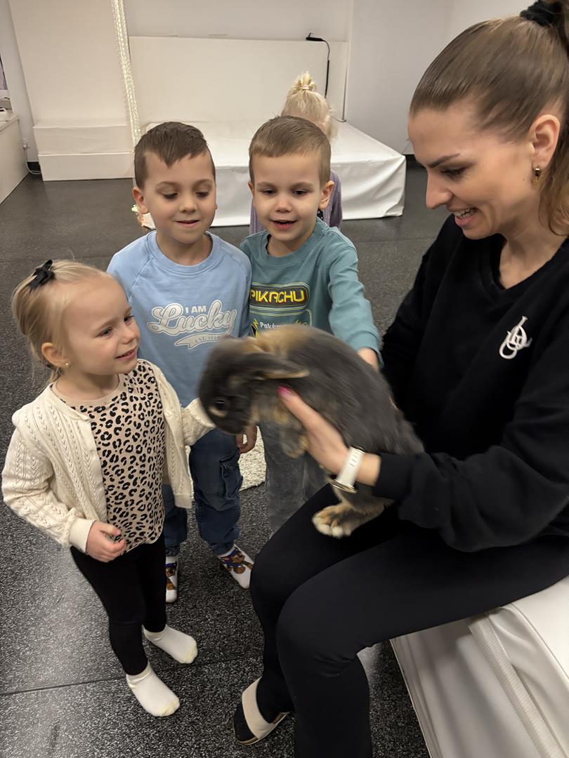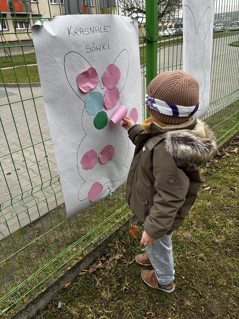 W środę Sówki wraz z Krasnalami wyruszyły na pełną przygód wyprawę w poszukiwaniu Zajączka. Na dzieci czekało wiele zadań – każde wymagało sprytu, współpracy i zaangażowania. Za dobrze wykonane zadania zdobywały naklejki, które prowadziły je coraz bliżej celu.W końcu udało się – dzieci dotarły do przedszkolnego zajączka, co było dla nich ogromną radością i powodem do dumy. Jednak to nie był koniec niespodzianek! Po chwili odwiedziła nas pani Paula, która przyniosła ze sobą prawdziwego króliczka. Dzieci były zachwycone – mogły go głaskać, tulić i obserwować z bliska.