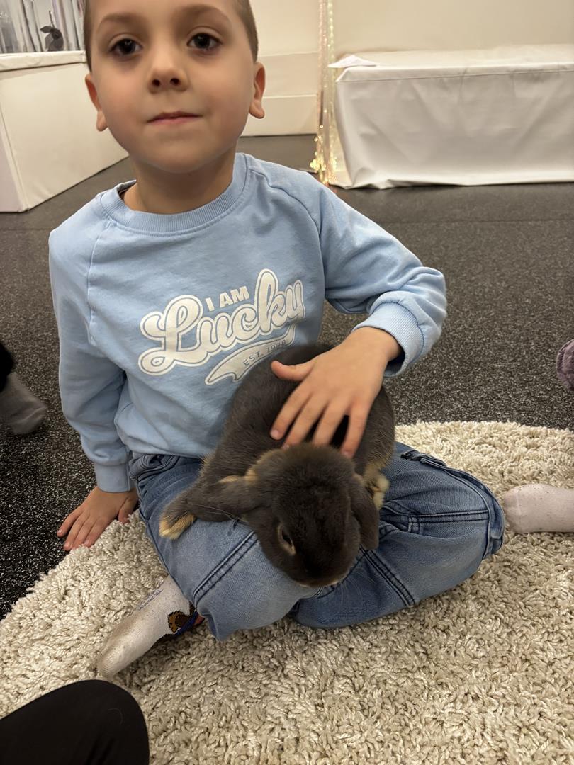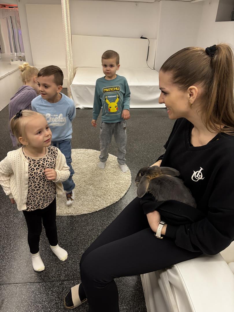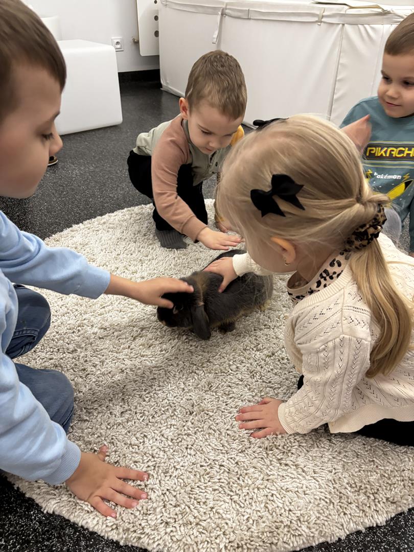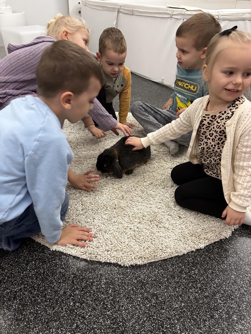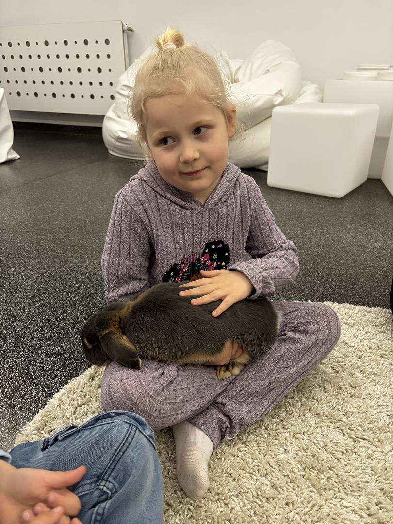 W środę Sówki wraz z Krasnalami wyruszyły na pełną przygód wyprawę w poszukiwaniu Zajączka. Na dzieci czekało wiele zadań – każde wymagało sprytu, współpracy i zaangażowania. Za dobrze wykonane zadania zdobywały naklejki, które prowadziły je coraz bliżej celu.W końcu udało się – dzieci dotarły do przedszkolnego zajączka, co było dla nich ogromną radością i powodem do dumy. Jednak to nie był koniec niespodzianek! Po chwili odwiedziła nas pani Paula, która przyniosła ze sobą prawdziwego króliczka. Dzieci były zachwycone – mogły go głaskać, tulić i obserwować z bliska.