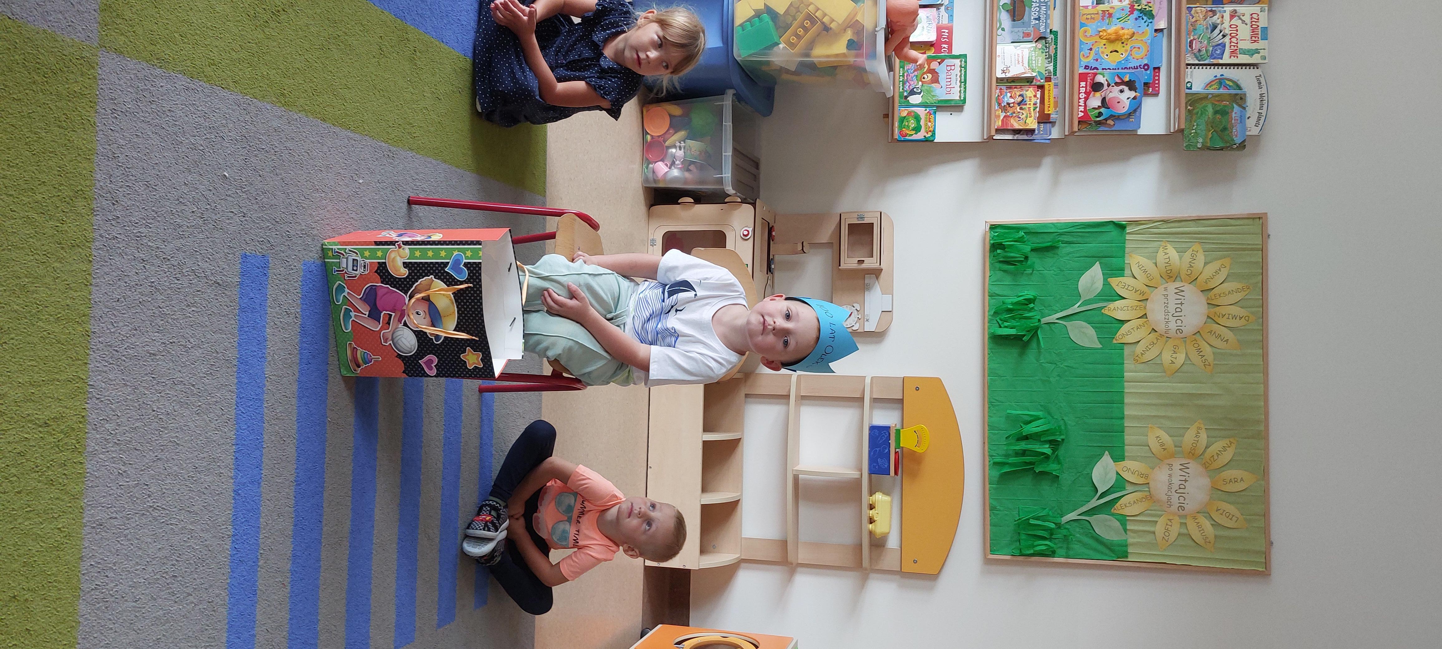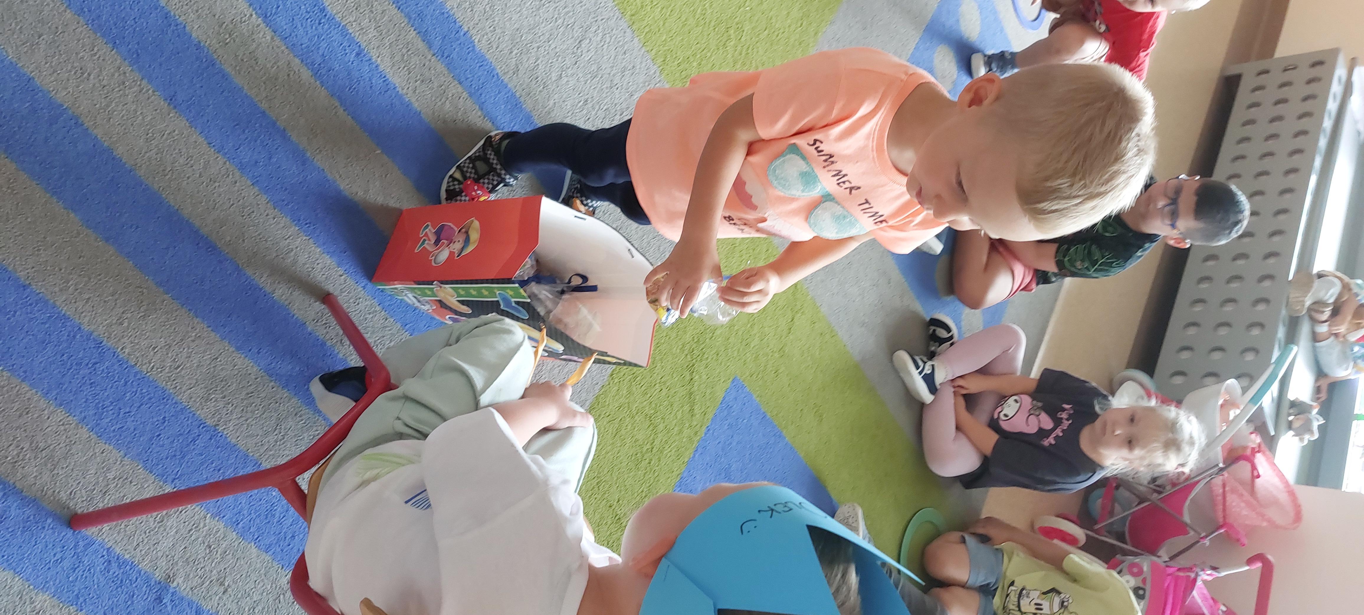 We wrześniu swoje urodziny obchodzili Nasi koledzy. Z tej okazji przedszkolaki śpiewały Sto lat oraz składały życzenia; zdrowia, radości, szczęścia. W podziękowaniu za pamięć Nasi Jubilaci wręczyli dzieciom słodki poczęstunek.