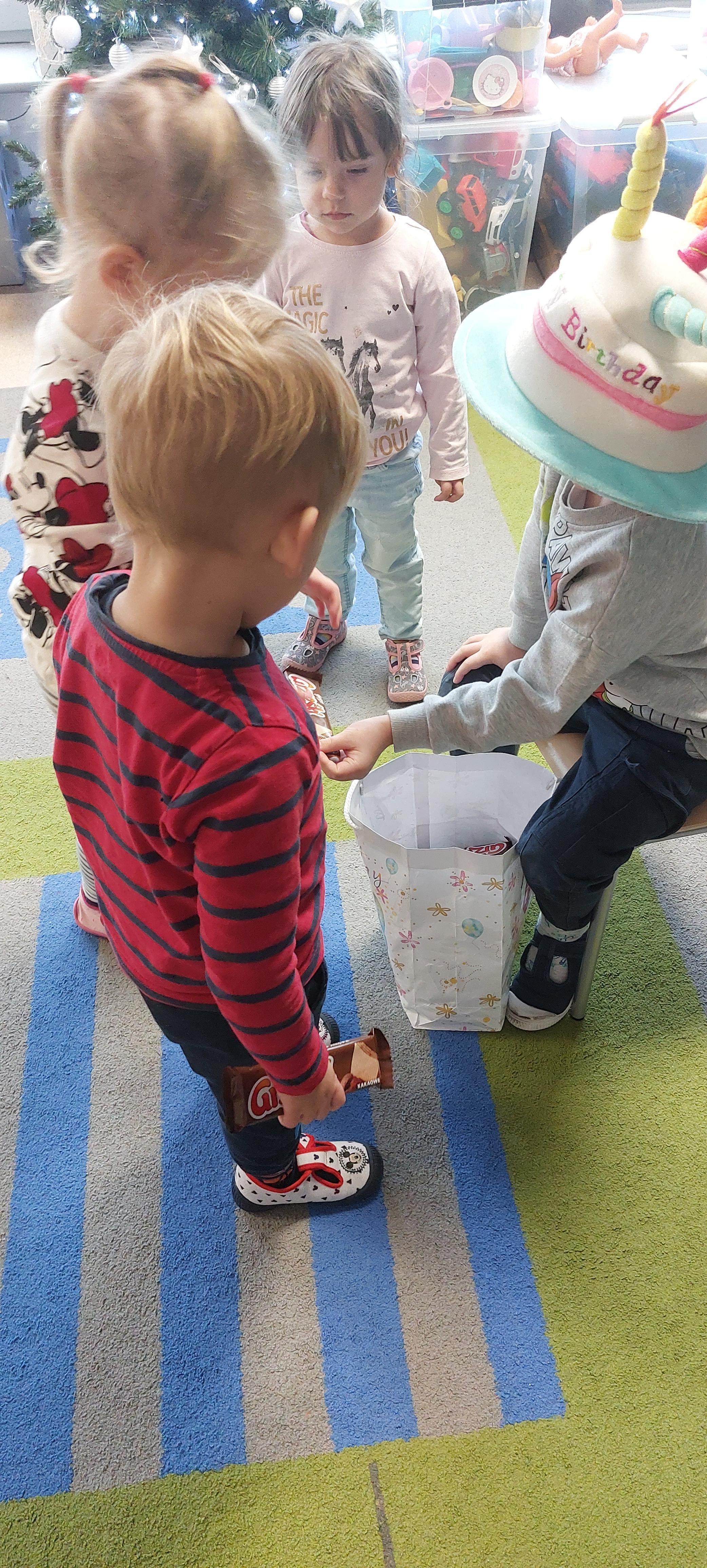 W listopadzie swoje urodziny obchodzili Nasi koledzy z grupy- Stasiu oraz Franek. Z tej okazji przedszkolaki śpiewały Sto lat oraz składały życzenia; zdrowia, radości, szczęścia. W podziękowaniu za pamięć Nasi Jubilaci wręczyli dzieciom słodki poczęstunek.